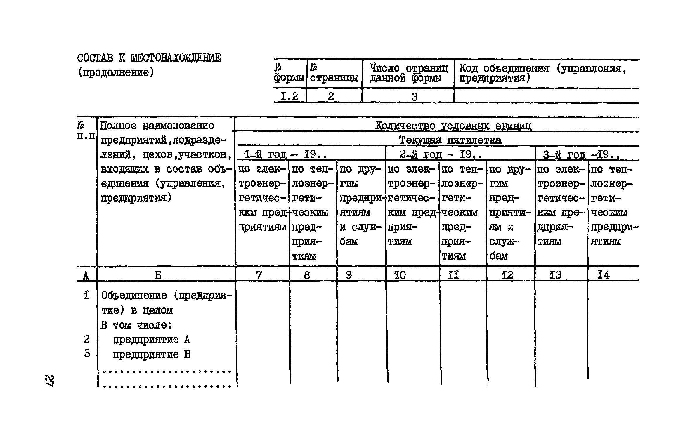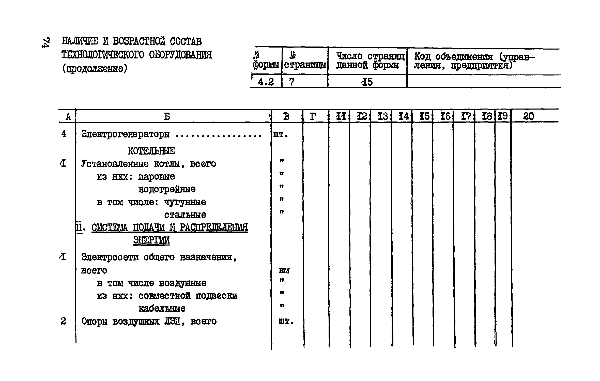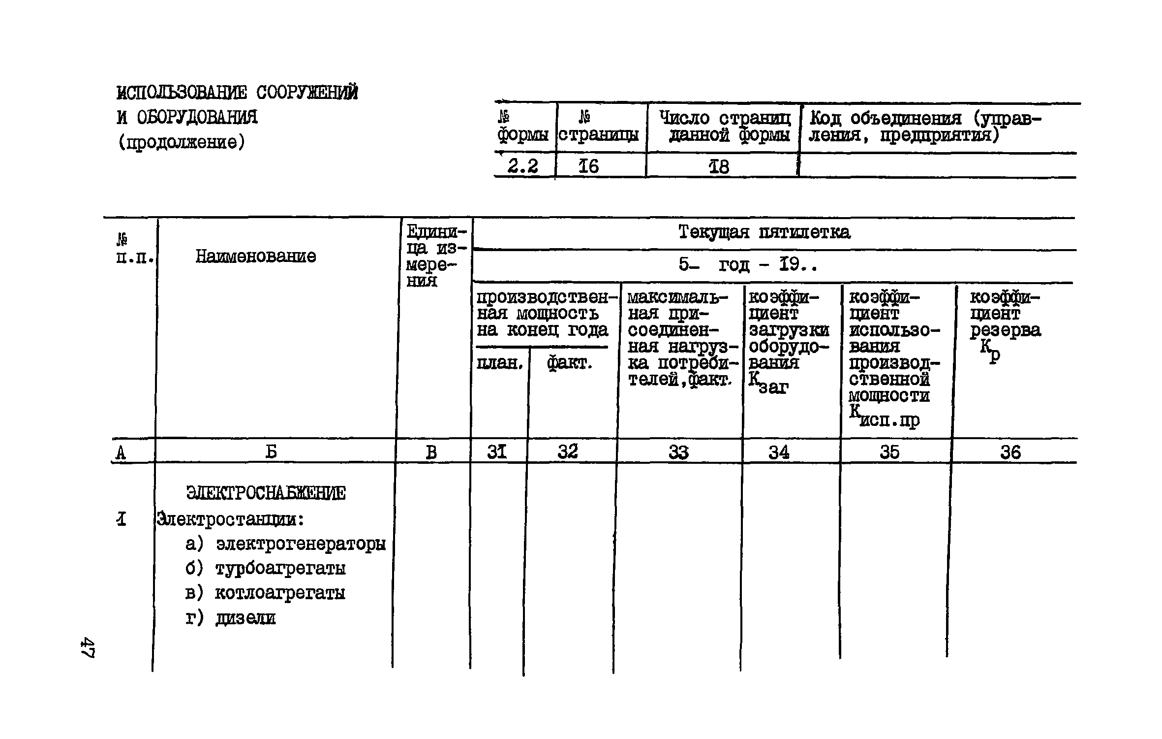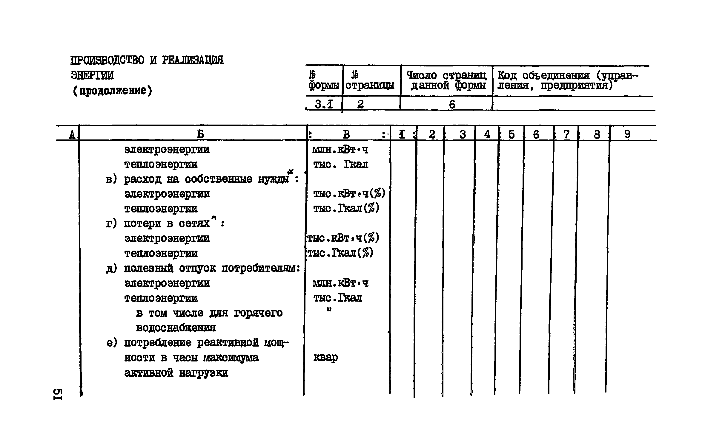 | Оглавление: | 1. Введение 2. Порядок составления паспорта 3. Общие данные по объединению (управлению, предприятию) 4. Мощность и ее использование 5. Производство и реализация энергии 6. Основные фонды и капитальное строительство 7. Материальные ресурсы 8. Трудовые ресурсы и социальное развитие 9. Финансовые показатели 10. Организационно-технический уровень производства 11. Охрана природы и рациональное использование природных ресурсов 12. Обслуживающее хозяйство 13. Приложение. Паспорт предприятия коммунальной энергетики (типовые формы) |