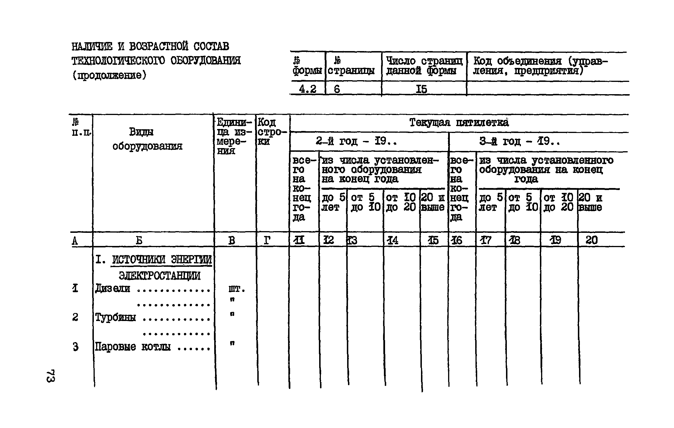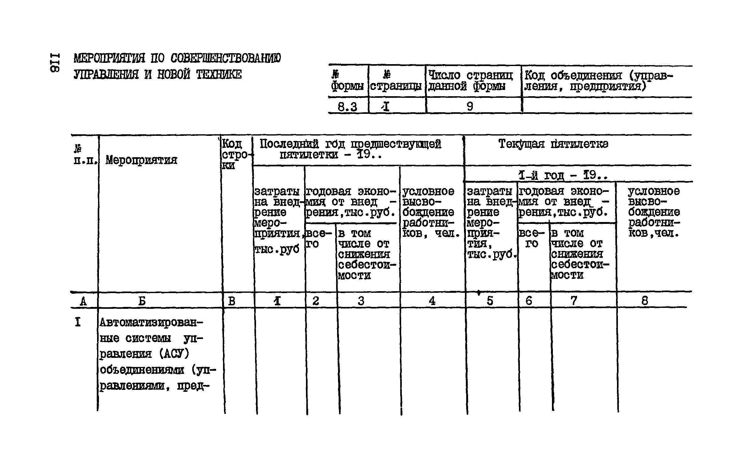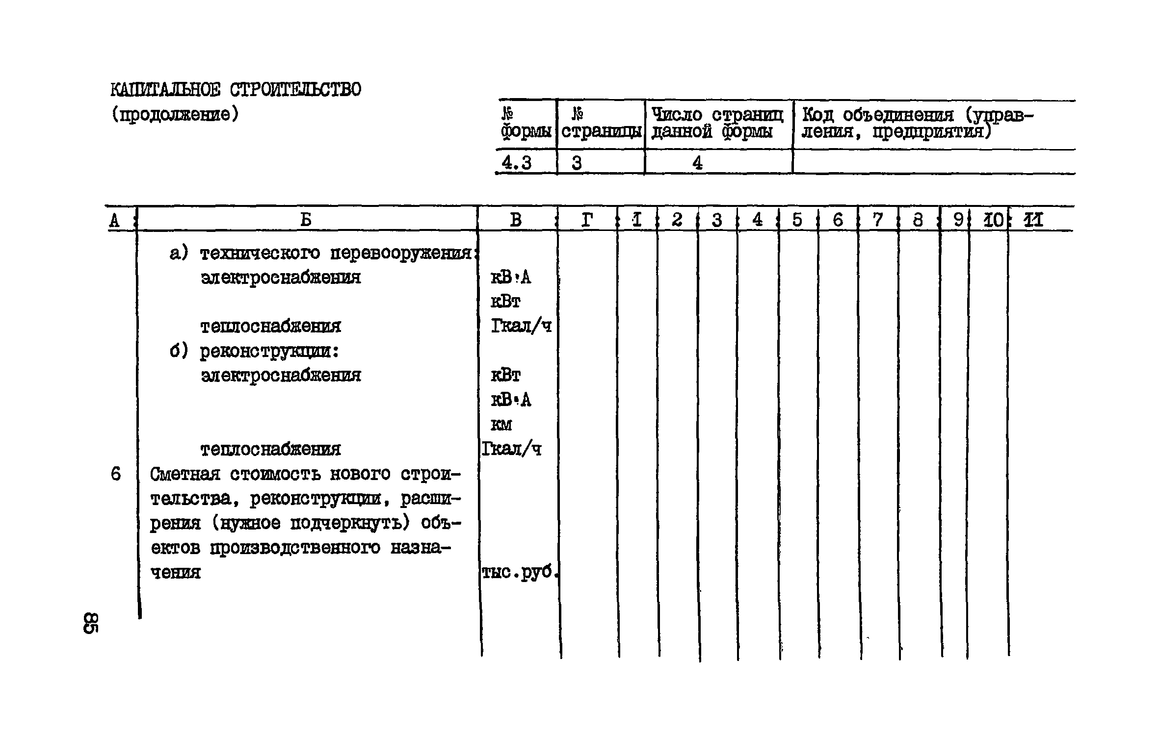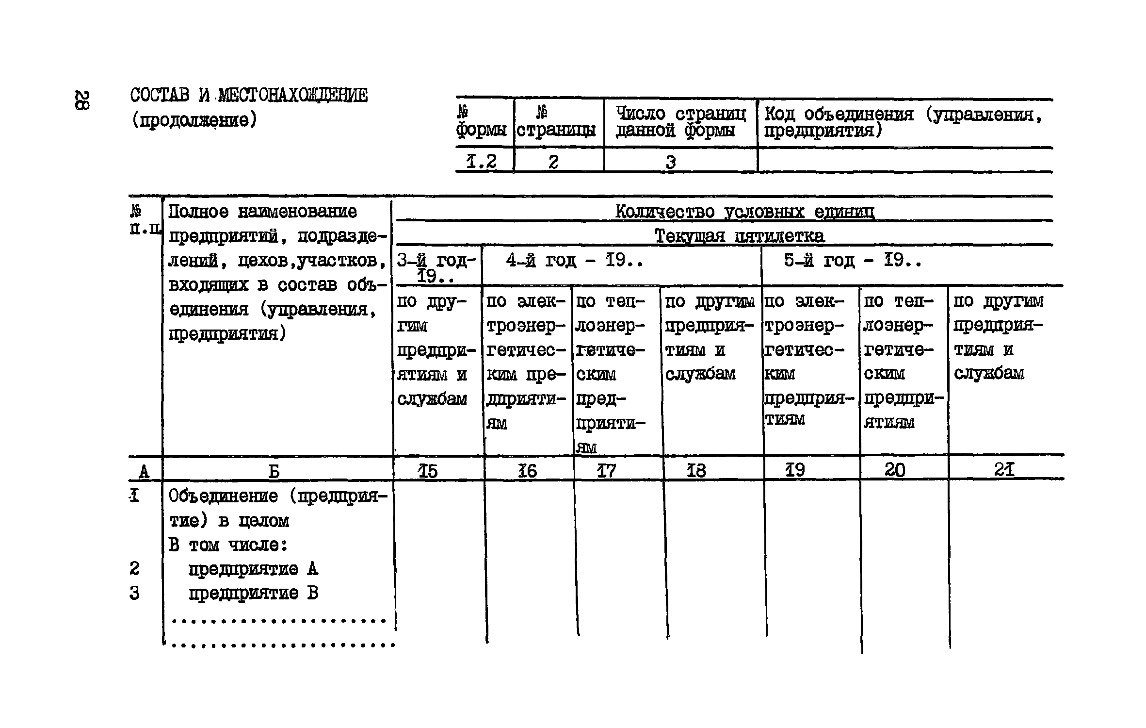 | Оглавление: | 1. Введение 2. Порядок составления паспорта 3. Общие данные по объединению (управлению, предприятию) 4. Мощность и ее использование 5. Производство и реализация энергии 6. Основные фонды и капитальное строительство 7. Материальные ресурсы 8. Трудовые ресурсы и социальное развитие 9. Финансовые показатели 10. Организационно-технический уровень производства 11. Охрана природы и рациональное использование природных ресурсов 12. Обслуживающее хозяйство 13. Приложение. Паспорт предприятия коммунальной энергетики (типовые формы) |