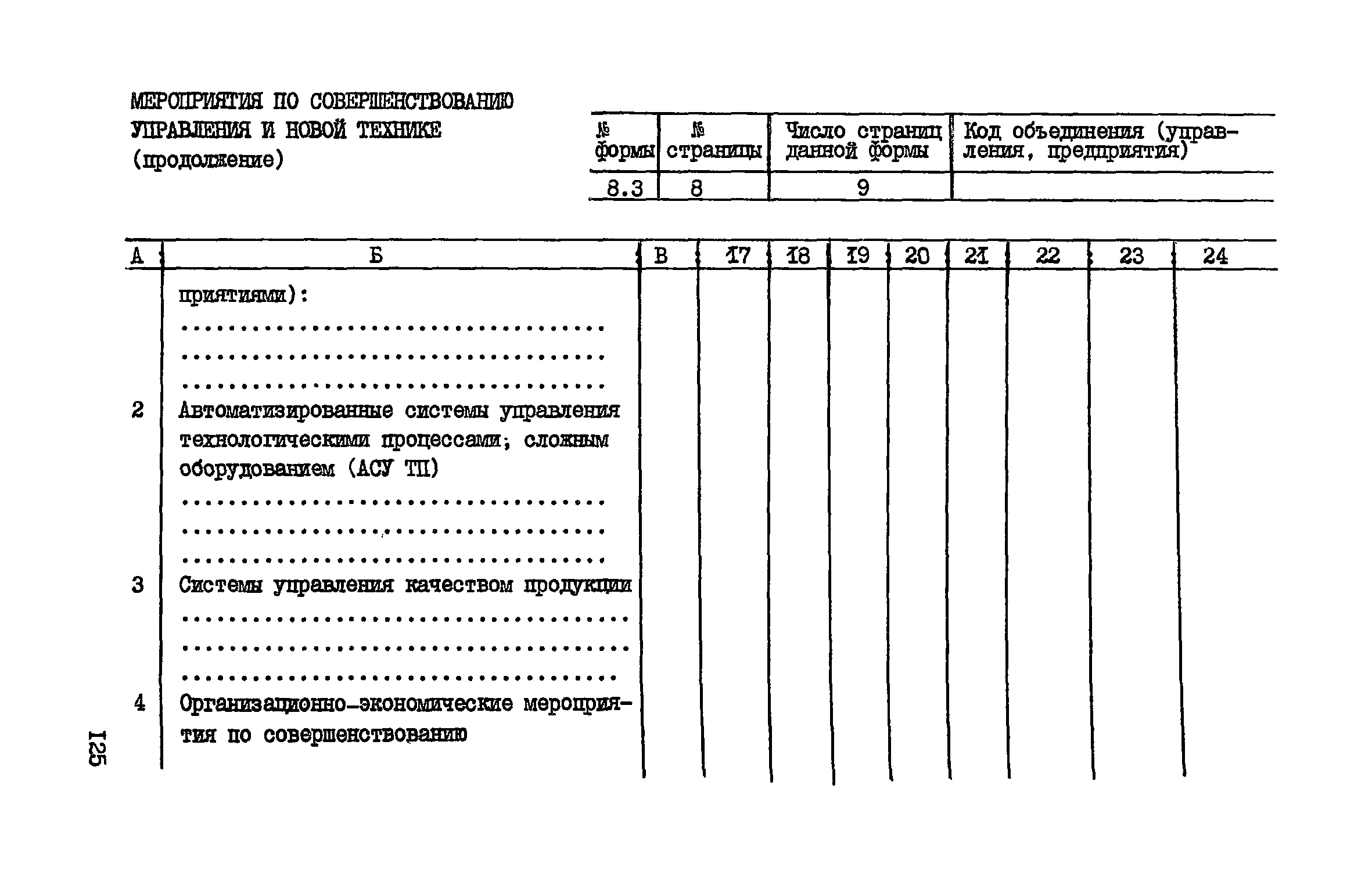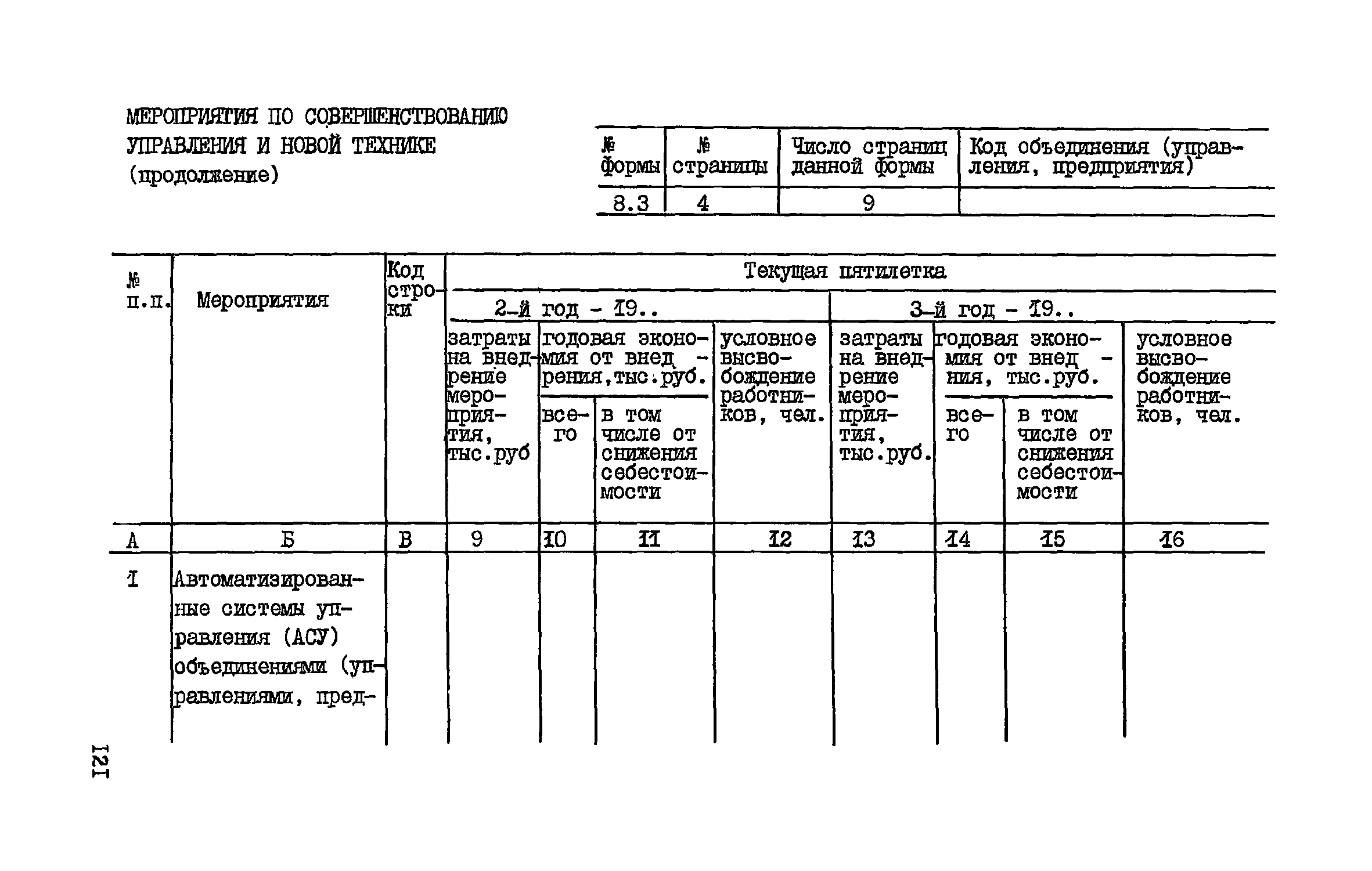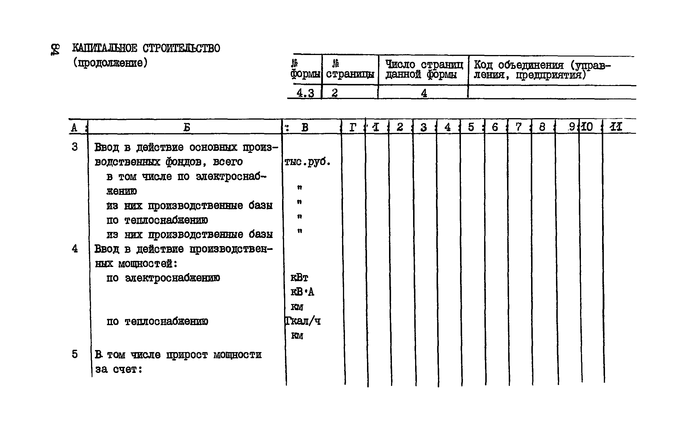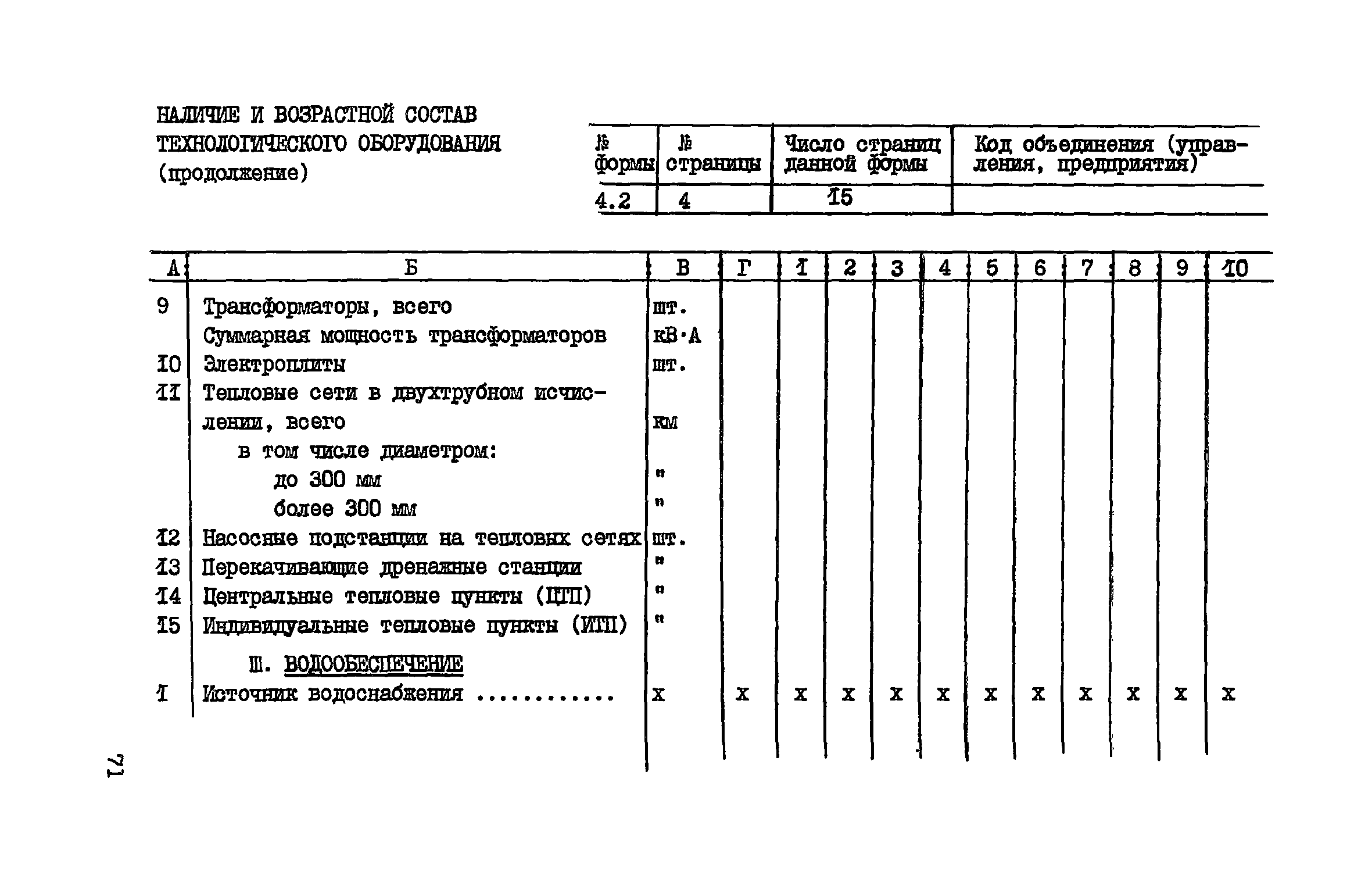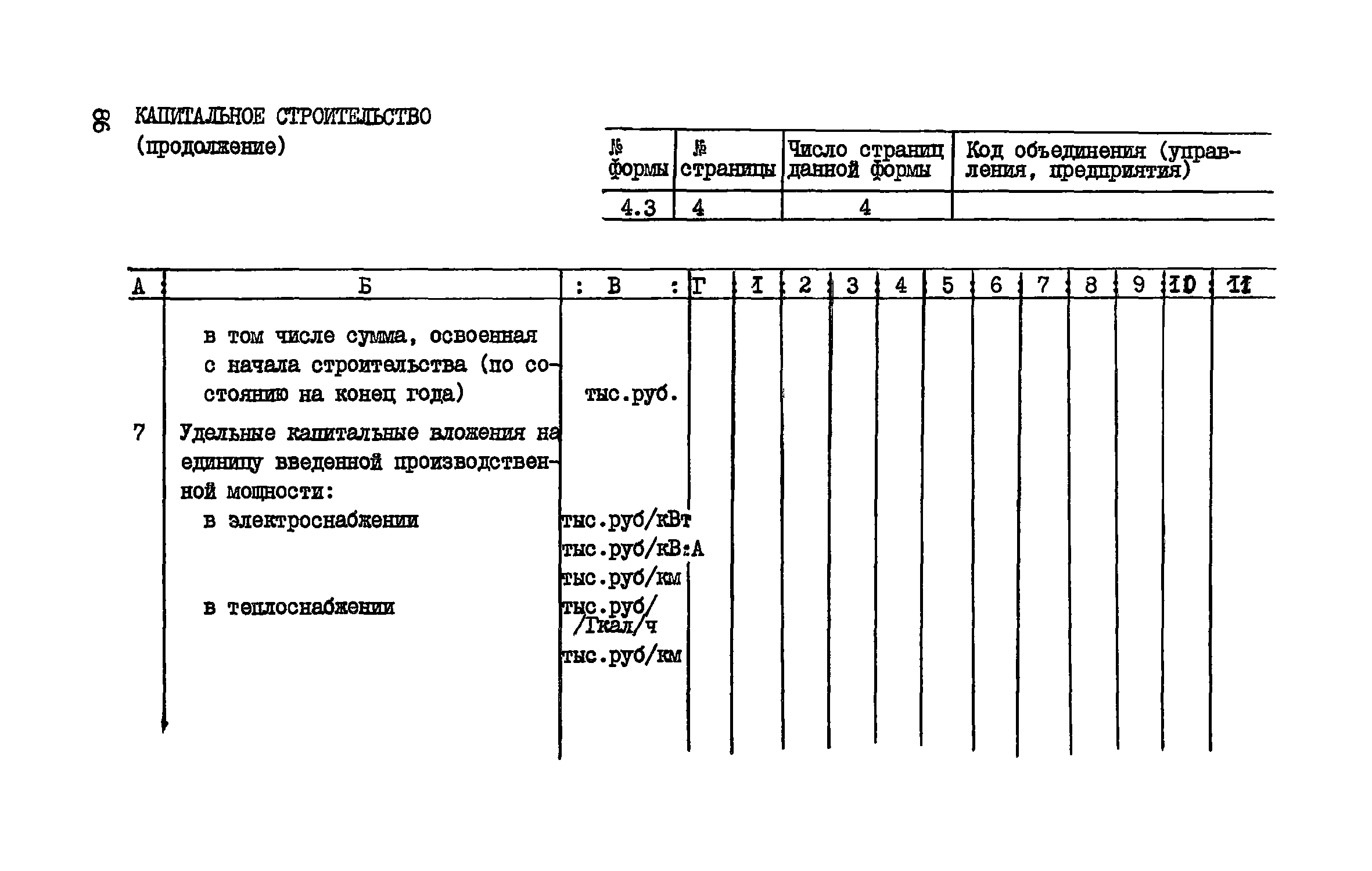 | Оглавление: | 1. Введение 2. Порядок составления паспорта 3. Общие данные по объединению (управлению, предприятию) 4. Мощность и ее использование 5. Производство и реализация энергии 6. Основные фонды и капитальное строительство 7. Материальные ресурсы 8. Трудовые ресурсы и социальное развитие 9. Финансовые показатели 10. Организационно-технический уровень производства 11. Охрана природы и рациональное использование природных ресурсов 12. Обслуживающее хозяйство 13. Приложение. Паспорт предприятия коммунальной энергетики (типовые формы) |
