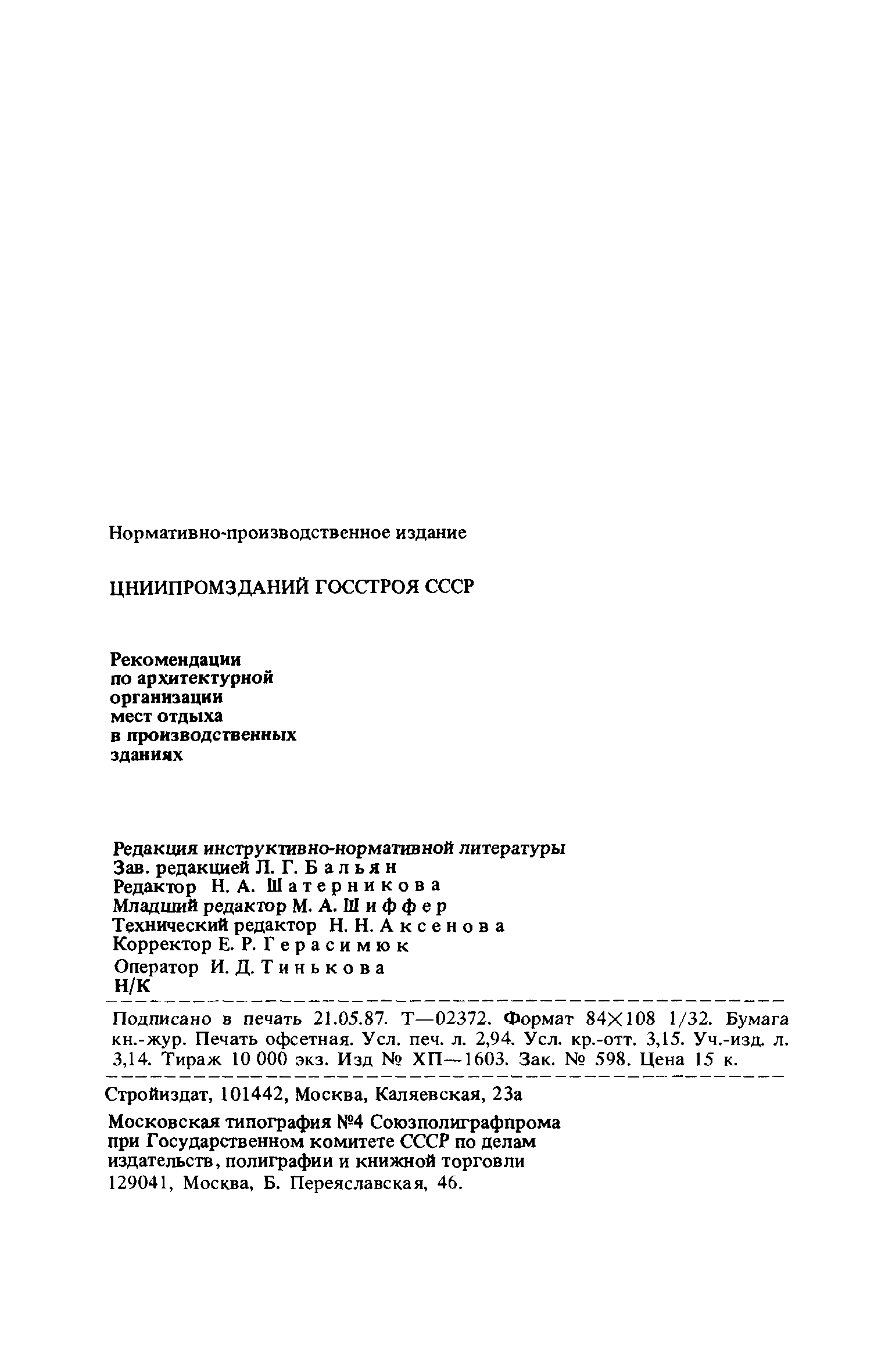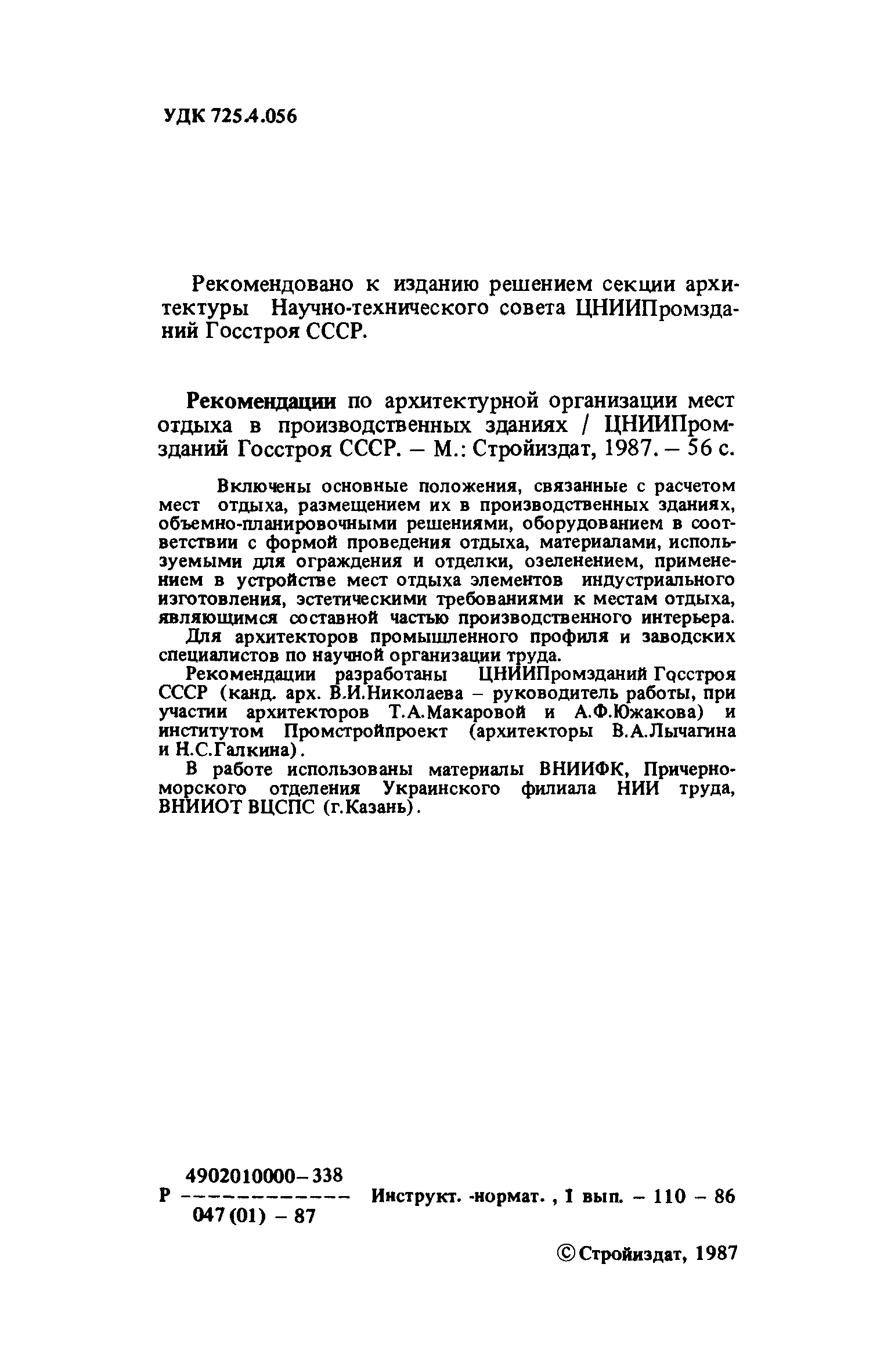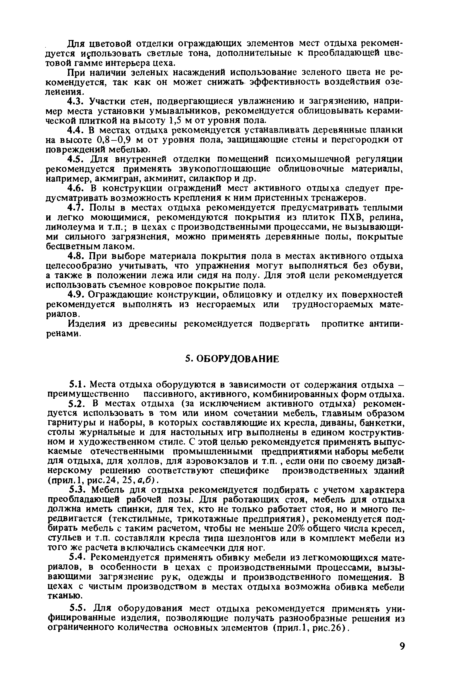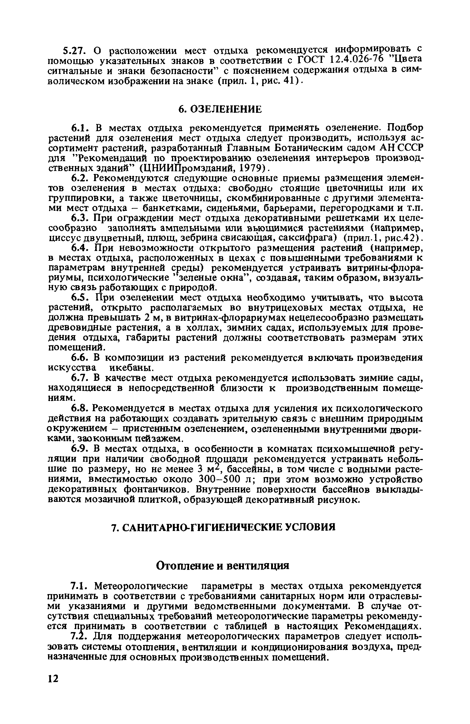 | Область применения: | В документ включены основные положения, связанные с расчетом мест отдыха, размещением их в производственных зданиях, объемно-планировочными решениями, оборудованием в соответствии с формой проведения отдыха, материалами, используемыми для ограждения и отделки, озеленением, применением в устройстве мест отдыха элементов индустриального изготовления, эстетическими требованиями к местам отдыха, являющимися составной частью производственного интерьера. |