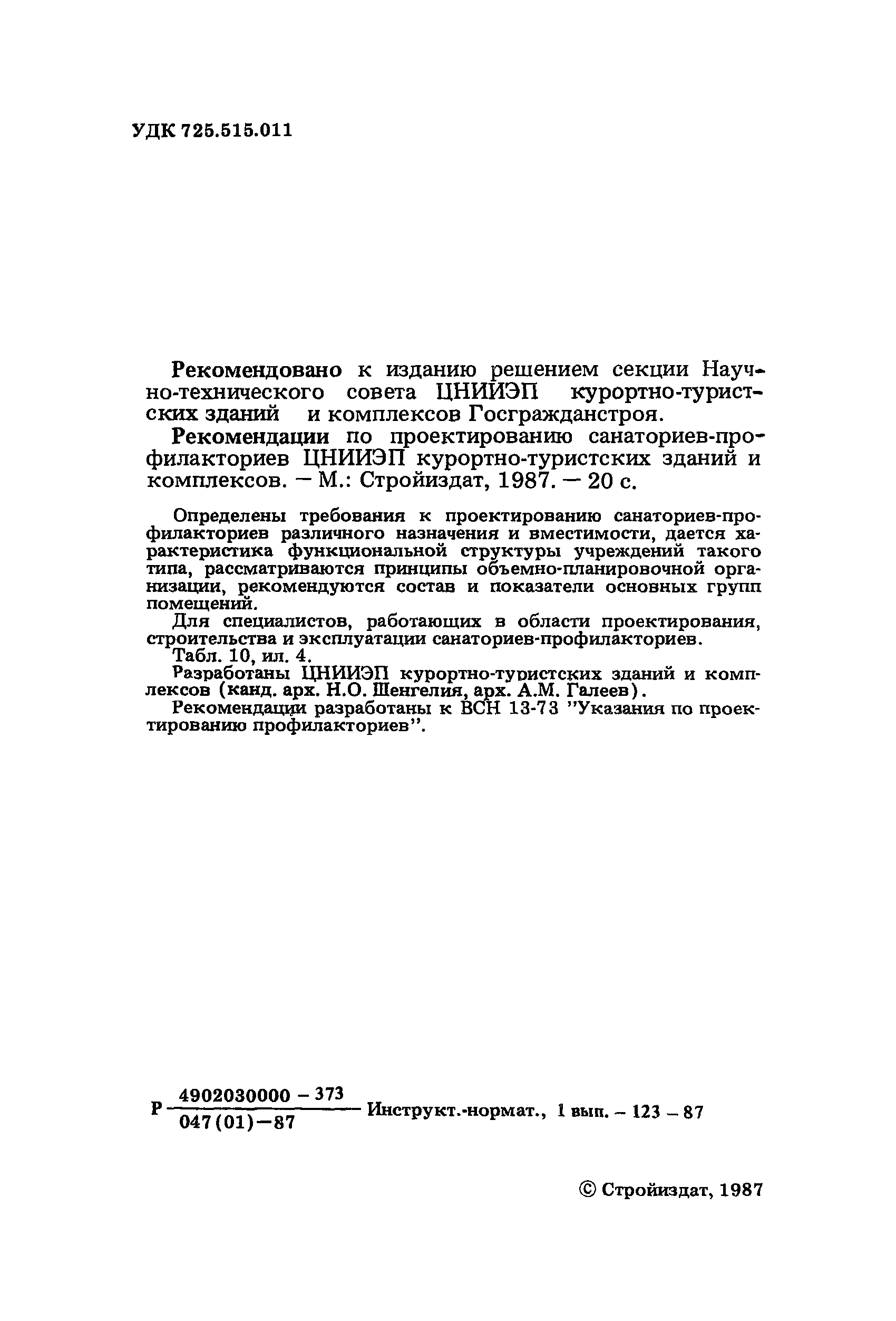 | Название рус.: | Рекомендации по проектированию санаториев-профилакториев |