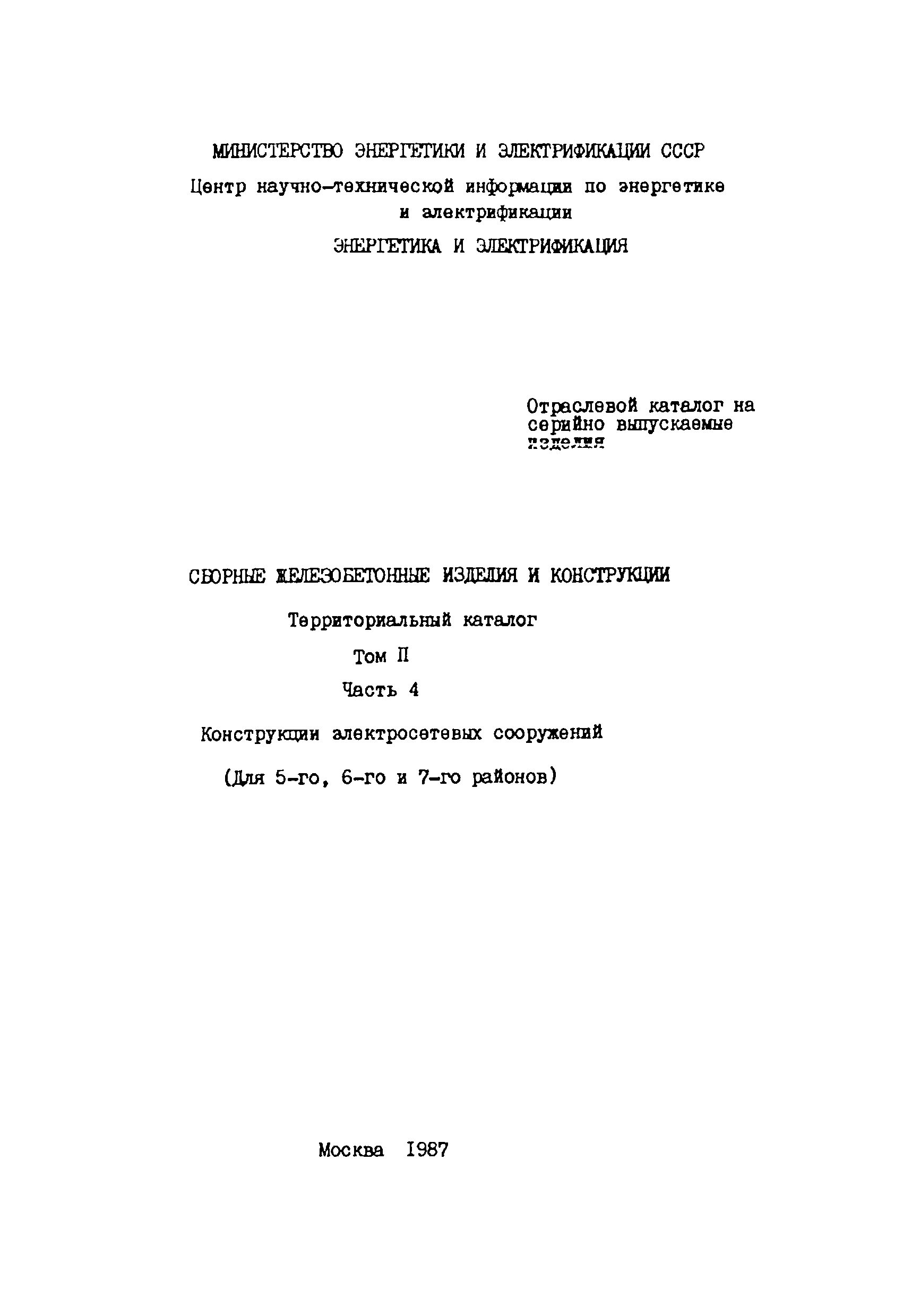 | Название рус.: | Сборные железобетонные изделия и конструкции. Территориальный каталог. Том II. Часть 4. Конструкции электросетевых сооружений (для 5-го, 6-го и 7-го районов) |
