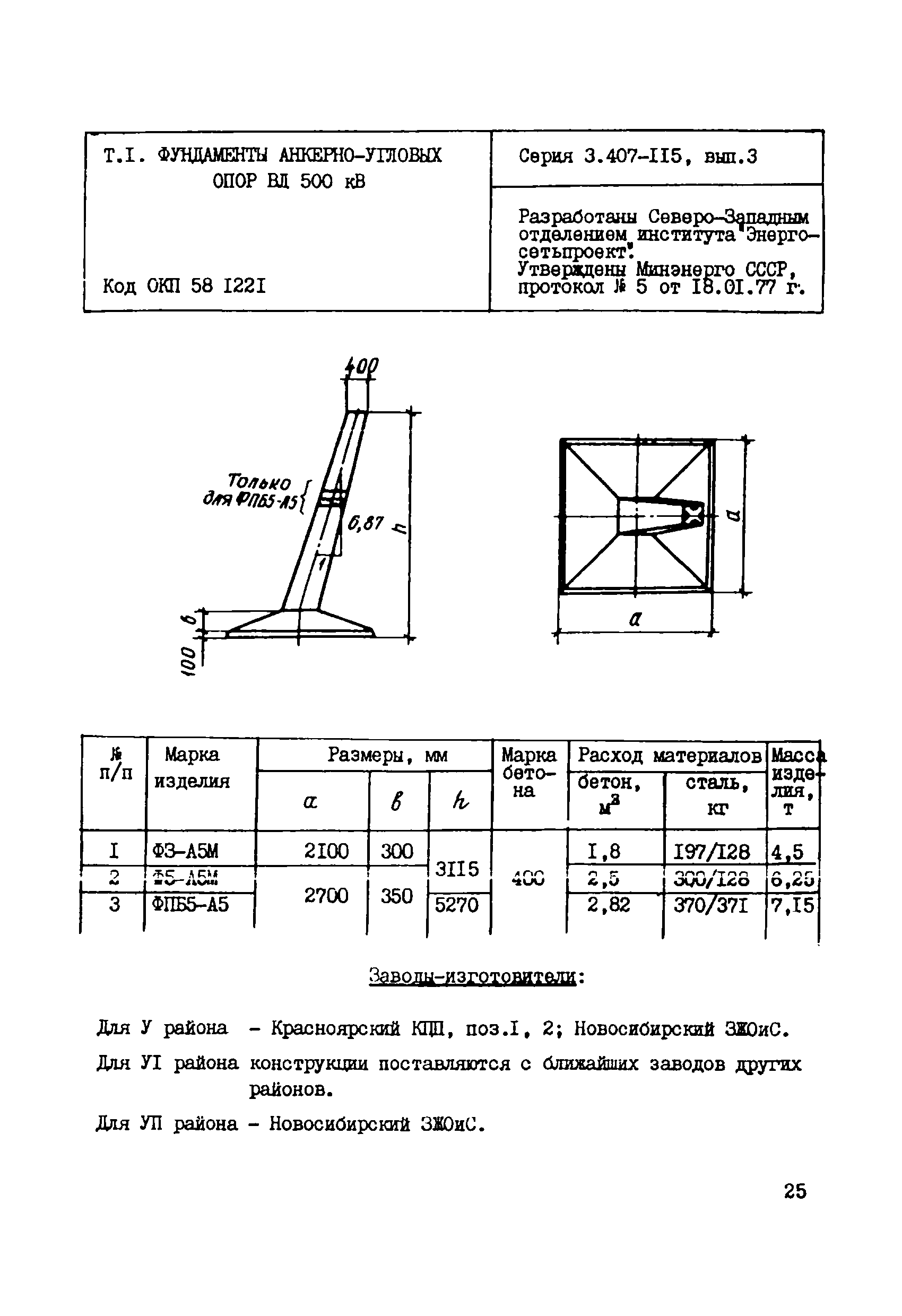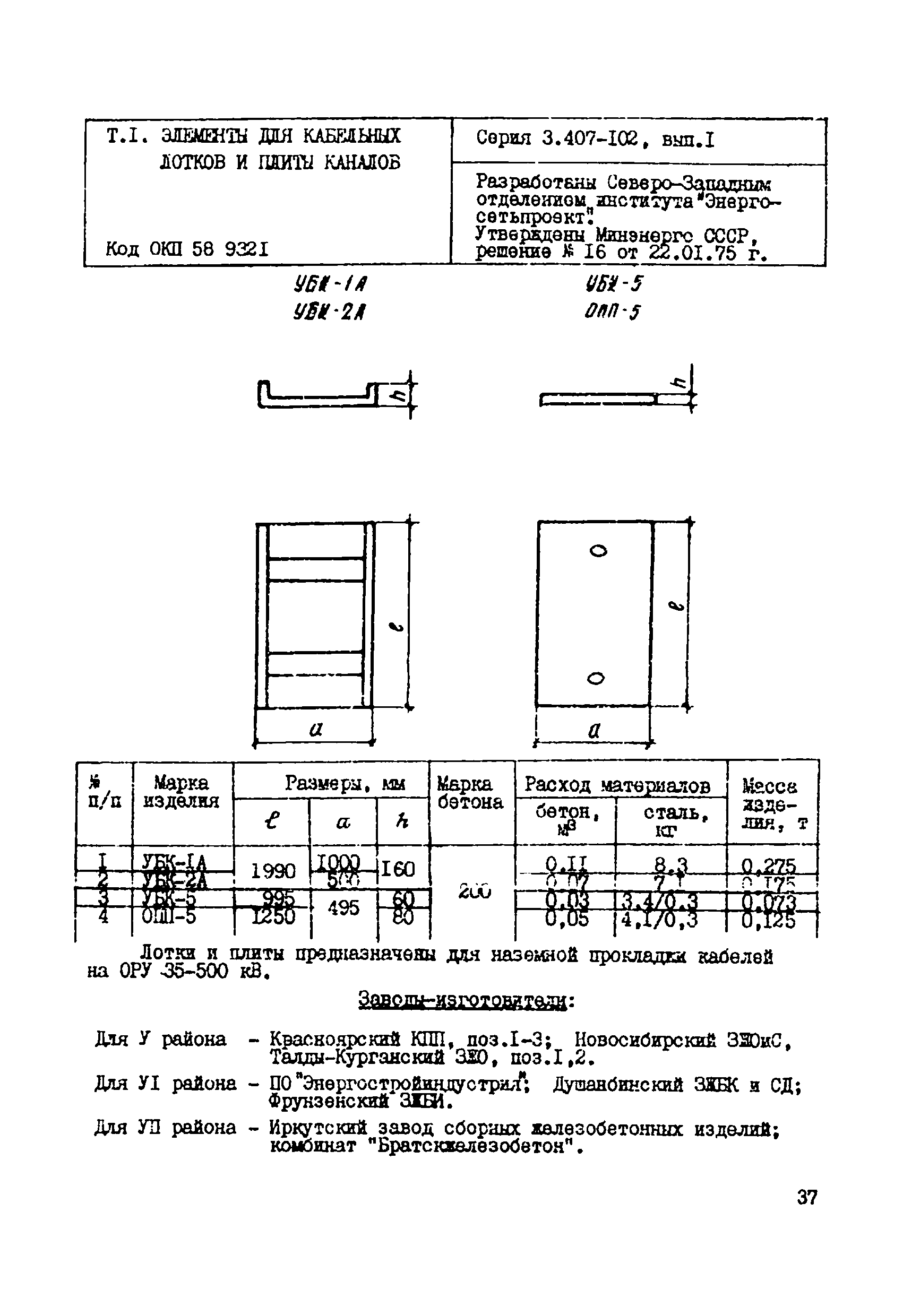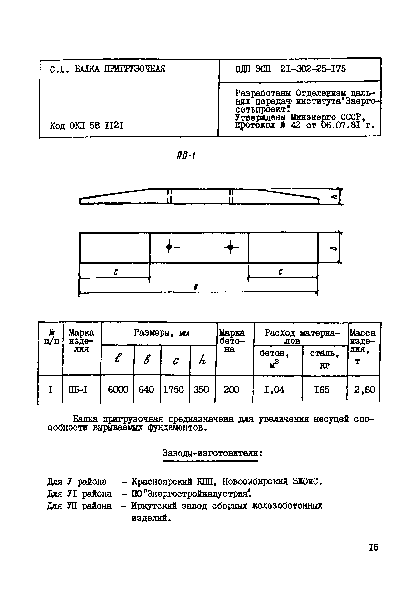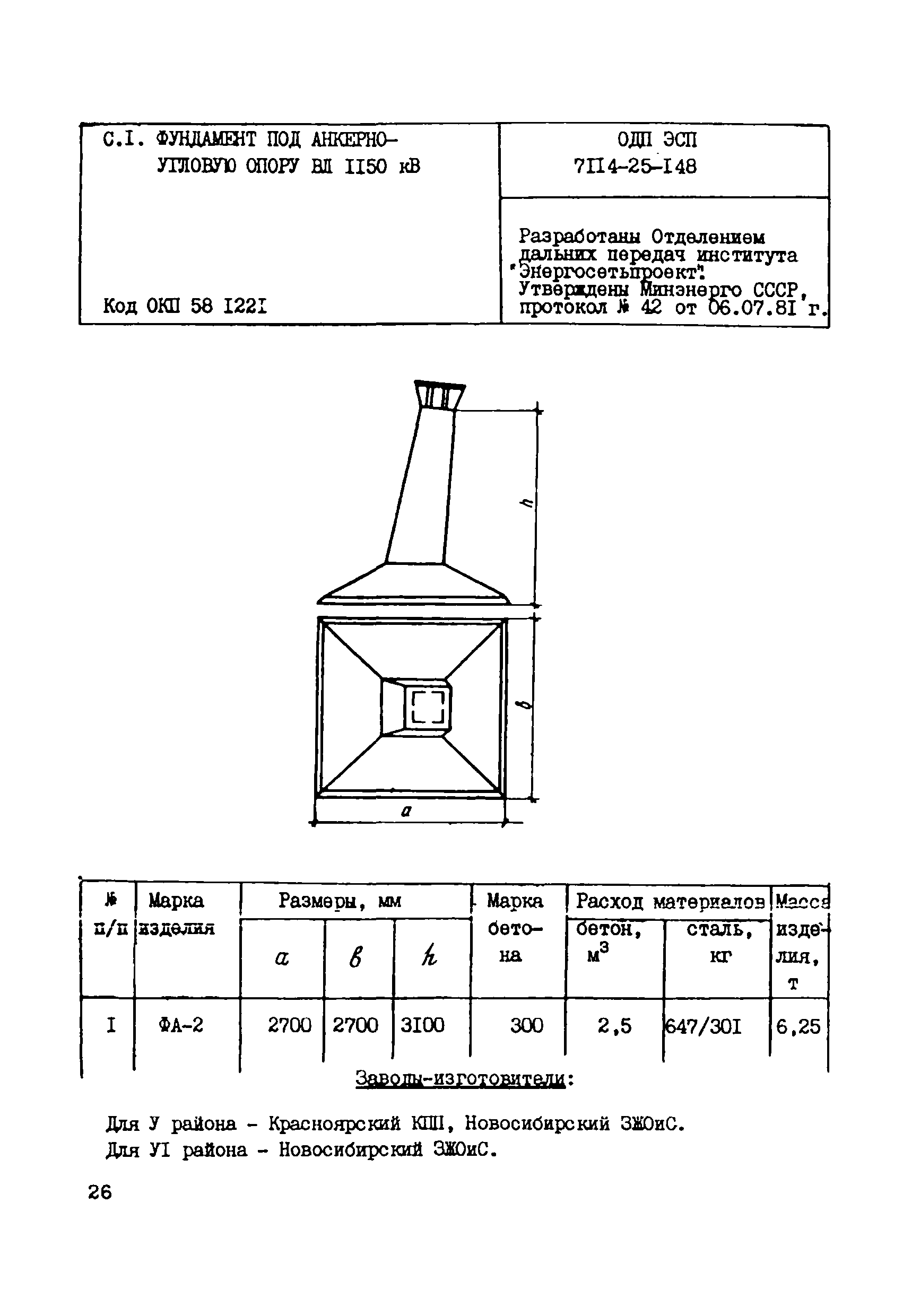 | Оглавление: | I. Стойки опор ВЛ Стойки центрифугированные опор ВЛ 35-500 кВ Стойки центрифугированные опор ВЛ 35-750 кВ II. Фундаменты опор ВЛ Фундаменты промежуточных опор ВЛ 35-330 кВ Фундаменты анкерно-угловых опор ВЛ 35-330 кВ Плиты анкерные для крепления оттяжек Ригели фундаментные Балка пригрузочная Подпятники Плиты опорные и плита подкладная Сваи квадратного сечения 35х35 см Сваи-звенья ЦФ диаметром 560 мм Балки грузовые поверхностных фундаментов Фундаменты составные Фундаменты под промежуточные опоры на оттяжках ВЛ 500 кВ Фундаменты анкерно-угловых опор ВЛ 500 кВ Фундамент под анкерно-угловую опору ВЛ 1150 кВ Плиты анкерные для промежуточных опор на оттяжках ВЛ 1150 кВ Плита подкладная для фундаментов ВЛ 1150 кв Фундаменты под промежуточные опоры ВЛ 1500 кВ Плиты анкерные для промежуточных опор на оттяжках ВЛ 1500 кВ Фундамент под анкерно-угловые опоры ВЛ 1500 кВ III. Изделия для ОРУ подстанций Стойки центрифугированные порталов ОРУ Стойки вибрированные порталов ОРУ Стойки и фундамент под оборудование ОРУ Сваи под оборудование Элементы для кабельных лотков и плиты каналов Плиты и бруски для кабельных каналов Бруски кабельных каналов (для КТПБ) Плиты для КРУНов, ограждения маслосборников и огнезащитной стенки Плиты для укладки железнодорожных путей ОРУ и установки трансформаторов Плита для установки трансформаторов Брусья для перекатки трансформаторов Элементы конструкций КТПБ. Лежни Элементы ограды для подстанций IV. Изделия для быстромонтируемых зданий подстанций Секции быстромонтируемых зданий (БМЗ) Панели кровельные Панели стеновые Панели стеновые с проемами ворот Панели стеновые торца здания Панель карнизная Плита пола Колодцы сборные большого, среднего и малого типов Столбики замерные кабельные V. Изделия для строительства сельских линий и подстанций Стойки для опор ВЛ 0,38 кВ Стойки для опор ВЛ 0,38-10 кВ Стойки для опор ВЛ 6-10 и 35 кВ Приставки для деревянных опор ВЛ 0,38-10 кВ Плиты опорно-анкерные для ВЛ 0,38-10 кВ Анкер для опор ВЛ 10-35 кВ Фундамент под КТП 10/0,38 кВ Адреса заводов-изготовителей |