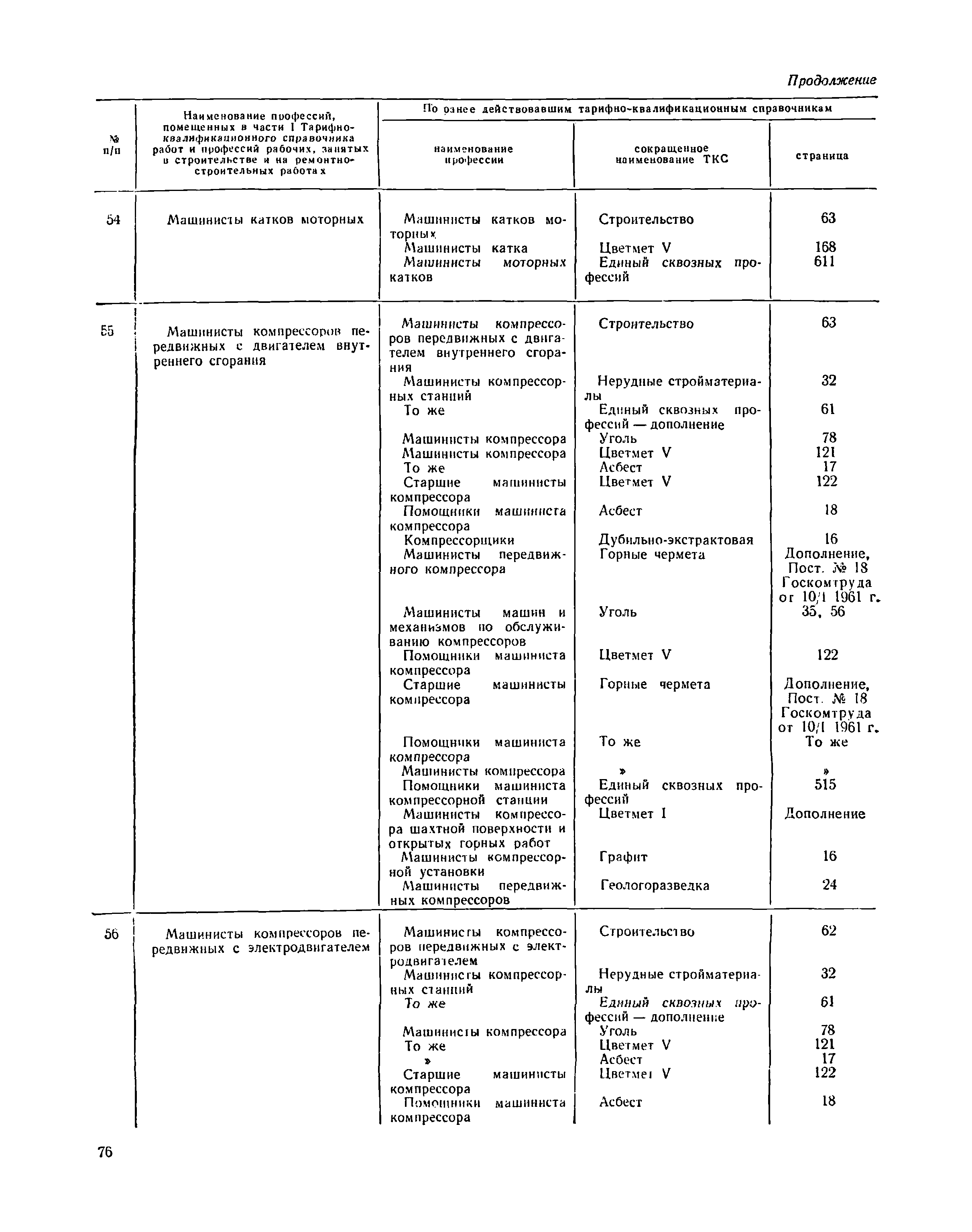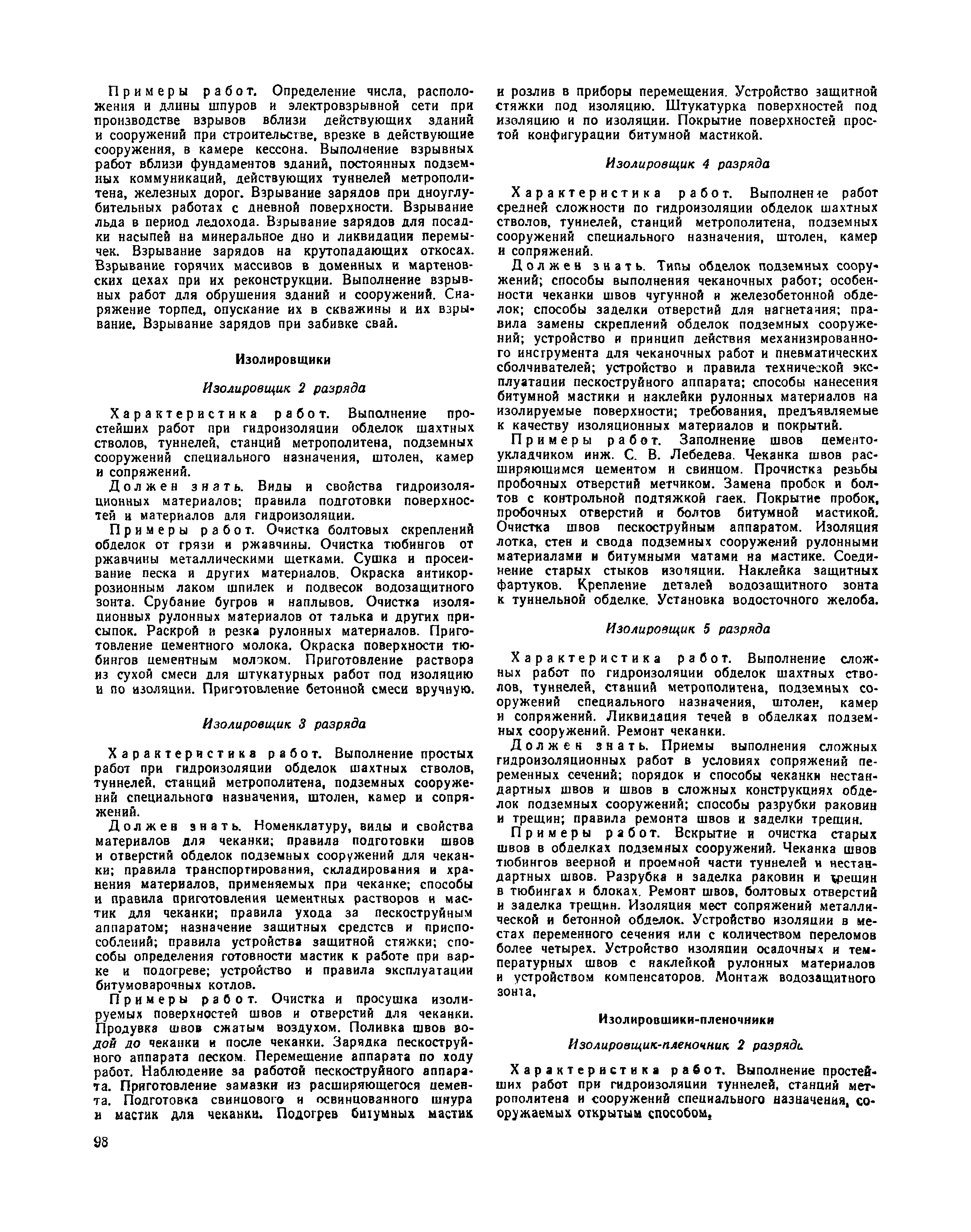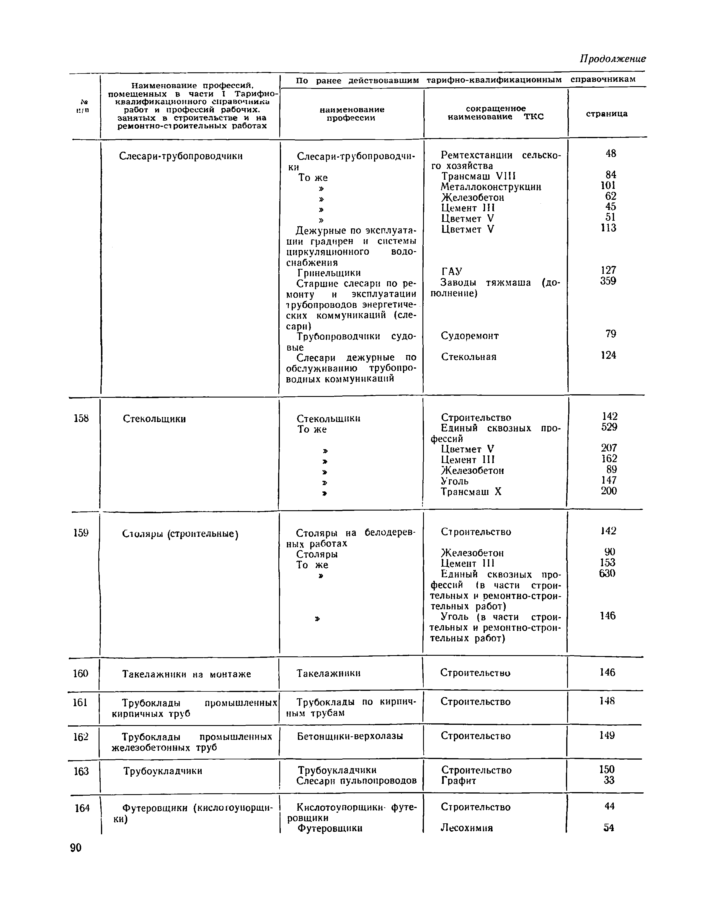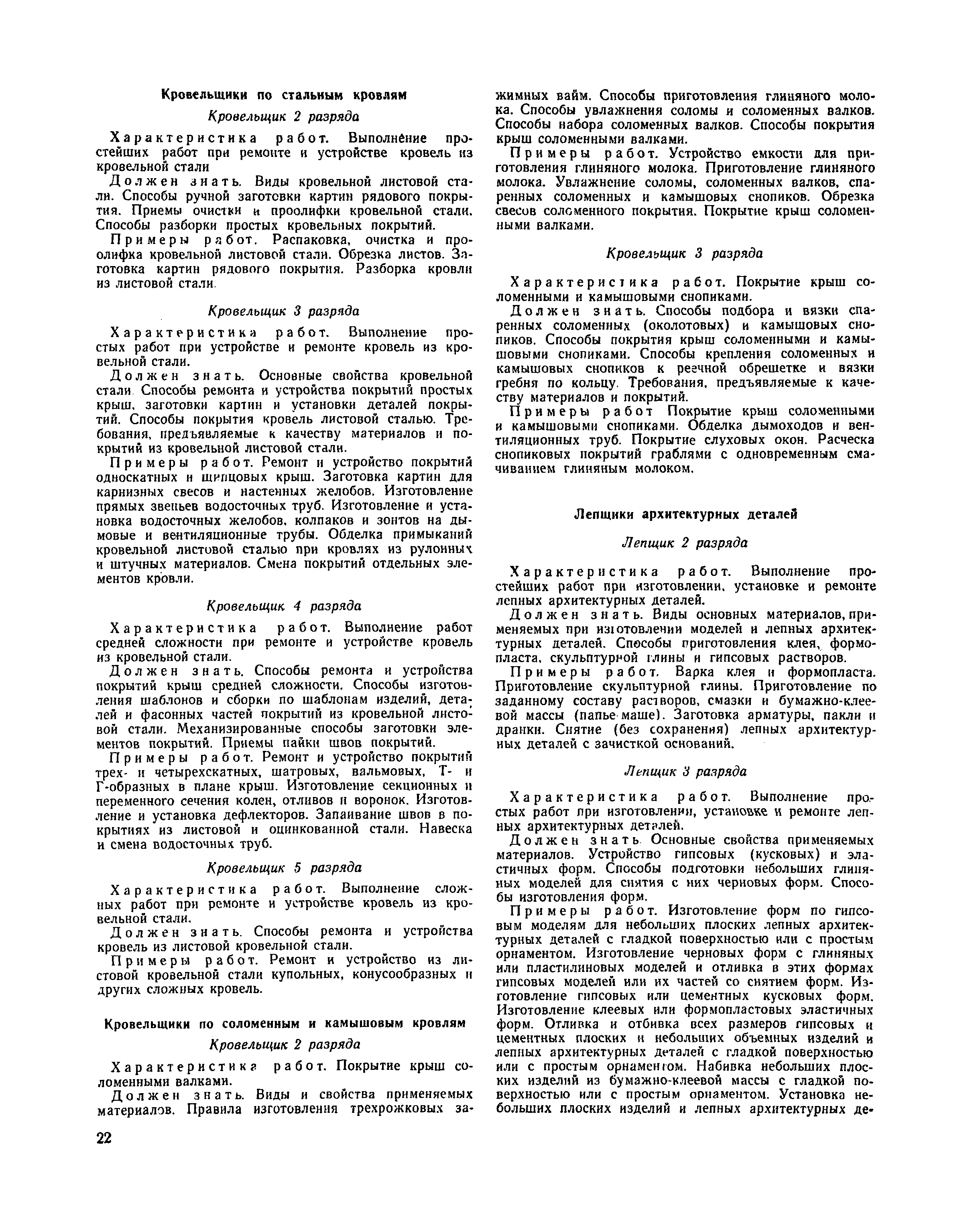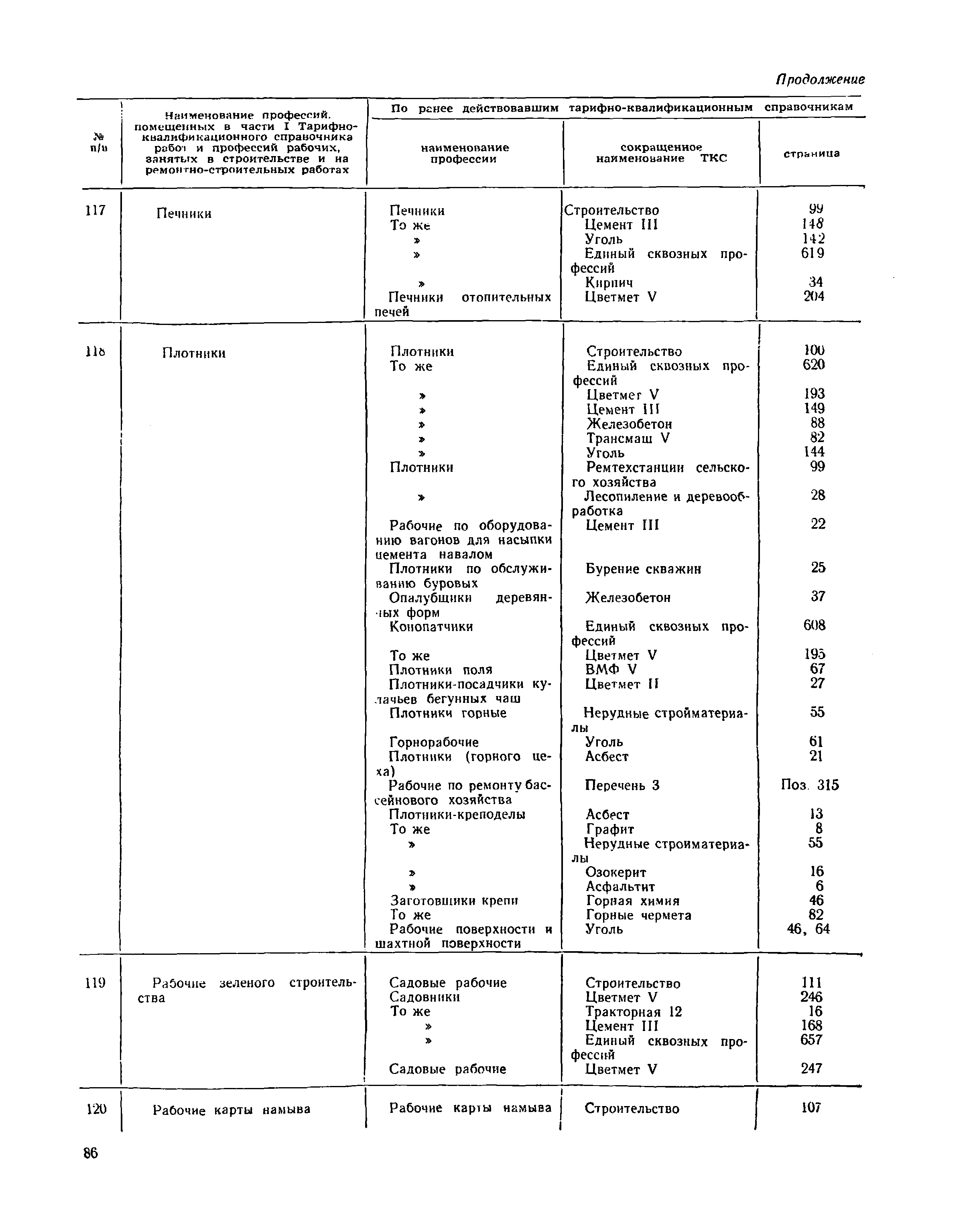 Тарифно-квалификационный справочник работ и профессий рабочих, занятых в строительстве и на ремонтно-строительных работах| Статус: | не действует | | Название рус.: | Тарифно-квалификационный справочник работ и профессий рабочих, занятых в строительстве и на ремонтно-строительных работах | | Дата добавления в базу: | 01.09.2013 | | Дата актуализации: | 01.01.2021 | | Область применения: | Единый тарифно-квалификационный справочник работ и профессий рабочих (ЕТКС) обязателен для применения на предприятиях и в организациях всех отраслей народного хозяйства СССР. Единый тарифно-квалификационный справочник содержит тарифно-квалификационные характеристики профессий рабочих (за исключением профессий рабочих, труд которых оплачивается исходя из месячных окладов), сгруппированные в разделы по производствам и видам работ, независимо от того, на предприятиях (в организациях) какого министерства (ведомства) эти производства или виды работ имеются. | | Оглавление: | Общие положения Единого тарифно-квалификационного справочника работ и профессий рабочих народного хозяйства СССР Введение Часть 1. Основные профессии рабочих, занятых на строительных, монтажных, ремонтно-строительных работах и в подсобных производствах (раздел «Строительные, монтажные и ремонтно-строительные работы») Единого тарифно-квалификационного справочника работ и профессий рабочих народного хозяйства СССР) Перечень профессий рабочих, предусмотренных в первой части «Тарифно-квалификационного справочника работ и профессий рабочих, занятых в строительстве и на ремонтно-строительных работах, с указанием их наименований по ранее действовавшим ТКС Перечень аннулированных профессий рабочих, ранее предусмотренных в «Едином тарифно-квалификационном справочнике работ и профессий рабочих, занятых в строительстве и на ремонтно-строительных работах» 1960 г. (с учетом дополнений и изменений) Перечень наименований профессий рабочих, исключенных из «Единого тарифно-квалификационного справочника работ и профессий рабочих, занятых в строительстве и на ремонтно-строительных работах» 1960 г., с указанием измененных наименований профессий и разделов «ЕТКС работ и профессий рабочих народного хозяйства СССР», в которые они включены Алфавитный указатель Часть II. Основные профессии рабочих, занятых на горнокапитальных работах (извлечение из раздела «Горные, горнокапитальные работы, обогащение, агломерация, брикетирование «Единого тарифно-квалификационного справочника работ и профессий рабочих народного хозяйства СССР») Алфавитный указатель Часть III. Профессии рабочих, занятых на строительных, монтажных, горнокапитальных, ремонтно-строительных работах и в подсобных производствах, тарификация которых, производится в соответствии с квалификационными характеристиками, предусмотренными для аналогичных работ промышленности, на транспорте и в связи (извлечение из соответствующих разделов «Единого тарифно-квалификационного справочника работ и профессий рабочих народного хозяйства СССР») Алфавитный указатель | | Утверждён: | 19.09.1968 Государственный комитет Совета Министров СССР по вопросам труда и заработной платы (300/27)