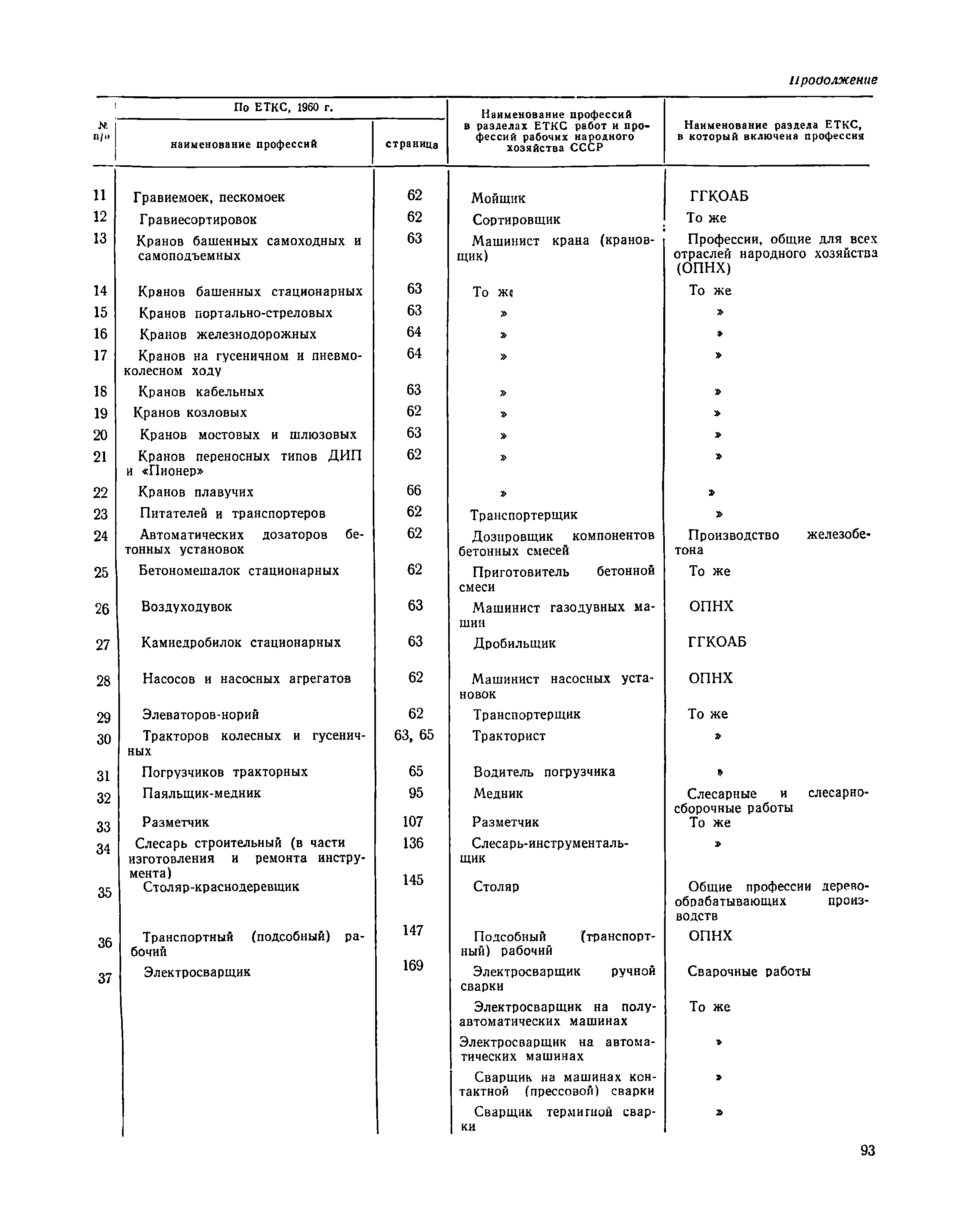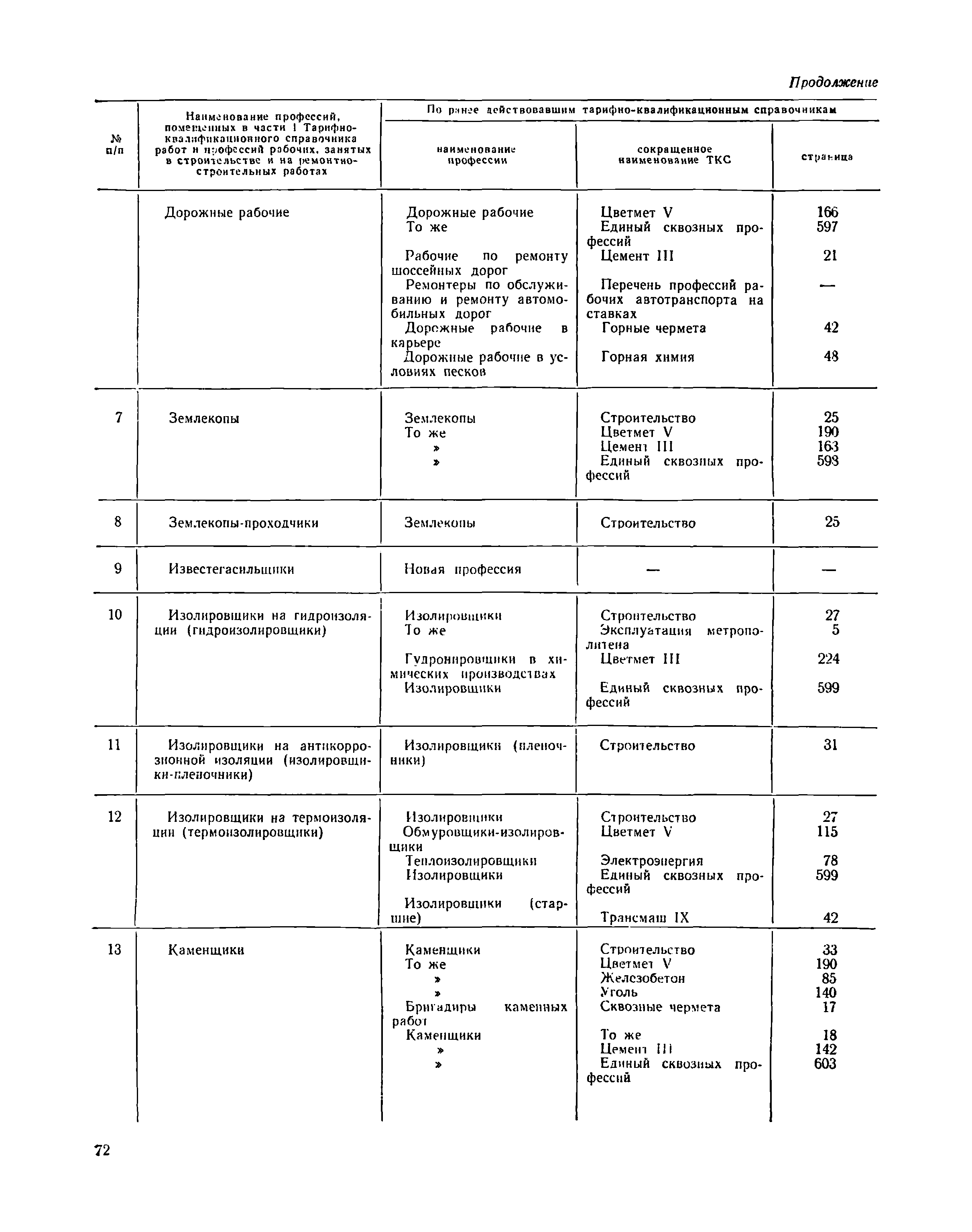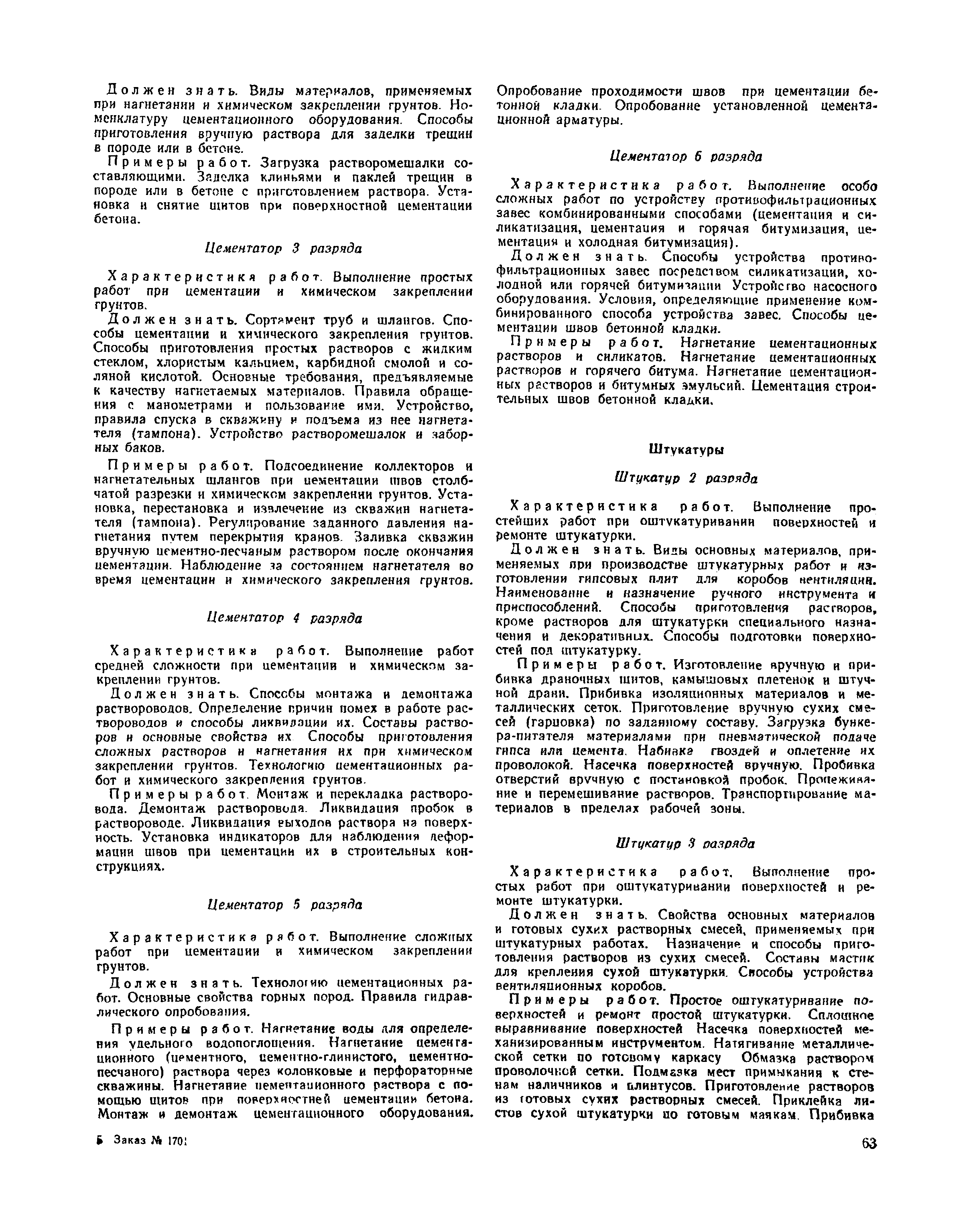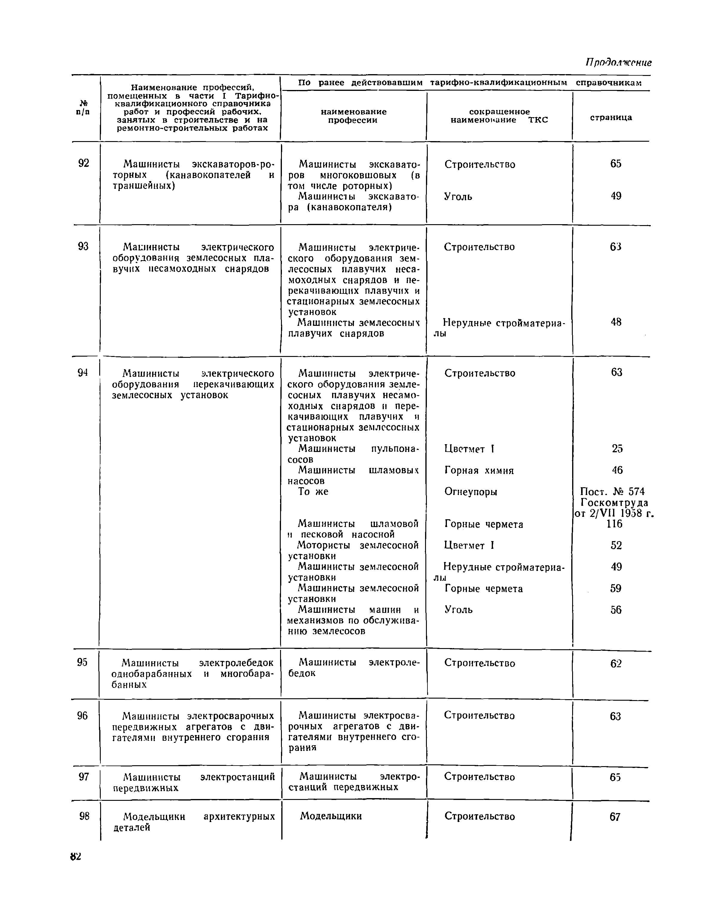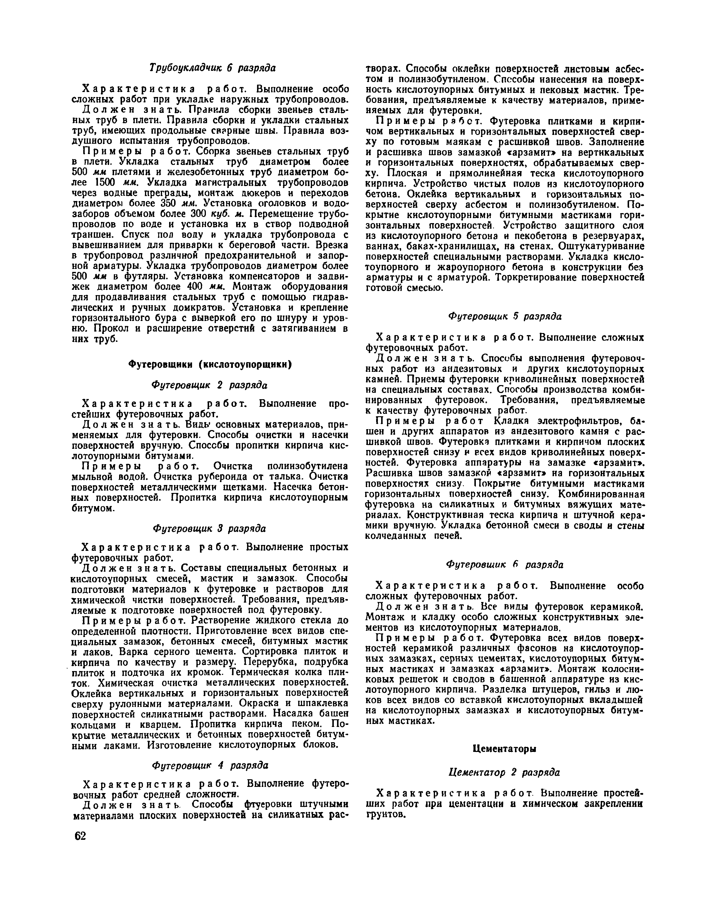 Тарифно-квалификационный справочник работ и профессий рабочих, занятых в строительстве и на ремонтно-строительных работах| Статус: | не действует | | Название рус.: | Тарифно-квалификационный справочник работ и профессий рабочих, занятых в строительстве и на ремонтно-строительных работах | | Дата добавления в базу: | 01.09.2013 | | Дата актуализации: | 01.01.2021 | | Область применения: | Единый тарифно-квалификационный справочник работ и профессий рабочих (ЕТКС) обязателен для применения на предприятиях и в организациях всех отраслей народного хозяйства СССР. Единый тарифно-квалификационный справочник содержит тарифно-квалификационные характеристики профессий рабочих (за исключением профессий рабочих, труд которых оплачивается исходя из месячных окладов), сгруппированные в разделы по производствам и видам работ, независимо от того, на предприятиях (в организациях) какого министерства (ведомства) эти производства или виды работ имеются. | | Оглавление: | Общие положения Единого тарифно-квалификационного справочника работ и профессий рабочих народного хозяйства СССР Введение Часть 1. Основные профессии рабочих, занятых на строительных, монтажных, ремонтно-строительных работах и в подсобных производствах (раздел «Строительные, монтажные и ремонтно-строительные работы») Единого тарифно-квалификационного справочника работ и профессий рабочих народного хозяйства СССР) Перечень профессий рабочих, предусмотренных в первой части «Тарифно-квалификационного справочника работ и профессий рабочих, занятых в строительстве и на ремонтно-строительных работах, с указанием их наименований по ранее действовавшим ТКС Перечень аннулированных профессий рабочих, ранее предусмотренных в «Едином тарифно-квалификационном справочнике работ и профессий рабочих, занятых в строительстве и на ремонтно-строительных работах» 1960 г. (с учетом дополнений и изменений) Перечень наименований профессий рабочих, исключенных из «Единого тарифно-квалификационного справочника работ и профессий рабочих, занятых в строительстве и на ремонтно-строительных работах» 1960 г., с указанием измененных наименований профессий и разделов «ЕТКС работ и профессий рабочих народного хозяйства СССР», в которые они включены Алфавитный указатель Часть II. Основные профессии рабочих, занятых на горнокапитальных работах (извлечение из раздела «Горные, горнокапитальные работы, обогащение, агломерация, брикетирование «Единого тарифно-квалификационного справочника работ и профессий рабочих народного хозяйства СССР») Алфавитный указатель Часть III. Профессии рабочих, занятых на строительных, монтажных, горнокапитальных, ремонтно-строительных работах и в подсобных производствах, тарификация которых, производится в соответствии с квалификационными характеристиками, предусмотренными для аналогичных работ промышленности, на транспорте и в связи (извлечение из соответствующих разделов «Единого тарифно-квалификационного справочника работ и профессий рабочих народного хозяйства СССР») Алфавитный указатель | | Утверждён: | 19.09.1968 Государственный комитет Совета Министров СССР по вопросам труда и заработной платы (300/27)