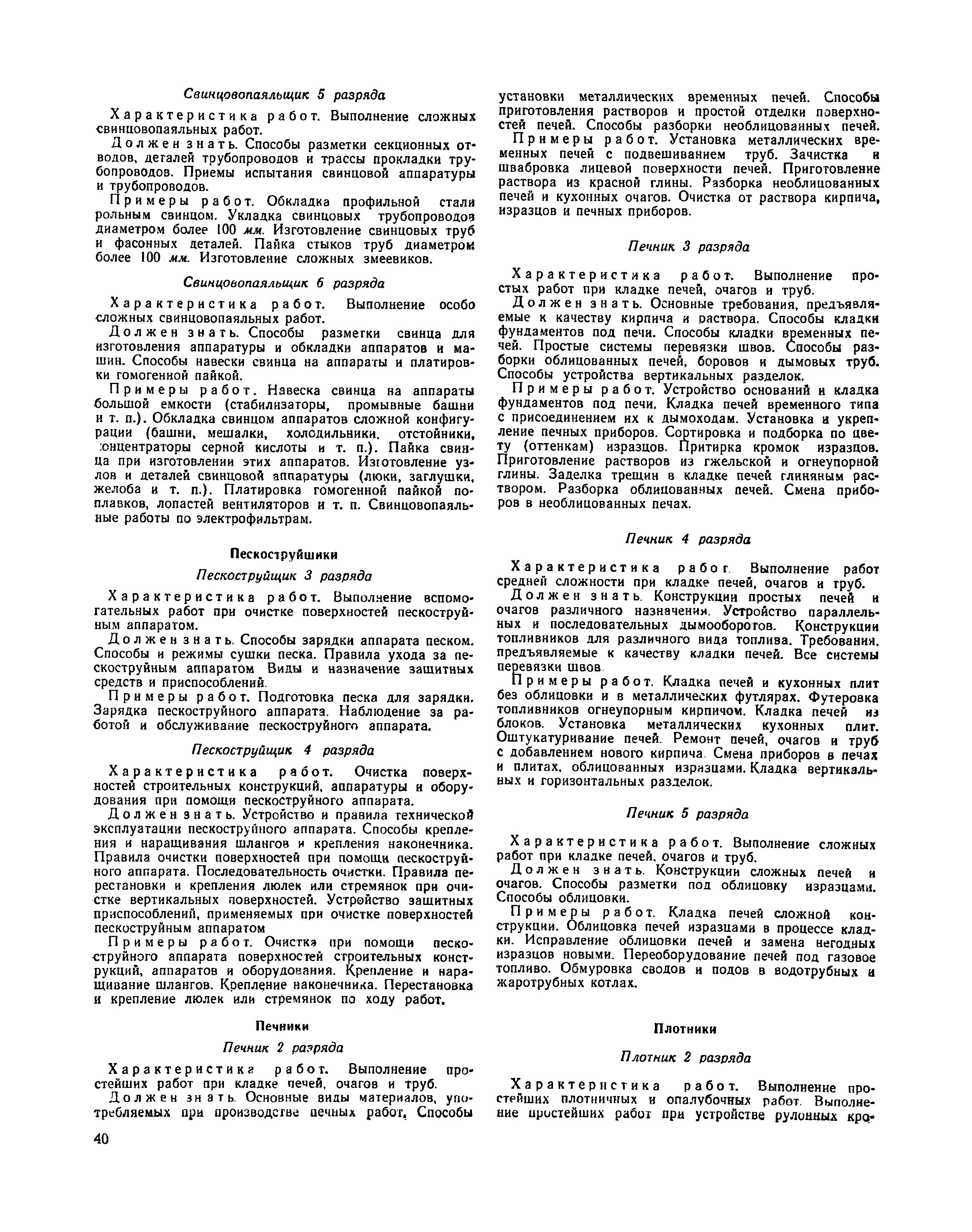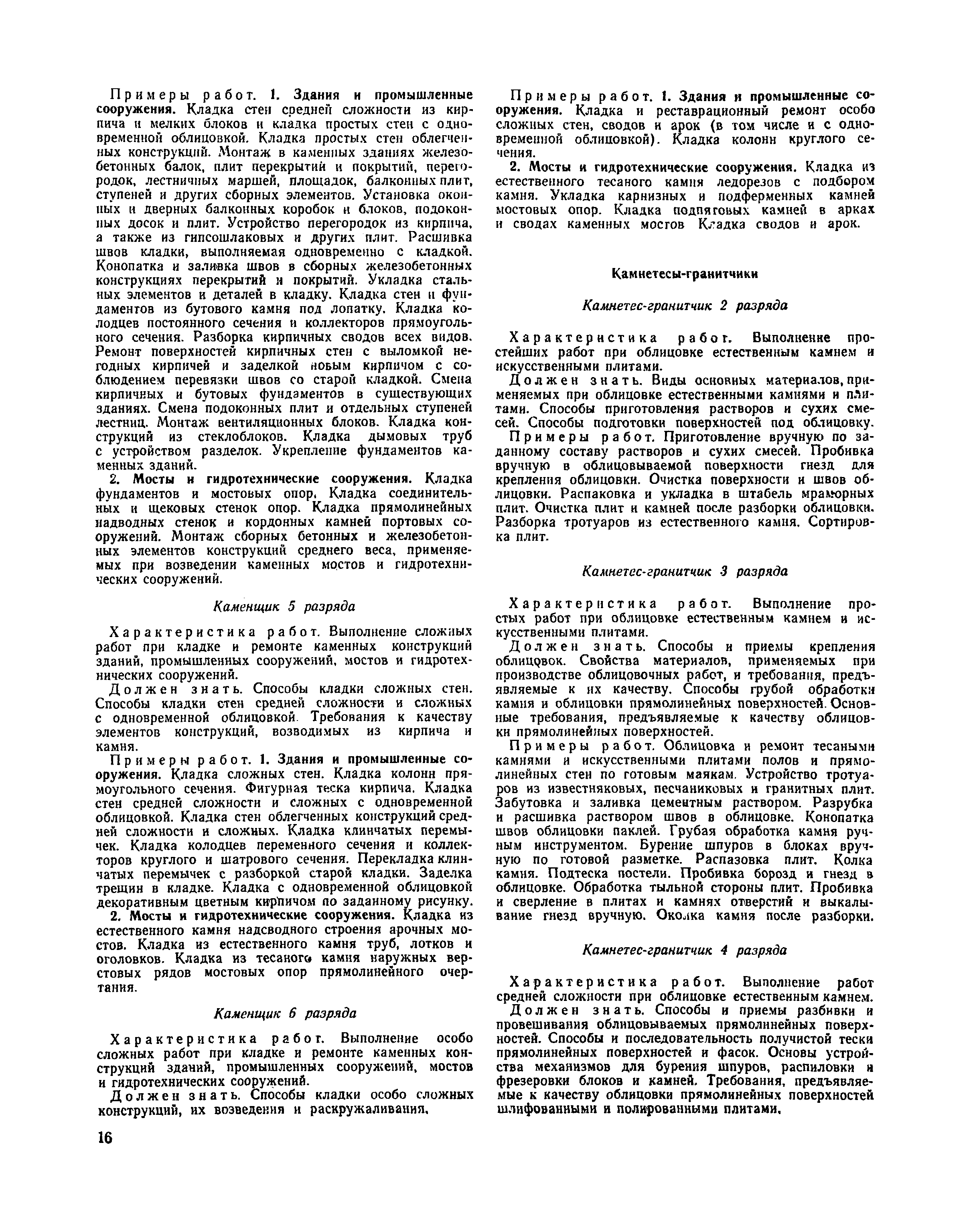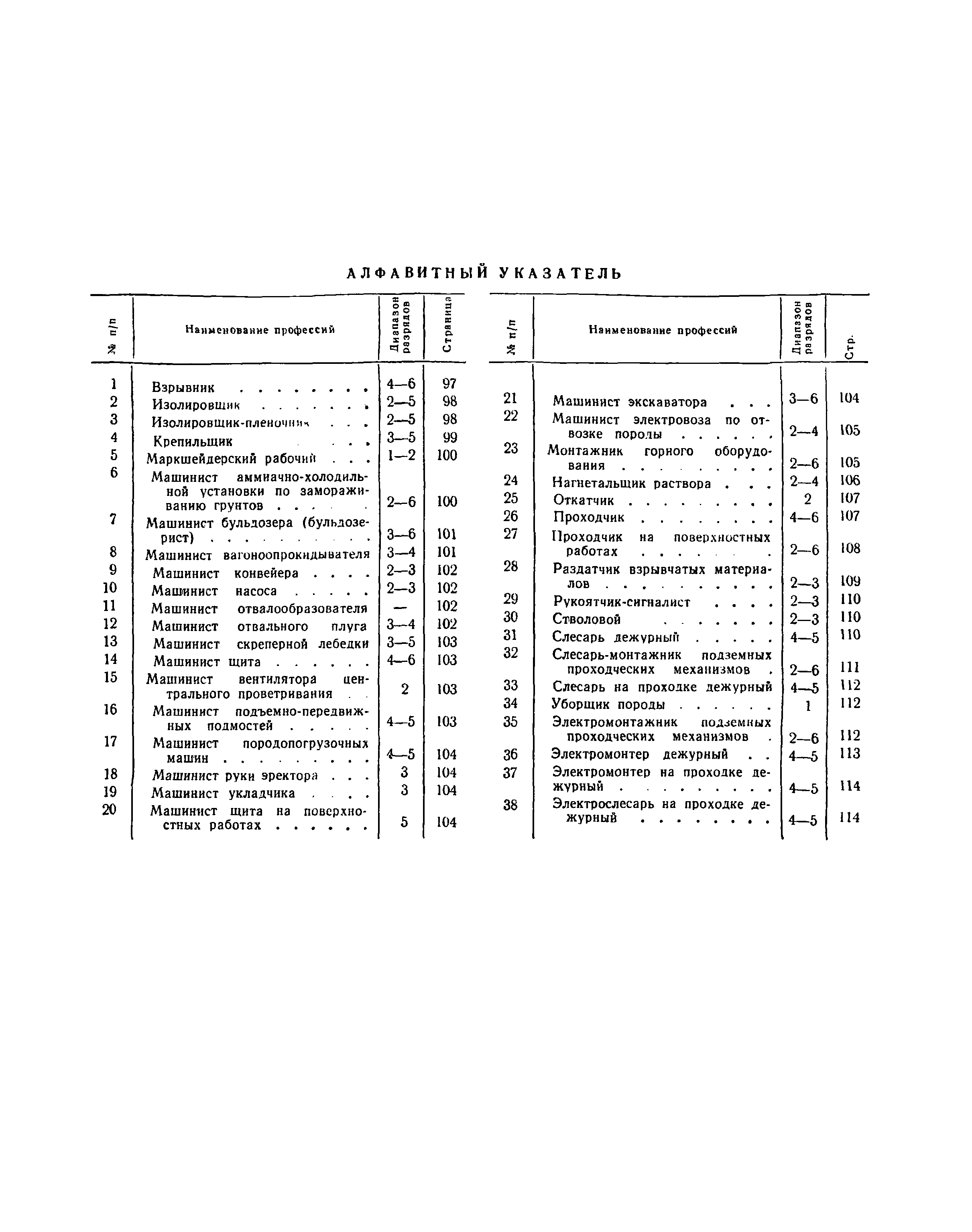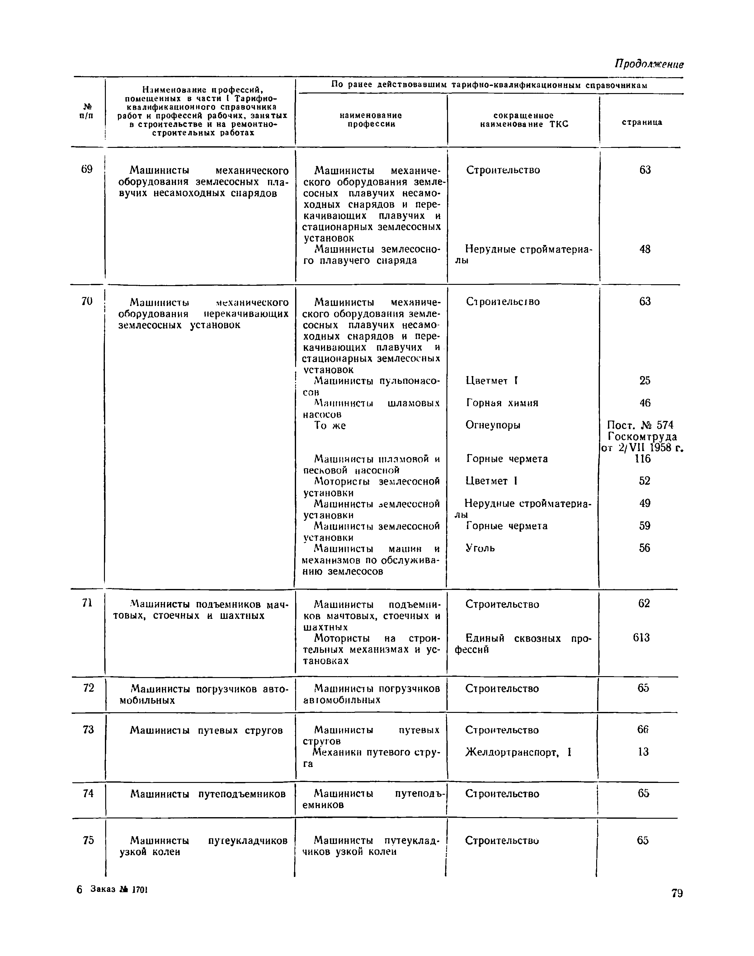 Тарифно-квалификационный справочник работ и профессий рабочих, занятых в строительстве и на ремонтно-строительных работах| Статус: | не действует | | Название рус.: | Тарифно-квалификационный справочник работ и профессий рабочих, занятых в строительстве и на ремонтно-строительных работах | | Дата добавления в базу: | 01.09.2013 | | Дата актуализации: | 01.01.2021 | | Область применения: | Единый тарифно-квалификационный справочник работ и профессий рабочих (ЕТКС) обязателен для применения на предприятиях и в организациях всех отраслей народного хозяйства СССР. Единый тарифно-квалификационный справочник содержит тарифно-квалификационные характеристики профессий рабочих (за исключением профессий рабочих, труд которых оплачивается исходя из месячных окладов), сгруппированные в разделы по производствам и видам работ, независимо от того, на предприятиях (в организациях) какого министерства (ведомства) эти производства или виды работ имеются. | | Оглавление: | Общие положения Единого тарифно-квалификационного справочника работ и профессий рабочих народного хозяйства СССР Введение Часть 1. Основные профессии рабочих, занятых на строительных, монтажных, ремонтно-строительных работах и в подсобных производствах (раздел «Строительные, монтажные и ремонтно-строительные работы») Единого тарифно-квалификационного справочника работ и профессий рабочих народного хозяйства СССР) Перечень профессий рабочих, предусмотренных в первой части «Тарифно-квалификационного справочника работ и профессий рабочих, занятых в строительстве и на ремонтно-строительных работах, с указанием их наименований по ранее действовавшим ТКС Перечень аннулированных профессий рабочих, ранее предусмотренных в «Едином тарифно-квалификационном справочнике работ и профессий рабочих, занятых в строительстве и на ремонтно-строительных работах» 1960 г. (с учетом дополнений и изменений) Перечень наименований профессий рабочих, исключенных из «Единого тарифно-квалификационного справочника работ и профессий рабочих, занятых в строительстве и на ремонтно-строительных работах» 1960 г., с указанием измененных наименований профессий и разделов «ЕТКС работ и профессий рабочих народного хозяйства СССР», в которые они включены Алфавитный указатель Часть II. Основные профессии рабочих, занятых на горнокапитальных работах (извлечение из раздела «Горные, горнокапитальные работы, обогащение, агломерация, брикетирование «Единого тарифно-квалификационного справочника работ и профессий рабочих народного хозяйства СССР») Алфавитный указатель Часть III. Профессии рабочих, занятых на строительных, монтажных, горнокапитальных, ремонтно-строительных работах и в подсобных производствах, тарификация которых, производится в соответствии с квалификационными характеристиками, предусмотренными для аналогичных работ промышленности, на транспорте и в связи (извлечение из соответствующих разделов «Единого тарифно-квалификационного справочника работ и профессий рабочих народного хозяйства СССР») Алфавитный указатель | | Утверждён: | 19.09.1968 Государственный комитет Совета Министров СССР по вопросам труда и заработной платы (300/27)