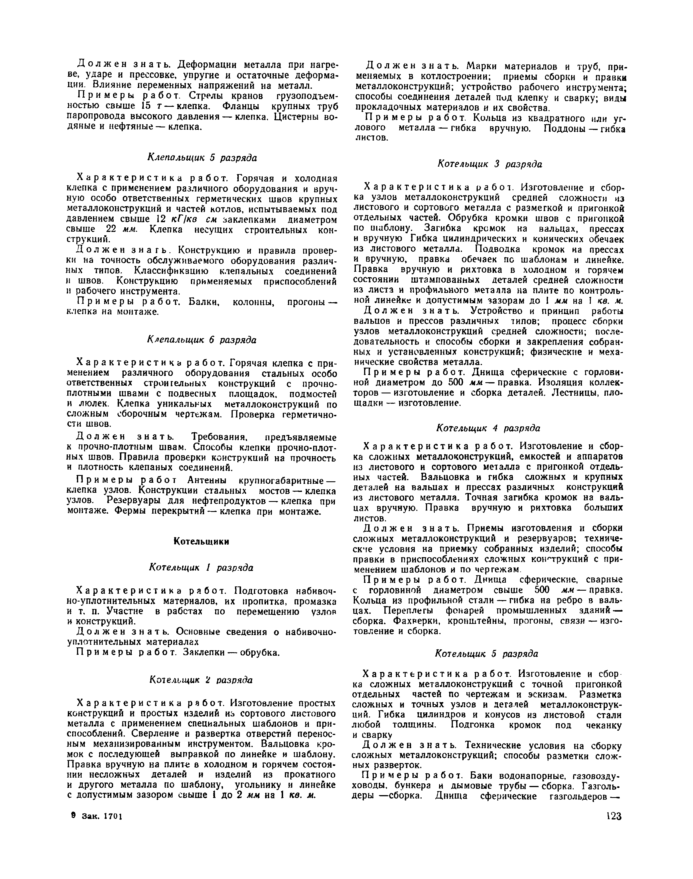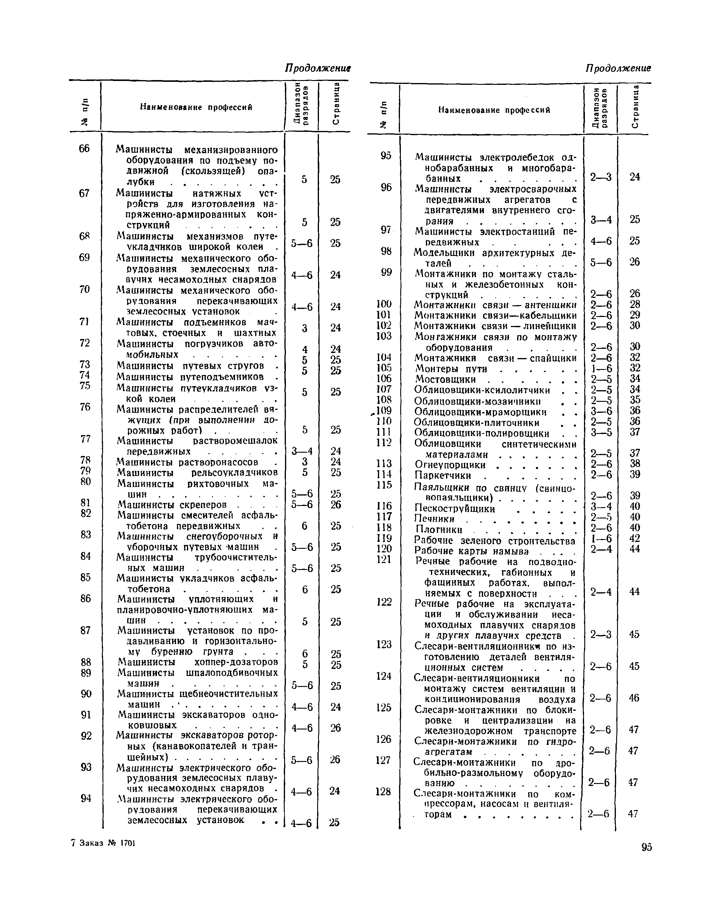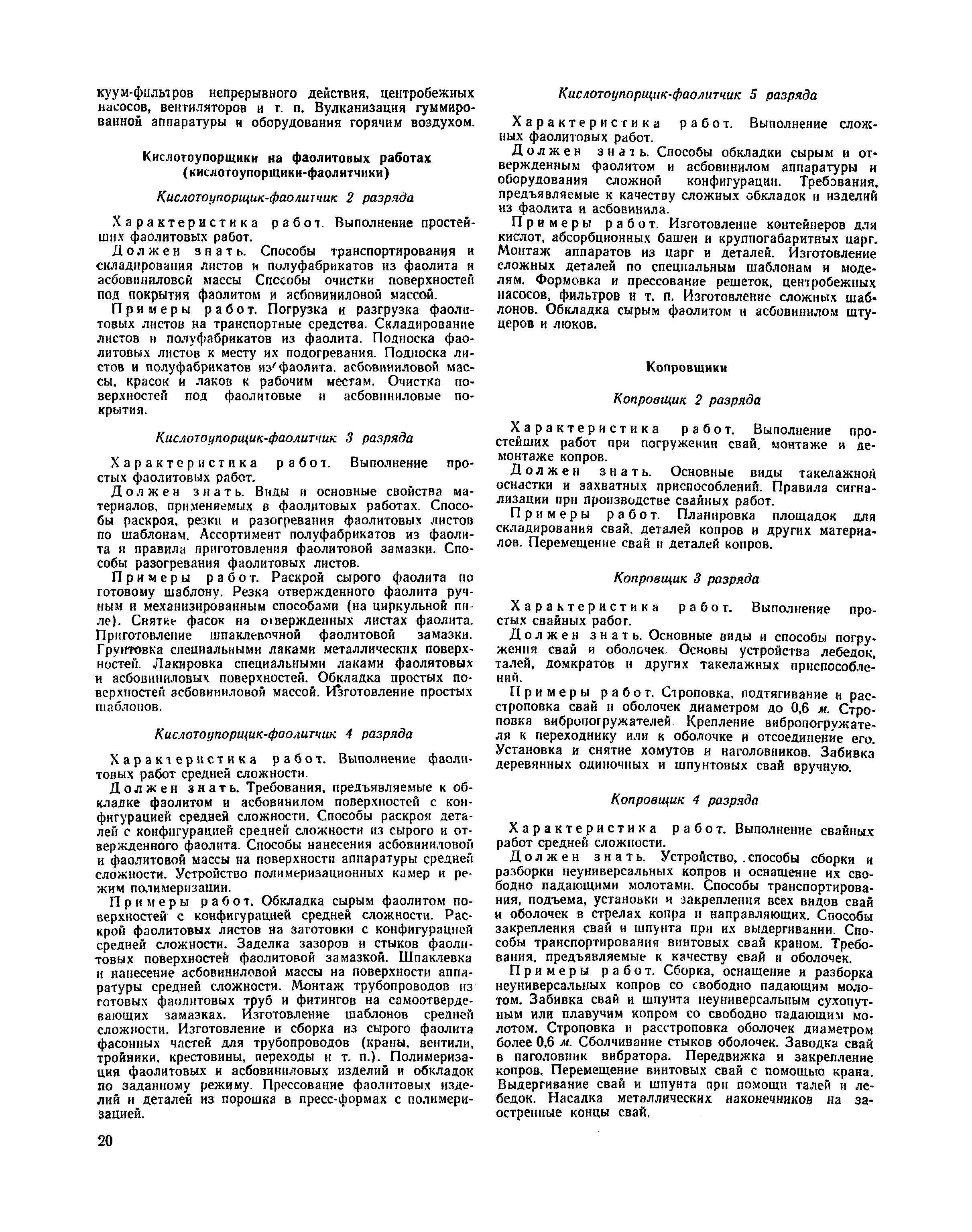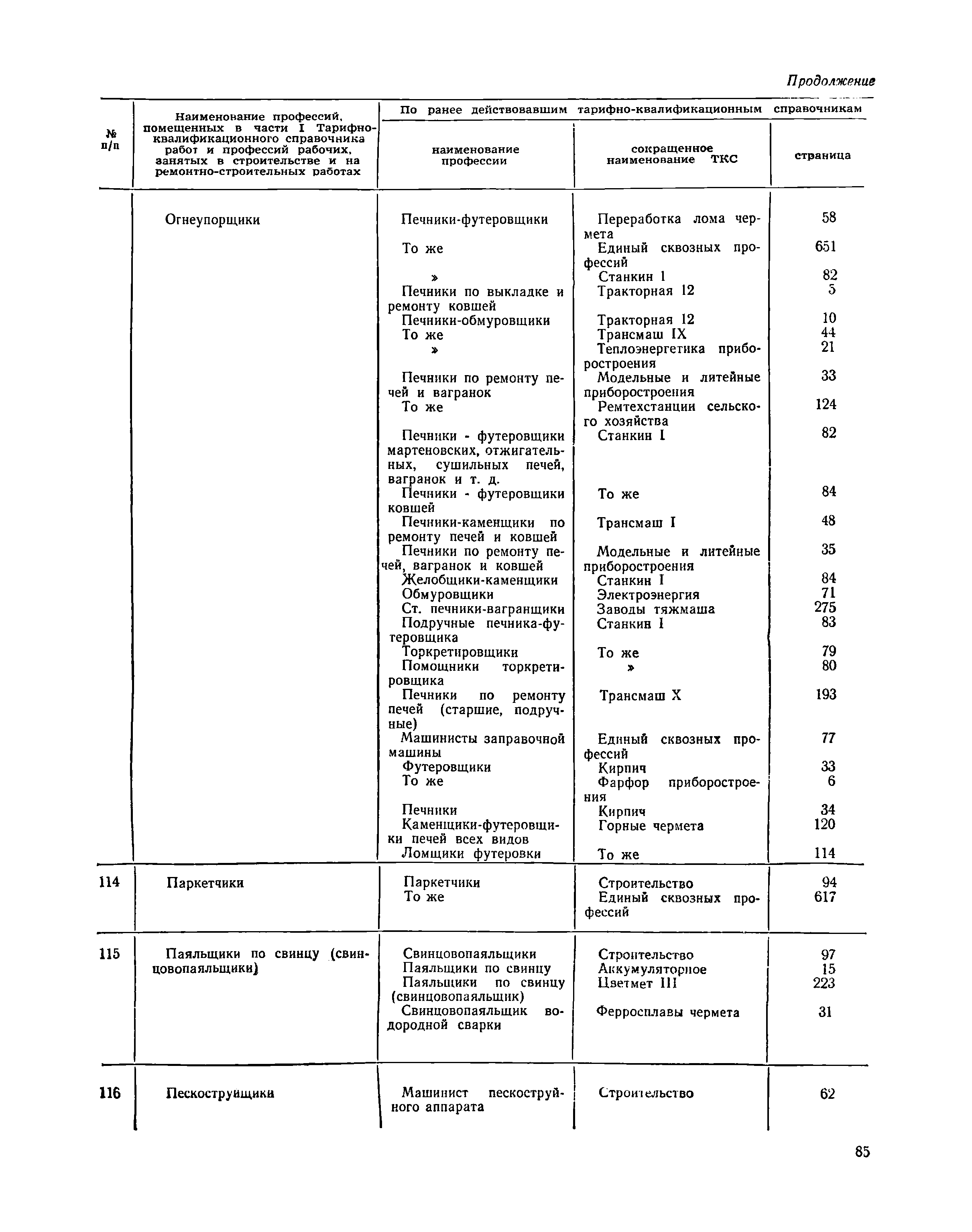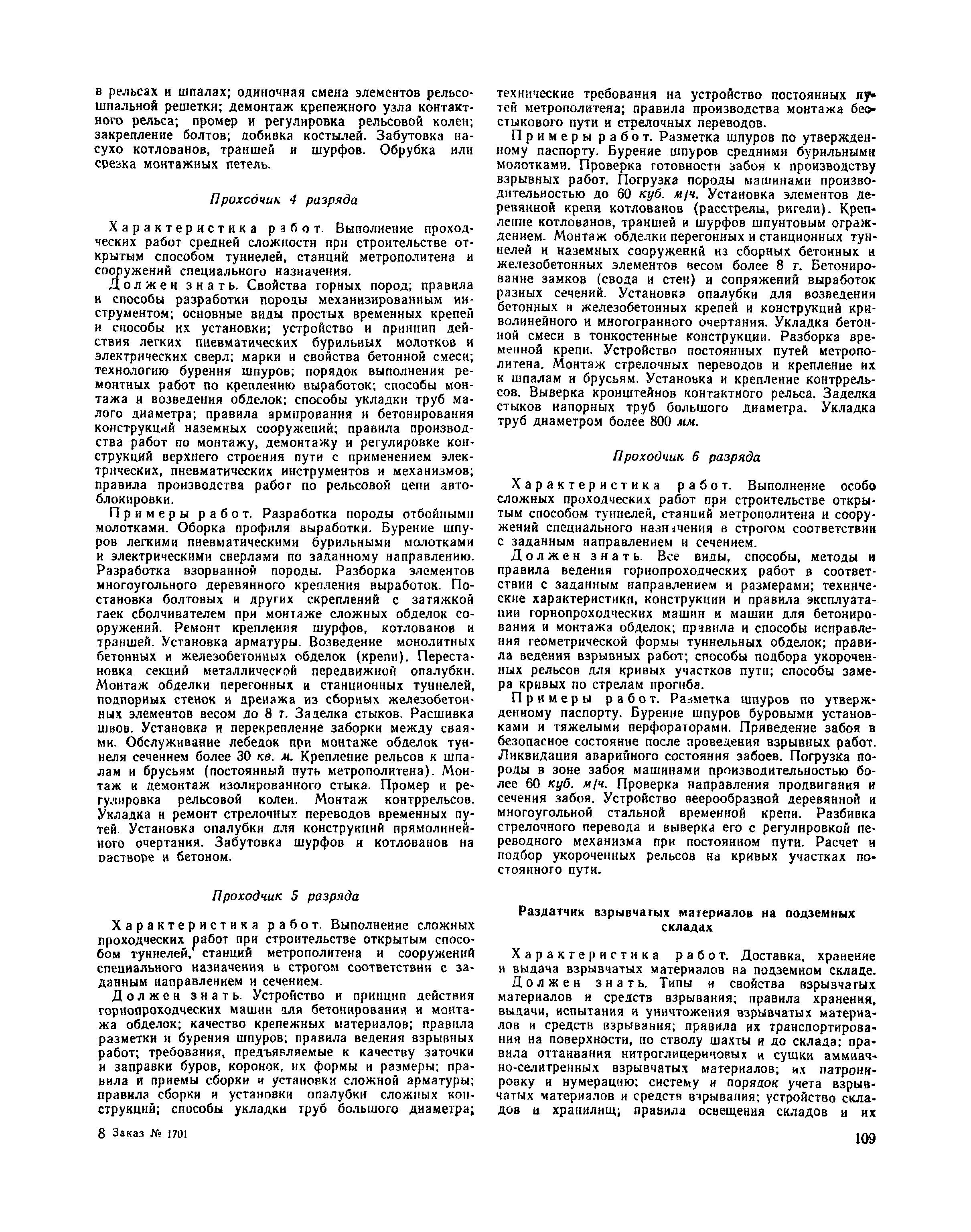 Тарифно-квалификационный справочник работ и профессий рабочих, занятых в строительстве и на ремонтно-строительных работах| Статус: | не действует | | Название рус.: | Тарифно-квалификационный справочник работ и профессий рабочих, занятых в строительстве и на ремонтно-строительных работах | | Дата добавления в базу: | 01.09.2013 | | Дата актуализации: | 01.01.2021 | | Область применения: | Единый тарифно-квалификационный справочник работ и профессий рабочих (ЕТКС) обязателен для применения на предприятиях и в организациях всех отраслей народного хозяйства СССР. Единый тарифно-квалификационный справочник содержит тарифно-квалификационные характеристики профессий рабочих (за исключением профессий рабочих, труд которых оплачивается исходя из месячных окладов), сгруппированные в разделы по производствам и видам работ, независимо от того, на предприятиях (в организациях) какого министерства (ведомства) эти производства или виды работ имеются. | | Оглавление: | Общие положения Единого тарифно-квалификационного справочника работ и профессий рабочих народного хозяйства СССР Введение Часть 1. Основные профессии рабочих, занятых на строительных, монтажных, ремонтно-строительных работах и в подсобных производствах (раздел «Строительные, монтажные и ремонтно-строительные работы») Единого тарифно-квалификационного справочника работ и профессий рабочих народного хозяйства СССР) Перечень профессий рабочих, предусмотренных в первой части «Тарифно-квалификационного справочника работ и профессий рабочих, занятых в строительстве и на ремонтно-строительных работах, с указанием их наименований по ранее действовавшим ТКС Перечень аннулированных профессий рабочих, ранее предусмотренных в «Едином тарифно-квалификационном справочнике работ и профессий рабочих, занятых в строительстве и на ремонтно-строительных работах» 1960 г. (с учетом дополнений и изменений) Перечень наименований профессий рабочих, исключенных из «Единого тарифно-квалификационного справочника работ и профессий рабочих, занятых в строительстве и на ремонтно-строительных работах» 1960 г., с указанием измененных наименований профессий и разделов «ЕТКС работ и профессий рабочих народного хозяйства СССР», в которые они включены Алфавитный указатель Часть II. Основные профессии рабочих, занятых на горнокапитальных работах (извлечение из раздела «Горные, горнокапитальные работы, обогащение, агломерация, брикетирование «Единого тарифно-квалификационного справочника работ и профессий рабочих народного хозяйства СССР») Алфавитный указатель Часть III. Профессии рабочих, занятых на строительных, монтажных, горнокапитальных, ремонтно-строительных работах и в подсобных производствах, тарификация которых, производится в соответствии с квалификационными характеристиками, предусмотренными для аналогичных работ промышленности, на транспорте и в связи (извлечение из соответствующих разделов «Единого тарифно-квалификационного справочника работ и профессий рабочих народного хозяйства СССР») Алфавитный указатель | | Утверждён: | 19.09.1968 Государственный комитет Совета Министров СССР по вопросам труда и заработной платы (300/27)