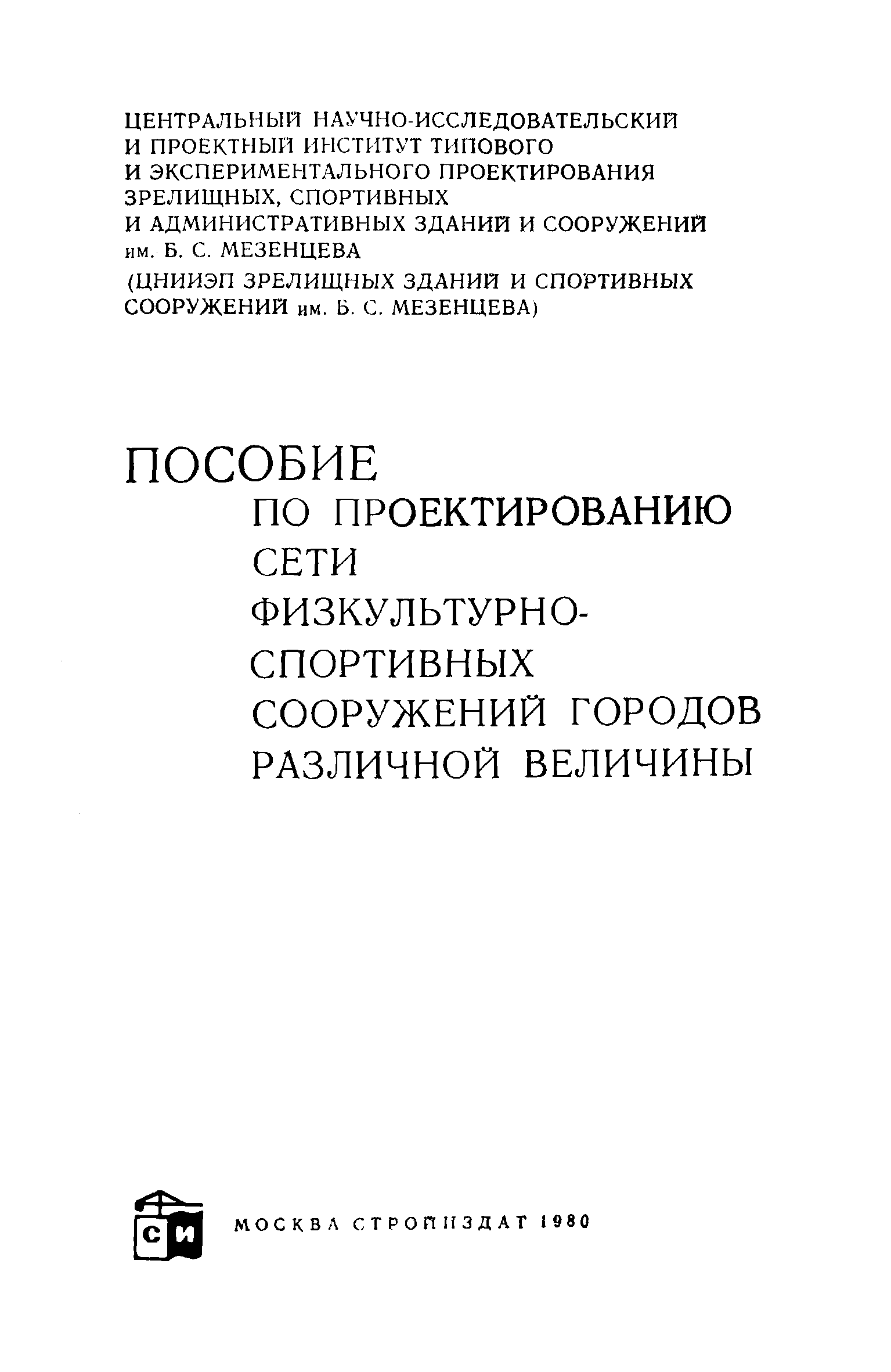 | Название рус.: | Пособие по проектированию сети физкультурно-спортивных сооружений городов различной величины |