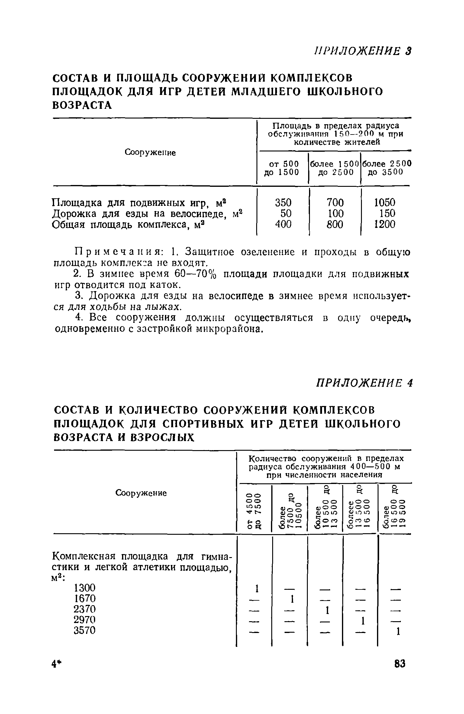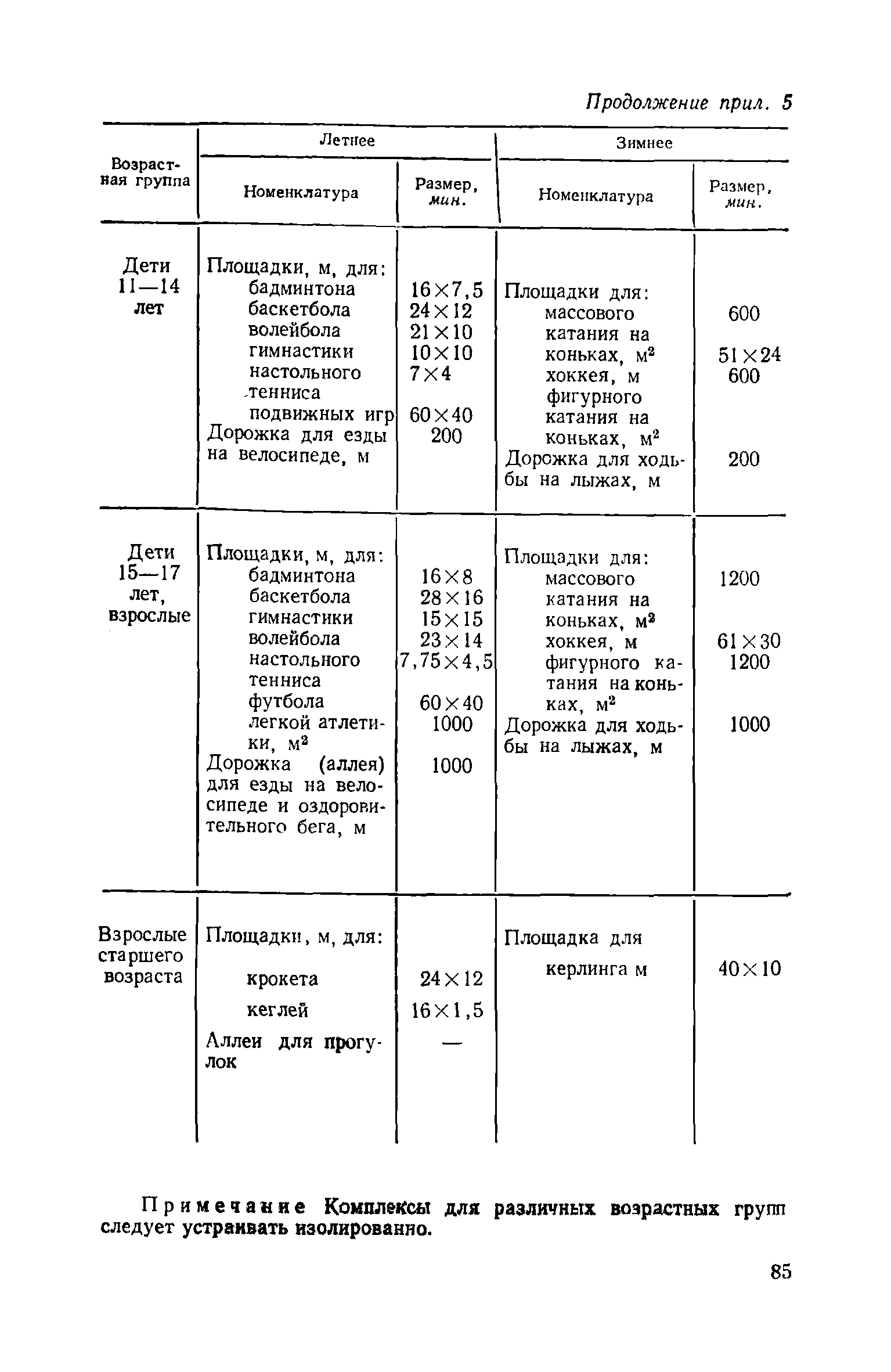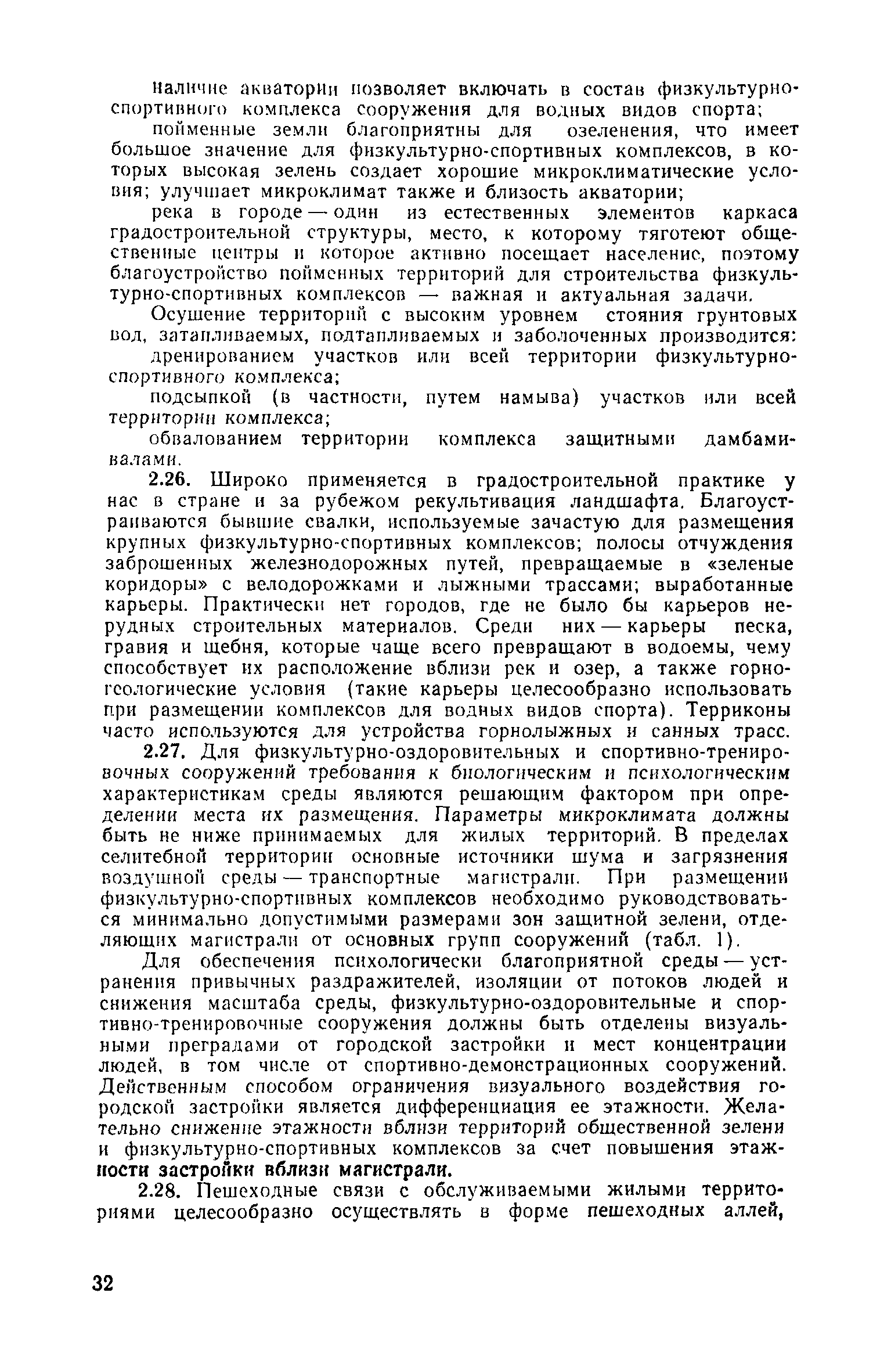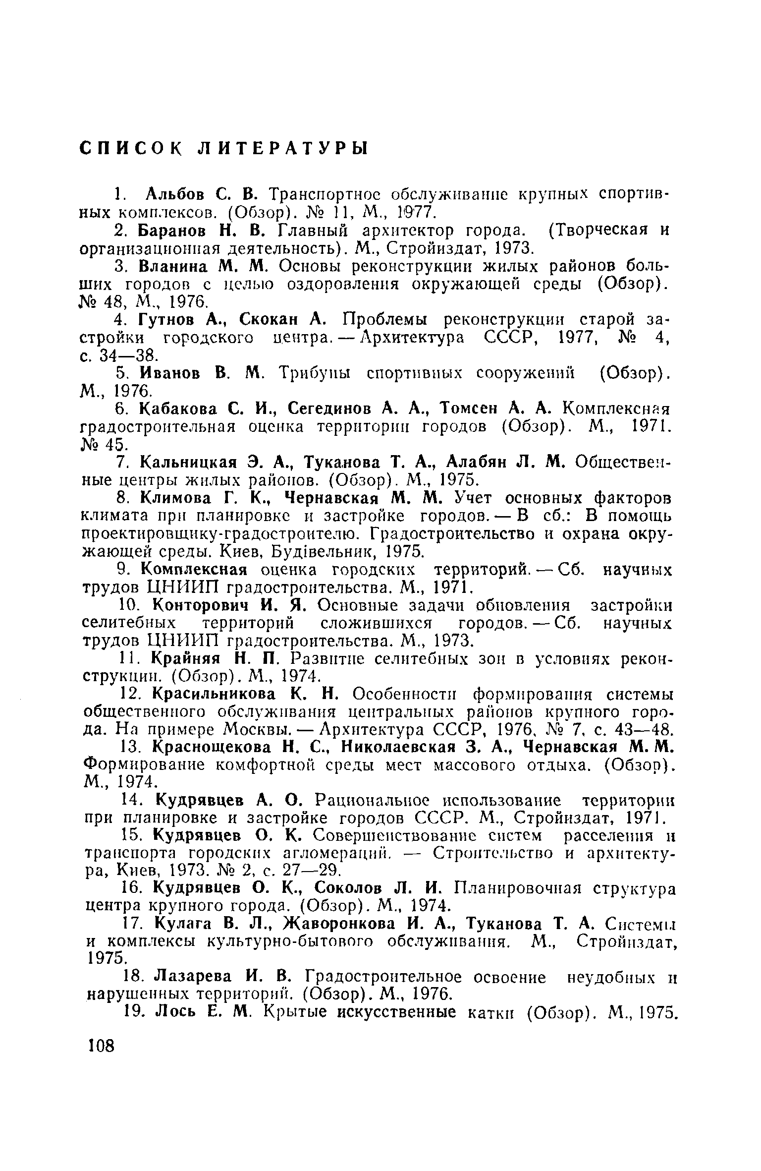 | Оглавление: | Предисловие 1. Общие положения Состав сети физкультурно-спортивных сооружений города Организация физкультурно-спортивной работы, строительства н эксплуатации сооружений Теоретические основы построения сети Распределение физкультурно-спортивных сооружений по основным функциональным зонам города 2. Принципы организации сети физкультурно-спортивных сооружений селитебной зоны города Принципиальная структурная модель сети Преобразования принципиальной структурной модели сети в зависимости от величины города и его положения в системе группового расселения Кооперированные сети физкультурно-спортивных сооружений с другими учреждениями общественного обслуживания Принципы размещения физкультурно-спортивных комплексов и требования к их участкам Реконструкции существующей сети Развитие сети на перспективу Художественно-образные характеристики системы физкультурно-спортивных сооружений Методика проектирования сети 3. Особенности проектирования сети физкультурно-спортивных сооружений в городах различной величины Малые города Средние. Большие и крупные города Крупнейшие города Приложение 1. Состав и площадь сооружений комплексов площадок для игр детей дошкольного возраста Приложение 2. Примерное оборудование комплексов площадок для игр детей дошкольного возраста - Приложение 3. Состав и площадь сооружений комплексов площадок для игр детей младшего школьного возраста Приложение 4. Состав и количество сооружений комплексов площадок для спортивных игр детей школьного возраста и взрослых Приложение 5. Примерное оборудование комплексов площадок для игр детей младшего школьного возраста и для спортивных игр детей школьного возраста и взрослых Приложение 6. Состав и количество сооружений зон спортивных сооружений общественных центров жилых районов Приложение 7. Состав и количество сооружений спортивных центров планировочных районов и зон физкультурных сооружений парков культуры и отдыха Приложение 8. Состав и количество сооружений общегородского спортивного центра Приложение 9. Нормы расчета на 1000 жителей Приложение 10. Состав и площадь участков общегородских физкультурно-спортивных сооружений, устраиваемых в зависимости от местных условий Приложение 11. Количество мест для зрителей на трибунах Приложение 12. Состав сооружений физкультурно-спортивных комплексов на 1-ю очередь и расчетный срок Приложение 13. Расчет количества сооружений и размеров земельных участков физкультурно-спортивных комплексов Приложение 14. Рекомендуемый состав сооружений общегородского спортивного центра на первую очередь строительства Приложение 15. Показатели пропускной способности единицы территории открытых плоскостных сооружений Список литературы |