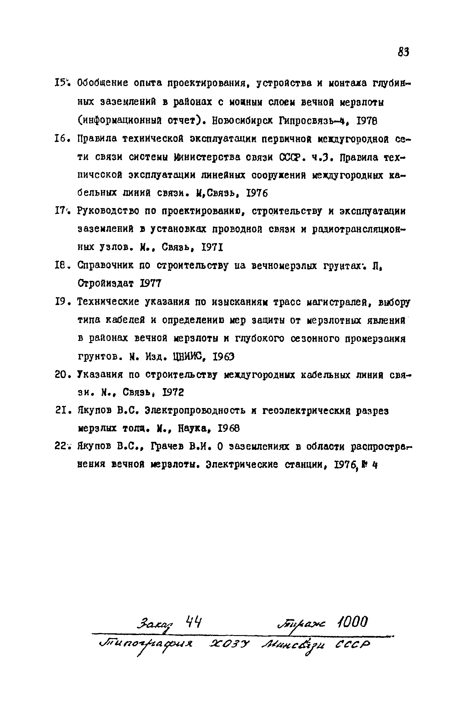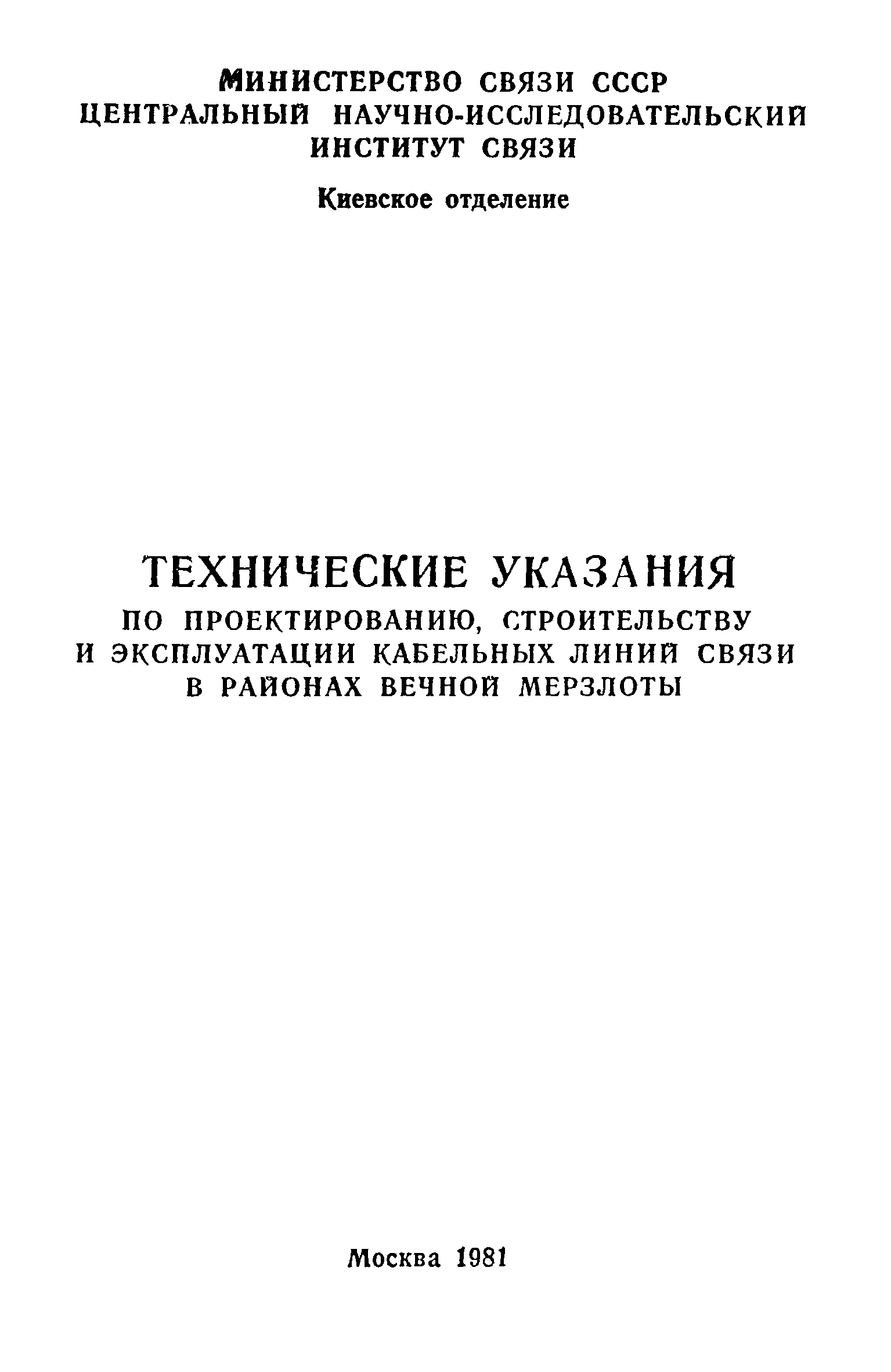 | Название рус.: | Технические указания по проектированию, строительству и эксплуатации кабельных линий связи в районах вечной мерзлоты |