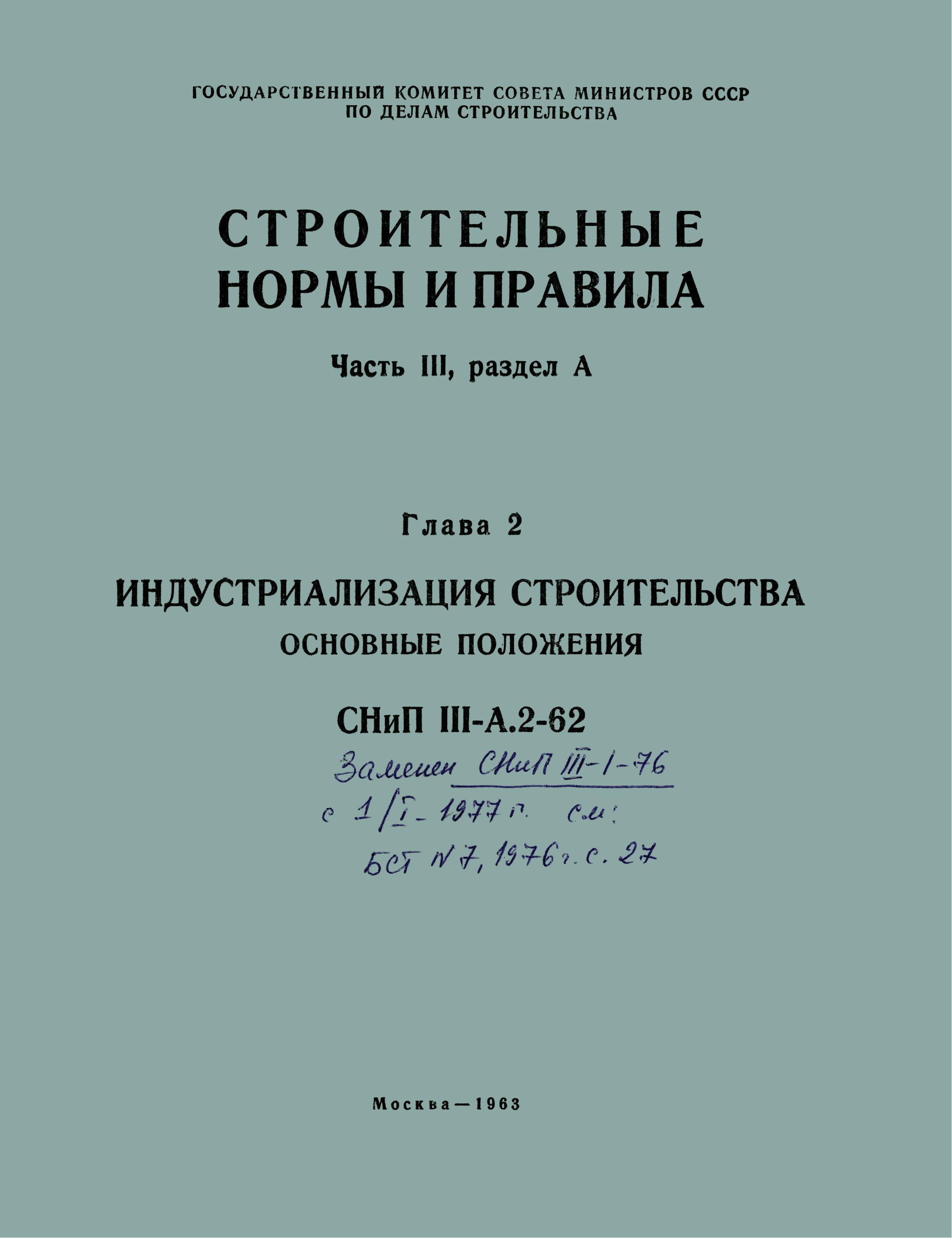 | Утверждён: | 30.12.1962 Госстрой СССР (Государственный комитет Совета Министров СССР по делам строительства) (USSR Gosstroy ) |