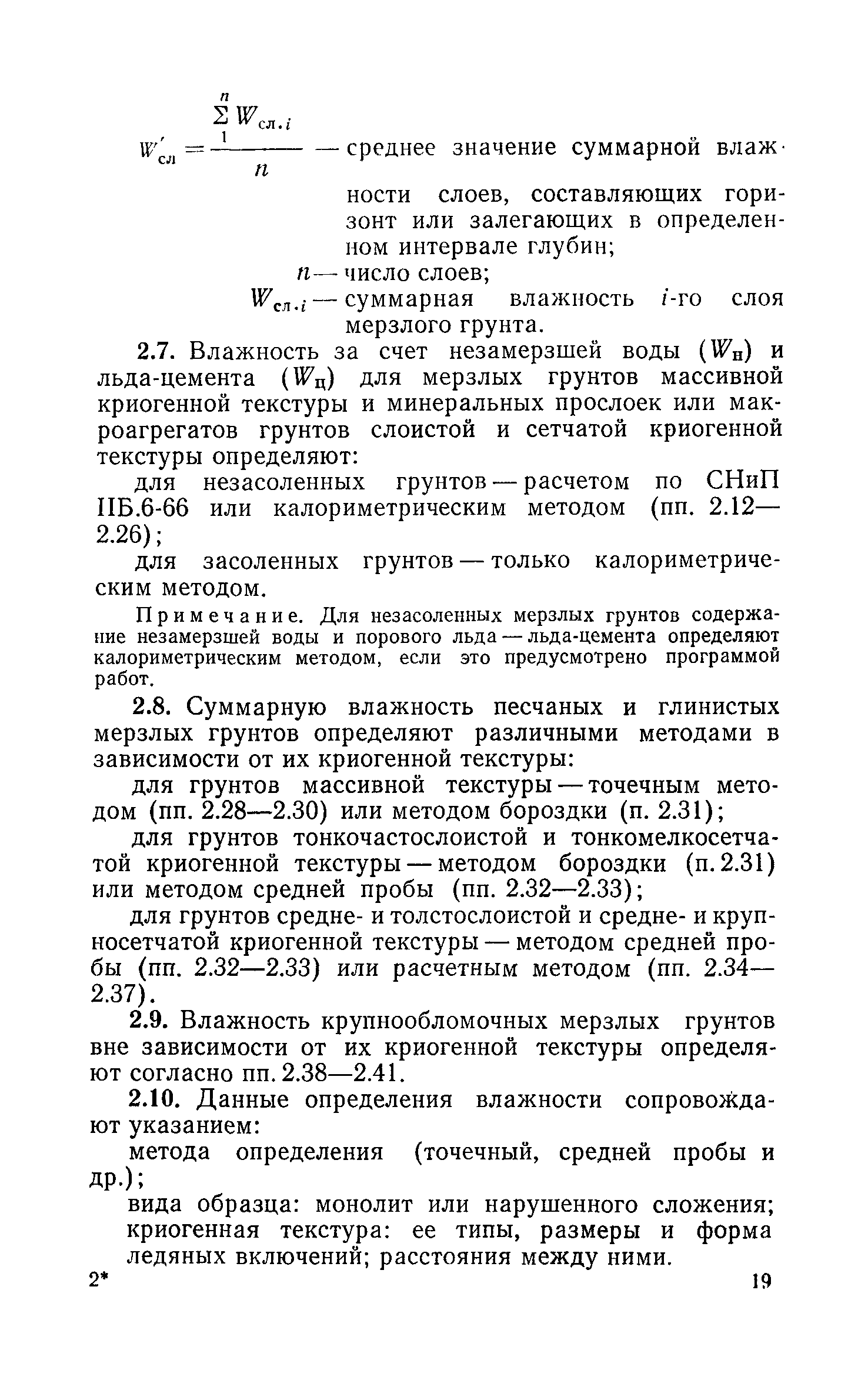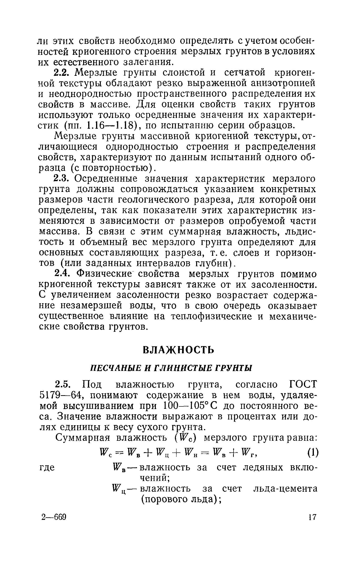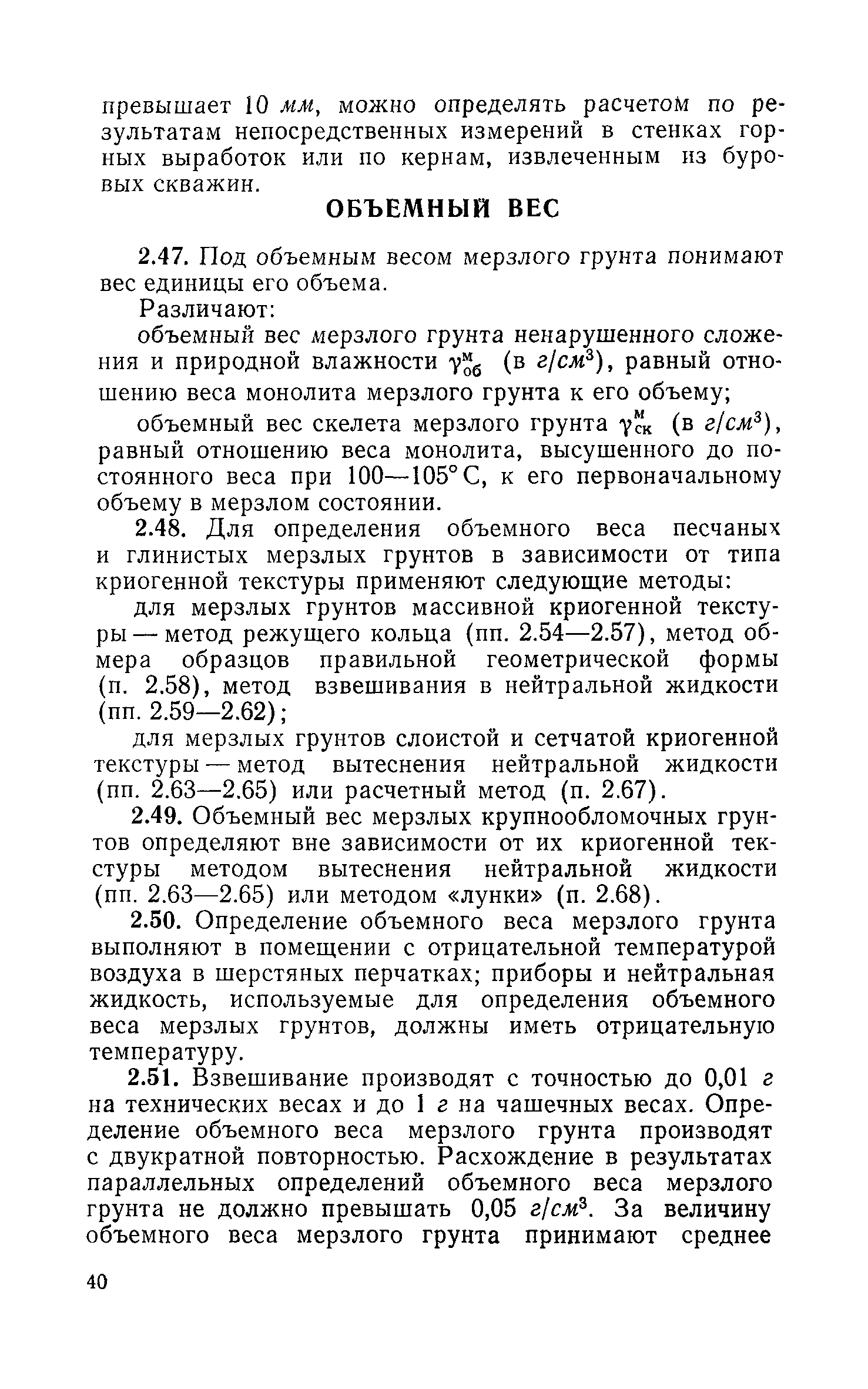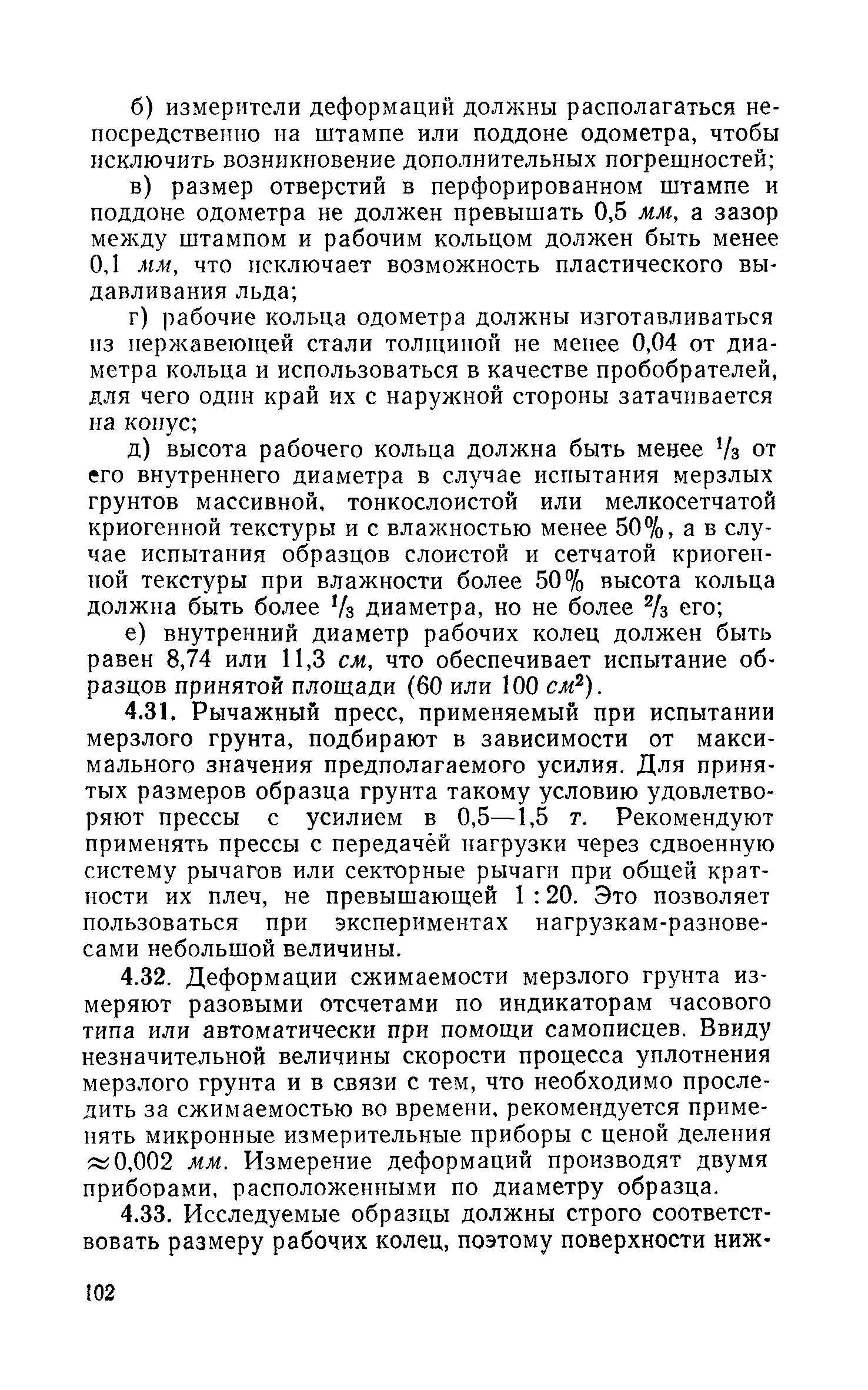| Оглавление: | Предисловие 1. Общие положения Основные понятия и номенклатура мерзлых грунтов Криогенная текстура Отбор, упаковка, транспортирование н хранение образцов мерзлого грунта 2. Физические свойства Влажность Льдистость Объемный вес Засоленность 3. Теплофизические свойства Теплоемкость Теплопроводность и температуропроводность Температура начала замерзания засоленных грунтов Рекомендации по изготовлению основных узлов и деталей приборов для определения теплофизических характеристик 4. Механические свойства Подготовка образцов грунта и требования к их лабораторным испытаниям Сжимаемость мерзлых грунтов Сжимаемость оттаивающего грунта Сопротивление мерзлых грунтов нормальному давлению Сопротивление мерзлых и оттаявших грунтов сдвигу Сопротивление мерзлого грунта сдвигу по боковой поверхности фундамента Касательные силы пучения грунтов Вязкость включений льда |