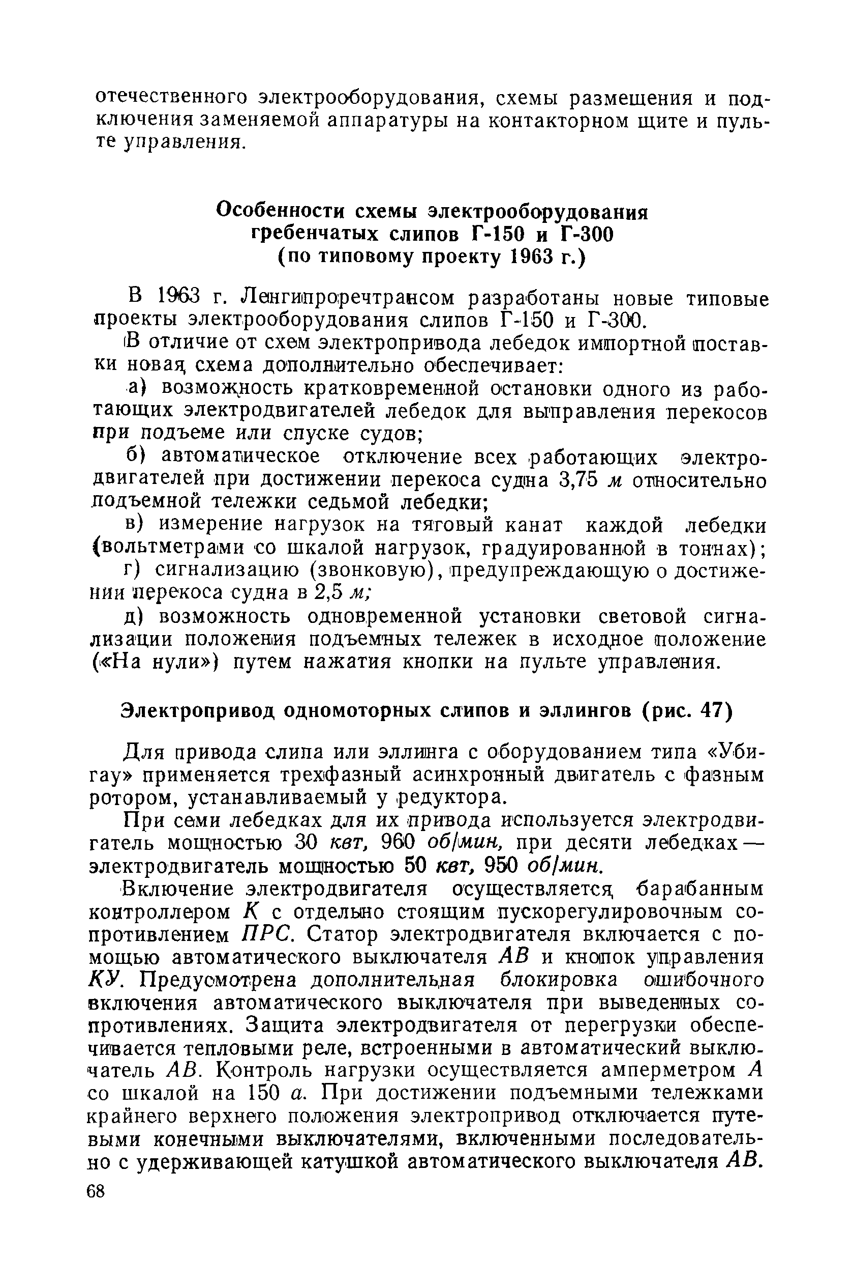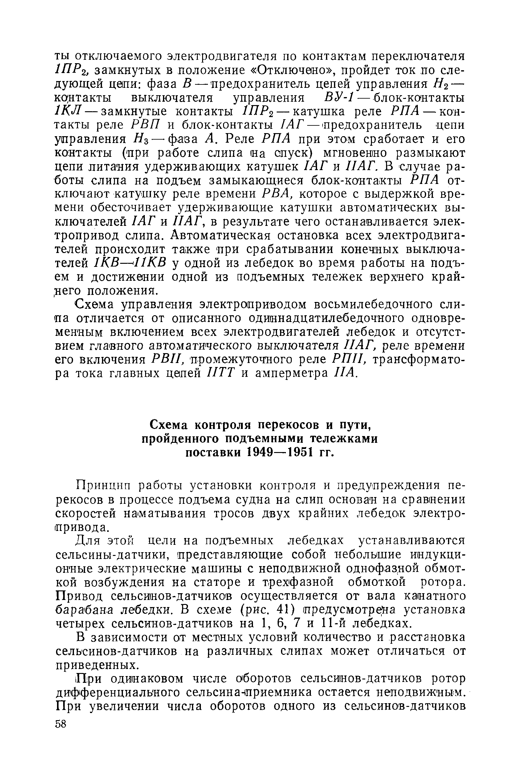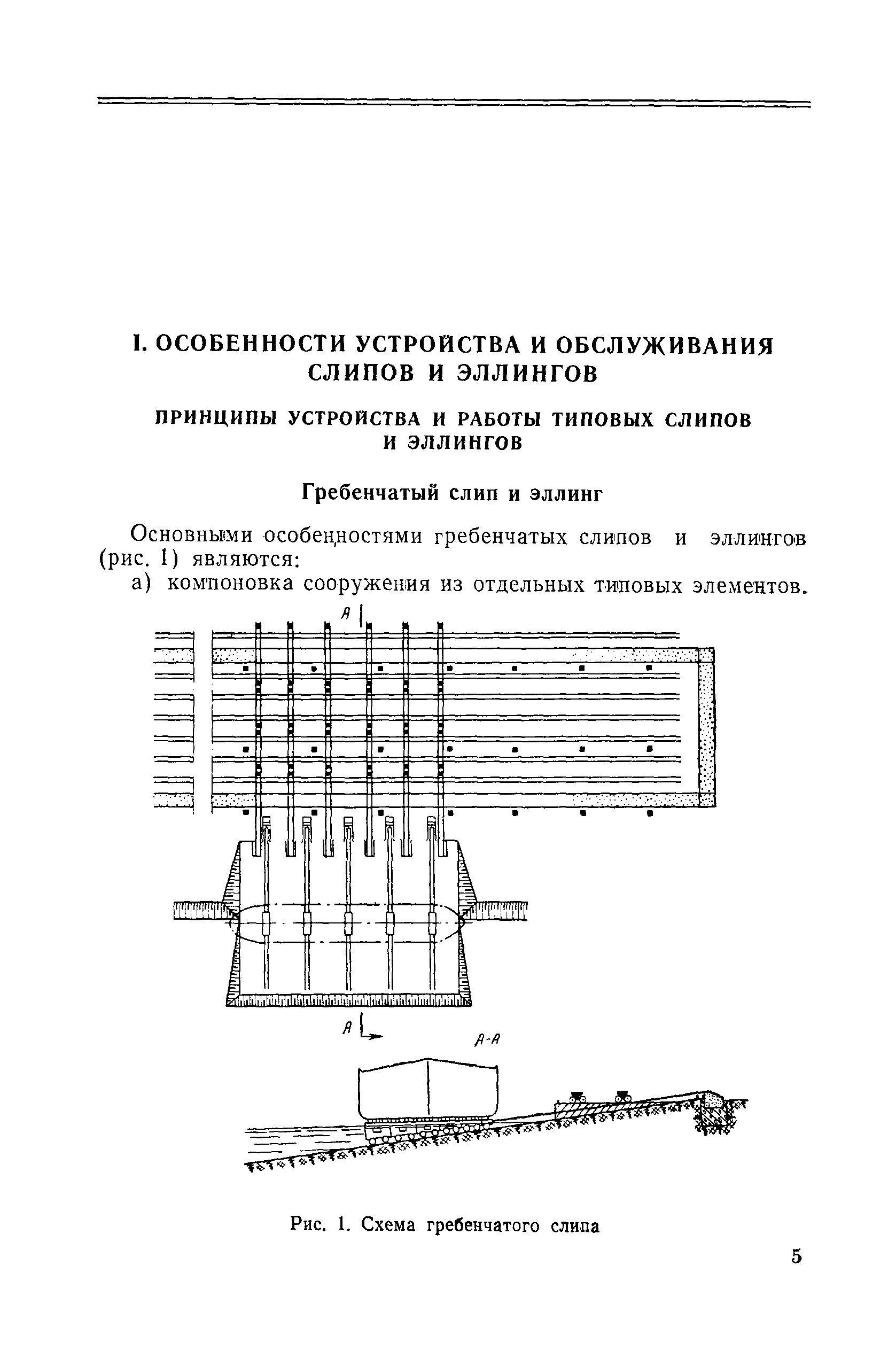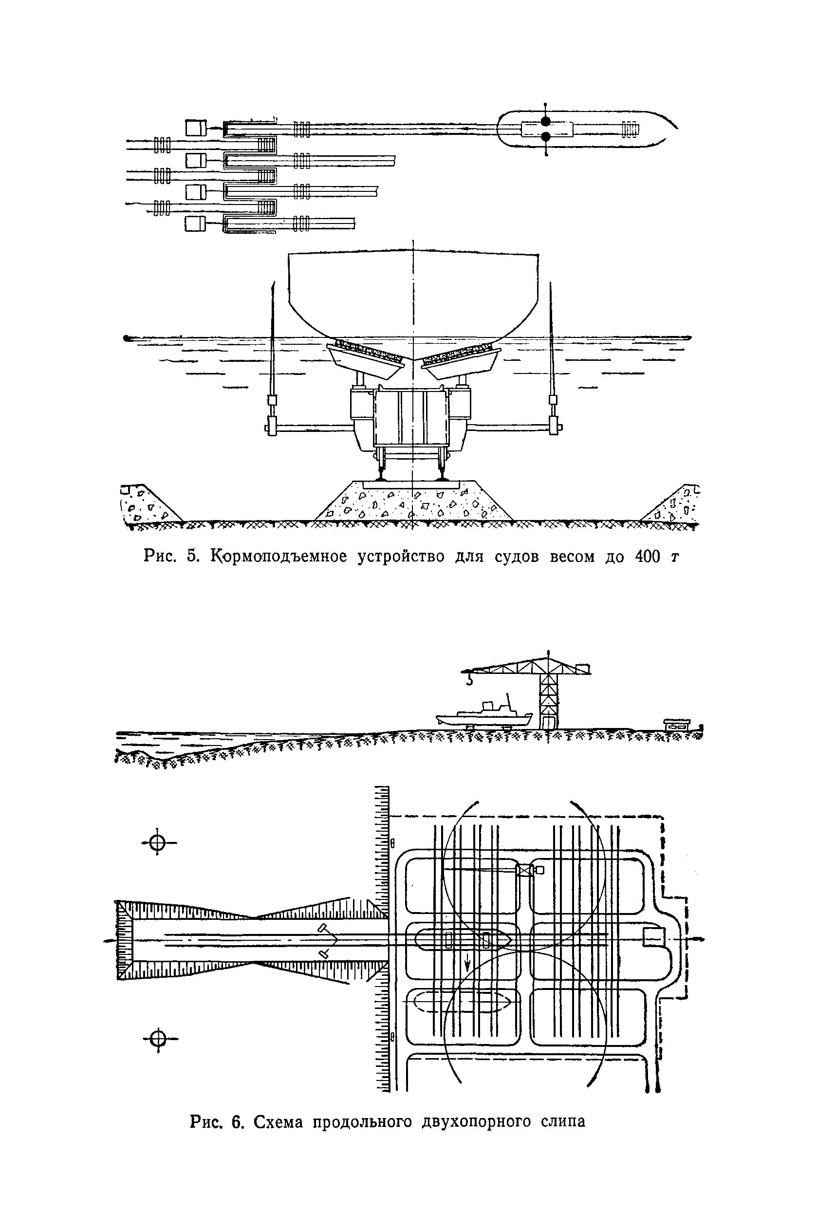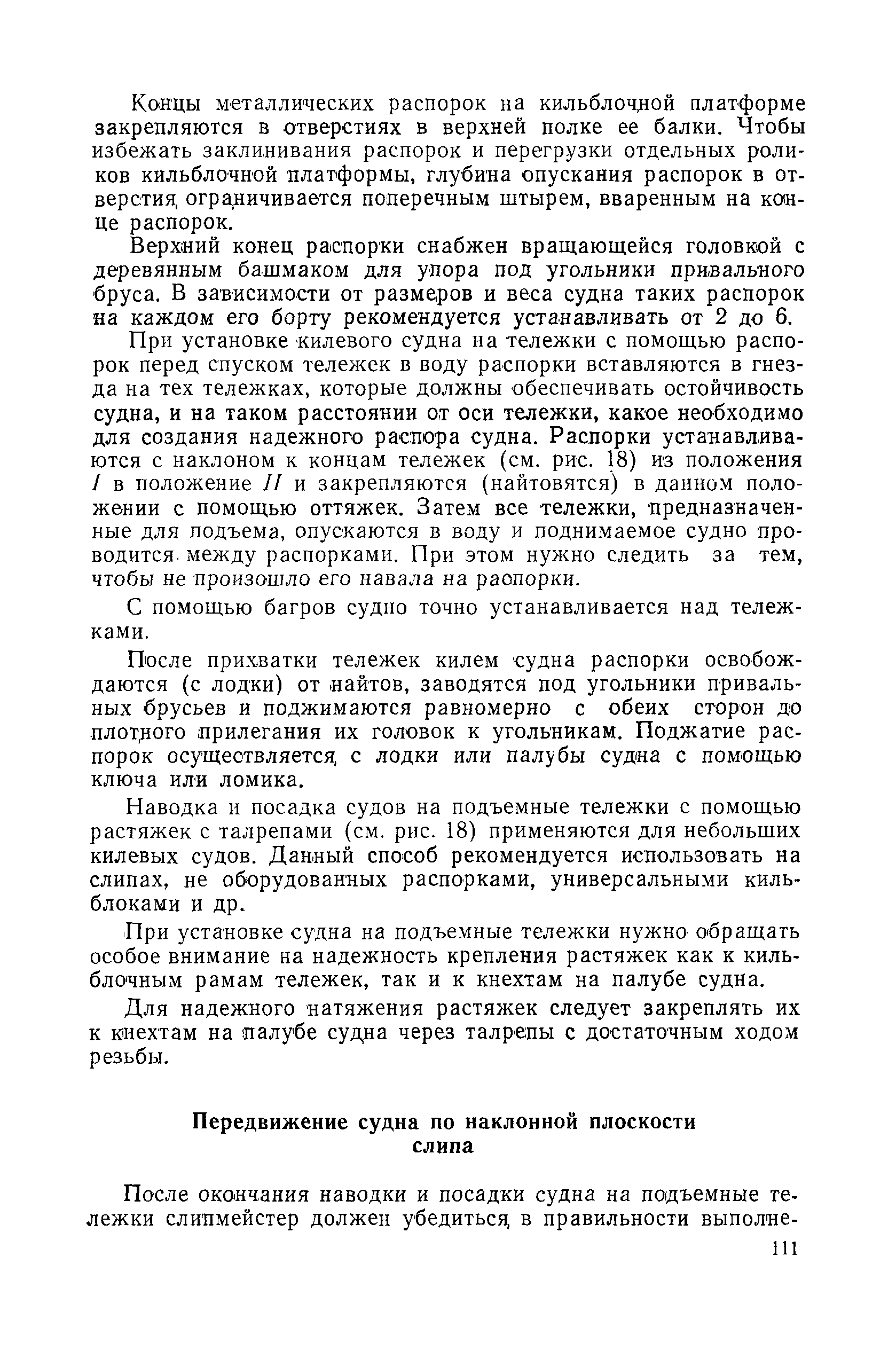 | Оглавление: | Введение 1. Особенности устройства и обслуживания слипов и эллингов Принципы устройства и работы типовых слипов и эллингов Гребенчатый слип и эллинг Кормоподъемные устройства для гребенчатых слипов и эллингов Продольный двухопорный слип, эллинг и кормоподъемник Подъемные тележки Типы подъемных тележек и их основные характеристики Подъемные тележки гребенчатых слипов Подъемные тележки эллинга типа "Убигау" Подъемные тележки продольных двухопорных слипов (эллингов) и судонатасок Подъемные лебедки Типы подъемных лебедок и их основные характеристики Устройство для автоматического выключения лебедки при остановке подъемной тележки на спуске Защита лебедок от перегрузок Устройство для контроля величины перекоса поезда подъемных тележек с судном Стапельные тележки Типы стапельных тележек и их основные характеристики Особенности работы гидравлической системы стапельных тележек Подвеска питающих кабелей Устройство для переключения шестерен привода стапельной тележки Способы ликвидации отставаний стапельных тележек при разгрузке Уход за механическим оборудованием судоподъемных сооружений Общие требования по уходу Уход за тяговыми канатами Уход за зубчатыми передачами и редукторами при их эксплуатации и монтаже Уход за рамами механизмов Уход за соединительными и фрикционными муфтами Уход за канатными блоками Уход за тормозами Уход за валами, осями и подшипниками Электрооборудование Назначение электропривода подъемных лебедок гребенчатых слипов Порядок включения электропривода подъемных лебедок поставки 1949-1951 гг. Схема контроля перекосов и пути, пройденного подъемными тележками поставки 1949-1951 гг. Особенности схемы электропривода подъемных лебедок поставки 1952 г Особенности схемы контроля перекосов и пути, пройденного подъемными тележками поставки 1952 г Особенности схемы электропривода подъемных тележек поставки 1953 г Особенности схемы контроля перекосов подъемных тележек поставки 1953 г Замена импортного электрооборудования слипов отечественным Особенности схемы электрооборудования гребенчатых слипов Г-150 и Г-300 (по типовому проекту 1963 г.) Электропривод одномоторных слипов и эллингов Электропривод продольного слипа П-600 Электропривод судонатаски грузоподъемностью 60 т Электропривод наводочного шпиля (тяговое усилие 3 т) Электрооборудование стапельных тележек Судовозные пути Общие требования Уход за подводными путями Уход за надводными путями Уход за пересечками стапельных путей Уход за твердыми покрытиями на стапелях слипов Обслуживание слипов и эллингов при работе в условиях отрицательных температур воздуха Организация планово-предупредительных осмотров и ремонтов Общие положения Осмотры и обследования сооружения Планирование и организация ремонта Прием сооружения после ремонта II. Производство подъемно-спусковых работ Подготовка судна к подъему Разработка схемы подъема судна и расчет нагрузок Расчет нагрузок от кормового (баксового) давления Пример расчетов установки судна на подъемные тележки слипа Проверка местной прочности корпусов судна Осмотр судна перед подъемом на слип Подготовка судоподъемного сооружения к работе Подготовка судоподъемного оборудования Подготовка судовозных путей Подъем судна из воды Общие указания Наводка и посадка судна на подъемные 