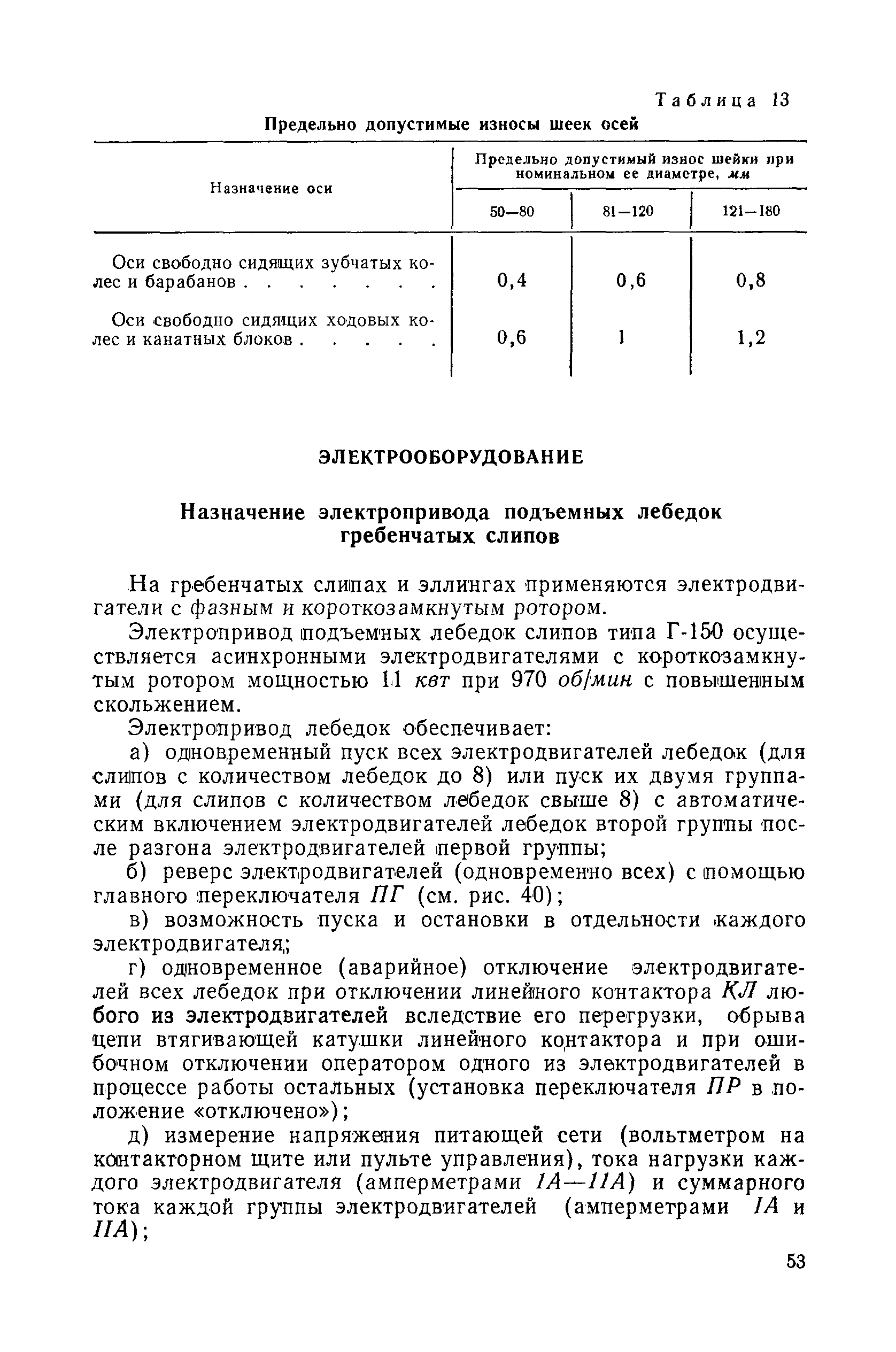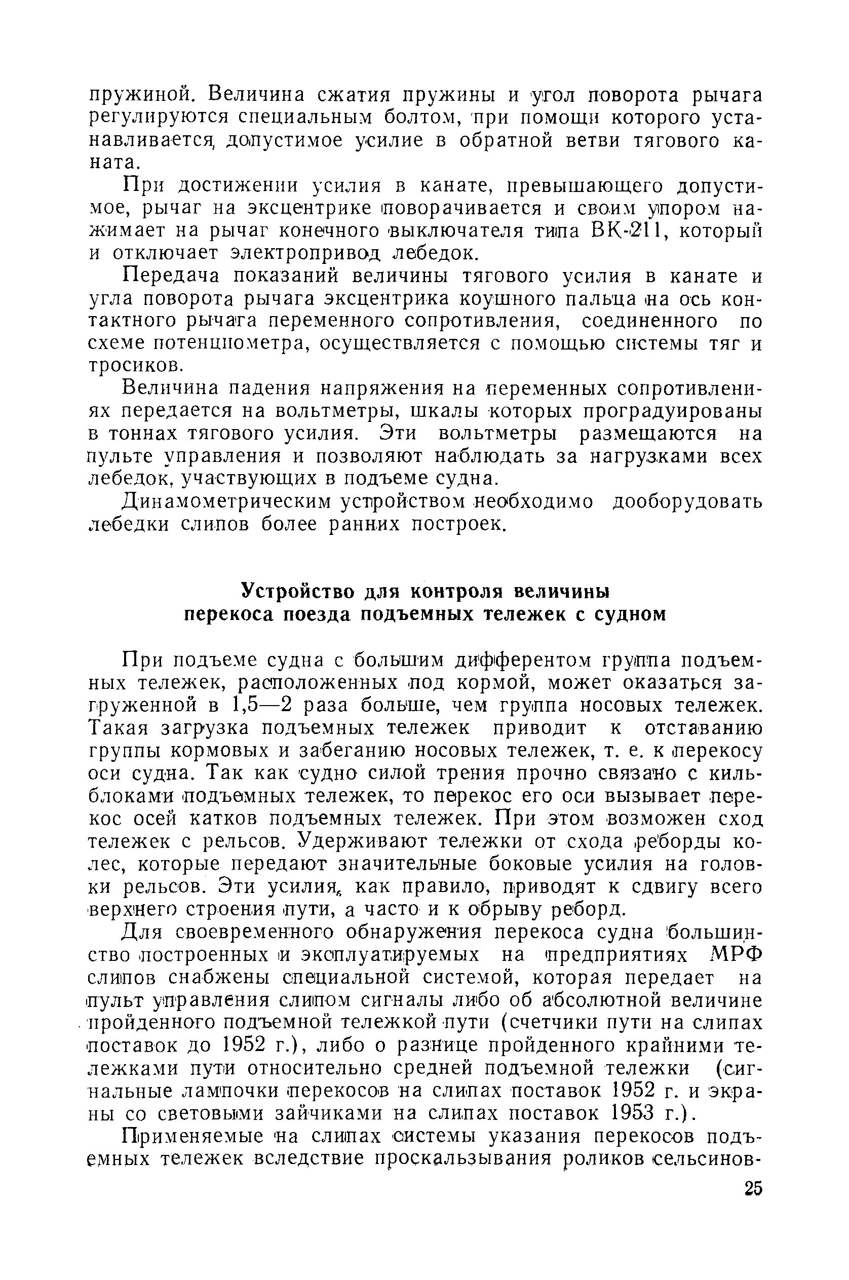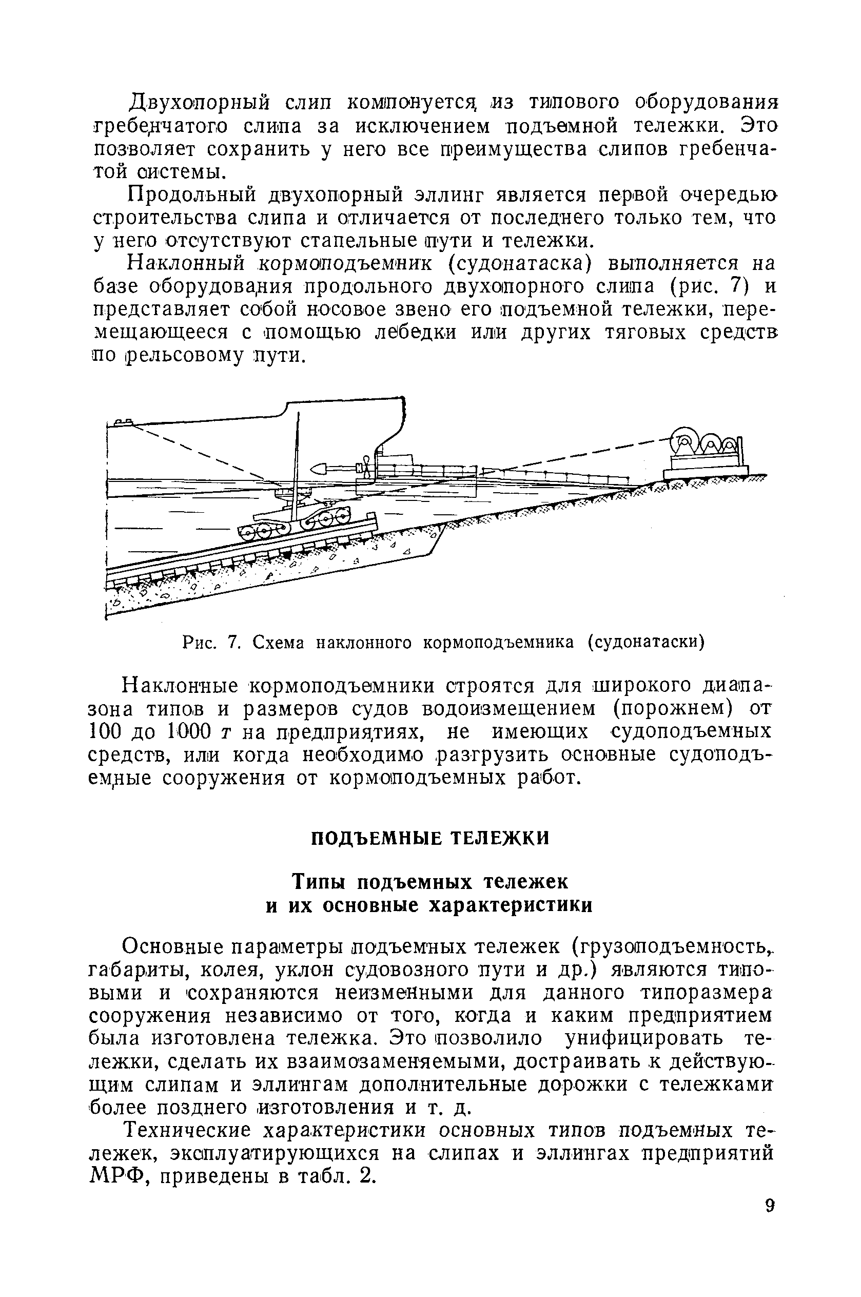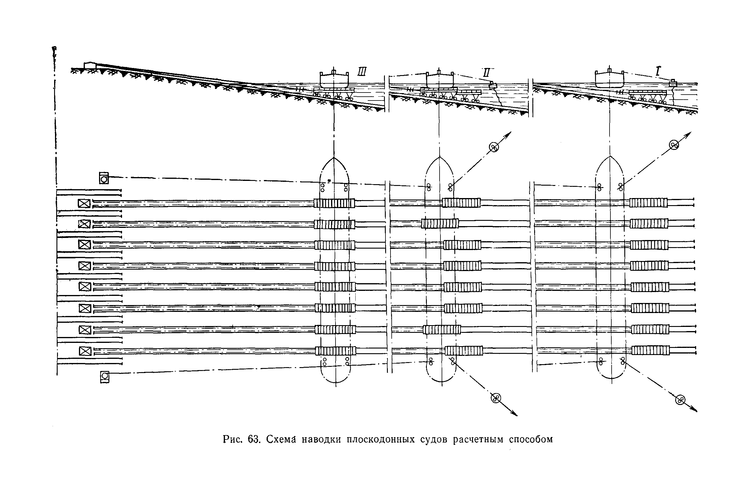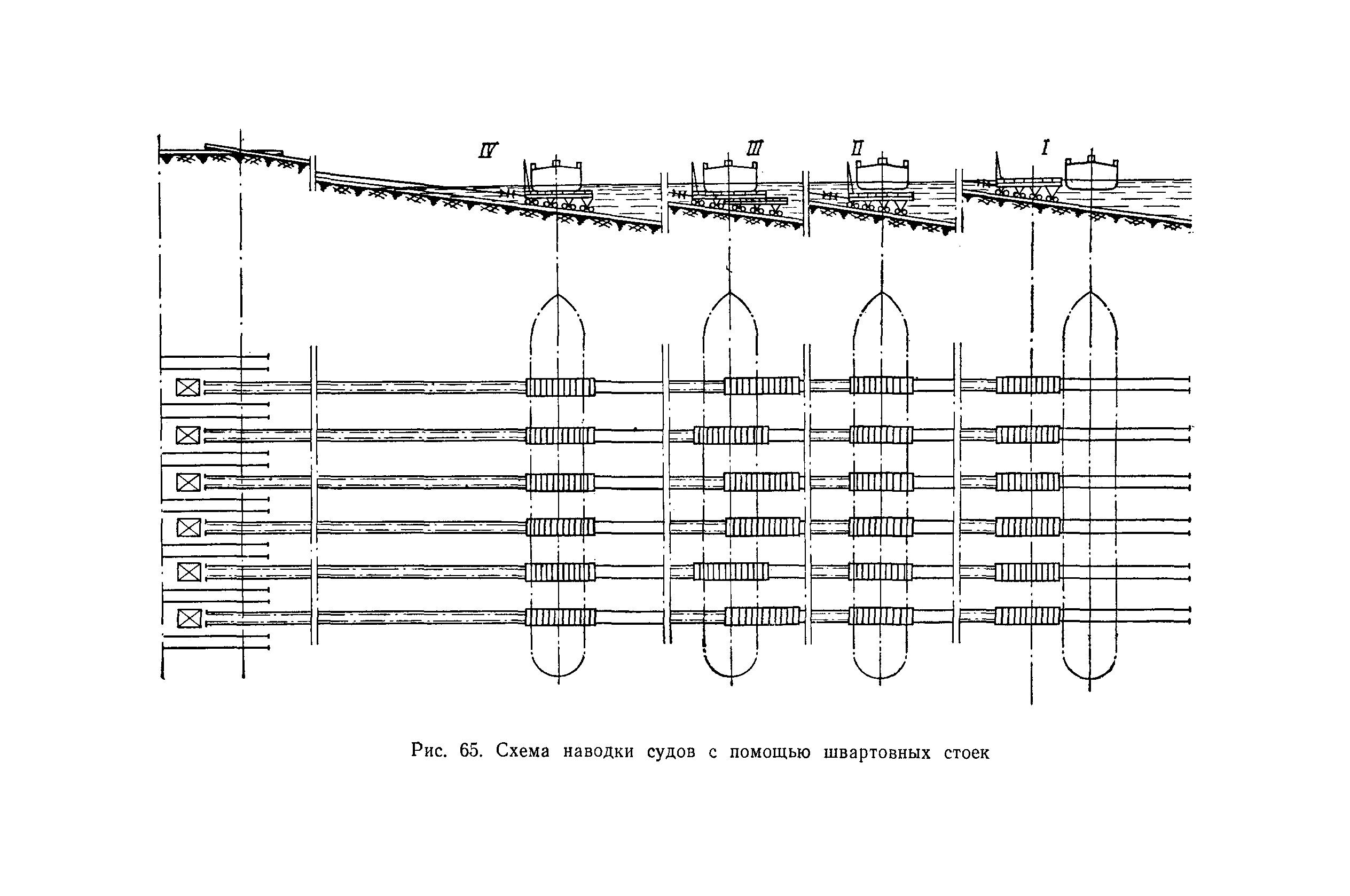 | Оглавление: | Введение 1. Особенности устройства и обслуживания слипов и эллингов Принципы устройства и работы типовых слипов и эллингов Гребенчатый слип и эллинг Кормоподъемные устройства для гребенчатых слипов и эллингов Продольный двухопорный слип, эллинг и кормоподъемник Подъемные тележки Типы подъемных тележек и их основные характеристики Подъемные тележки гребенчатых слипов Подъемные тележки эллинга типа "Убигау" Подъемные тележки продольных двухопорных слипов (эллингов) и судонатасок Подъемные лебедки Типы подъемных лебедок и их основные характеристики Устройство для автоматического выключения лебедки при остановке подъемной тележки на спуске Защита лебедок от перегрузок Устройство для контроля величины перекоса поезда подъемных тележек с судном Стапельные тележки Типы стапельных тележек и их основные характеристики Особенности работы гидравлической системы стапельных тележек Подвеска питающих кабелей Устройство для переключения шестерен привода стапельной тележки Способы ликвидации отставаний стапельных тележек при разгрузке Уход за механическим оборудованием судоподъемных сооружений Общие требования по уходу Уход за тяговыми канатами Уход за зубчатыми передачами и редукторами при их эксплуатации и монтаже Уход за рамами механизмов Уход за соединительными и фрикционными муфтами Уход за канатными блоками Уход за тормозами Уход за валами, осями и подшипниками Электрооборудование Назначение электропривода подъемных лебедок гребенчатых слипов Порядок включения электропривода подъемных лебедок поставки 1949-1951 гг. Схема контроля перекосов и пути, пройденного подъемными тележками поставки 1949-1951 гг. Особенности схемы электропривода подъемных лебедок поставки 1952 г Особенности схемы контроля перекосов и пути, пройденного подъемными тележками поставки 1952 г Особенности схемы электропривода подъемных тележек поставки 1953 г Особенности схемы контроля перекосов подъемных тележек поставки 1953 г Замена импортного электрооборудования слипов отечественным Особенности схемы электрооборудования гребенчатых слипов Г-150 и Г-300 (по типовому проекту 1963 г.) Электропривод одномоторных слипов и эллингов Электропривод продольного слипа П-600 Электропривод судонатаски грузоподъемностью 60 т Электропривод наводочного шпиля (тяговое усилие 3 т) Электрооборудование стапельных тележек Судовозные пути Общие требования Уход за подводными путями Уход за надводными путями Уход за пересечками стапельных путей Уход за твердыми покрытиями на стапелях слипов Обслуживание слипов и эллингов при работе в условиях отрицательных температур воздуха Организация планово-предупредительных осмотров и ремонтов Общие положения Осмотры и обследования сооружения Планирование и организация ремонта Прием сооружения после ремонта II. Производство подъемно-спусковых работ Подготовка судна к подъему Разработка схемы подъема судна и расчет нагрузок Расчет нагрузок от кормового (баксового) давления Пример расчетов установки судна на подъемные тележки слипа Проверка местной прочности корпусов судна Осмотр судна перед подъемом на слип Подготовка судоподъемного сооружения к работе Подготовка судоподъемного оборудования Подготовка судовозных путей Подъем судна из воды Общие указания Наводка и посадка судна на подъемные 