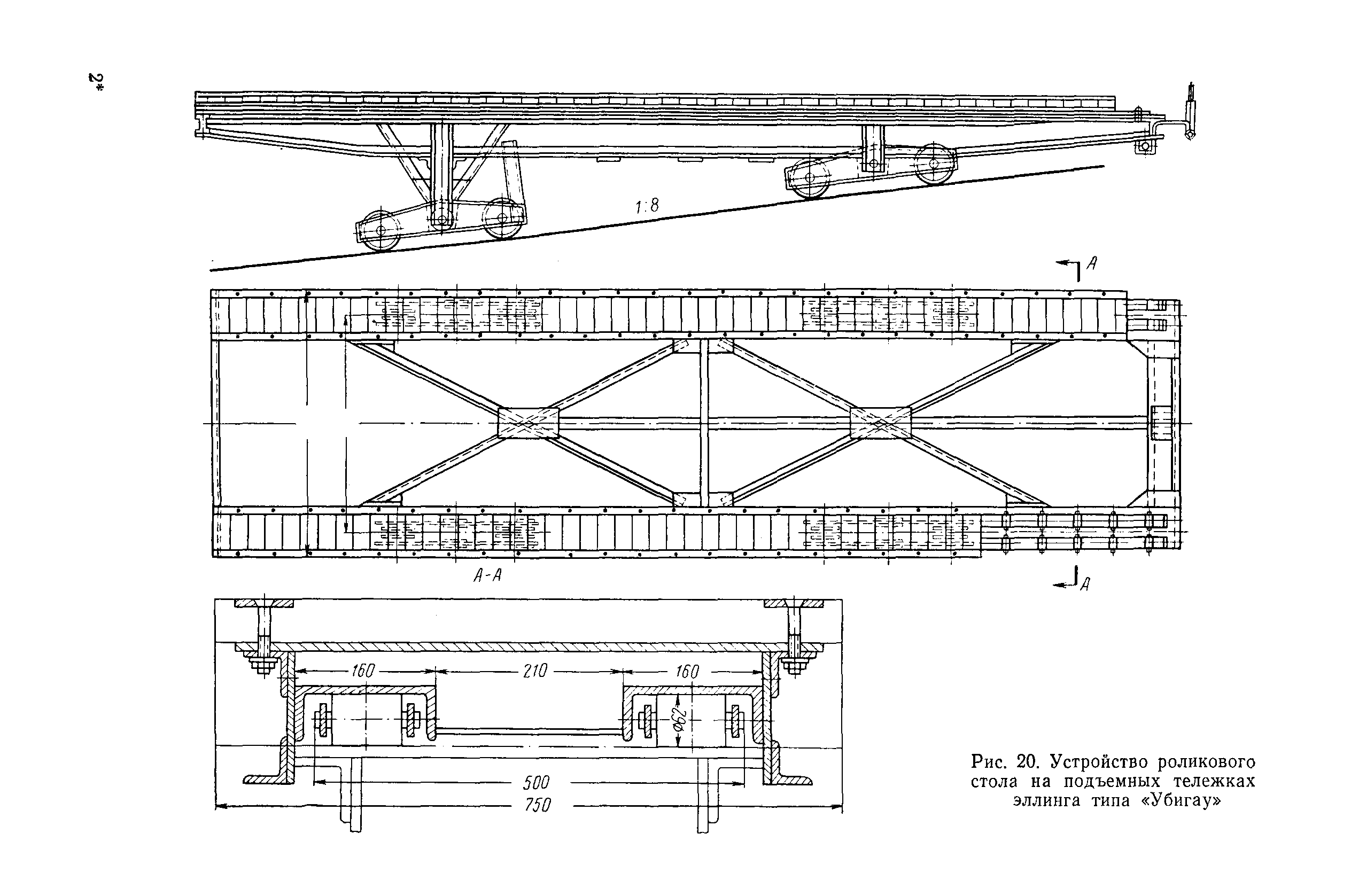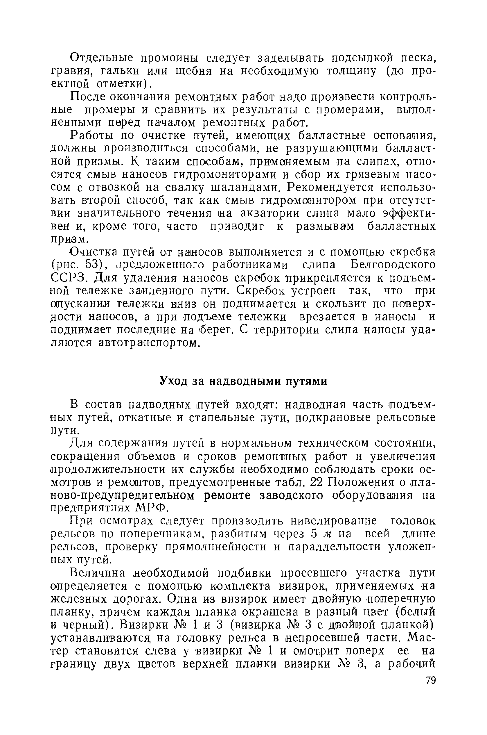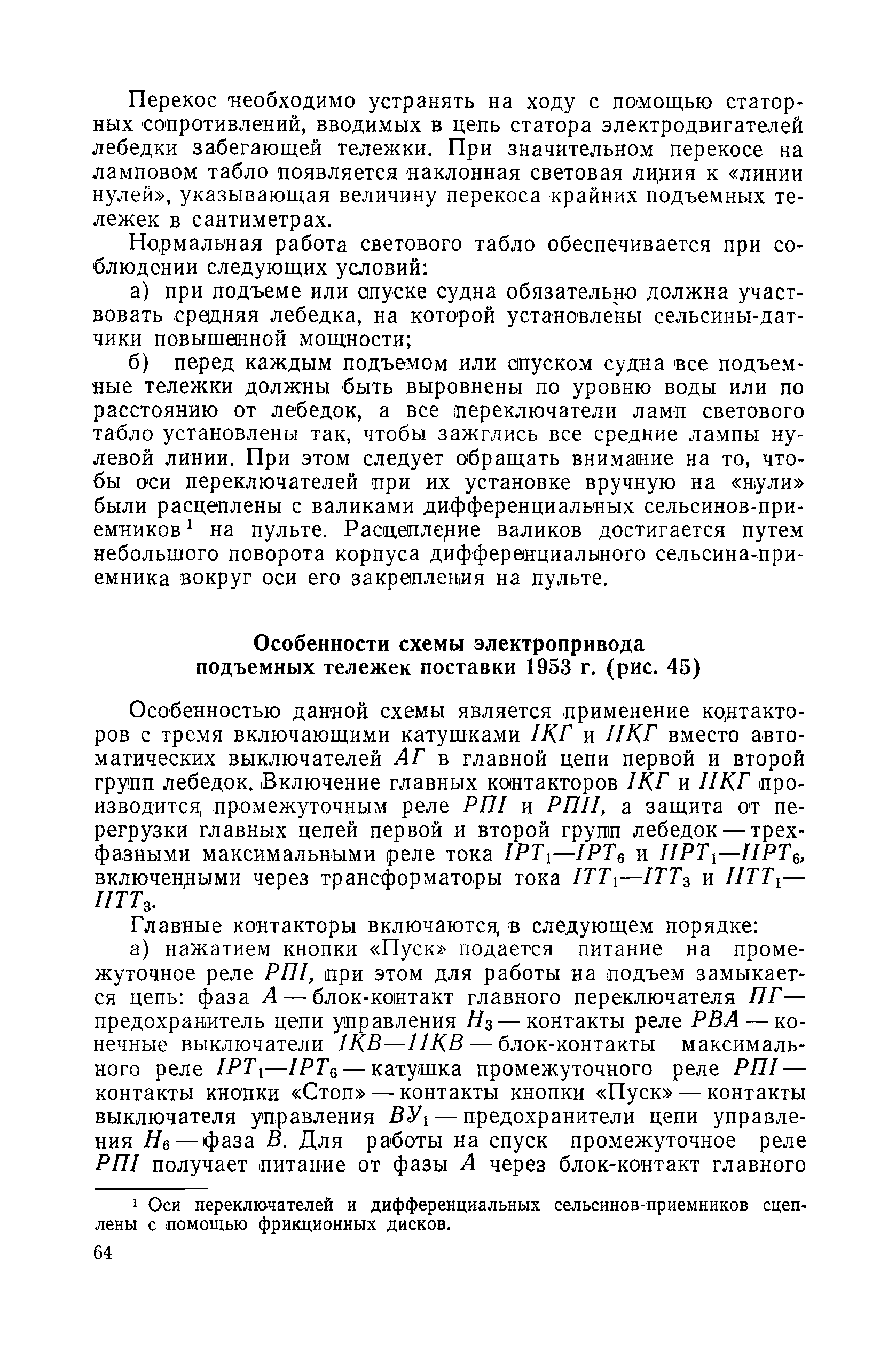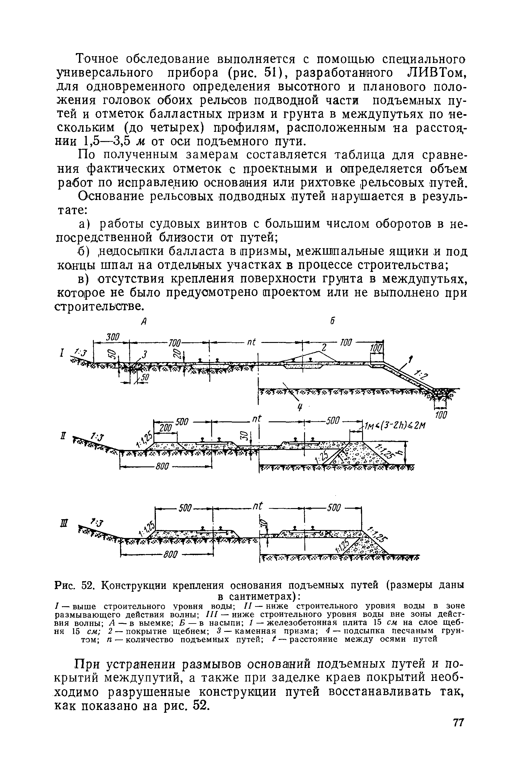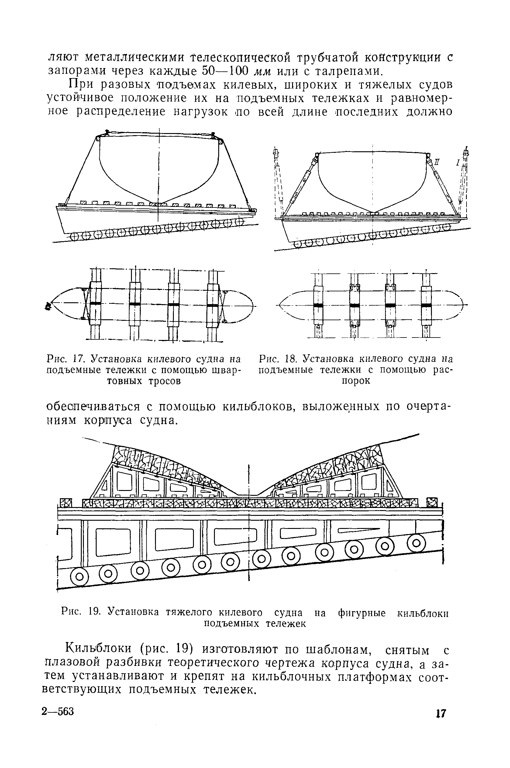 | Оглавление: | Введение 1. Особенности устройства и обслуживания слипов и эллингов Принципы устройства и работы типовых слипов и эллингов Гребенчатый слип и эллинг Кормоподъемные устройства для гребенчатых слипов и эллингов Продольный двухопорный слип, эллинг и кормоподъемник Подъемные тележки Типы подъемных тележек и их основные характеристики Подъемные тележки гребенчатых слипов Подъемные тележки эллинга типа "Убигау" Подъемные тележки продольных двухопорных слипов (эллингов) и судонатасок Подъемные лебедки Типы подъемных лебедок и их основные характеристики Устройство для автоматического выключения лебедки при остановке подъемной тележки на спуске Защита лебедок от перегрузок Устройство для контроля величины перекоса поезда подъемных тележек с судном Стапельные тележки Типы стапельных тележек и их основные характеристики Особенности работы гидравлической системы стапельных тележек Подвеска питающих кабелей Устройство для переключения шестерен привода стапельной тележки Способы ликвидации отставаний стапельных тележек при разгрузке Уход за механическим оборудованием судоподъемных сооружений Общие требования по уходу Уход за тяговыми канатами Уход за зубчатыми передачами и редукторами при их эксплуатации и монтаже Уход за рамами механизмов Уход за соединительными и фрикционными муфтами Уход за канатными блоками Уход за тормозами Уход за валами, осями и подшипниками Электрооборудование Назначение электропривода подъемных лебедок гребенчатых слипов Порядок включения электропривода подъемных лебедок поставки 1949-1951 гг. Схема контроля перекосов и пути, пройденного подъемными тележками поставки 1949-1951 гг. Особенности схемы электропривода подъемных лебедок поставки 1952 г Особенности схемы контроля перекосов и пути, пройденного подъемными тележками поставки 1952 г Особенности схемы электропривода подъемных тележек поставки 1953 г Особенности схемы контроля перекосов подъемных тележек поставки 1953 г Замена импортного электрооборудования слипов отечественным Особенности схемы электрооборудования гребенчатых слипов Г-150 и Г-300 (по типовому проекту 1963 г.) Электропривод одномоторных слипов и эллингов Электропривод продольного слипа П-600 Электропривод судонатаски грузоподъемностью 60 т Электропривод наводочного шпиля (тяговое усилие 3 т) Электрооборудование стапельных тележек Судовозные пути Общие требования Уход за подводными путями Уход за надводными путями Уход за пересечками стапельных путей Уход за твердыми покрытиями на стапелях слипов Обслуживание слипов и эллингов при работе в условиях отрицательных температур воздуха Организация планово-предупредительных осмотров и ремонтов Общие положения Осмотры и обследования сооружения Планирование и организация ремонта Прием сооружения после ремонта II. Производство подъемно-спусковых работ Подготовка судна к подъему Разработка схемы подъема судна и расчет нагрузок Расчет нагрузок от кормового (баксового) давления Пример расчетов установки судна на подъемные тележки слипа Проверка местной прочности корпусов судна Осмотр судна перед подъемом на слип Подготовка судоподъемного сооружения к работе Подготовка судоподъемного оборудования Подготовка судовозных путей Подъем судна из воды Общие указания Наводка и посадка судна на подъемные 