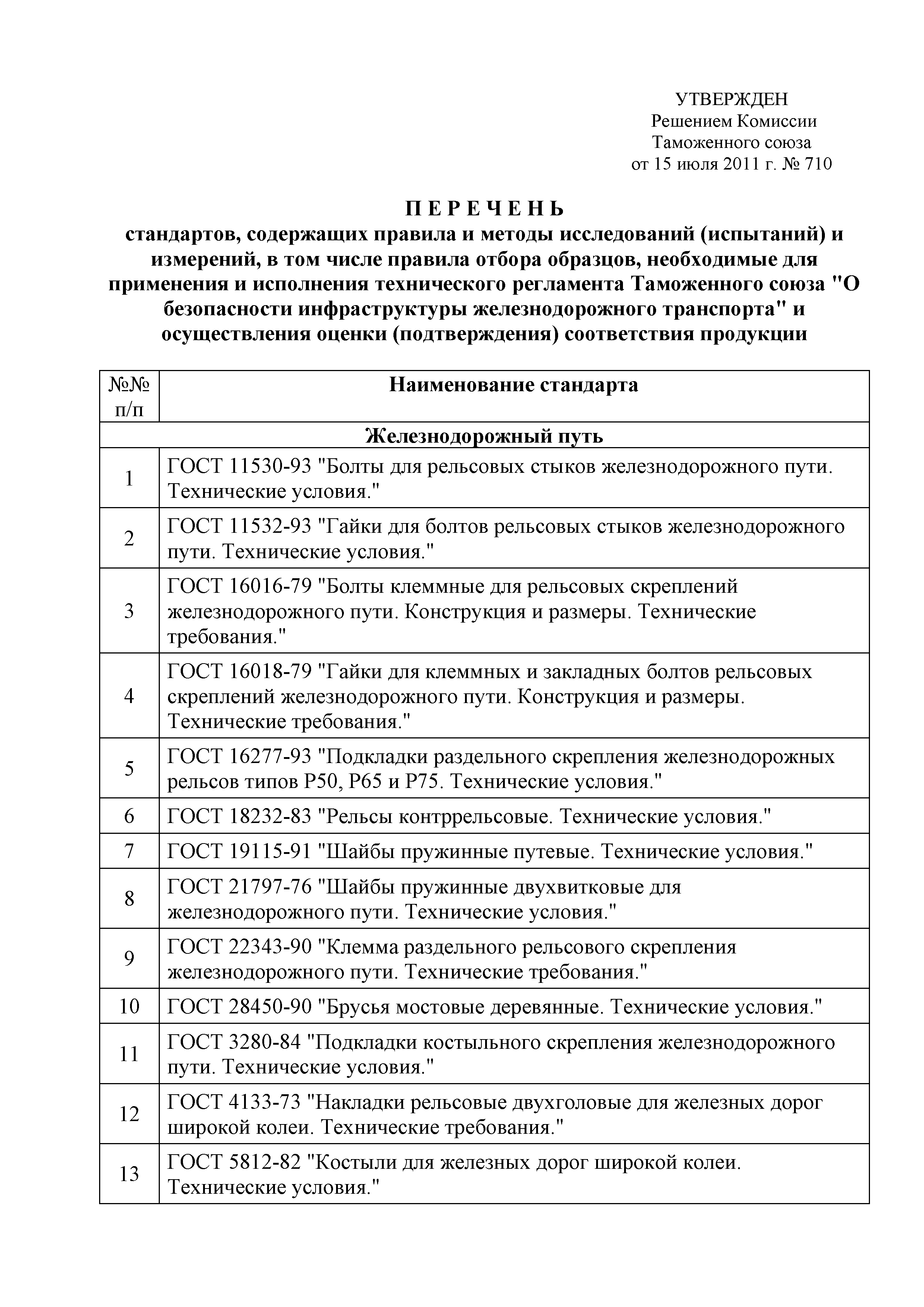 Утверждён:15.07.2011 Комиссия Таможенного союза (710)