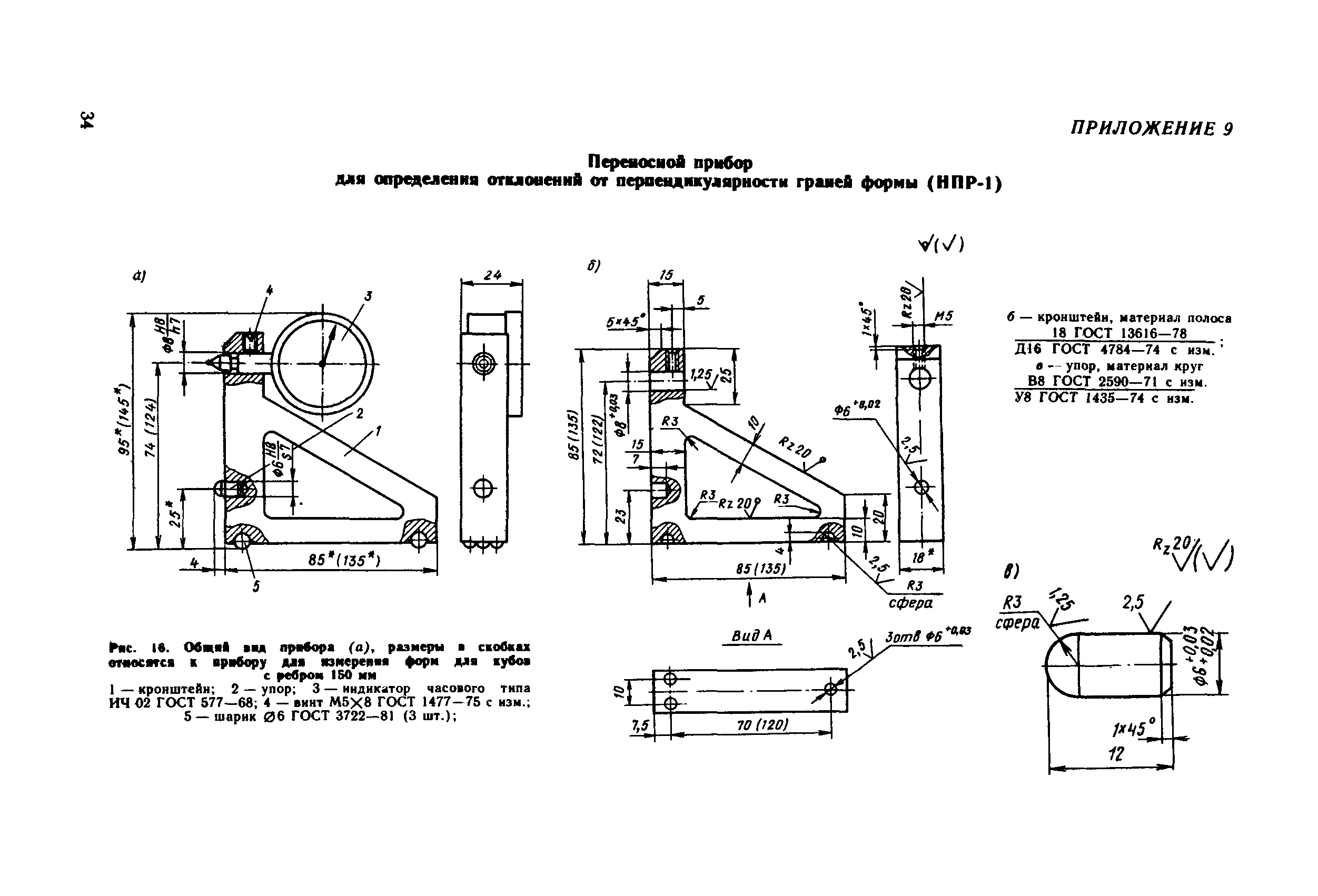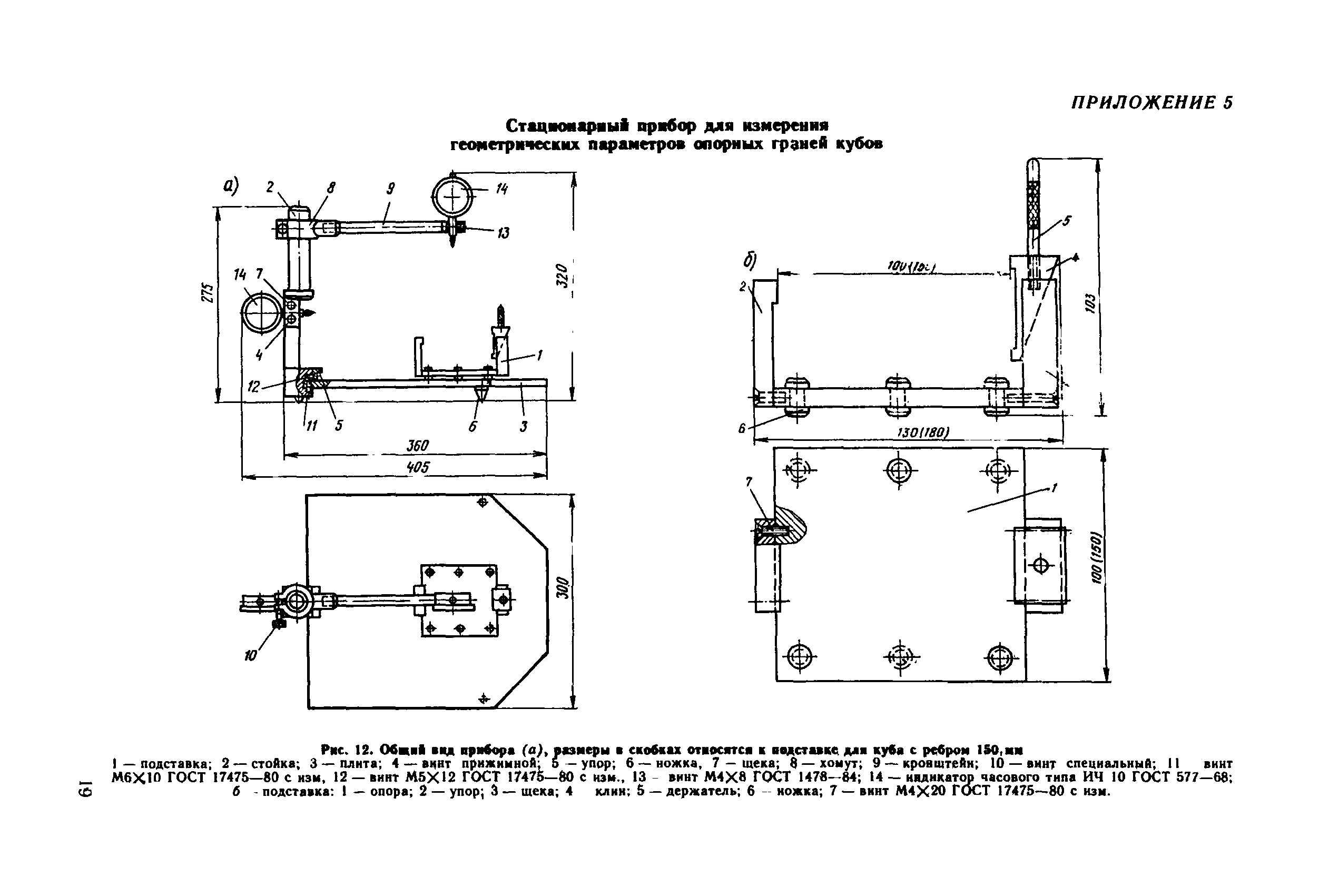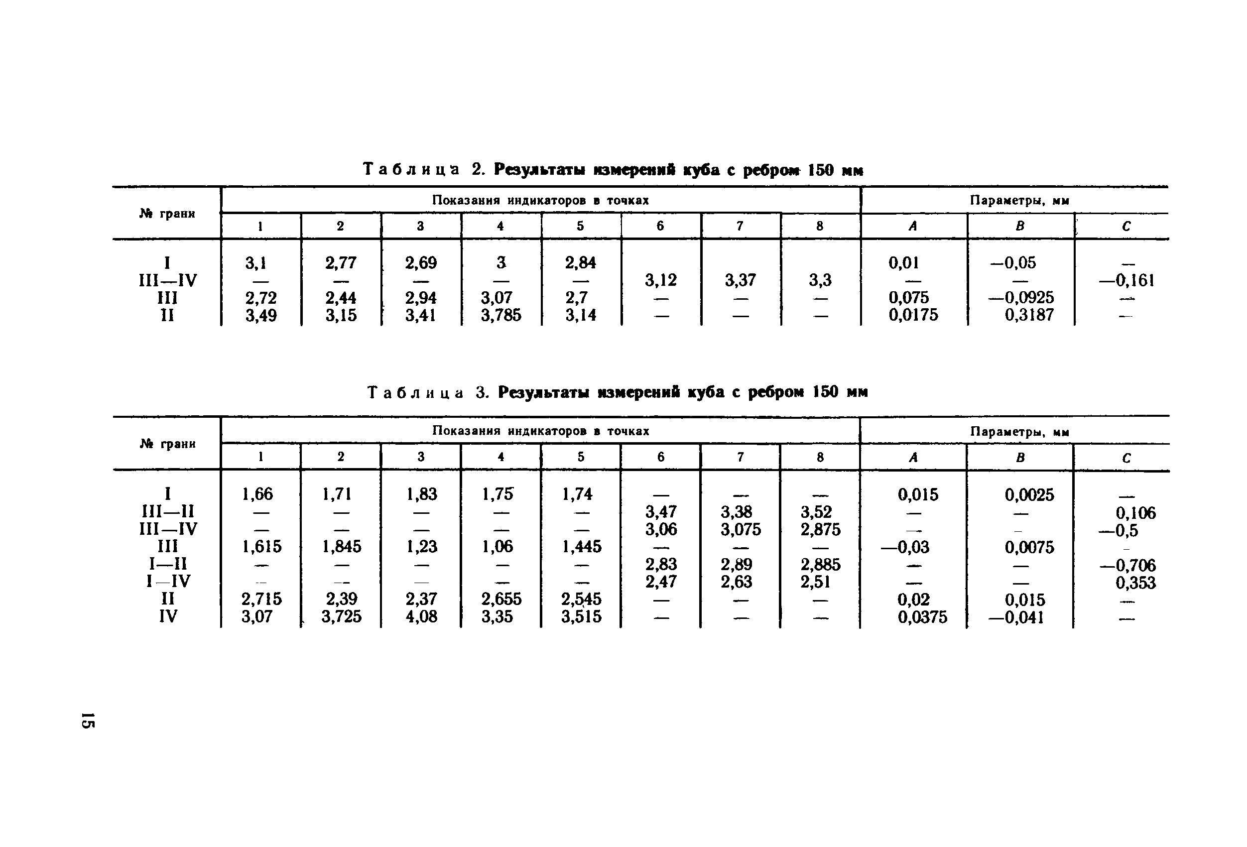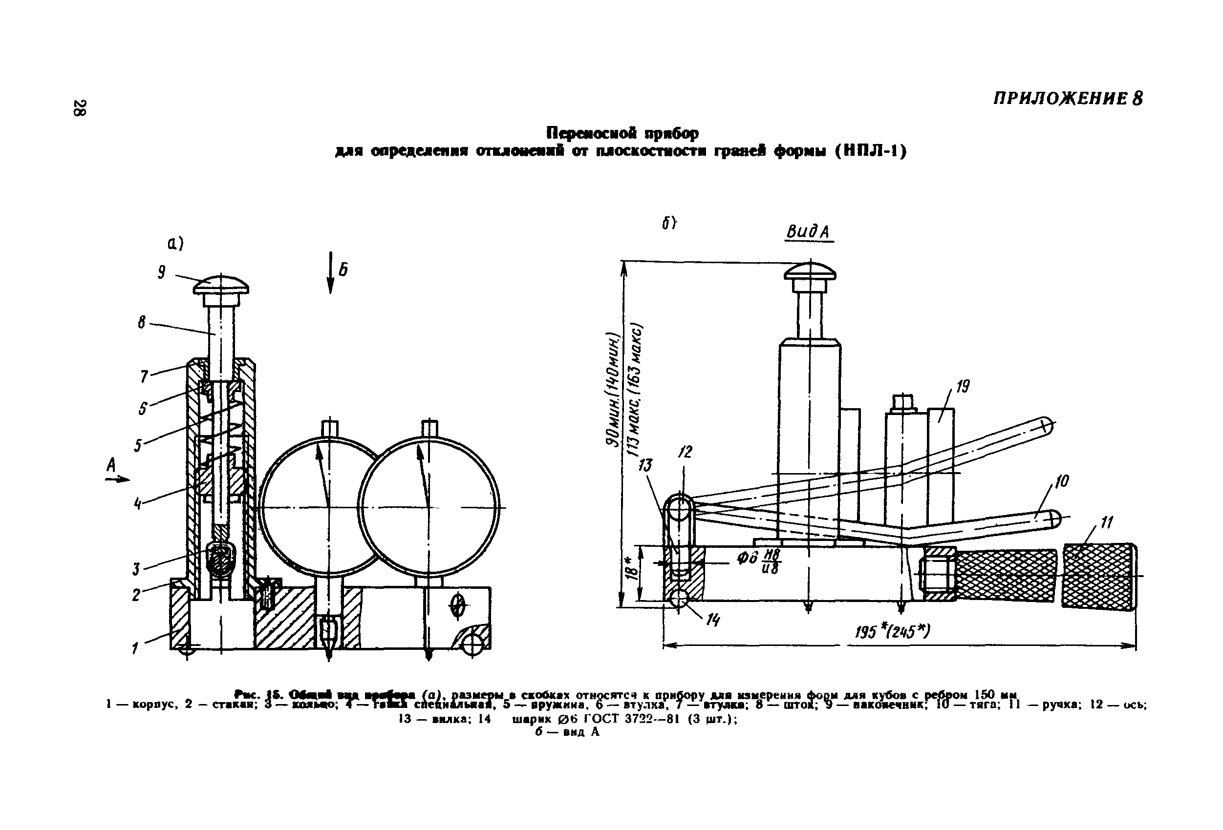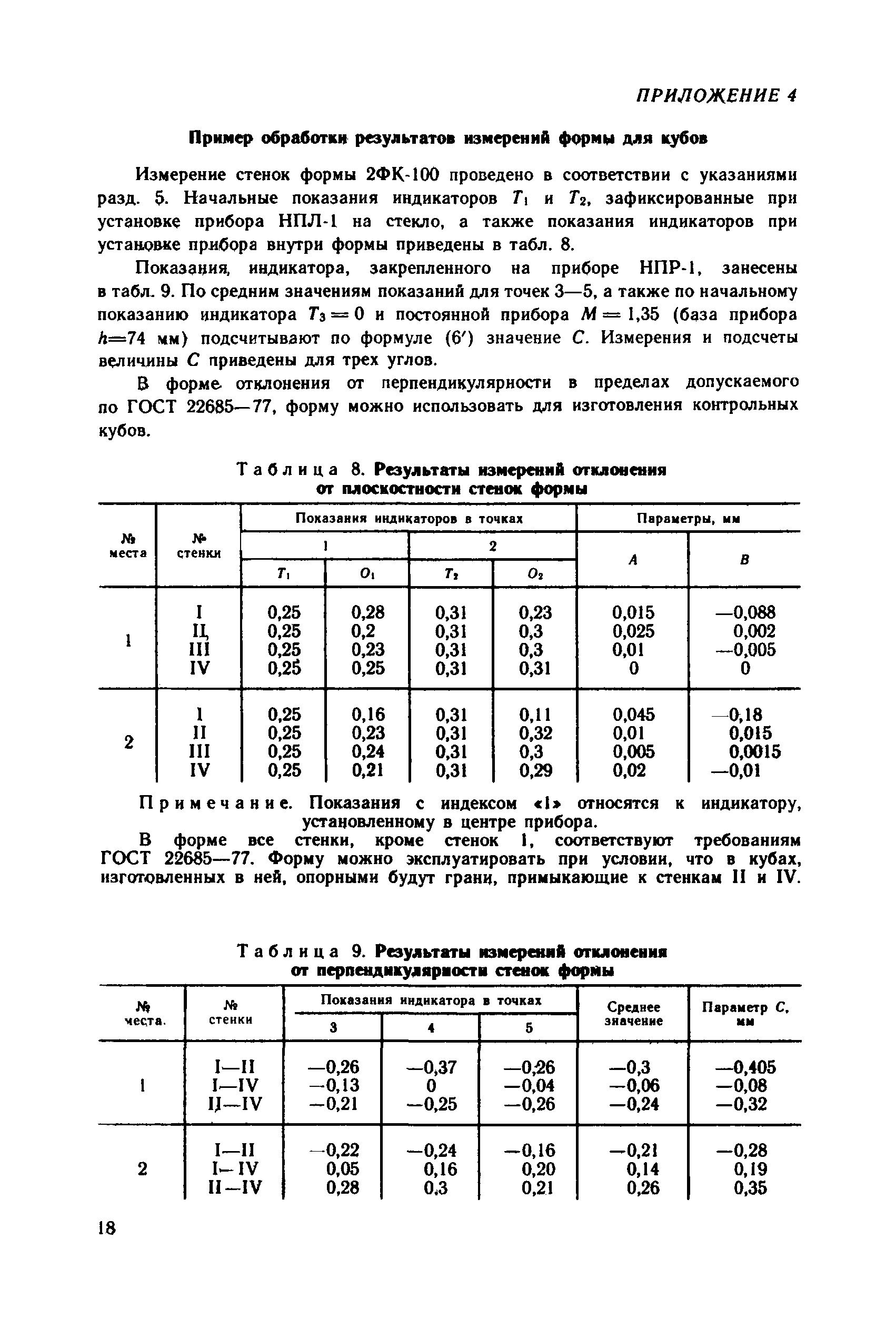 | Оглавление: | 1. Общие положения 2. Определение геометрических параметров опорных граней куба с помощью стационарного прибора 3. Определение отклонения от плоскостности опорных граней куба с помощью переносного прибора 4. Определение отклонения от перпендикулярности граней куба с помощью переносного прибора 5. Определение геометрических параметров форм для контрольных кубов бетона 6. Ведомственная поверка форм для контрольных образцов бетона Приложение 1. Определение отклонений от плоскостности и перпендикулярности граней цилиндров и призм Приложение 2. Примеры обработки результатов измерений кубов с помощью стационарного прибора Приложение 3. Примеры обработки результатов измерений кубов с помощью переносных приборов Приложение 4. Пример обработки результатов измерений формы для кубов Приложение 5. Стационарный прибор для измерения геометрических параметров опорных граней кубов Приложение 6. Переносный прибор для определения отклонения от плоскостности опорных граней куба (НПЛ-4) Приложение 7. Переносный прибор для определения отклонения от перпендикулярности опорных граней куба (НПЛ-2) Приложение 8. Переносный прибор для определения отклонений от плоскостности граней формы (НПЛ-1) Приложение 9. Переносный прибор для определения отклонения от перпендикулярности граней формы (НПР-1) |