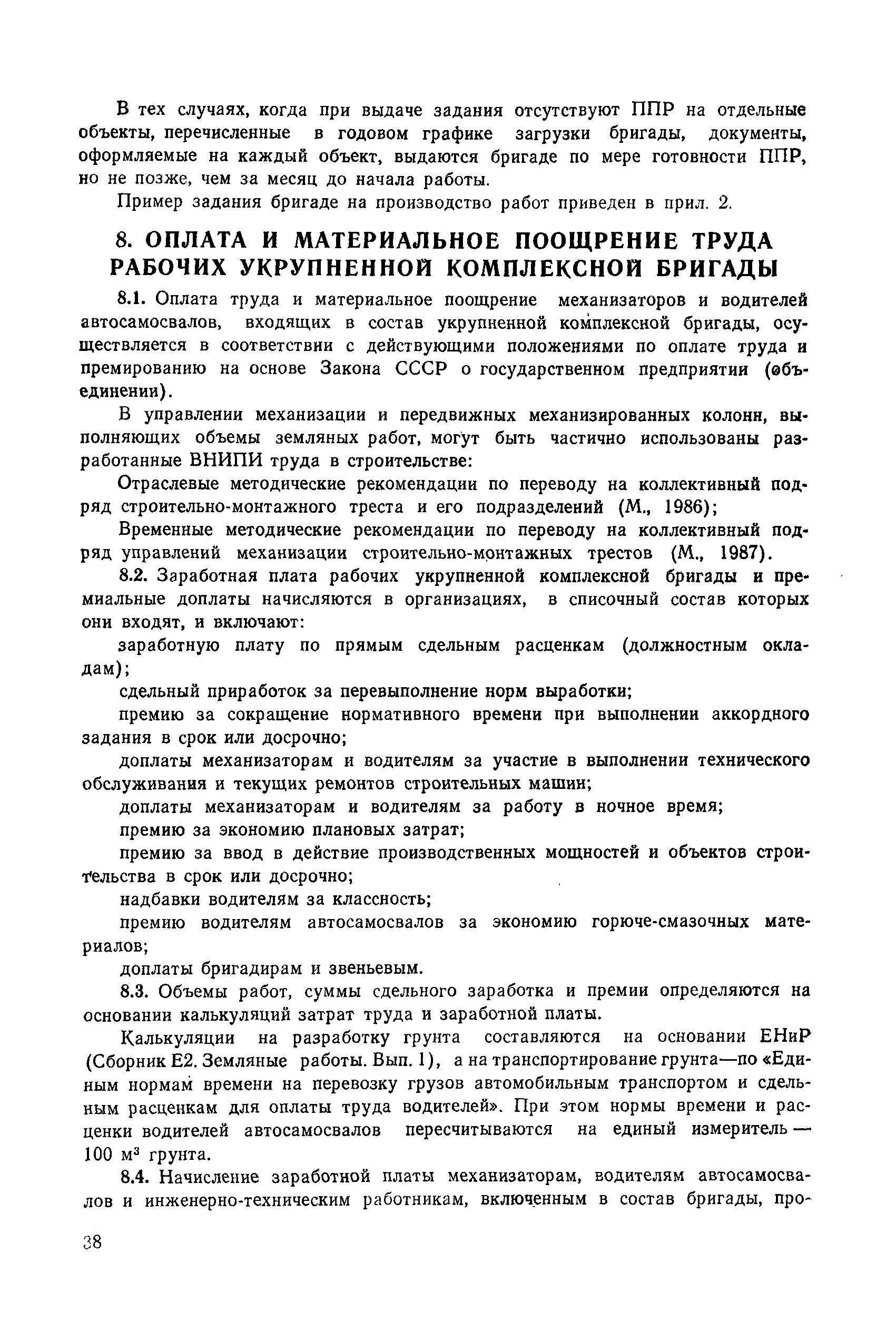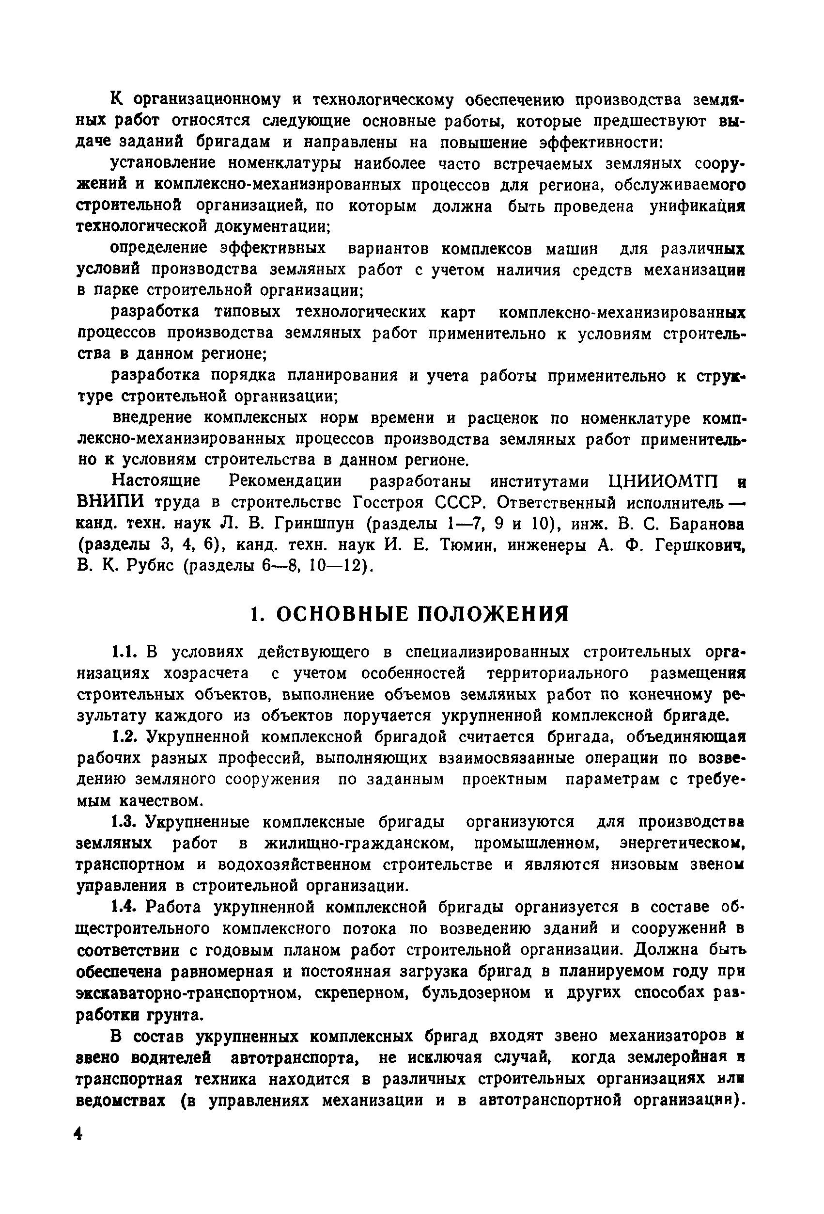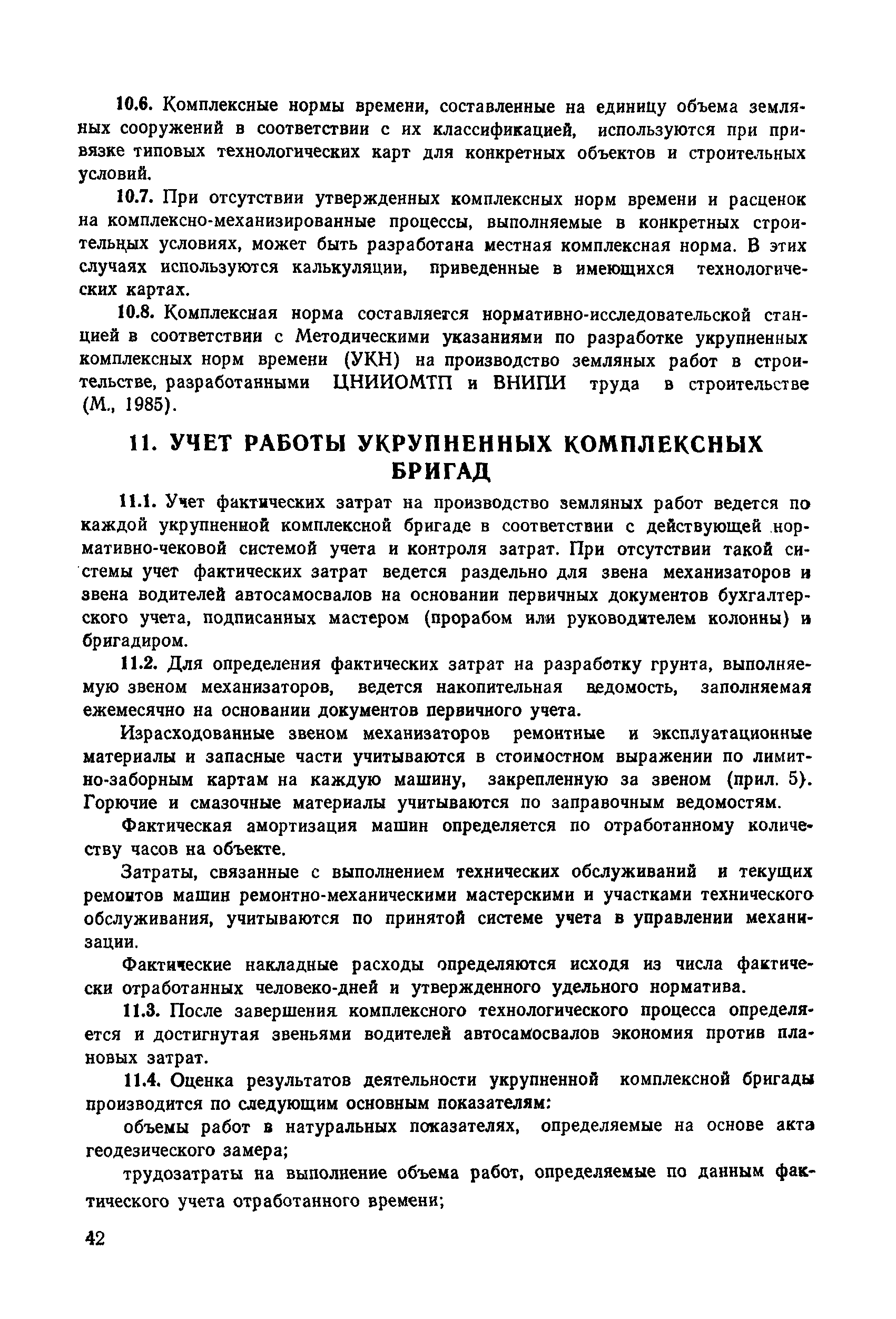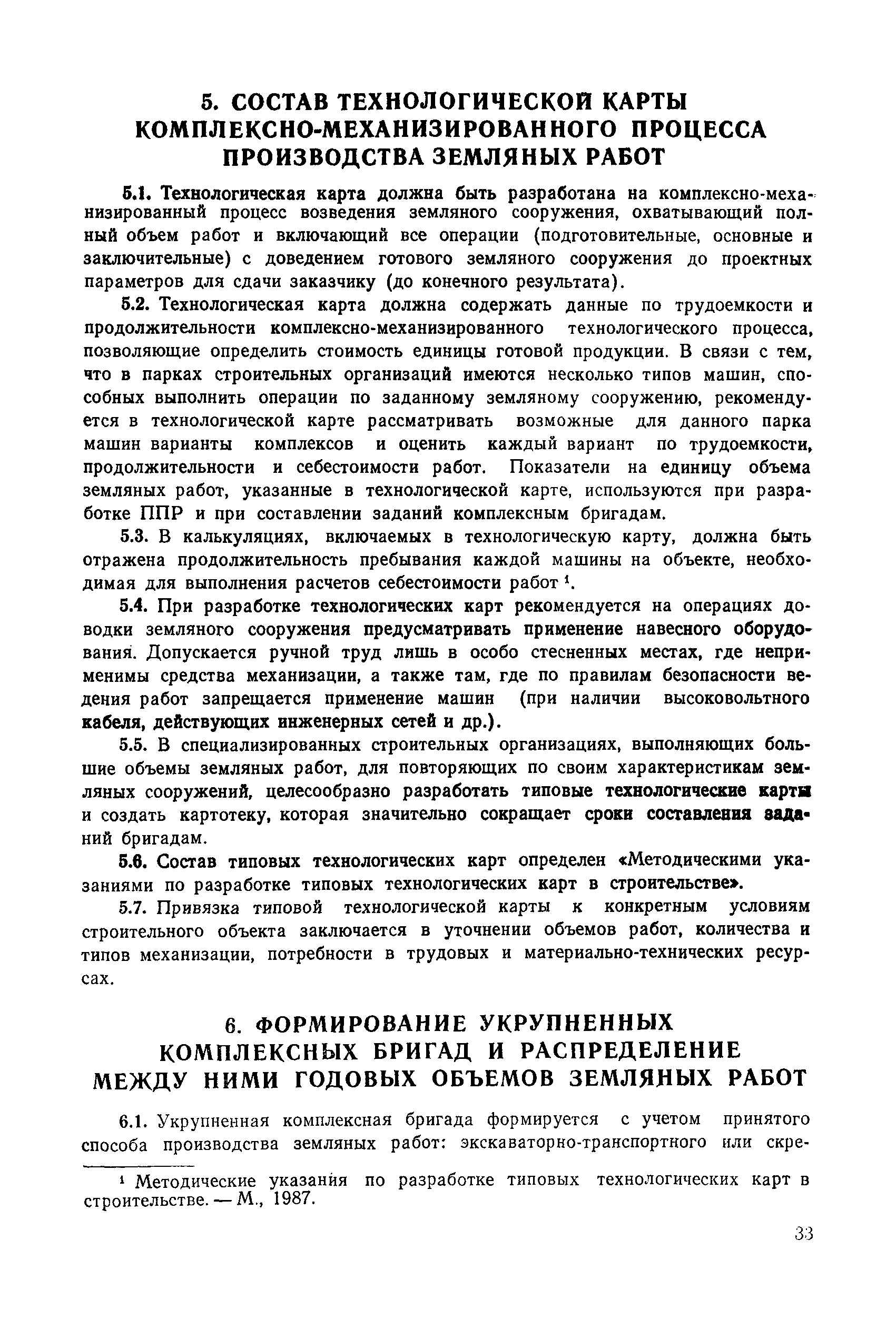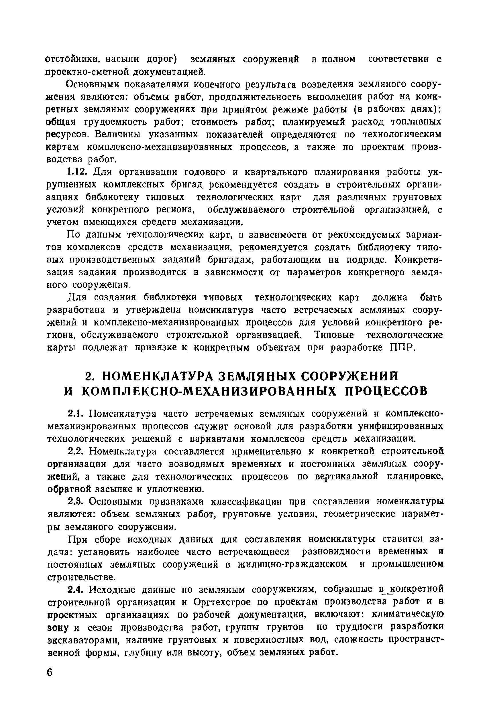Рекомендации по организационному и технологическому обеспечению укрупненных комплексных бригад на земляных работах| Статус: | действует | | Название рус.: | Рекомендации по организационному и технологическому обеспечению укрупненных комплексных бригад на земляных работах | | Дата добавления в базу: | 01.09.2013 | | Дата актуализации: | 01.01.2021 | | Область применения: | В документе изложены основные положения по повышению эффективности производства на основе применения комплексно-механизированных процессов. Рассмотрены основные этапы по подготовке производства, порядок разработки и состав технологической документации, определения вариантов комплексов машин, формирование укрупненных комплексных бригад, методы распределения годовых объемов земляных работ, порядок планирования и учета работы. Для инженерно-технических работников строительных организаций. | | Оглавление: | Предисловие 1. Основные положения 2. Номенклатура земляных сооружений и комплексно-механизированных процессов 3. Определение основных показателей комплексно-механизированных процессов земляных работ 4. Эффективные варианты комплексов машин для различных условий производства земляных работ 5. Состав технологической карты комплексно-механизированного процесса производства земляных работ 6. Формирование укрупненных комплексных бригад и распределение между ними годовых объемов земляных работ 7. Планирование работы и составление задания укрупненным комплексным бригадам 8. Оплата и материальное поощрение труда рабочих укрупненной комплексной бригады 9. Техническое обслуживание и ремонт машин, закрепленных за бригадой 10. Нормативная база для укрупненной комплексной бригады 11. Учет работы укрупненных комплексных бригад 12. Правовые и экономические взаимоотношения управления механизации и управления автотранспорта Приложение 1. Пример распределения годового объема земляных работ по бригадам Приложение 2. Пример годового задания укрупненной комплексной бригаде на выполнение земляных работ Приложение 3. Пример определения состава комплексных укрупненных бригад в управлении механизации Приложение 4. Укрупненная норма времени и расценка на комплексный технологический процесс (форма) Приложение 5. Лимитно-заборная карта (форма) | | Разработан: | ЦНИИОМТП