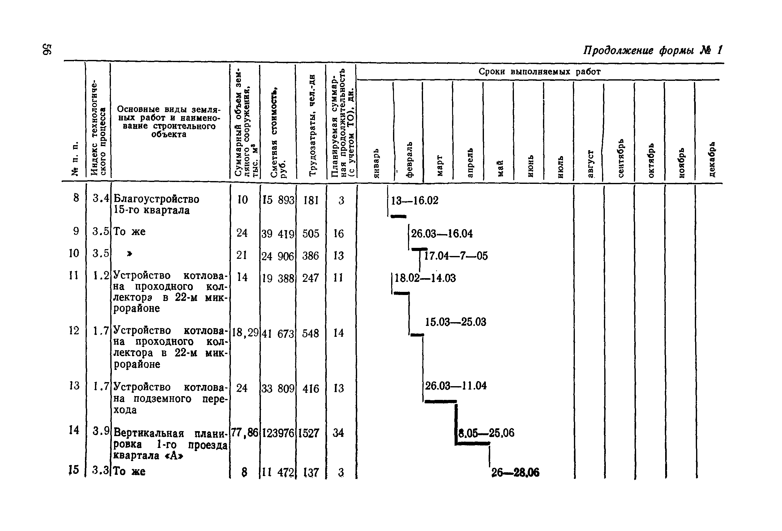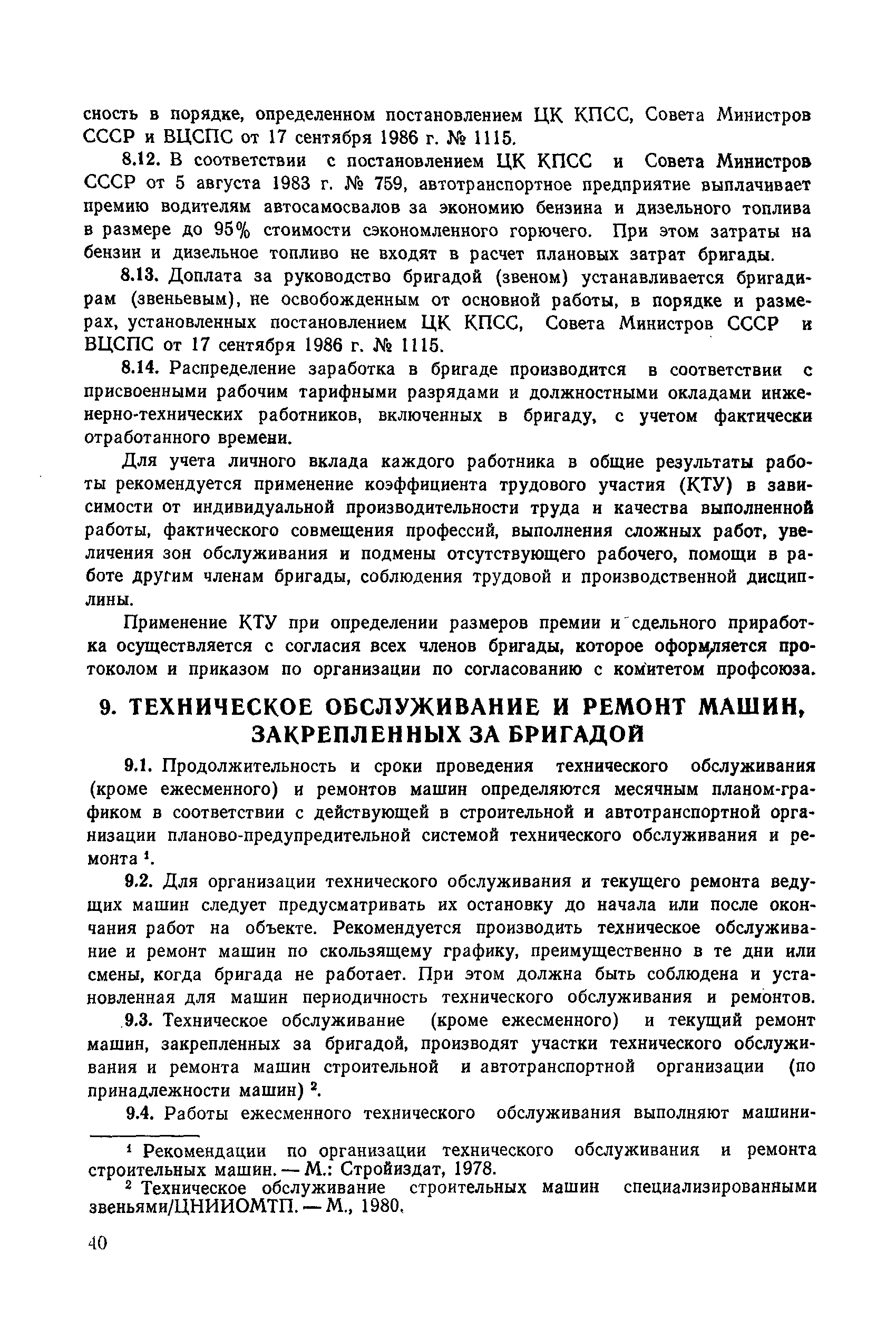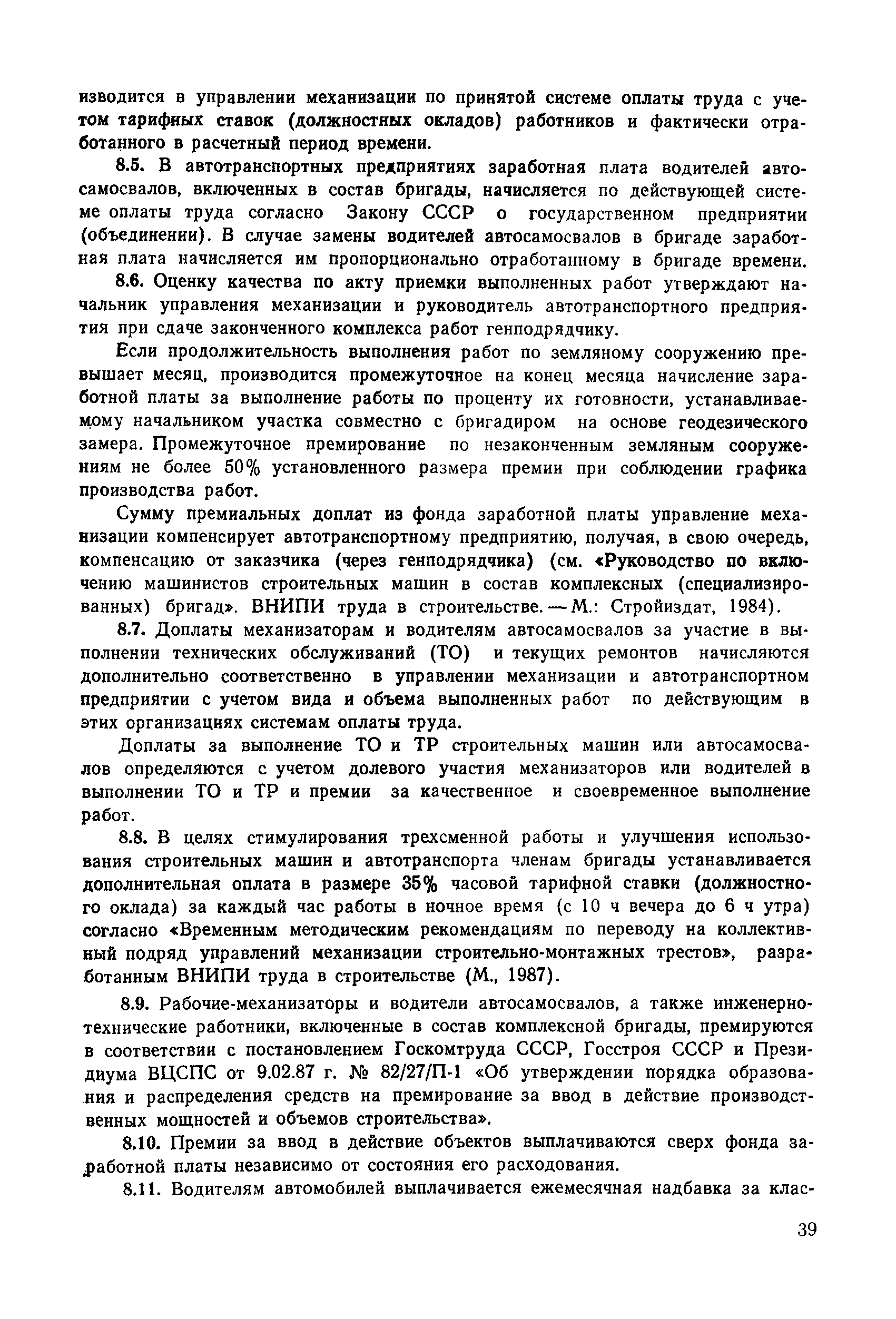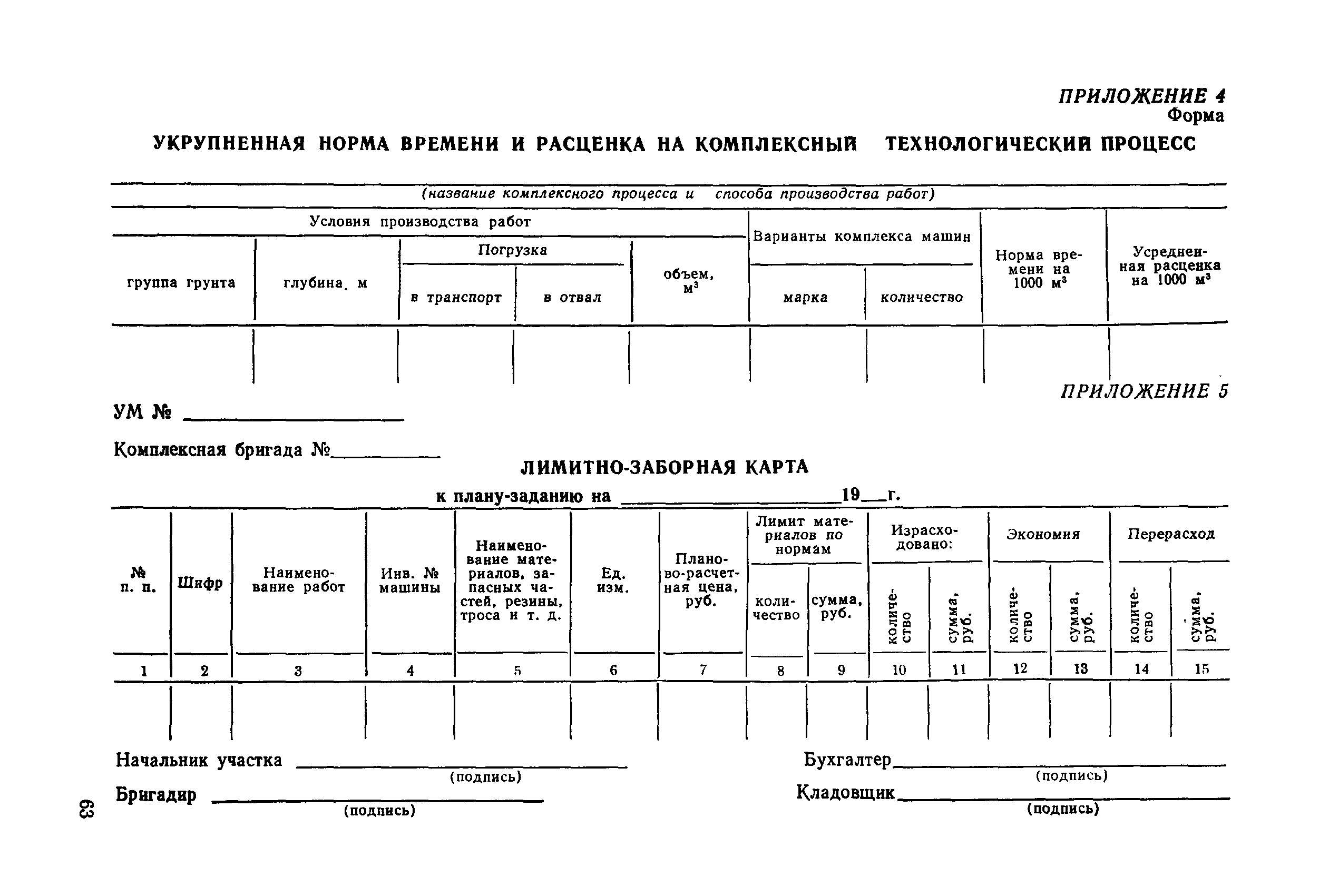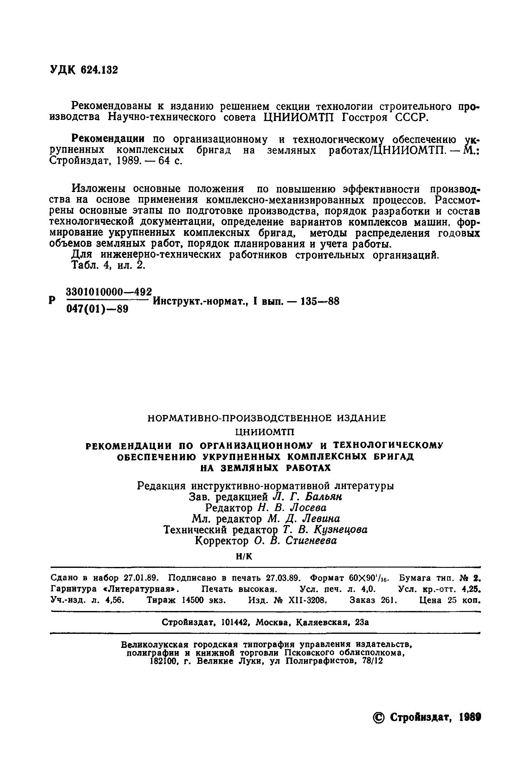 Рекомендации по организационному и технологическому обеспечению укрупненных комплексных бригад на земляных работах| Статус: | действует | | Название рус.: | Рекомендации по организационному и технологическому обеспечению укрупненных комплексных бригад на земляных работах | | Дата добавления в базу: | 01.09.2013 | | Дата актуализации: | 01.01.2021 | | Область применения: | В документе изложены основные положения по повышению эффективности производства на основе применения комплексно-механизированных процессов. Рассмотрены основные этапы по подготовке производства, порядок разработки и состав технологической документации, определения вариантов комплексов машин, формирование укрупненных комплексных бригад, методы распределения годовых объемов земляных работ, порядок планирования и учета работы. Для инженерно-технических работников строительных организаций. | | Оглавление: | Предисловие 1. Основные положения 2. Номенклатура земляных сооружений и комплексно-механизированных процессов 3. Определение основных показателей комплексно-механизированных процессов земляных работ 4. Эффективные варианты комплексов машин для различных условий производства земляных работ 5. Состав технологической карты комплексно-механизированного процесса производства земляных работ 6. Формирование укрупненных комплексных бригад и распределение между ними годовых объемов земляных работ 7. Планирование работы и составление задания укрупненным комплексным бригадам 8. Оплата и материальное поощрение труда рабочих укрупненной комплексной бригады 9. Техническое обслуживание и ремонт машин, закрепленных за бригадой 10. Нормативная база для укрупненной комплексной бригады 11. Учет работы укрупненных комплексных бригад 12. Правовые и экономические взаимоотношения управления механизации и управления автотранспорта Приложение 1. Пример распределения годового объема земляных работ по бригадам Приложение 2. Пример годового задания укрупненной комплексной бригаде на выполнение земляных работ Приложение 3. Пример определения состава комплексных укрупненных бригад в управлении механизации Приложение 4. Укрупненная норма времени и расценка на комплексный технологический процесс (форма) Приложение 5. Лимитно-заборная карта (форма) | | Разработан: | ЦНИИОМТП
