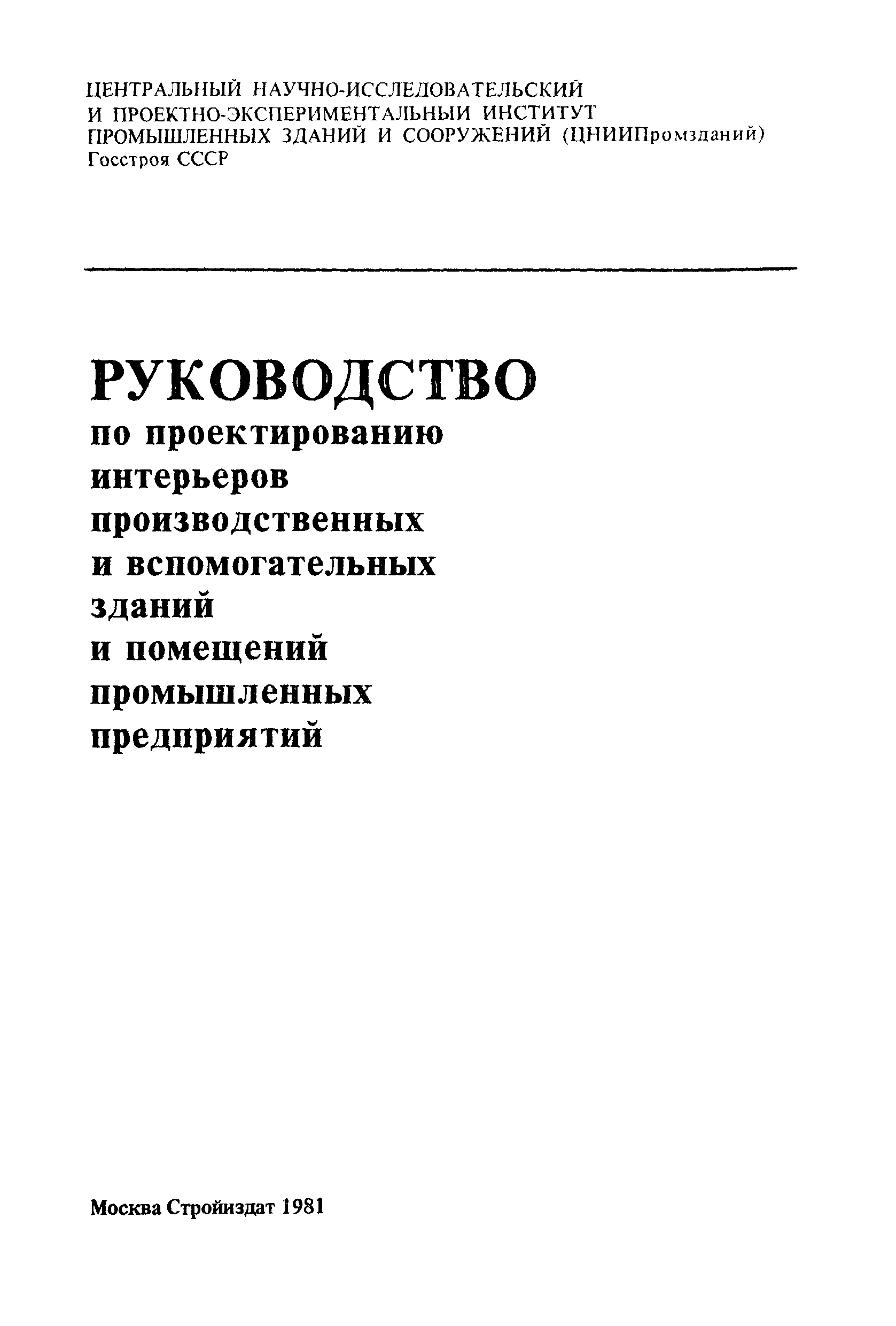 | Название рус.: | Руководство по проектированию интерьеров производственных и вспомогательных зданий и помещений промышленных предприятий |