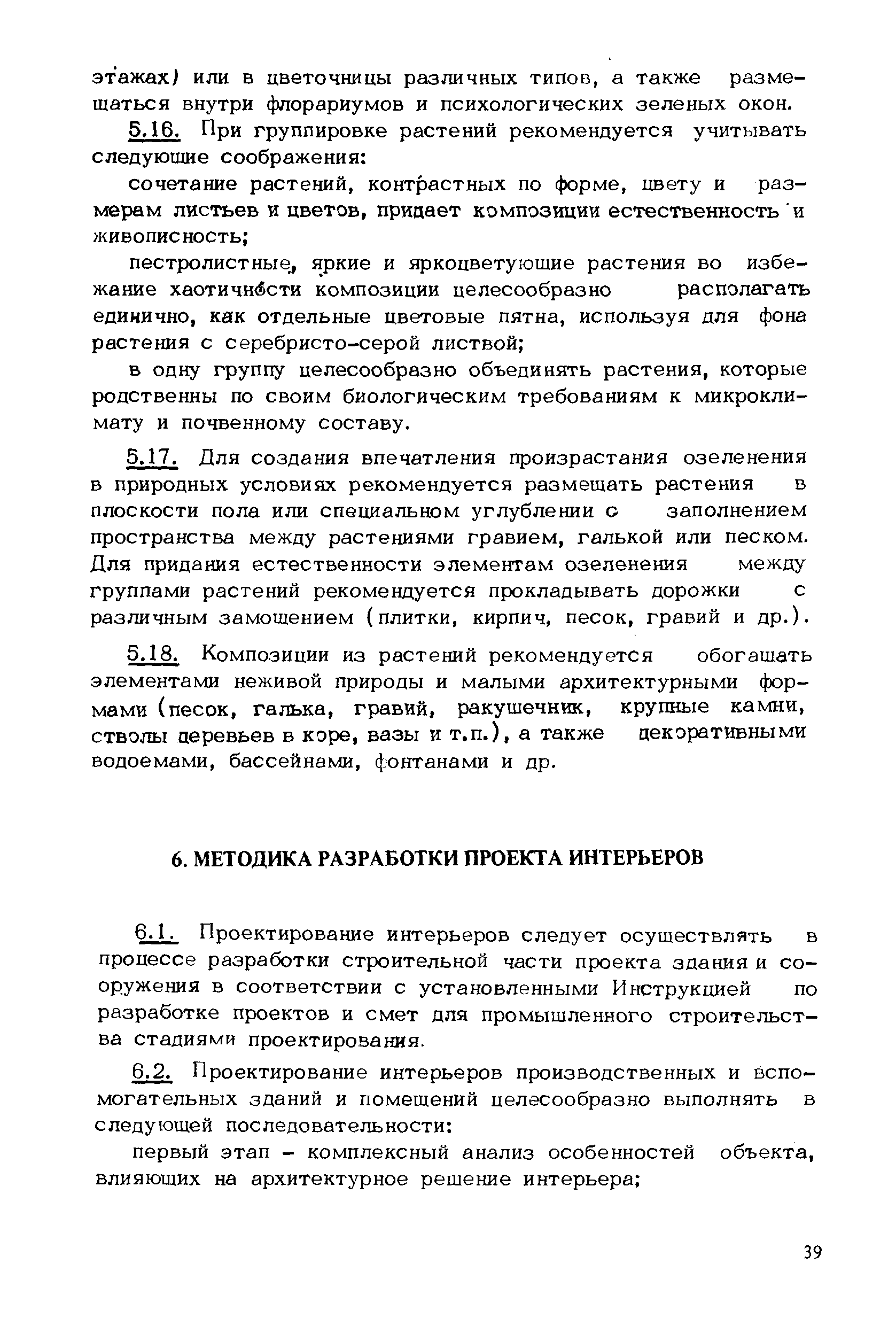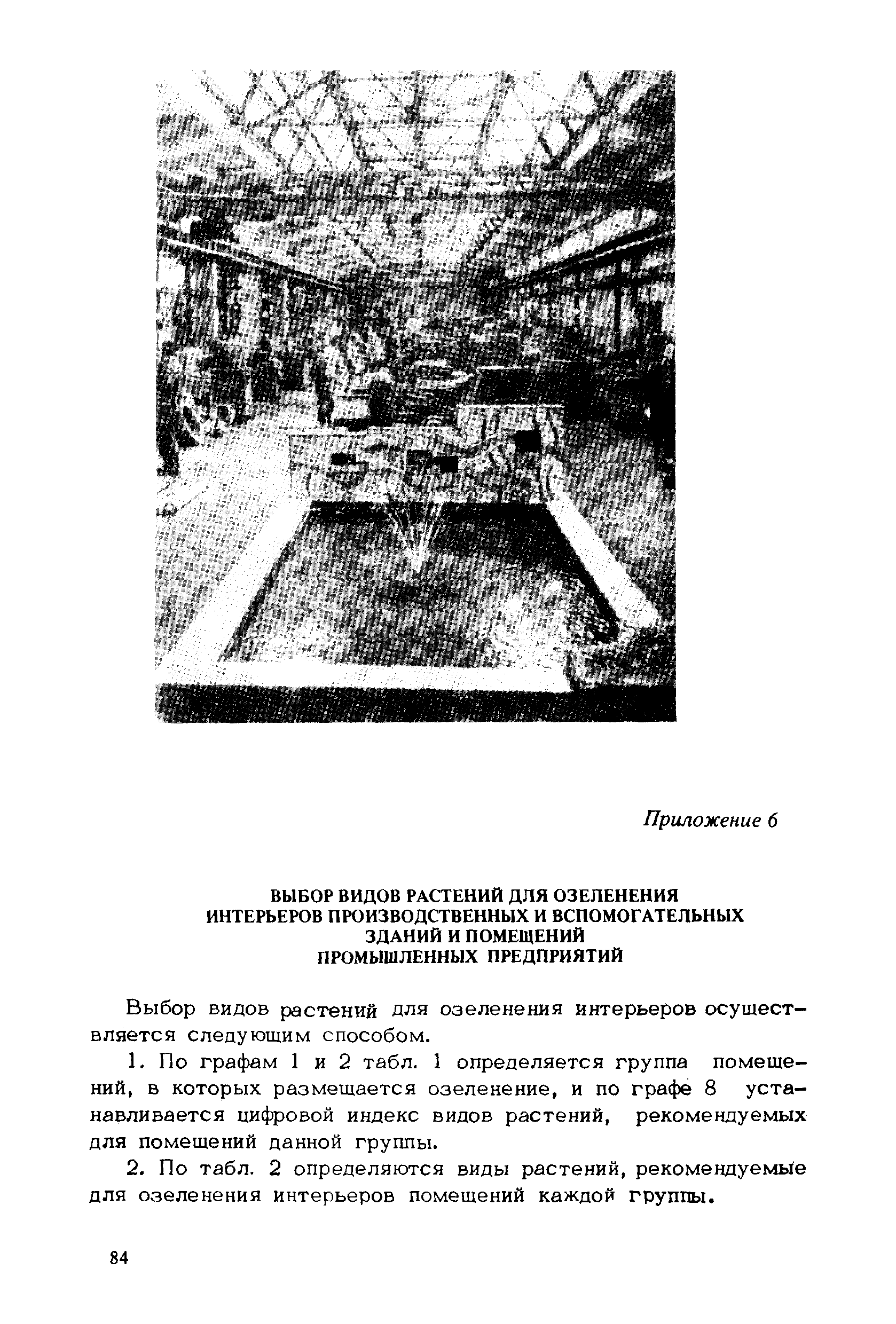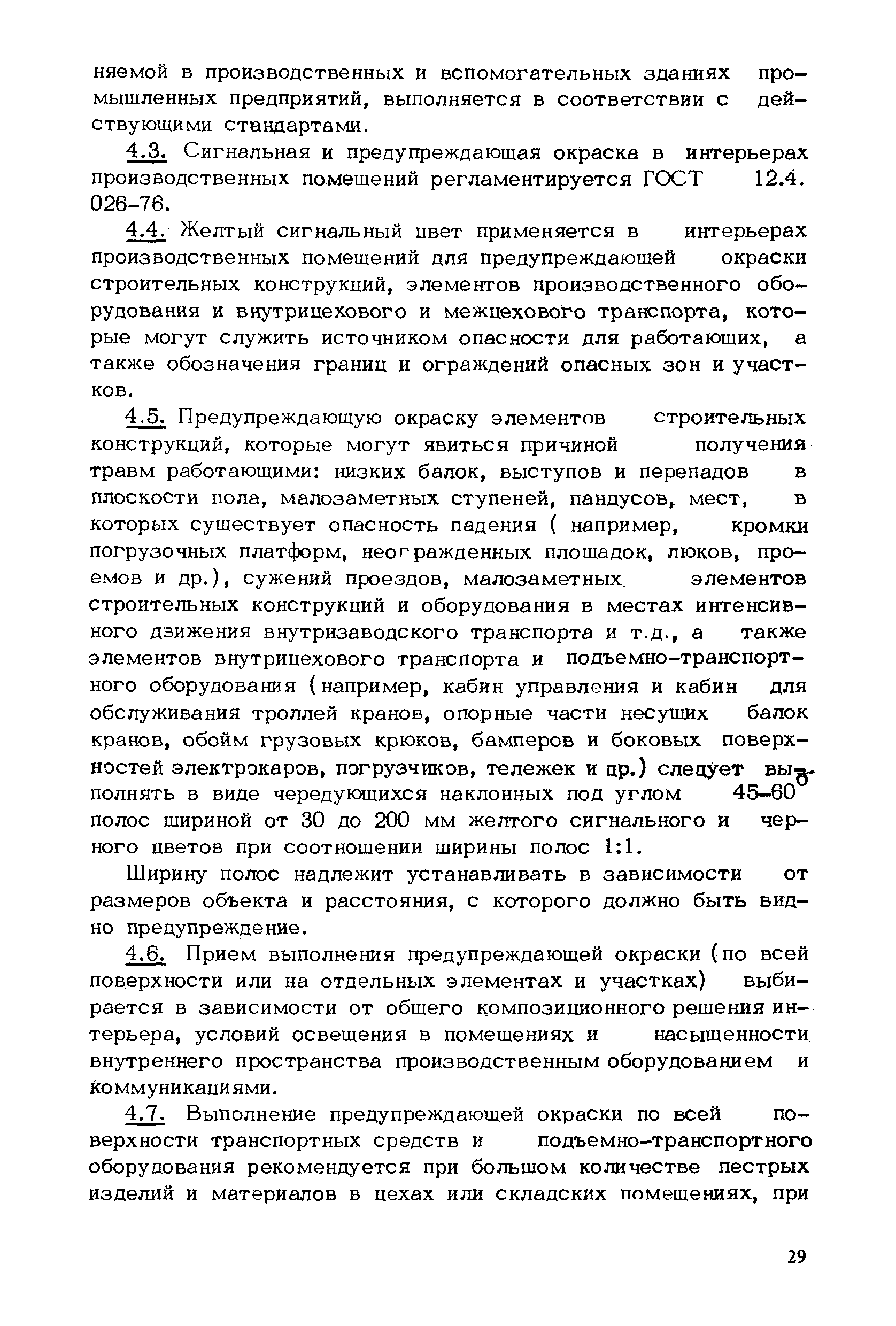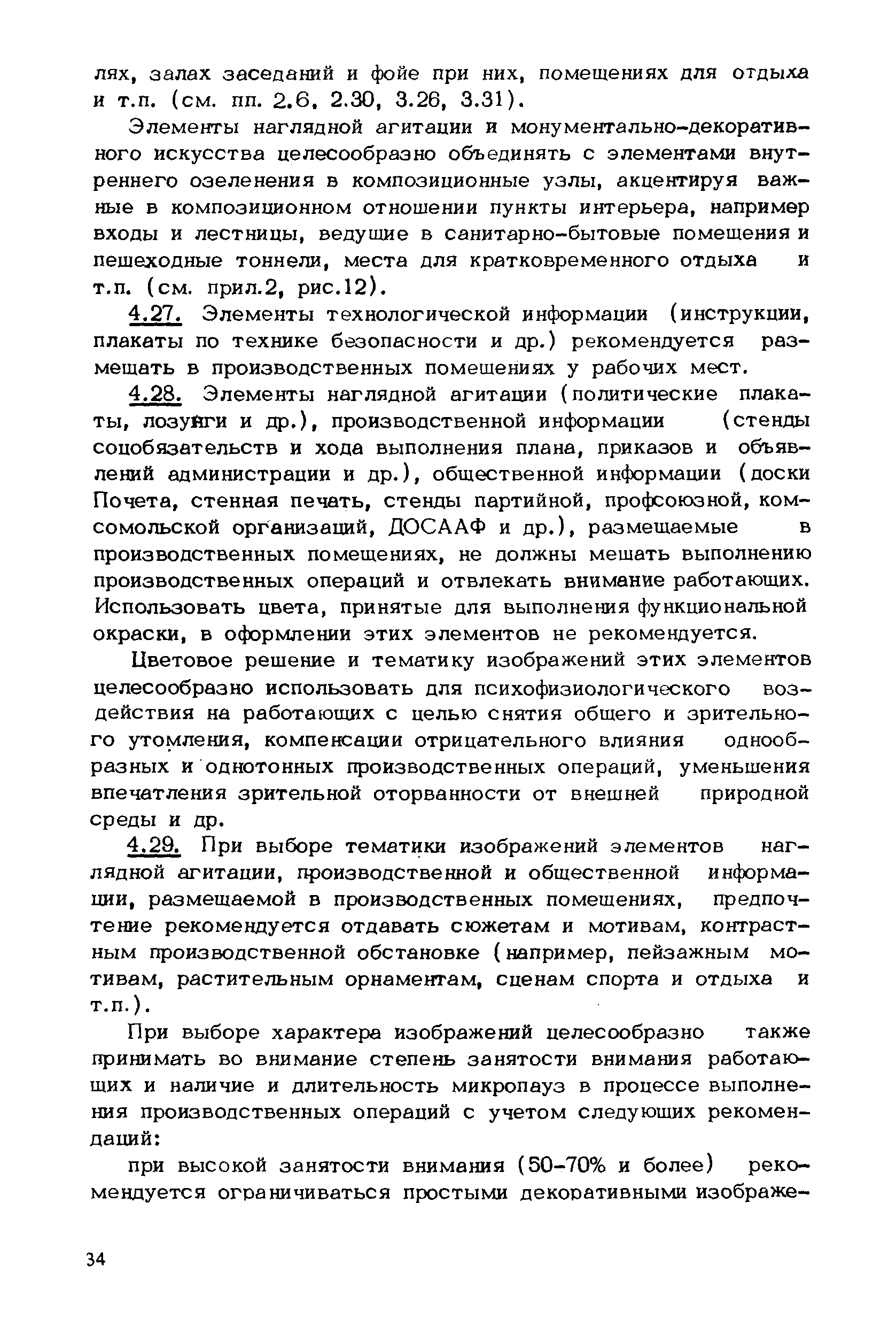 | Оглавление: | 1. Общие положения 2. Планировочная и пространственная организация интерьера Входные помещения Производственные помещения Вспомогательные помещения 3. Светоцветовая среда в интерьерах Входные помещения Производственные помещения Вспомогательные помещения 4. Элементы визуальной информации 5. Озеленение интерьеров 6. Методика разработки проекта интерьеров Приложение 1. Примеры планировочной и пространственной организации интерьеров входных помещений Приложение 2. Примеры планировочной и пространственной организации интерьеров производственных помещений Приложение 3. Примеры планировочной и пространственной организации интерьеров вспомогательных помещений Приложение 4. Учет фактуры и рисунка отделочных материалов и изделий Приложение 5. Примеры озеленения интерьеров производственных и вспомогательных помещений Приложение 6. Выбор видов растений для озеленения интерьеров производственных и вспомогательных зданий и помещений промышленных предприятий Приложение 7. Примерный состав и оформление проектной документации по архитектурному решению интерьеров производственных и вспомогательных зданий и помещений промышленных предприятий |