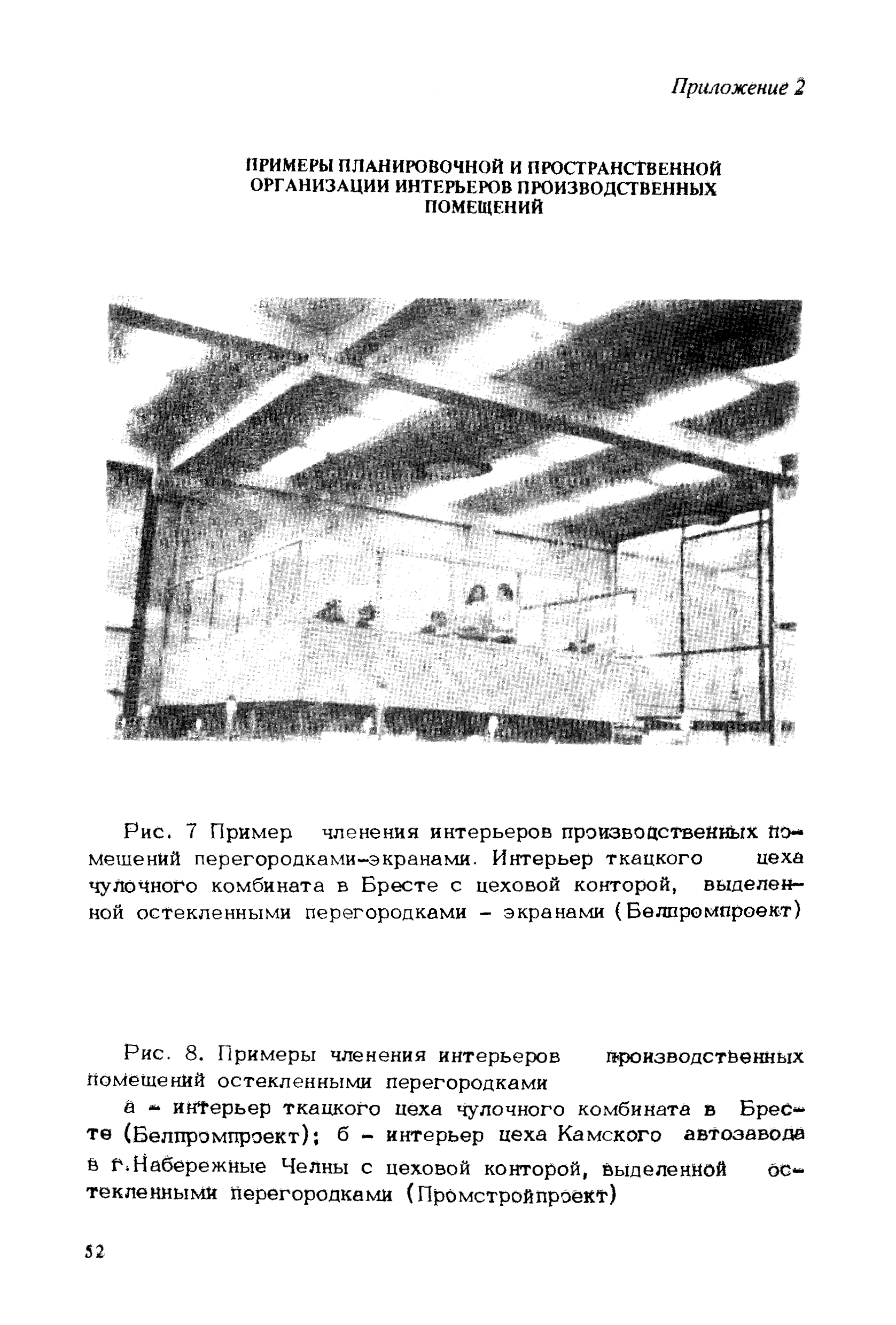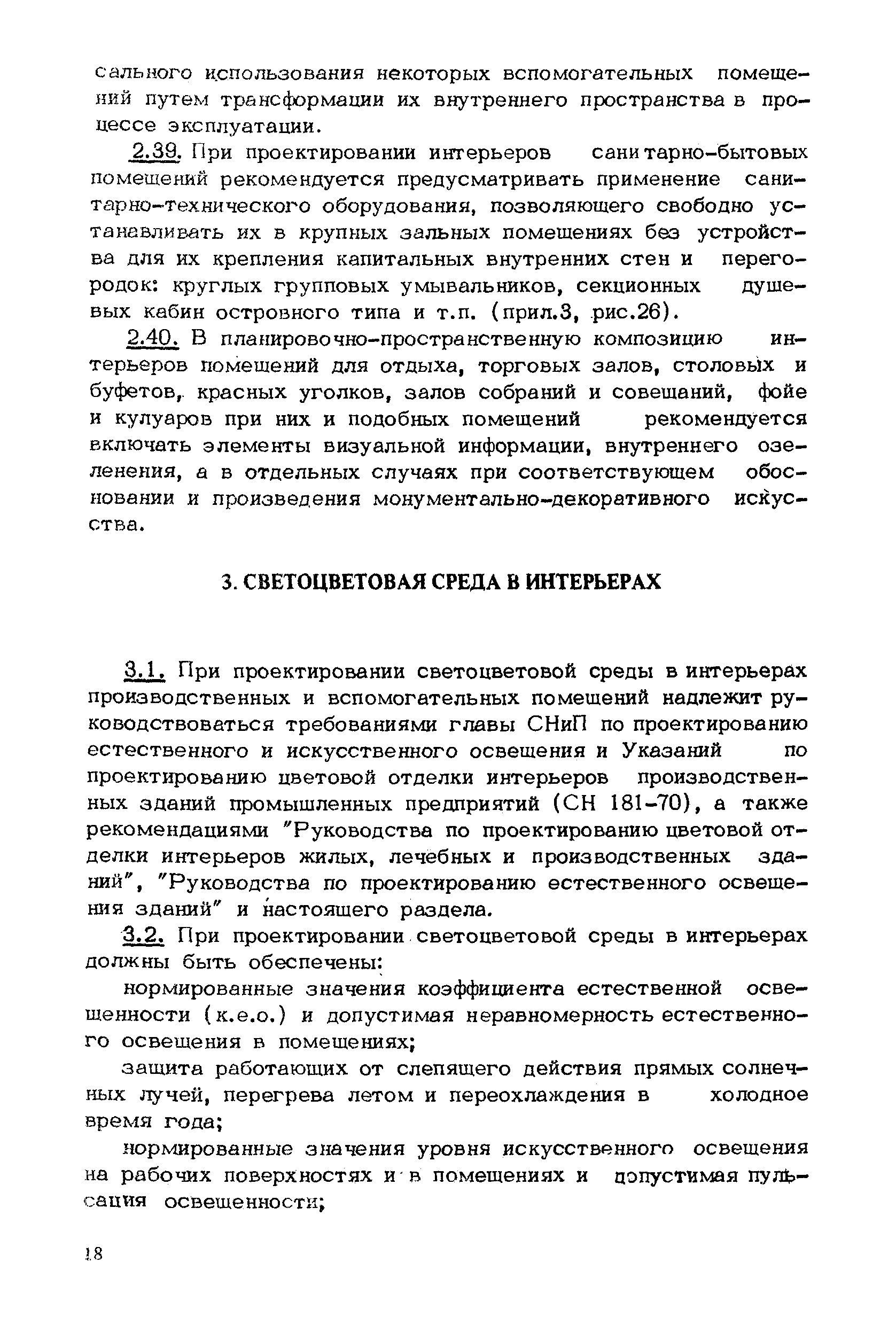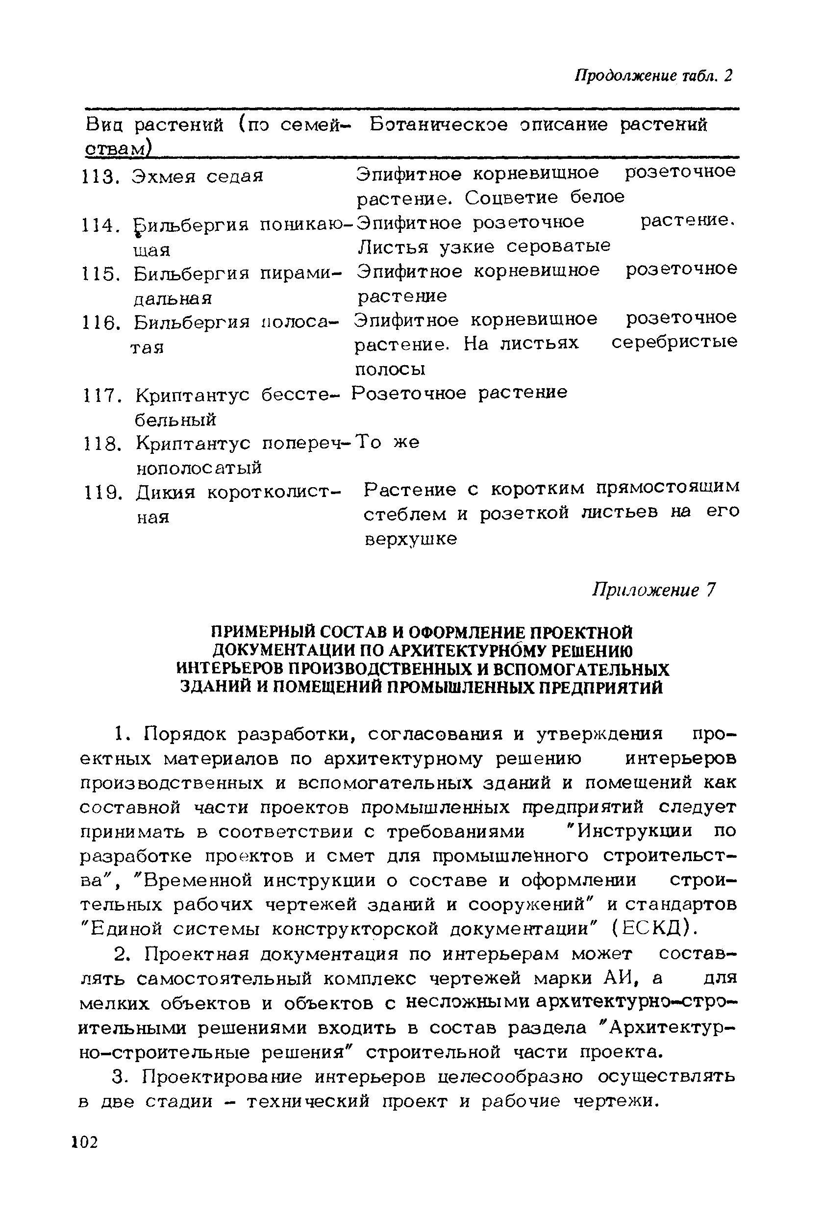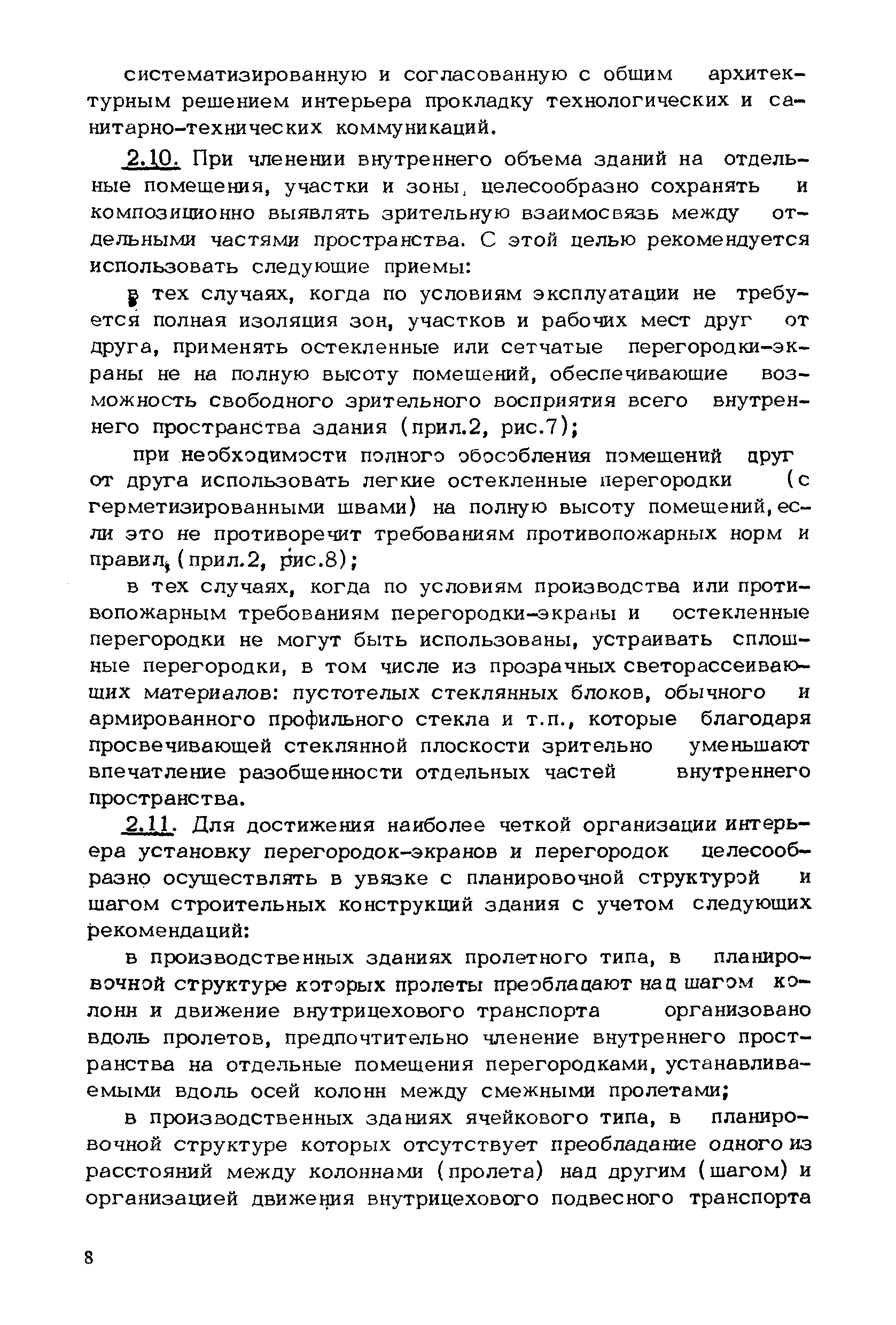 | Оглавление: | 1. Общие положения 2. Планировочная и пространственная организация интерьера Входные помещения Производственные помещения Вспомогательные помещения 3. Светоцветовая среда в интерьерах Входные помещения Производственные помещения Вспомогательные помещения 4. Элементы визуальной информации 5. Озеленение интерьеров 6. Методика разработки проекта интерьеров Приложение 1. Примеры планировочной и пространственной организации интерьеров входных помещений Приложение 2. Примеры планировочной и пространственной организации интерьеров производственных помещений Приложение 3. Примеры планировочной и пространственной организации интерьеров вспомогательных помещений Приложение 4. Учет фактуры и рисунка отделочных материалов и изделий Приложение 5. Примеры озеленения интерьеров производственных и вспомогательных помещений Приложение 6. Выбор видов растений для озеленения интерьеров производственных и вспомогательных зданий и помещений промышленных предприятий Приложение 7. Примерный состав и оформление проектной документации по архитектурному решению интерьеров производственных и вспомогательных зданий и помещений промышленных предприятий |