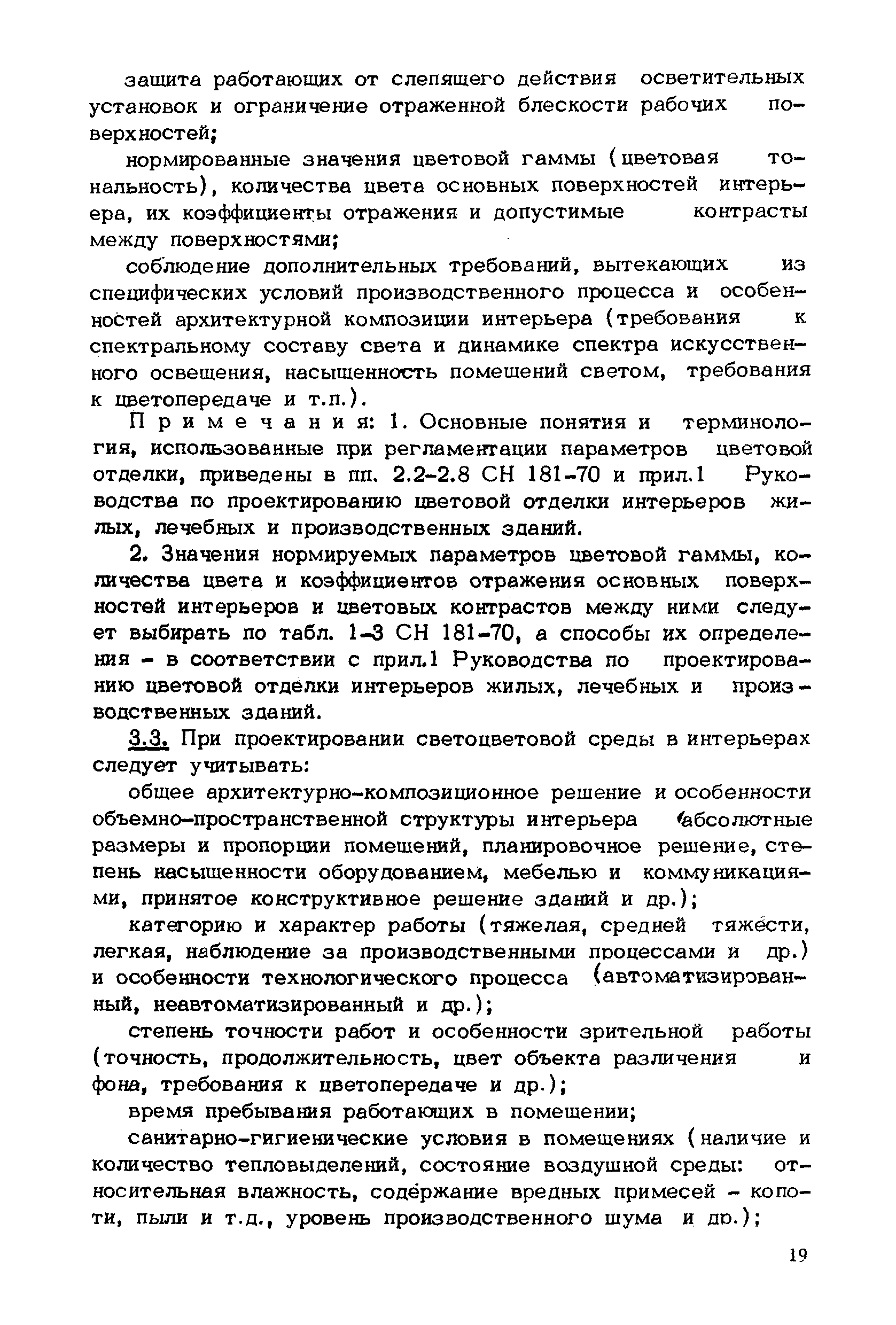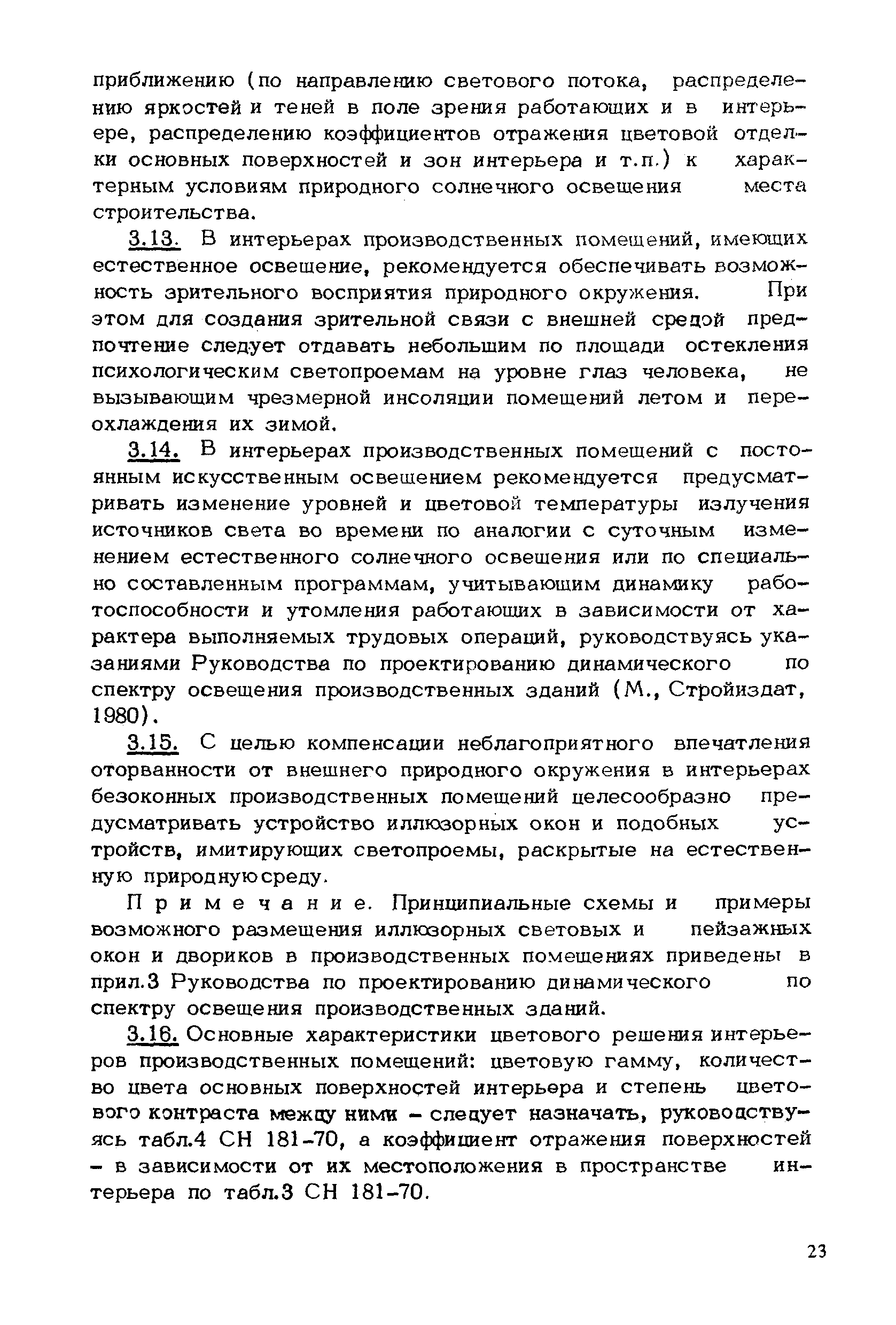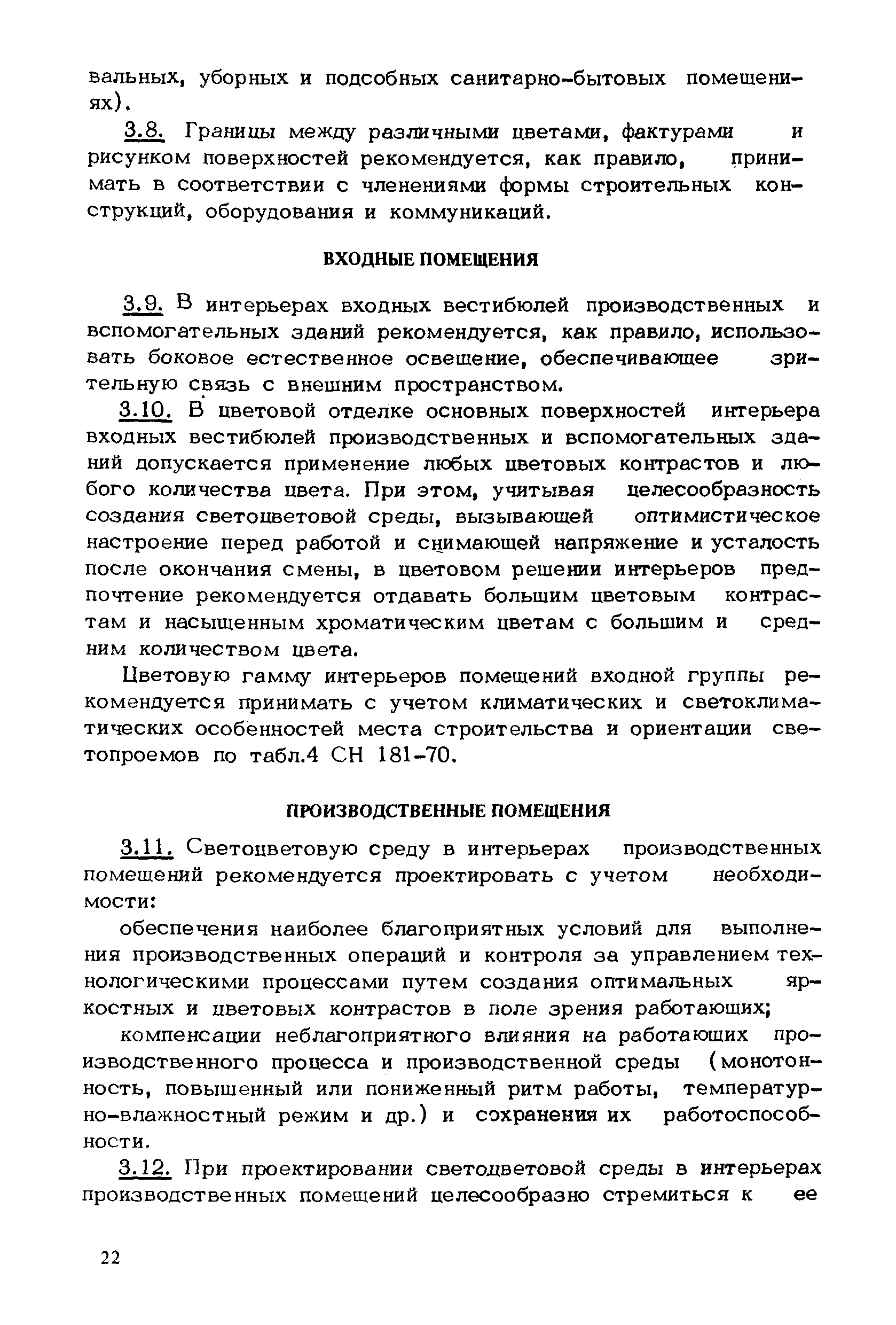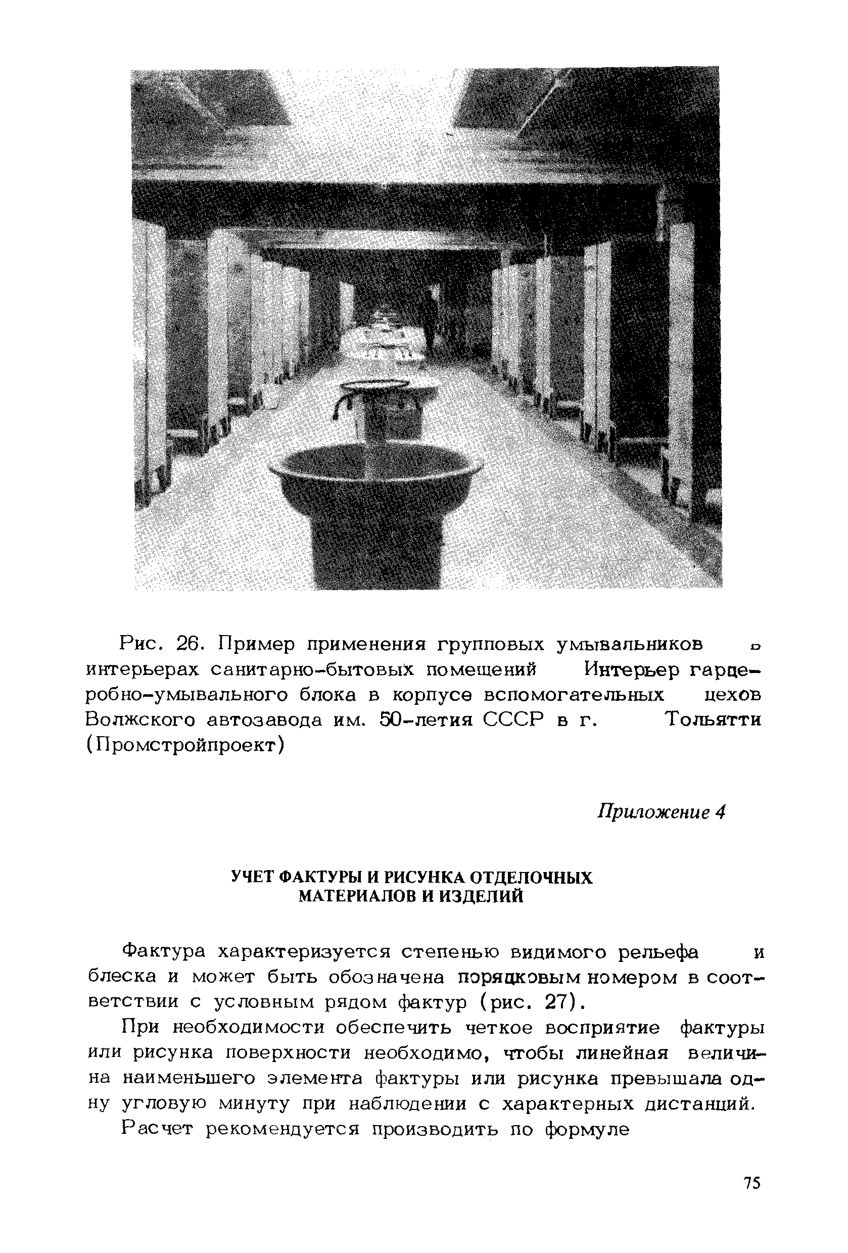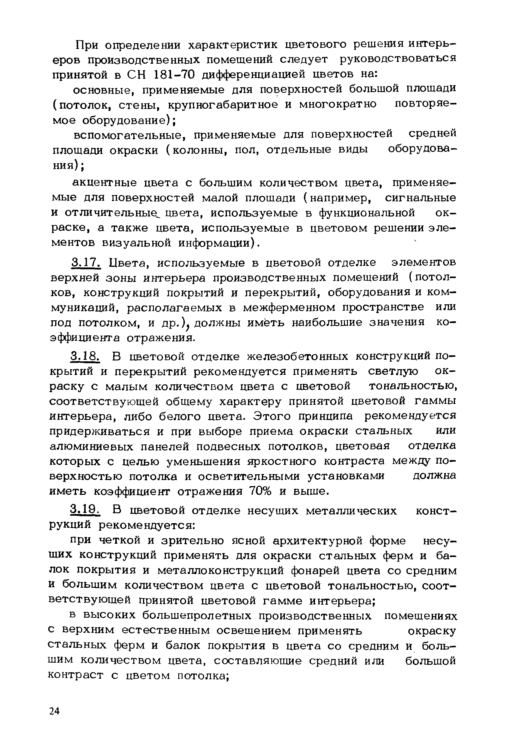| Оглавление: | 1. Общие положения 2. Планировочная и пространственная организация интерьера Входные помещения Производственные помещения Вспомогательные помещения 3. Светоцветовая среда в интерьерах Входные помещения Производственные помещения Вспомогательные помещения 4. Элементы визуальной информации 5. Озеленение интерьеров 6. Методика разработки проекта интерьеров Приложение 1. Примеры планировочной и пространственной организации интерьеров входных помещений Приложение 2. Примеры планировочной и пространственной организации интерьеров производственных помещений Приложение 3. Примеры планировочной и пространственной организации интерьеров вспомогательных помещений Приложение 4. Учет фактуры и рисунка отделочных материалов и изделий Приложение 5. Примеры озеленения интерьеров производственных и вспомогательных помещений Приложение 6. Выбор видов растений для озеленения интерьеров производственных и вспомогательных зданий и помещений промышленных предприятий Приложение 7. Примерный состав и оформление проектной документации по архитектурному решению интерьеров производственных и вспомогательных зданий и помещений промышленных предприятий |