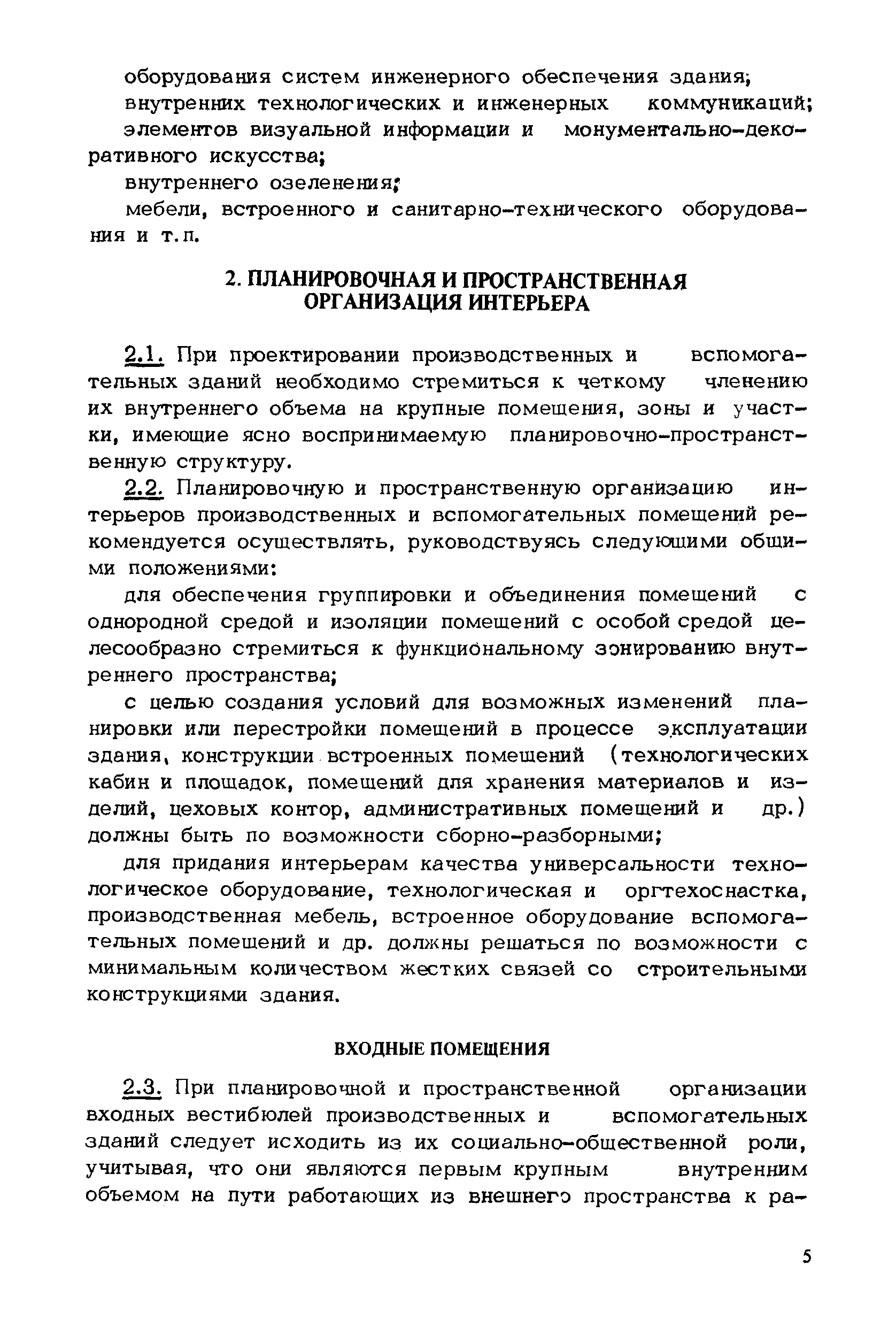 | Область применения: | Документ распространяется на проектирование интерьеров вновь строящихся и реконструируемых производственных и вспомогательных зданий и помещений промышленных предприятий. |