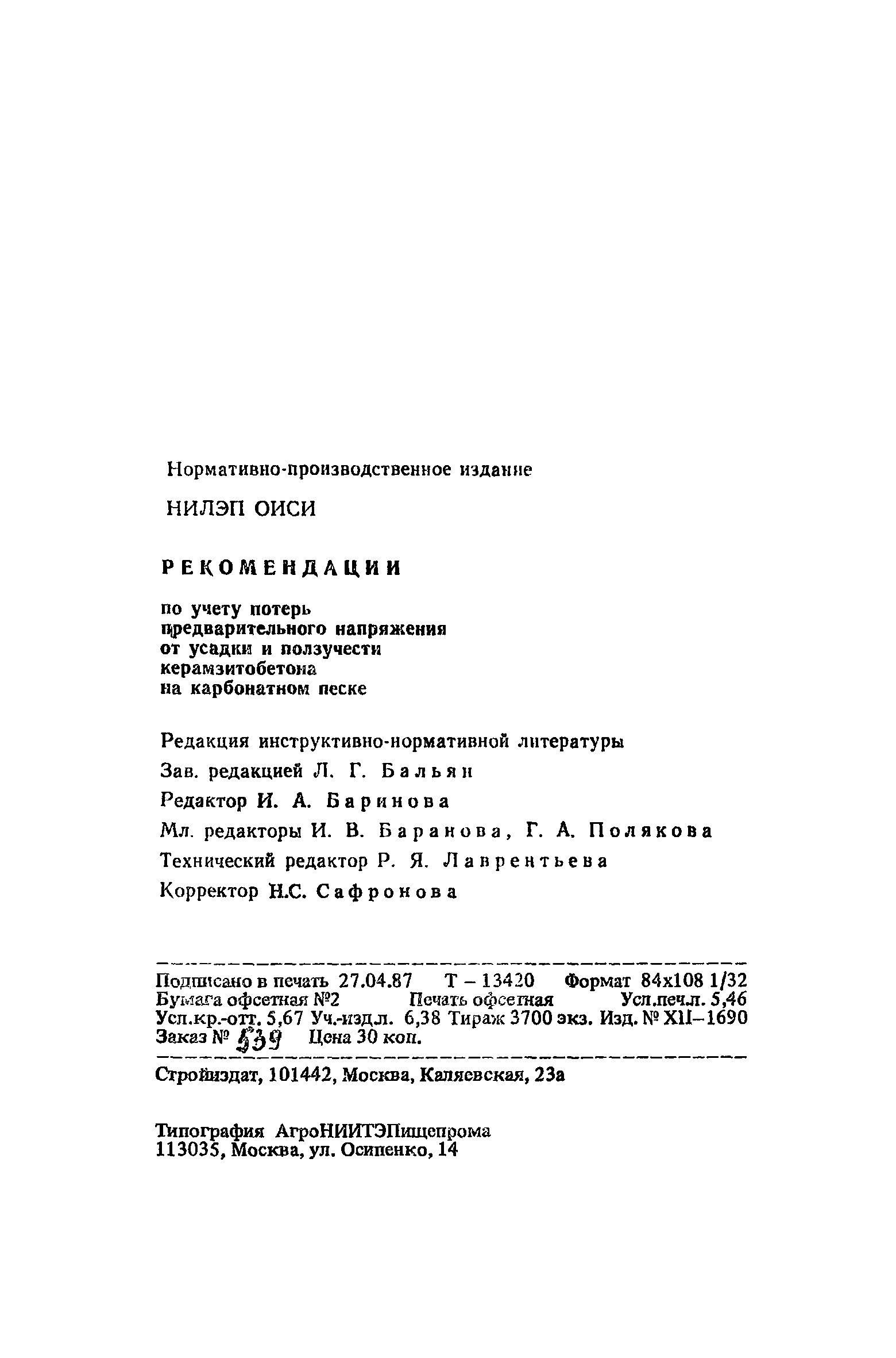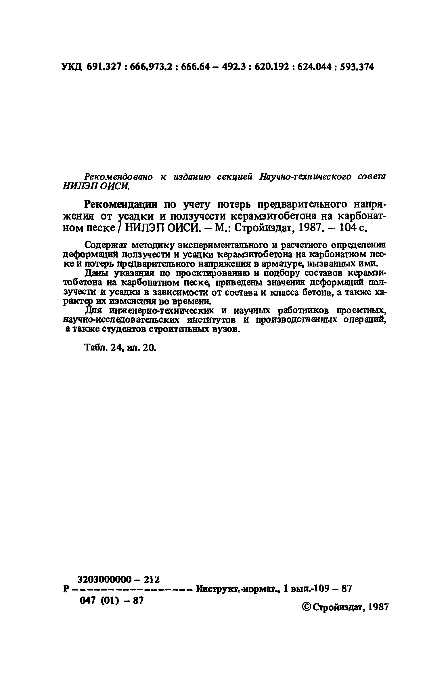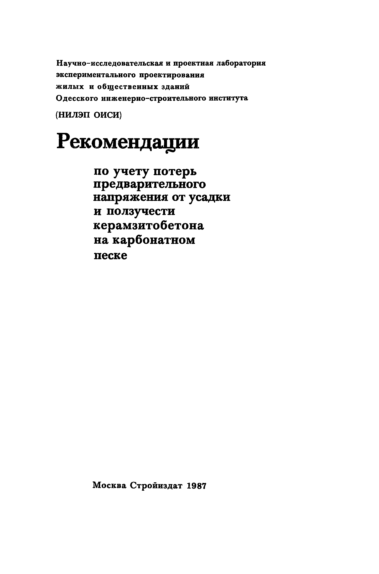 | Название рус.: | Рекомендации по учету потерь предварительного напряжения от усадки и ползучести керамзитобетона на карбонатном песке |