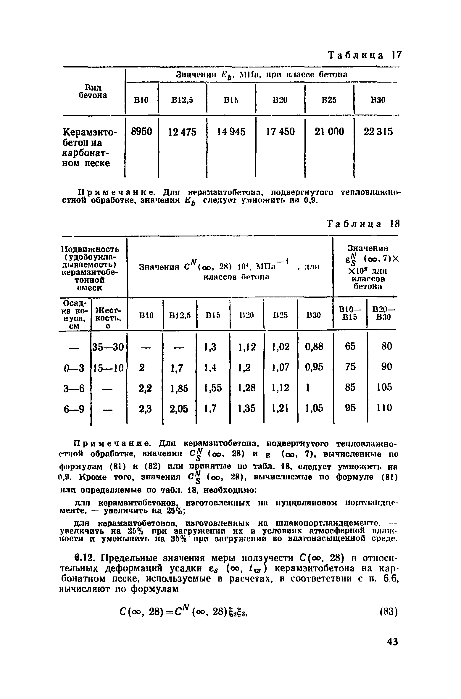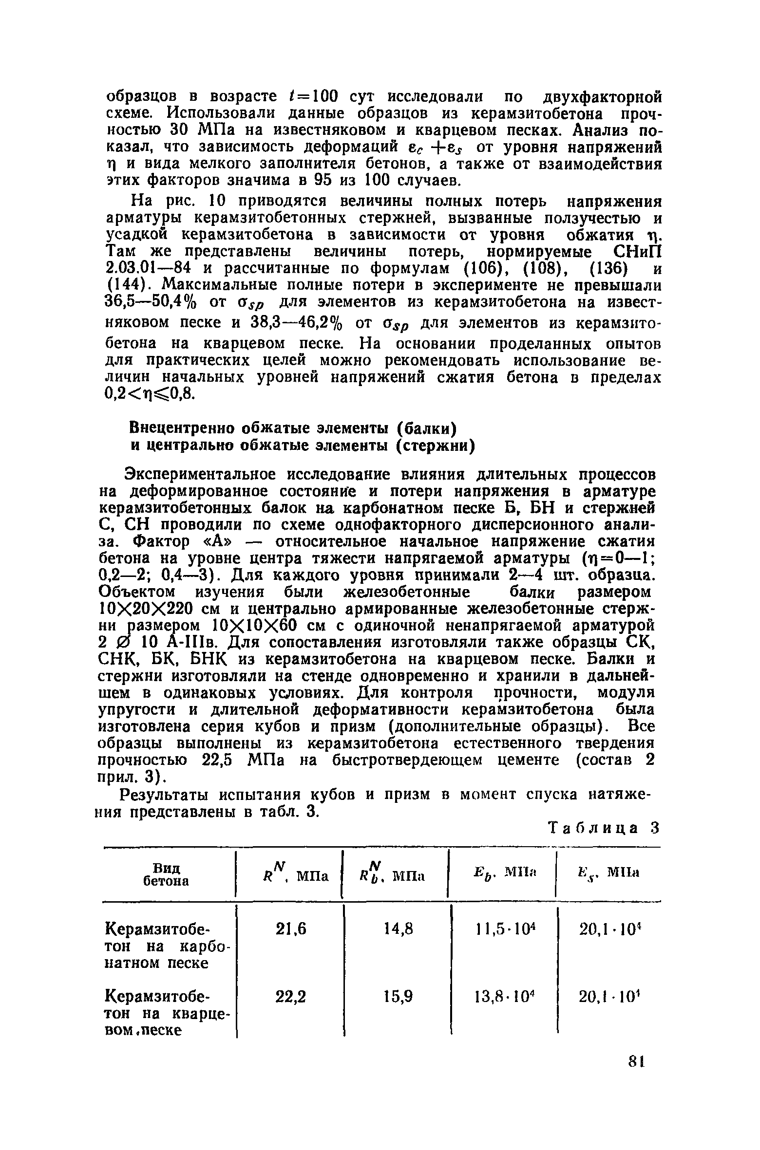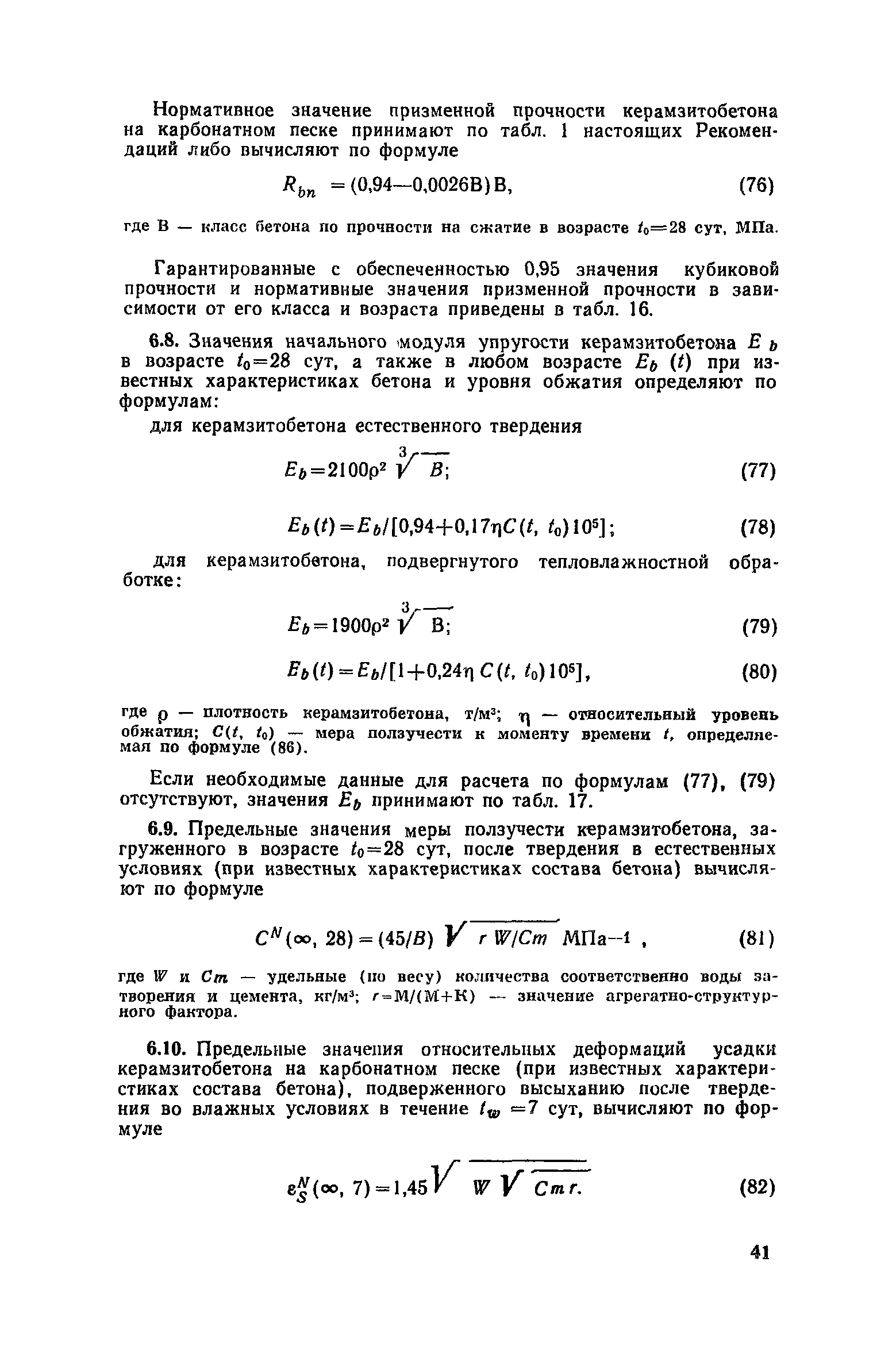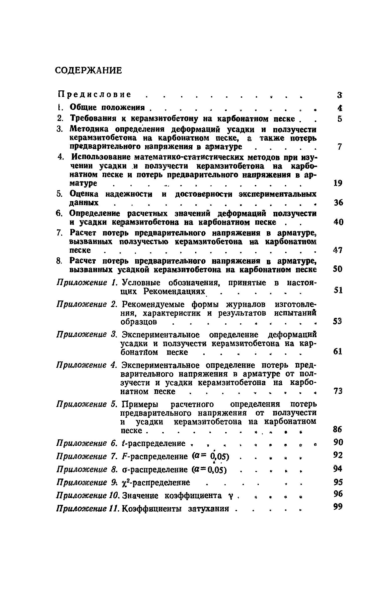 | Оглавление: | Предисловие 1. Общие требования 2. Требования к керамзитобетону на карбонатном песке 3. Методика определения деформаций усадки и ползучести керамзитобетона на карбонатном песке, а также потерь предварительного напряжения в арматуре 4. Использование математико-статических методов при изучении усадки и ползучести керамзитобетона на карбонатном песке и потерь предварительного напряжения в арматуре 5. Оценка надежности и достоверности экспериментальных данных 6. Определение расчетных значений деформаций ползучести и усадки керамзитобетона на карбонатном песке 7. Расчет потерь предварительного напряжения в арматуре, вызванных ползучестью керамзитобетона на карбонатном песке 8. Расчет потерь предварительного напряжения в арматуре, вызванных усадкой керамзитобетона на карбонатном песке Приложение 1. Условные обозначения, принятые в настоящих Рекомендациях Приложение 2. Рекомендуемые формы журналов изготовления, характеристик и результатов испытаний образцов Приложение 3. Экспериментальное определение деформаций усадки и ползучести керамзитобетона на карбонатном песке Приложение 4. Экспериментальное определение потерь предварительного напряжения в арматуре от ползучести и усадки керамзитобетона на карбонатном песке Приложение 5. Примеры расчетного определения потерь предварительного напряжения от ползучести и усадки керамзитобетона на карбонатном песке Приложение 6. t-распределение Приложение 7. F-распределение (a=0,05) Приложение 8. Сигма-распределение (a=0,05) Приложение 9. Х2-распределение Приложение 10. Значение коэффициента Y Приложение 11. Коэффициенты затухания |