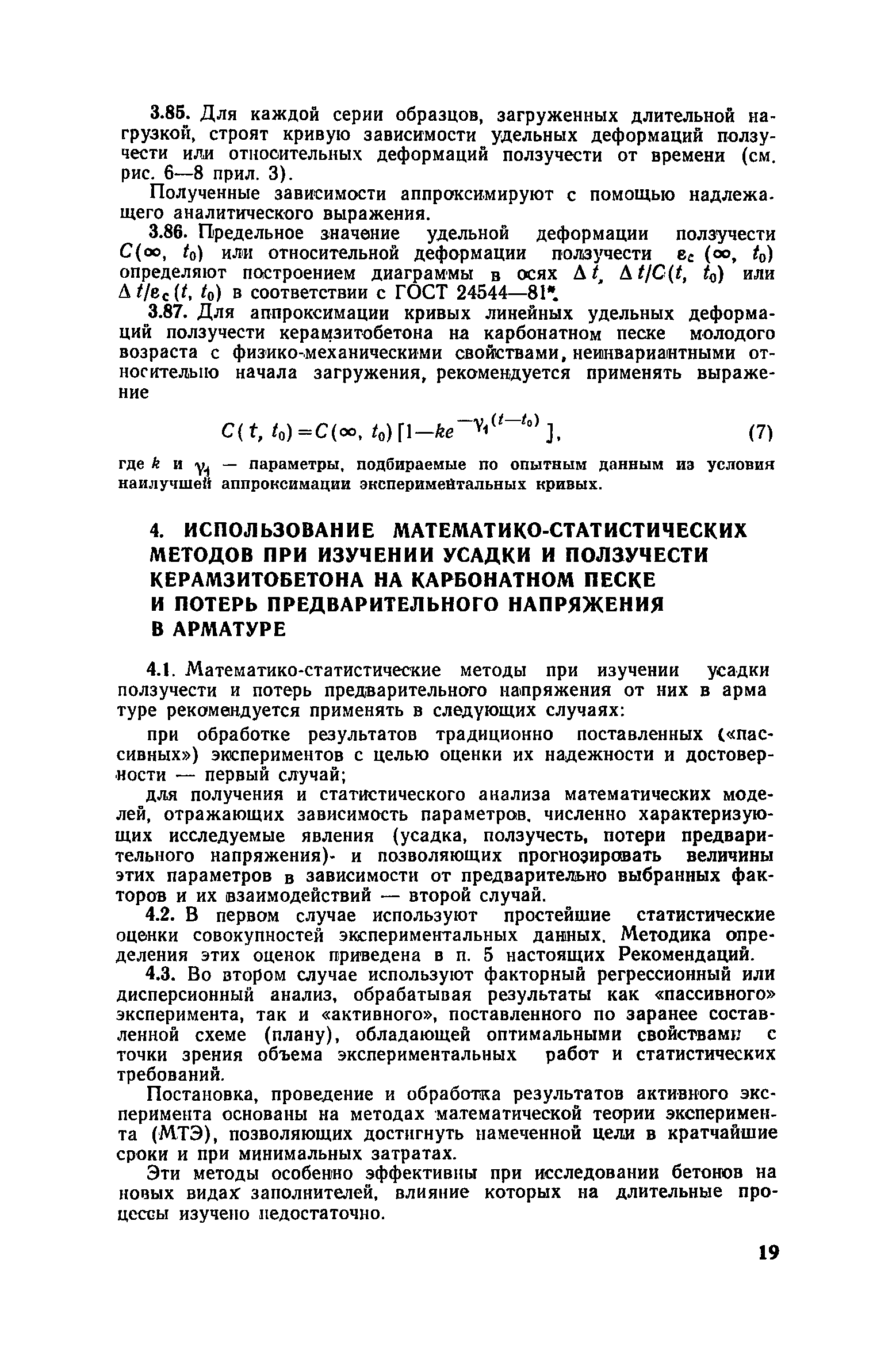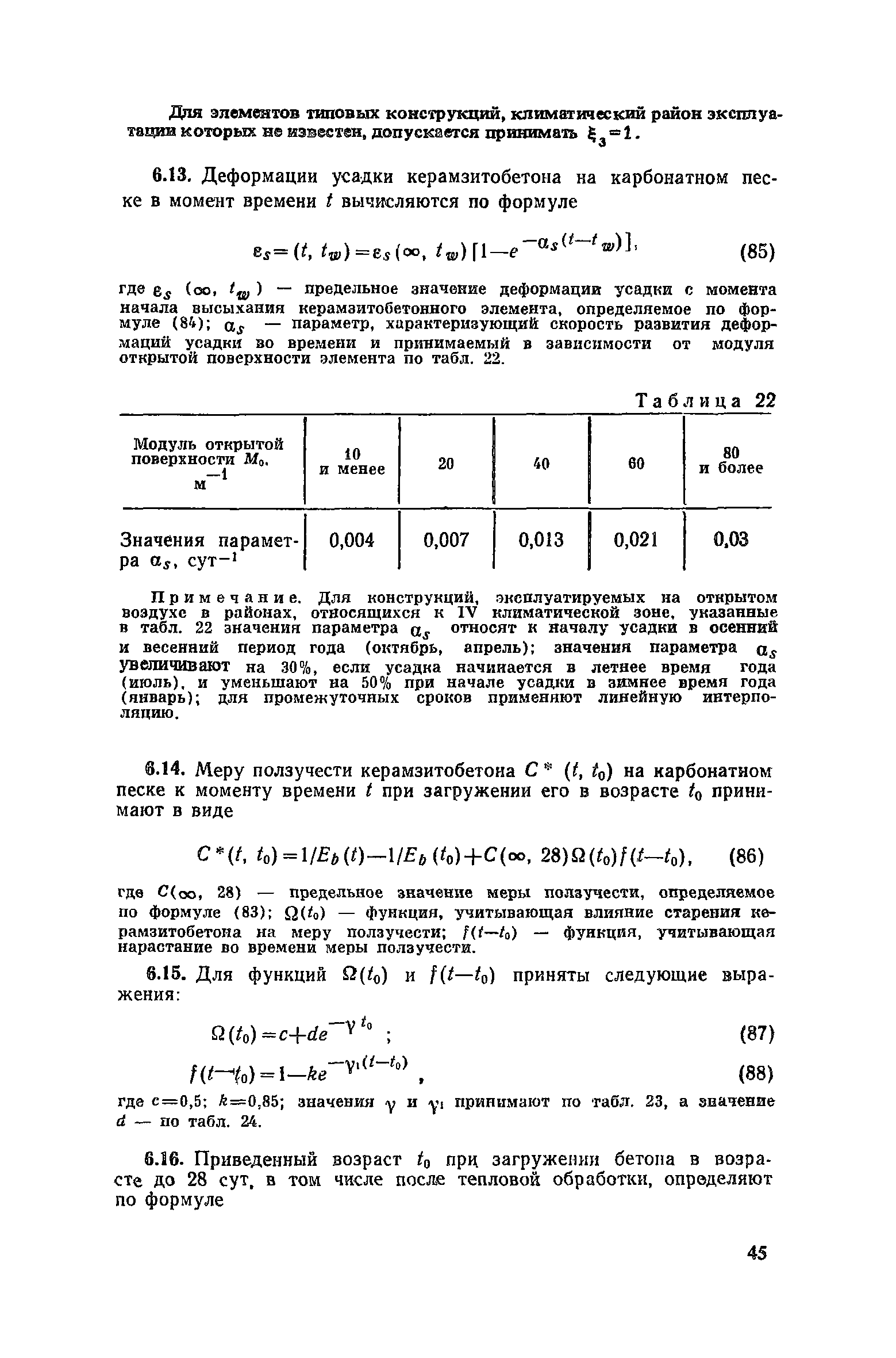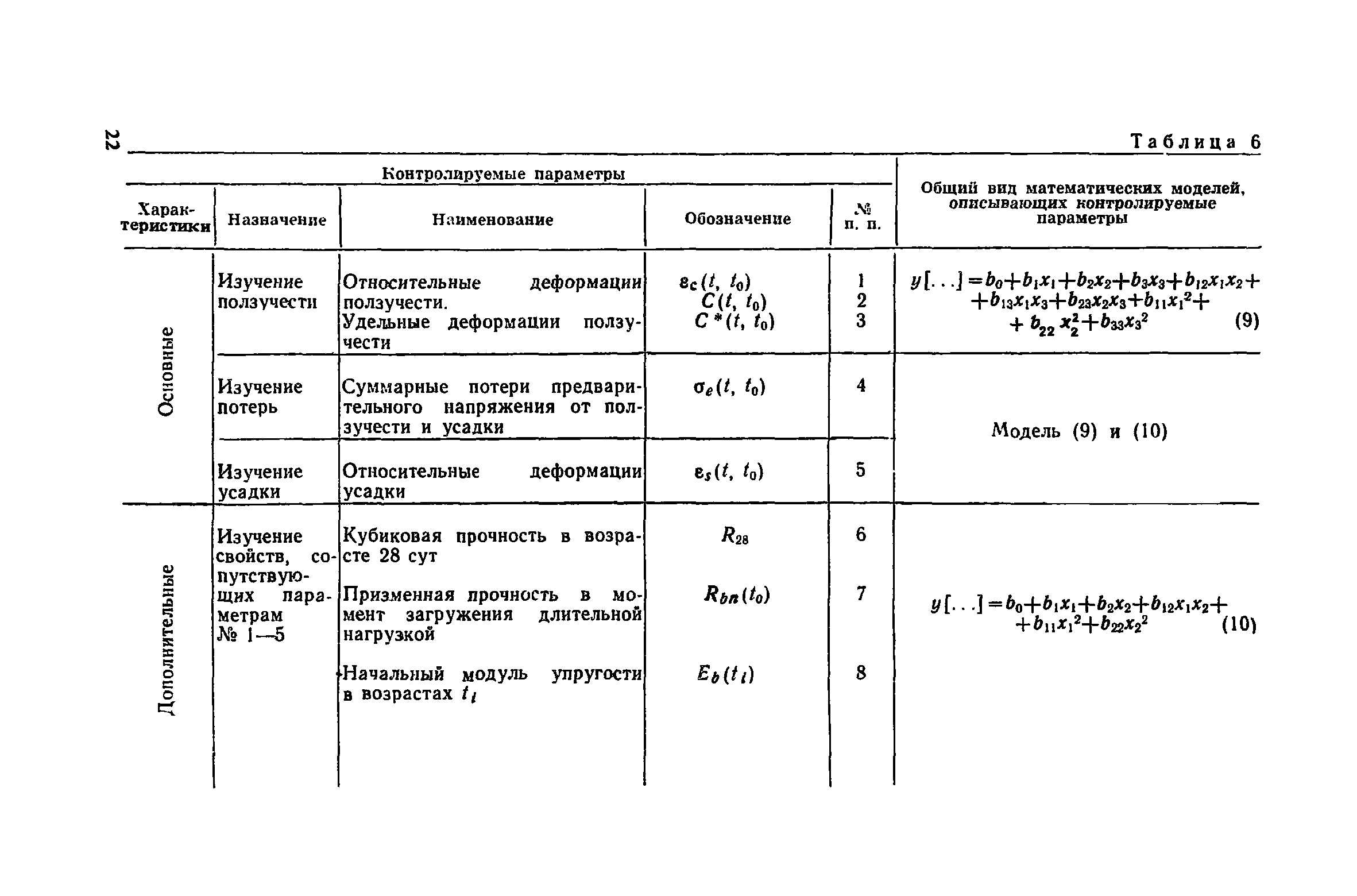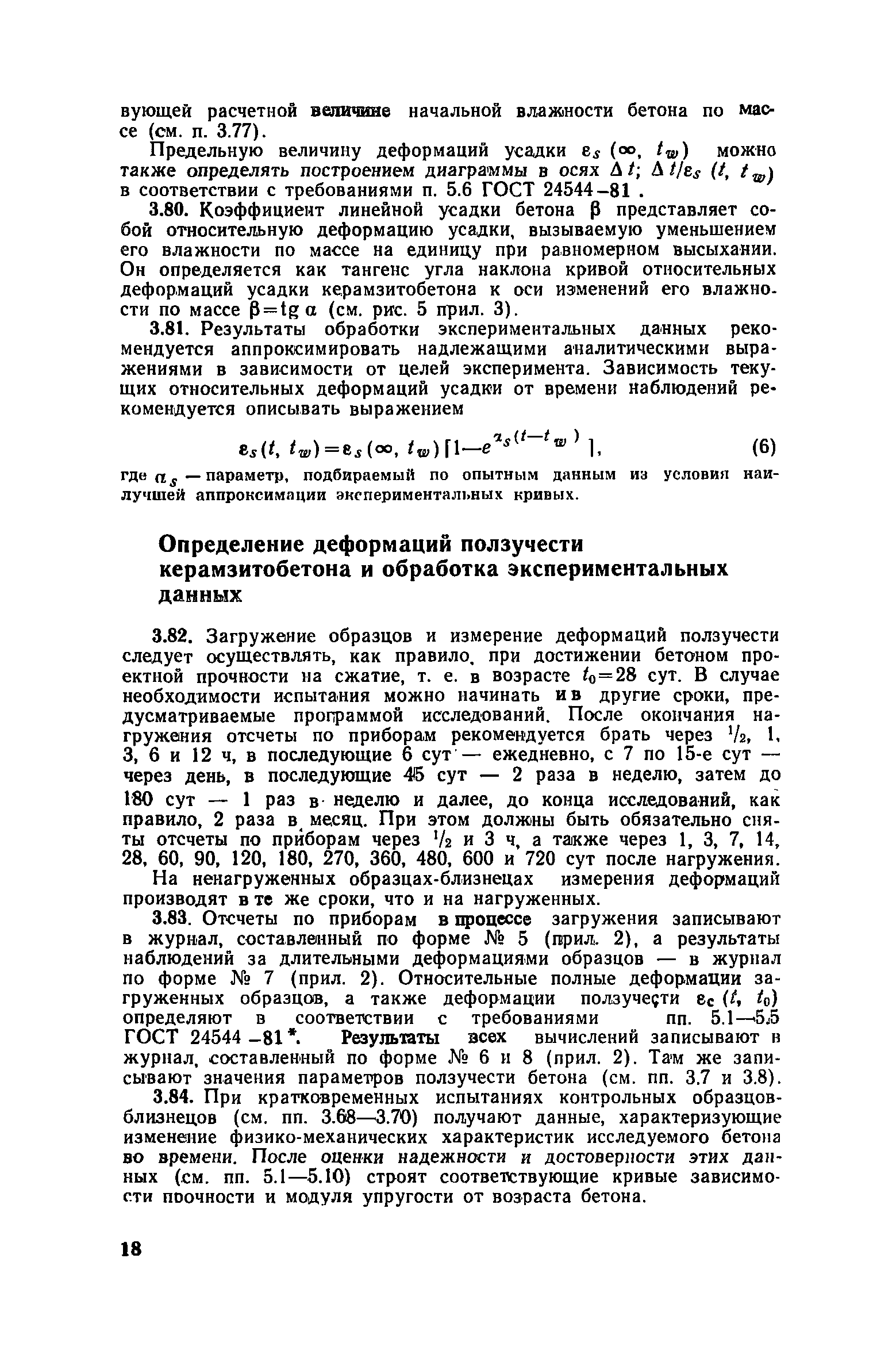 | Оглавление: | Предисловие 1. Общие требования 2. Требования к керамзитобетону на карбонатном песке 3. Методика определения деформаций усадки и ползучести керамзитобетона на карбонатном песке, а также потерь предварительного напряжения в арматуре 4. Использование математико-статических методов при изучении усадки и ползучести керамзитобетона на карбонатном песке и потерь предварительного напряжения в арматуре 5. Оценка надежности и достоверности экспериментальных данных 6. Определение расчетных значений деформаций ползучести и усадки керамзитобетона на карбонатном песке 7. Расчет потерь предварительного напряжения в арматуре, вызванных ползучестью керамзитобетона на карбонатном песке 8. Расчет потерь предварительного напряжения в арматуре, вызванных усадкой керамзитобетона на карбонатном песке Приложение 1. Условные обозначения, принятые в настоящих Рекомендациях Приложение 2. Рекомендуемые формы журналов изготовления, характеристик и результатов испытаний образцов Приложение 3. Экспериментальное определение деформаций усадки и ползучести керамзитобетона на карбонатном песке Приложение 4. Экспериментальное определение потерь предварительного напряжения в арматуре от ползучести и усадки керамзитобетона на карбонатном песке Приложение 5. Примеры расчетного определения потерь предварительного напряжения от ползучести и усадки керамзитобетона на карбонатном песке Приложение 6. t-распределение Приложение 7. F-распределение (a=0,05) Приложение 8. Сигма-распределение (a=0,05) Приложение 9. Х2-распределение Приложение 10. Значение коэффициента Y Приложение 11. Коэффициенты затухания |
