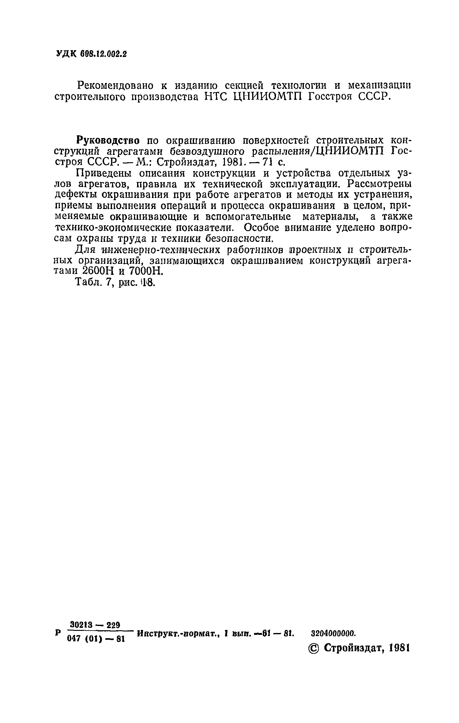 | Область применения: | В документе приведены описания конструкции и устройства отдельных узлов агрегатов, правила их технической эксплуатации. Рассмотрены дефекты окрашивания при работе агрегатов и методы их устранения, приемы выполнения операций и процесса окрашивания в целом, применяемые окрашивающие и вспомогательные материалы, а также технико-экономические показатели. Особое внимание уделено вопросам охраны труда и техники безопасности. |