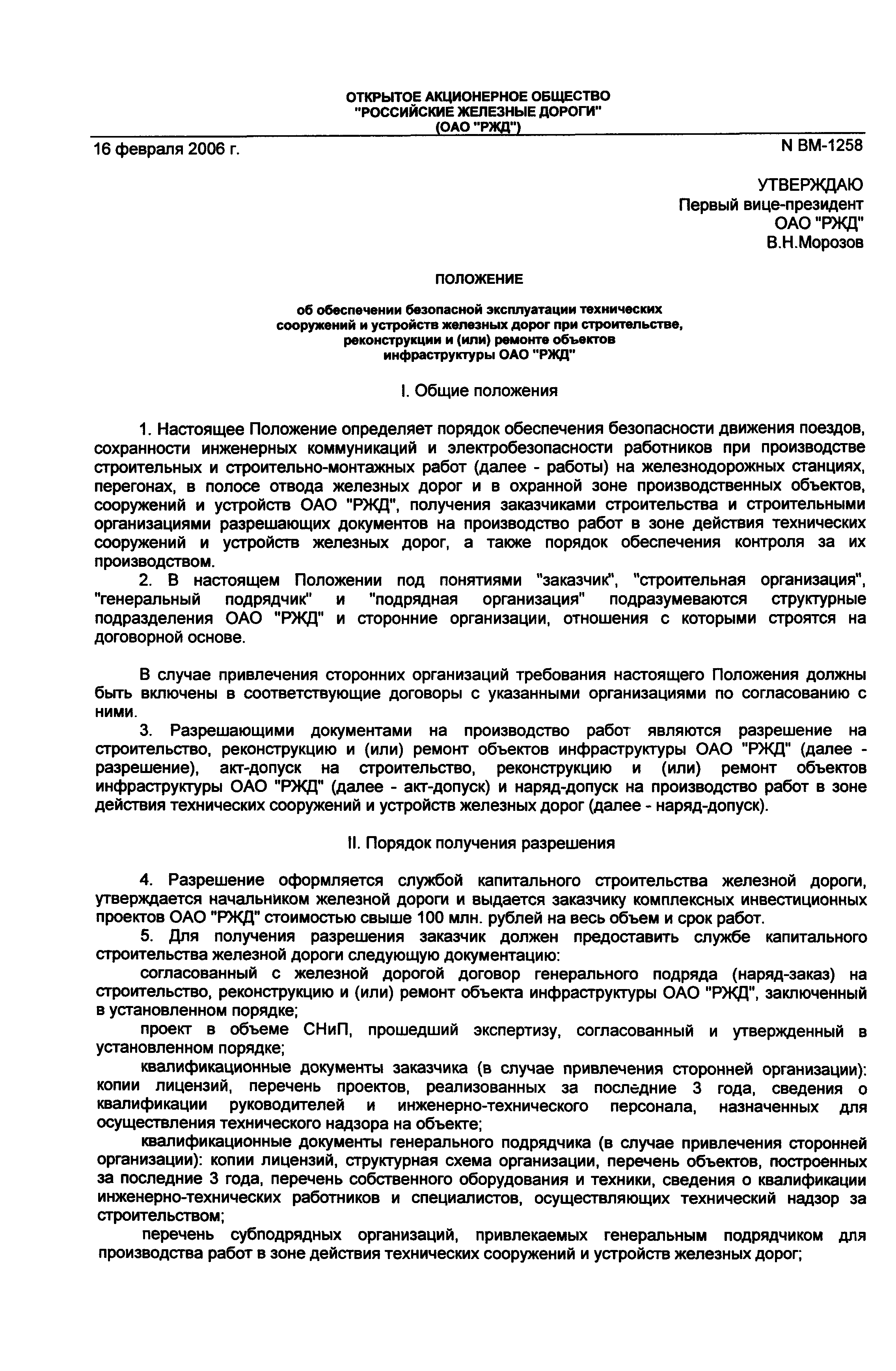 | Утверждён: | 16.02.2006 ОАО РЖД (ВМ-1258) |