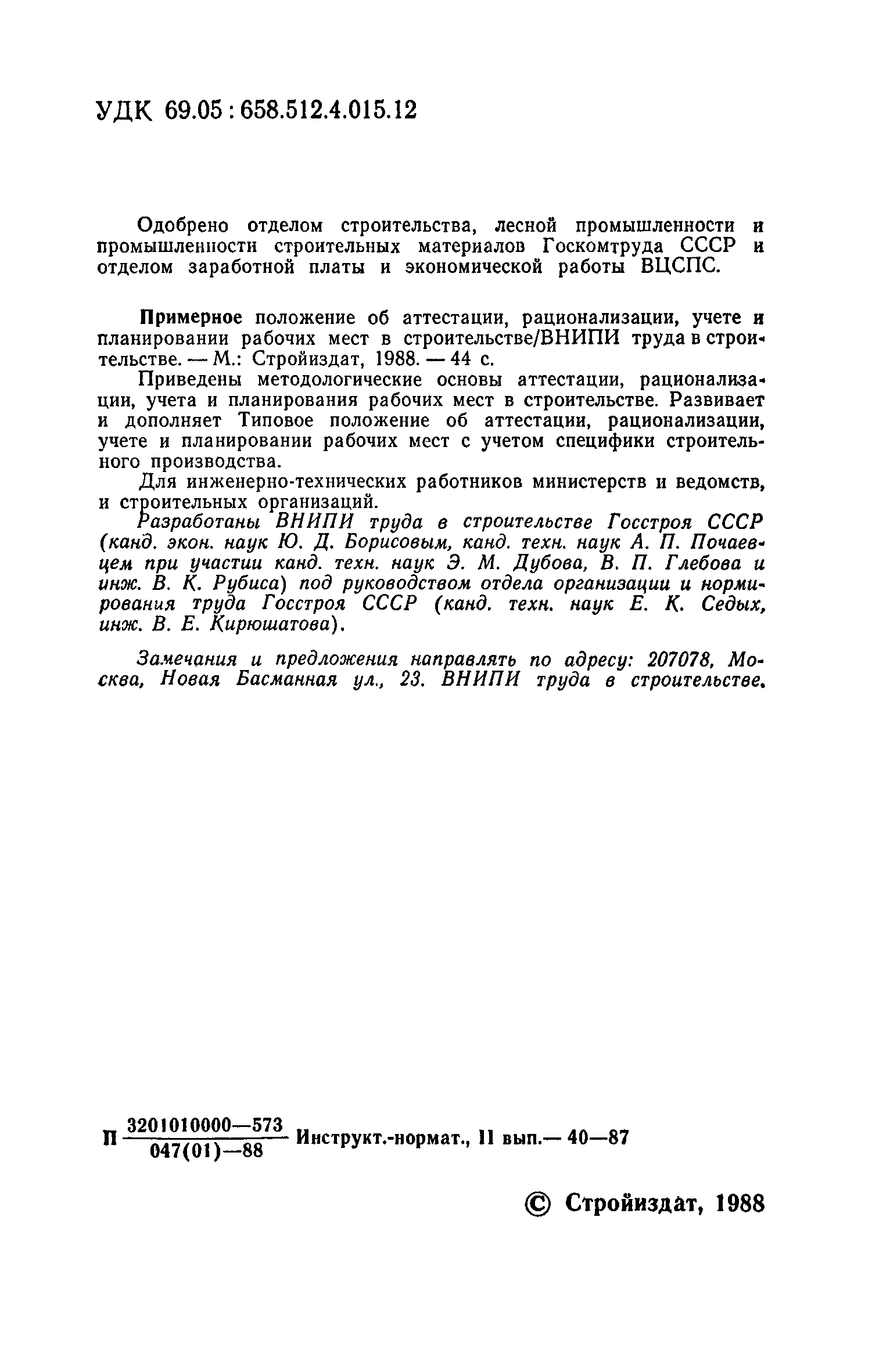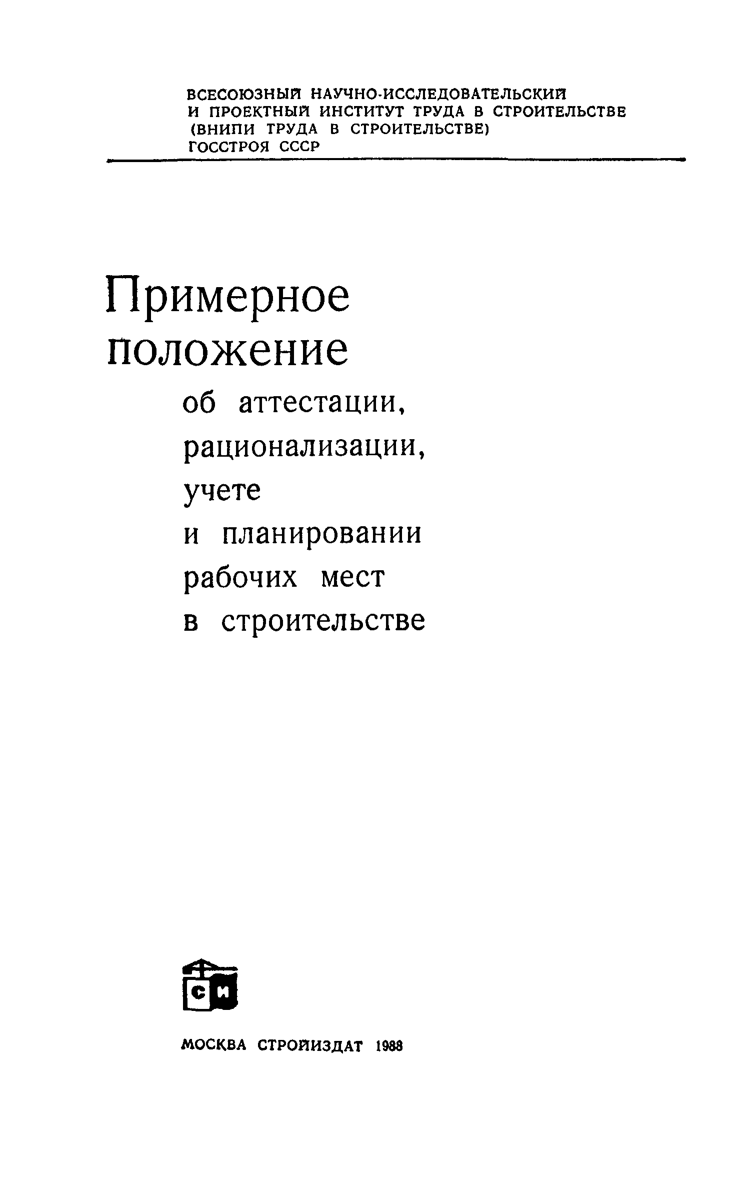 | Название рус.: | Примерное положение об аттестации, рационализации, учете и планировании рабочих мест в строительстве |