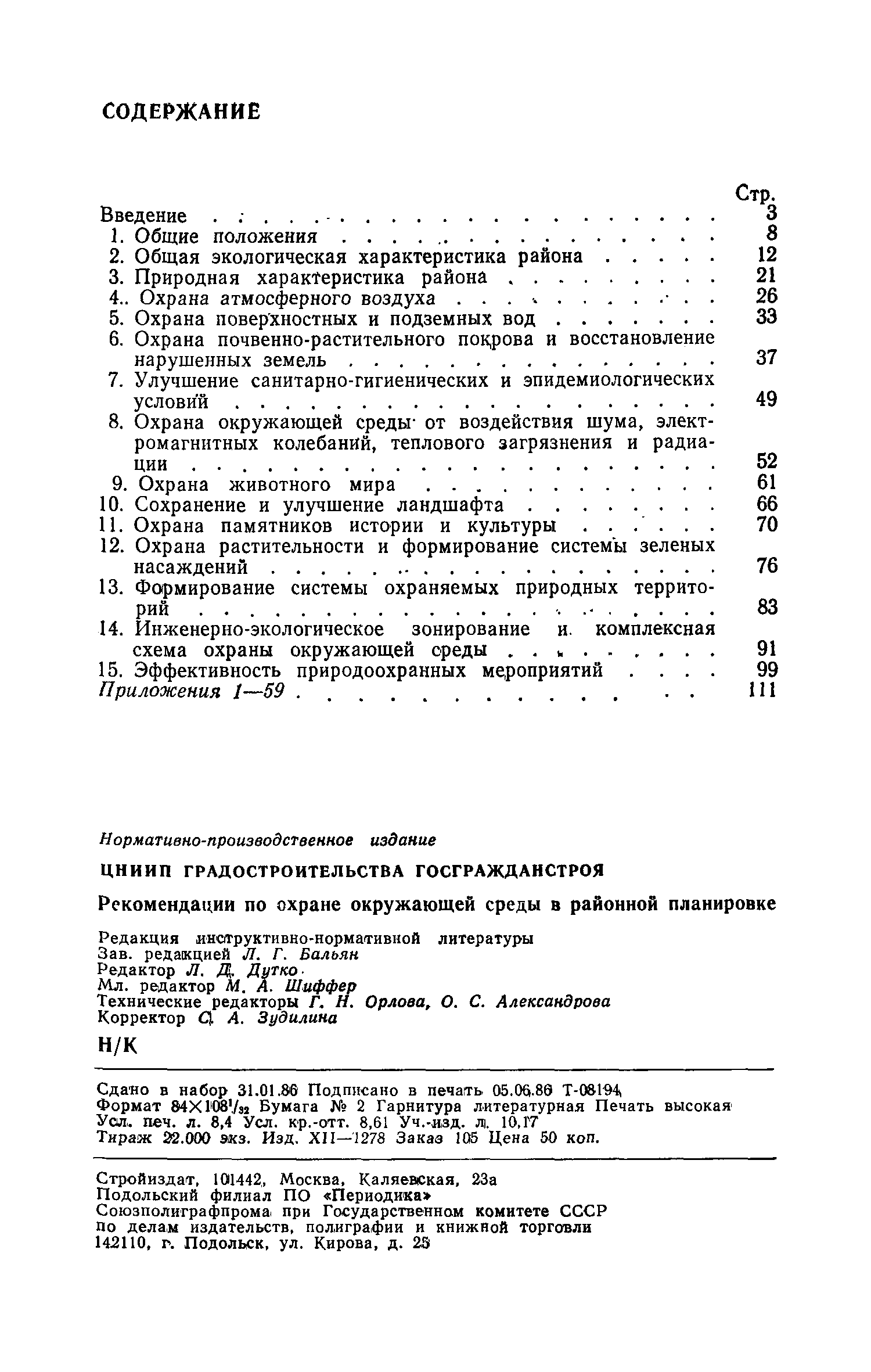 | Оглавление: | Введение 1. Общие положения 2. Общая экологическая характеристика района 3. Природная характеристика района 4. Охрана атмосферного воздуха 5. Охрана поверхностных и подземных вод 6. Охрана почвенно-растительного покрова и восстановление нарушенных земель 7.Улучшение санитарно-гигиенических и эпидемиологических условий 8. Охрана окружающей среды от воздействия шума, электромагнитных колебаний, теплового загрязнения и радиации 9. Охрана животного мира 10. Сохранение и улучшение ландшафта 11. Охрана памятников истории и культуры 12. Охрана растительности и формирование системы зеленых насаждений 13. Формирование системы охраняемых природных территорий 14. Инженерно-экологическое зонирование и комплексная схема охраны окружающей среды 15. Эффективность природоохранных мероприятий Приложения 1 - 59 |