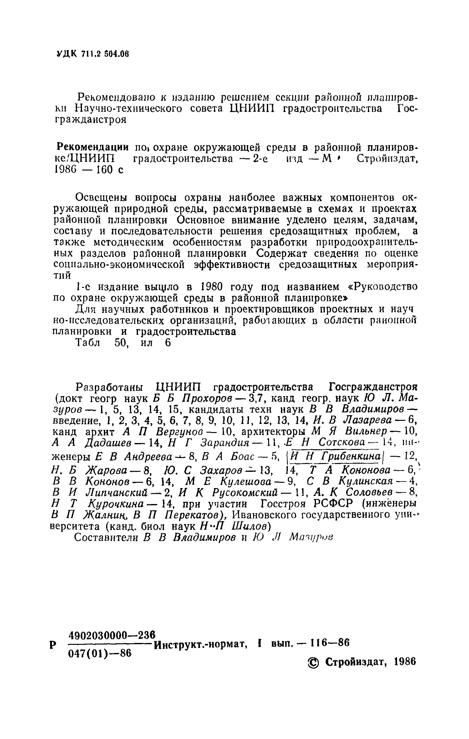 | Разработан: | ЦНИИП градостроительства Госстрой РСФСР Ивановский государственный университет