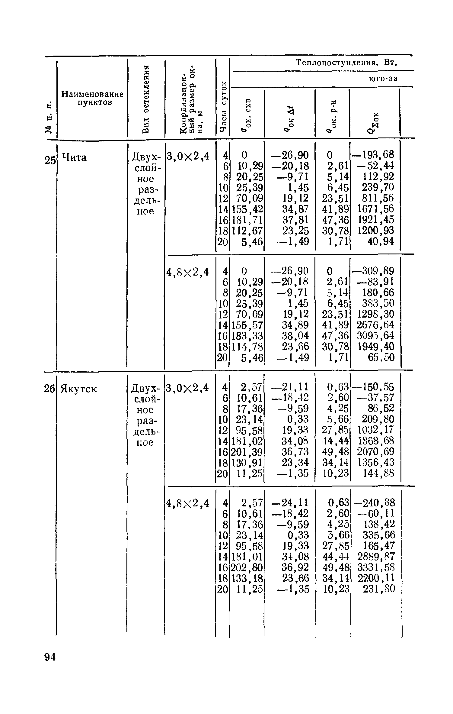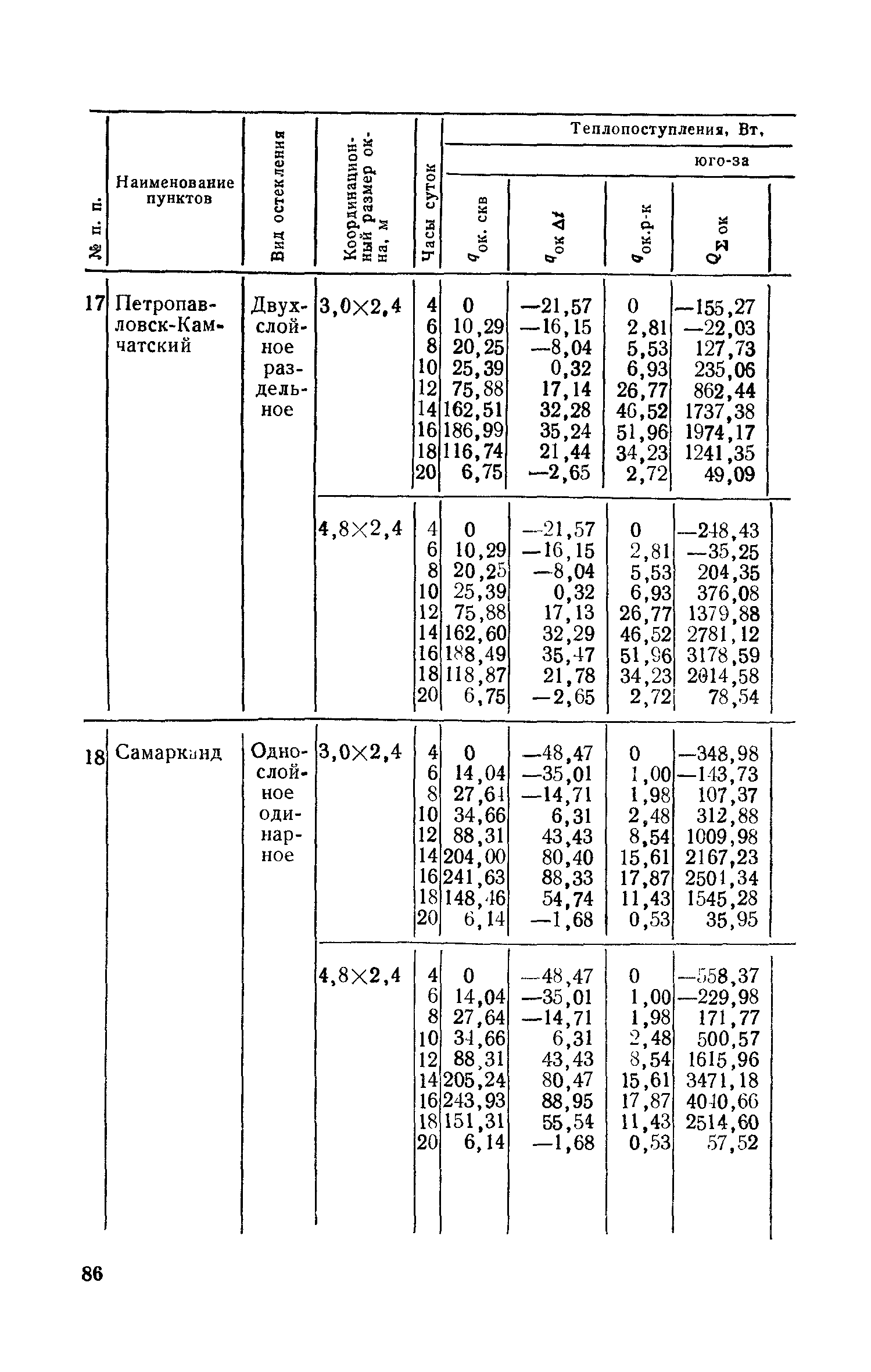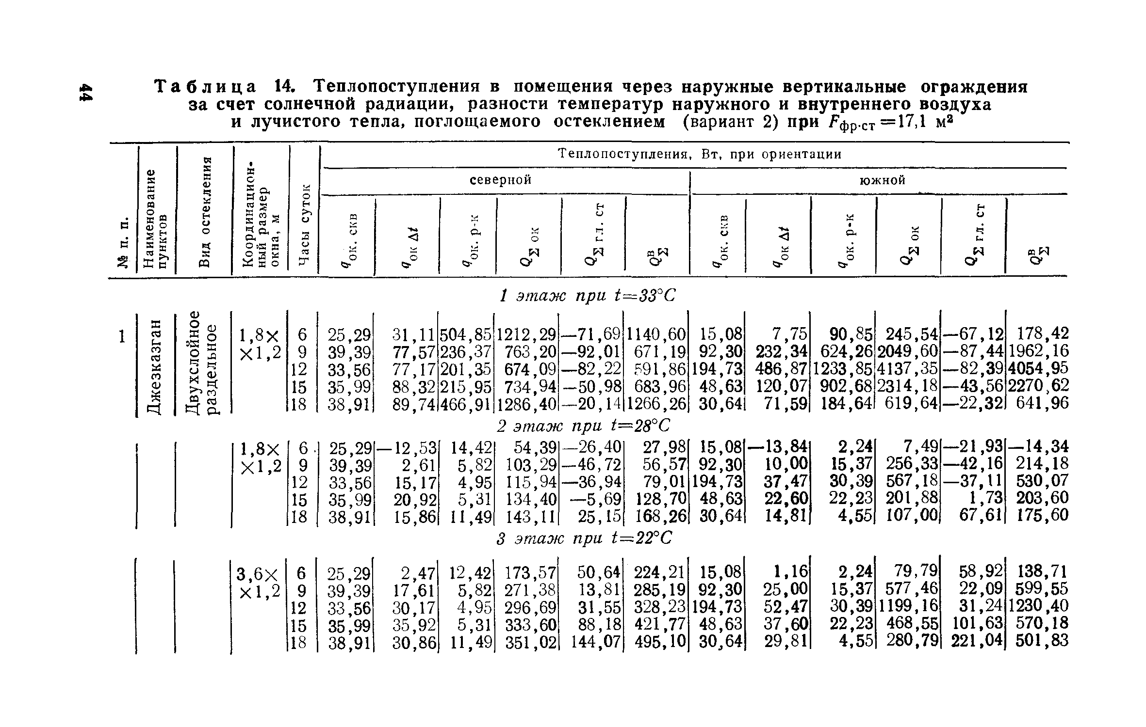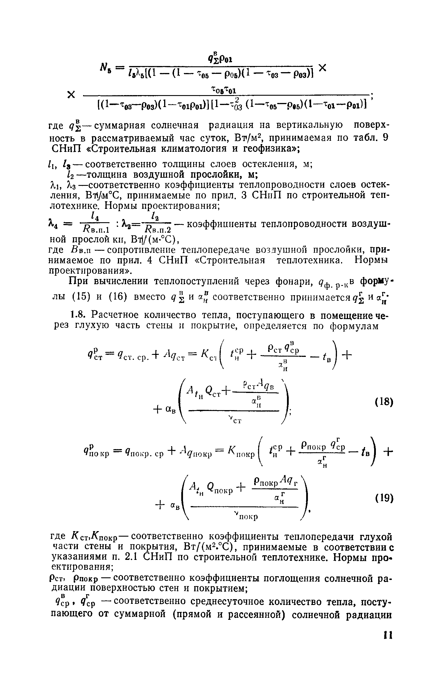 Руководство по определению теплопоступлений в помещения промышленных зданий от инсоляции| Статус: | действует | | Название рус.: | Руководство по определению теплопоступлений в помещения промышленных зданий от инсоляции | | Дата добавления в базу: | 01.09.2013 | | Дата актуализации: | 01.01.2021 | | Область применения: | Документ содержит материалы по расчету теплопоступлений в помещения за счет прямого и рассеянного солнечного излучения, разности температур наружного и внутреннего воздуха, лучистого тепла, поглощаемого остеклением, а также данные об экономической оценке мероприятий, направленных на сокращение теплопоступлений в помещения от солнечной радиации. | | Оглавление: | Предисловие 1. Расчет теплопоступлений в помещения от солнечной радиации 2. Экономическая оценка снижения теплопоступлений в помещения от солнечной радиации Приложение 1. Расчетные величины теплопоступлений в помещения через ограждающие конструкции за счет солнечной радиации, разности температур наружного и внутреннего воздуха и лучистого тепла, поглощаемого остеклением в теплый период года для административно-бытового здания Приложение 1. Расчетные величины теплопоступлений в помещения через ограждающие конструкции за счет солнечной радиации, разности температур наружного и внутреннего воздуха и лучистого тепла, поглощаемого остеклением в теплый период года для производственных зданий | | Разработан: | ЦНИИпромзданий