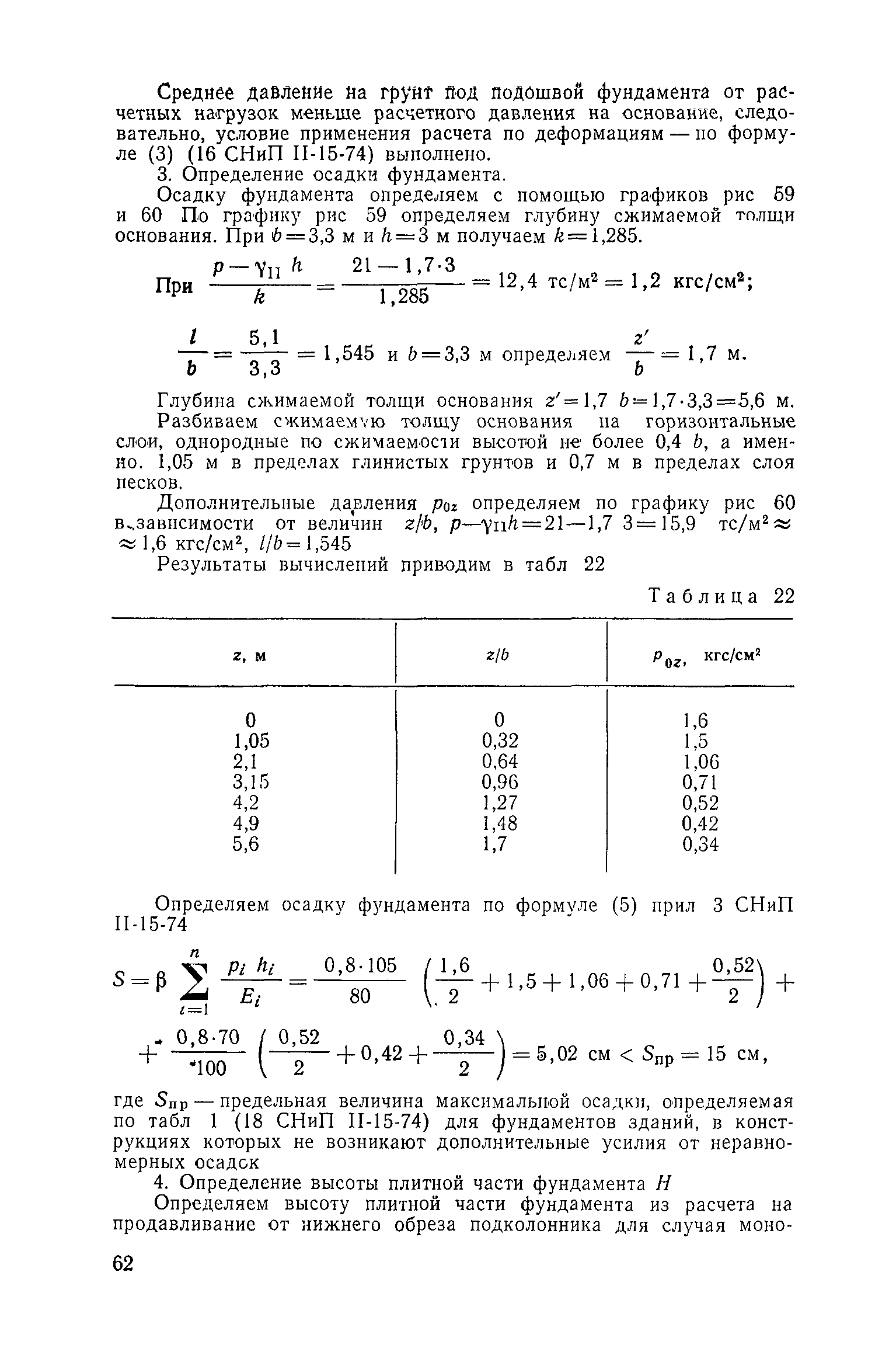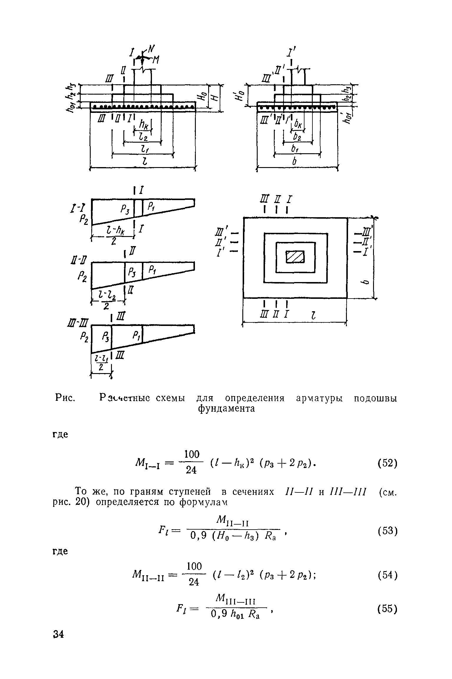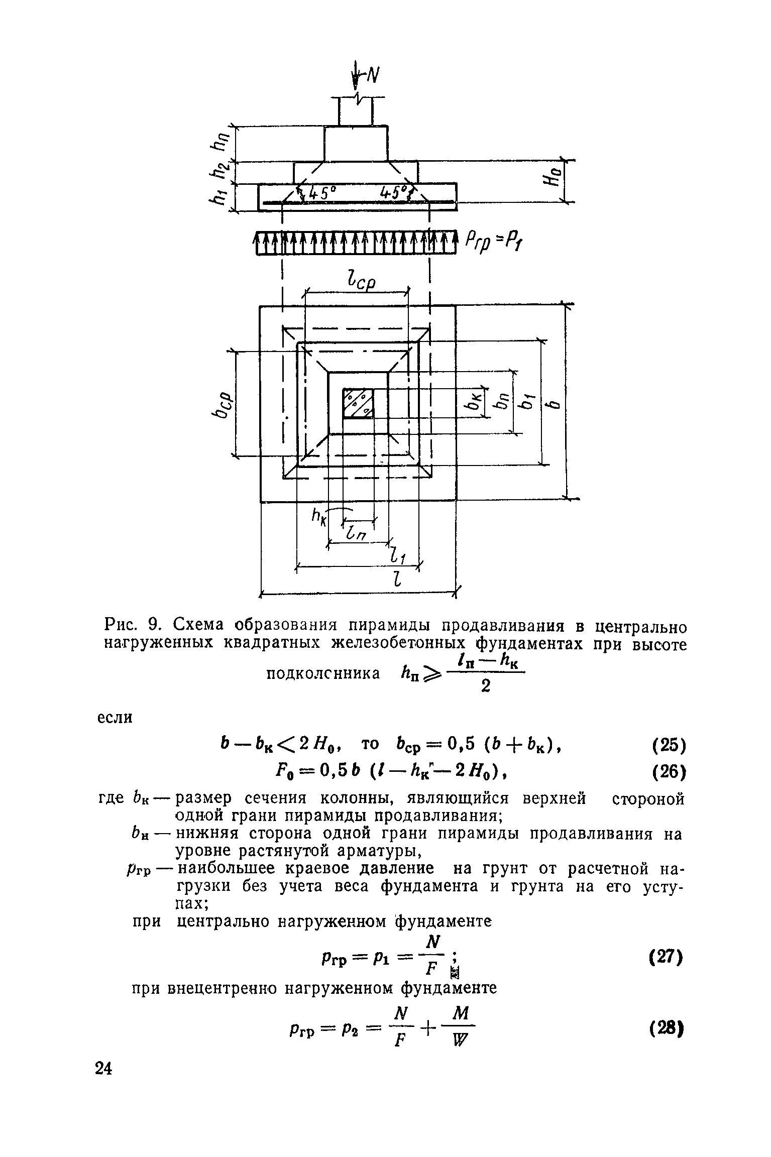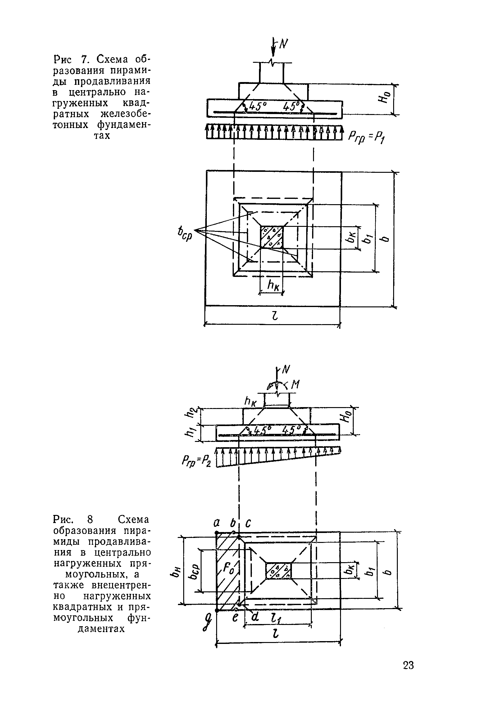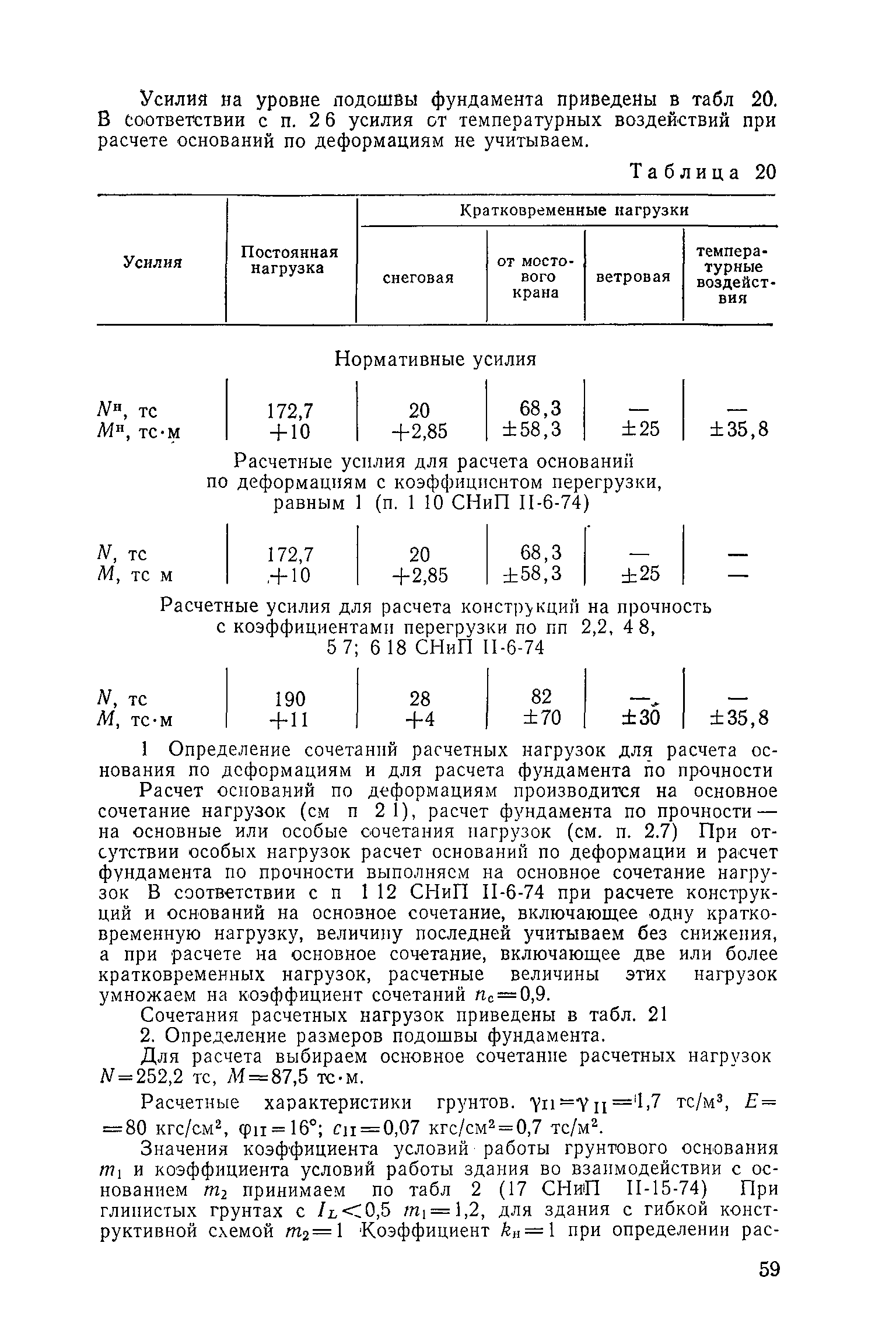 | Оглавление: | Предисловие 1. Общие указания 2. Нагрузки, учитываемые в расчетах оснований и конструкций фундаментов 3. Расчет оснований и определение размеров подошвы фундаментов 4. Расчет фундаментов Расчет на продавливание при монолитном сопряжении колонны или подколонника с плитной частью фундамента Расчет на продавливание при стаканном сопряжении сборной колонны с фундаментом Определение сечения арматуры подошвы фундамента Расчет подколонника и его стаканной части 5. Конструктивные указания Сборные фундаменты Фундаменты под стальные колонны Приложение 1. Примеры расчета Приложение 2. Графики для расчета оснований и фундаментов Приложение 3. Основные буквенные обозначения |