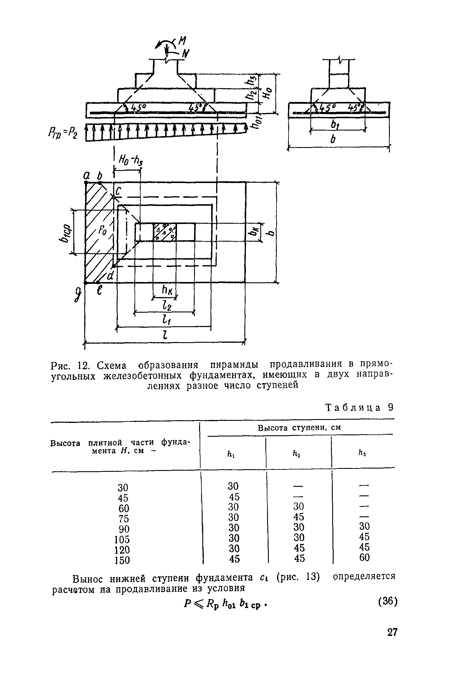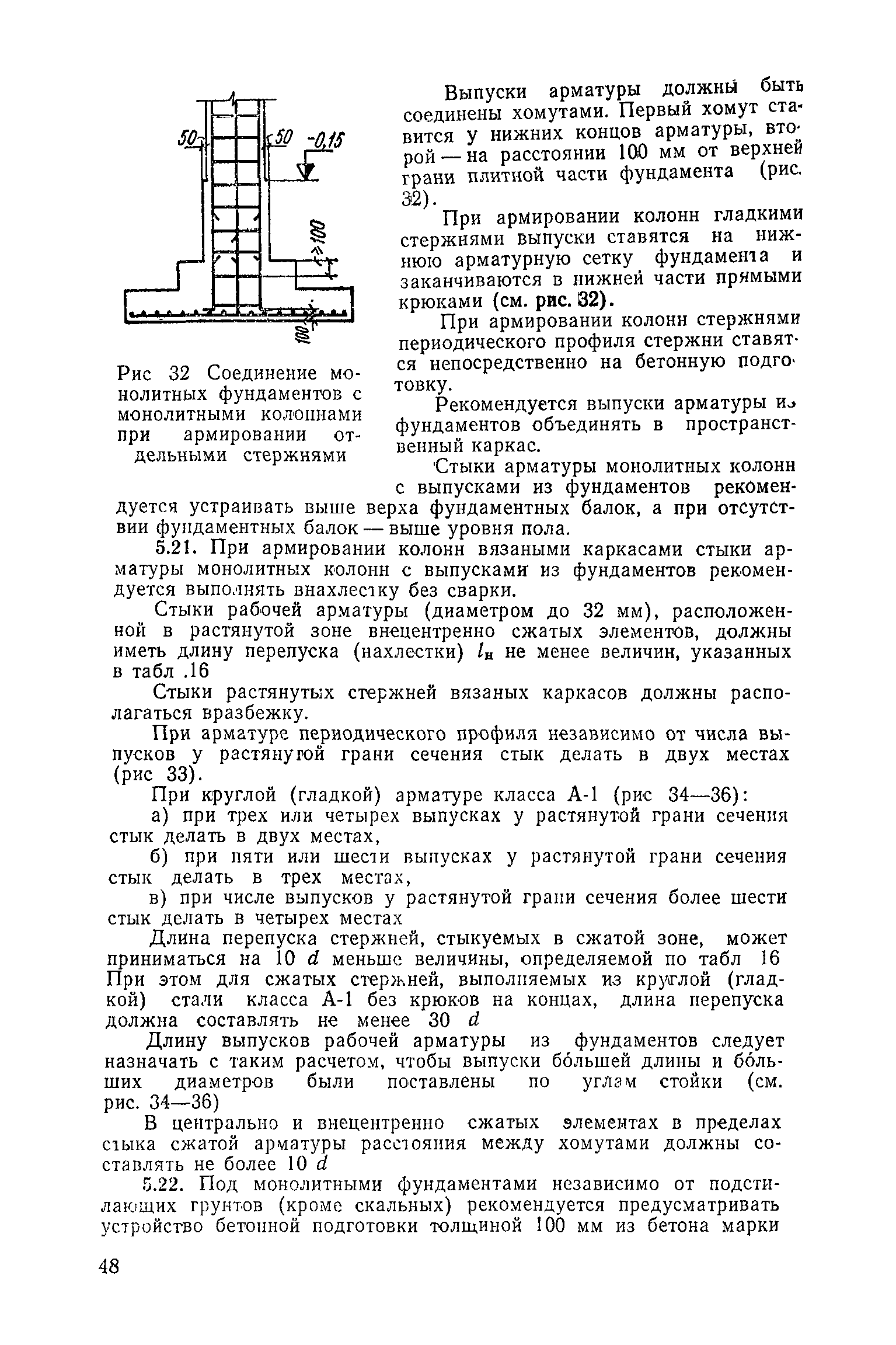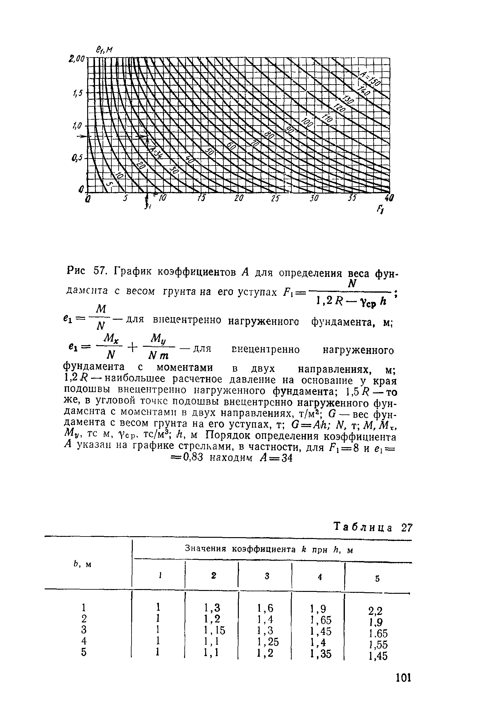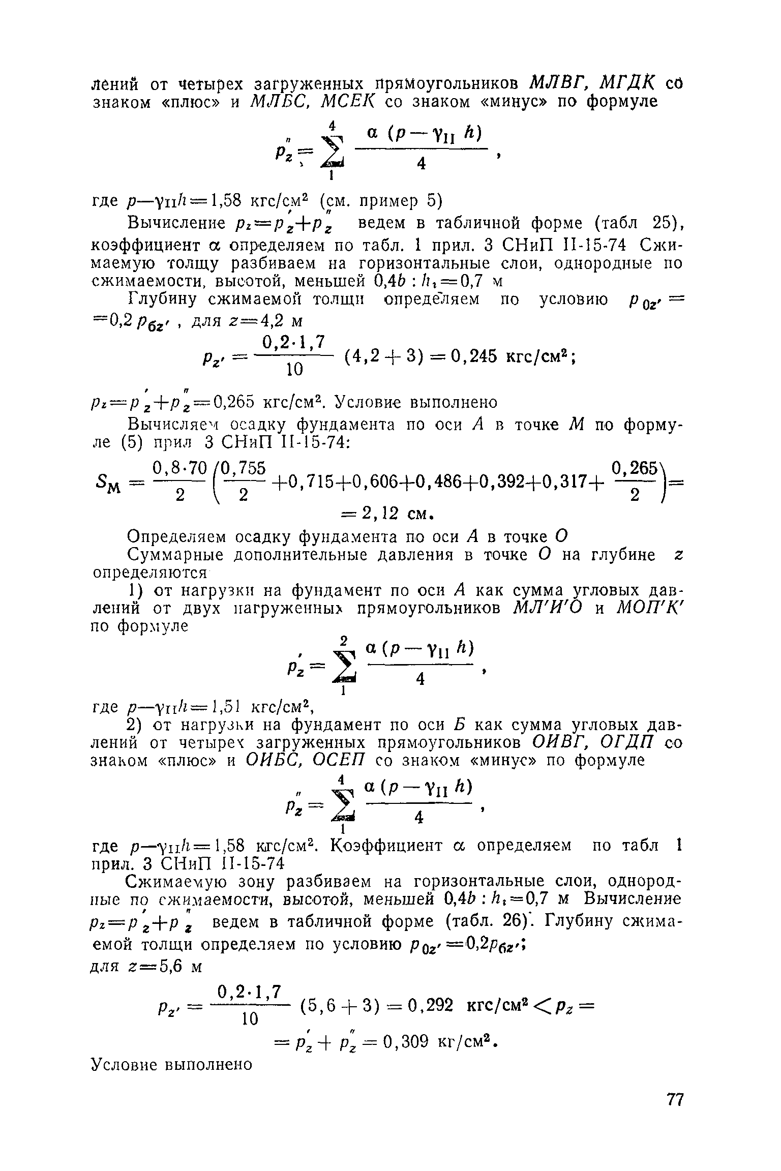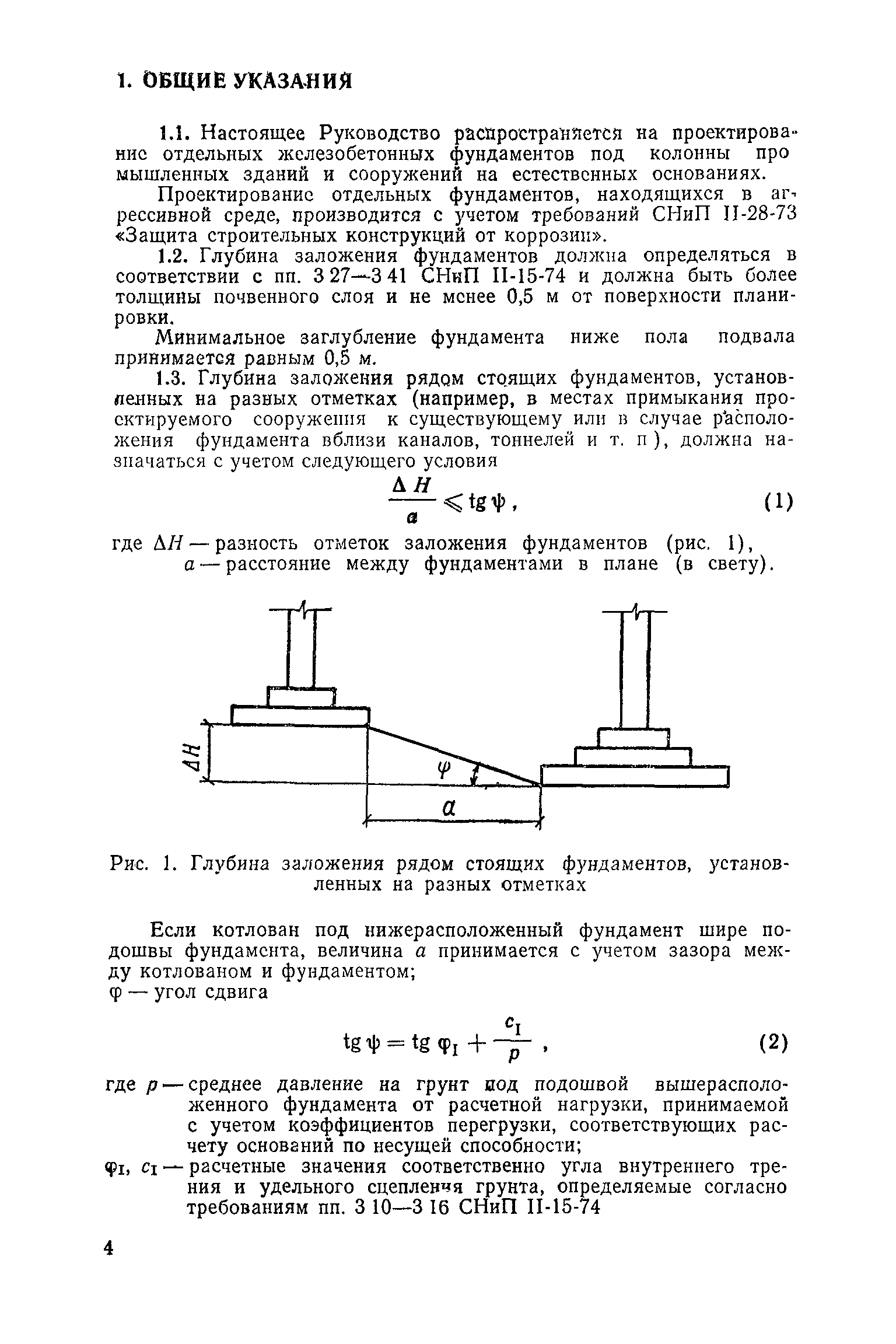 | Оглавление: | Предисловие 1. Общие указания 2. Нагрузки, учитываемые в расчетах оснований и конструкций фундаментов 3. Расчет оснований и определение размеров подошвы фундаментов 4. Расчет фундаментов Расчет на продавливание при монолитном сопряжении колонны или подколонника с плитной частью фундамента Расчет на продавливание при стаканном сопряжении сборной колонны с фундаментом Определение сечения арматуры подошвы фундамента Расчет подколонника и его стаканной части 5. Конструктивные указания Сборные фундаменты Фундаменты под стальные колонны Приложение 1. Примеры расчета Приложение 2. Графики для расчета оснований и фундаментов Приложение 3. Основные буквенные обозначения |