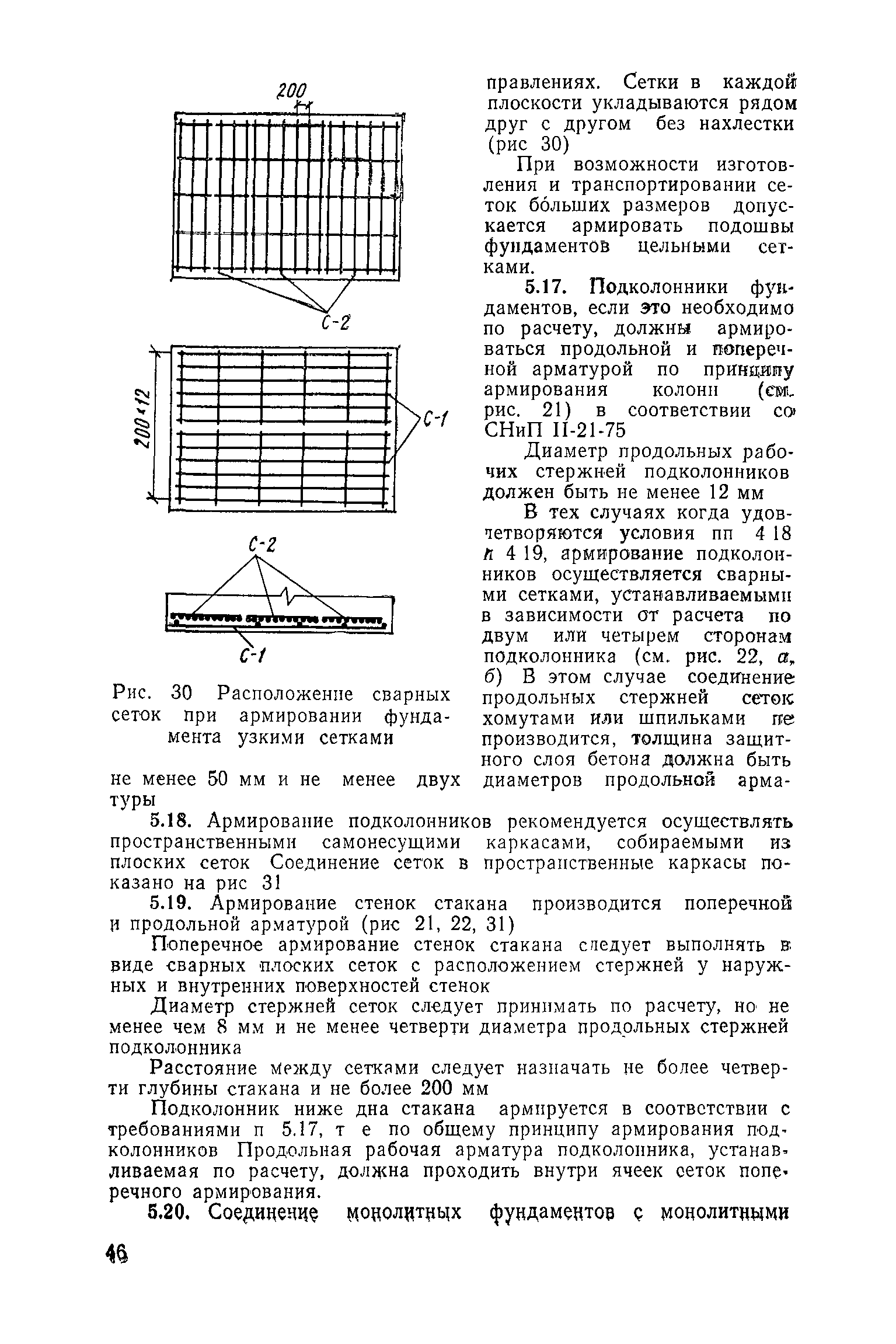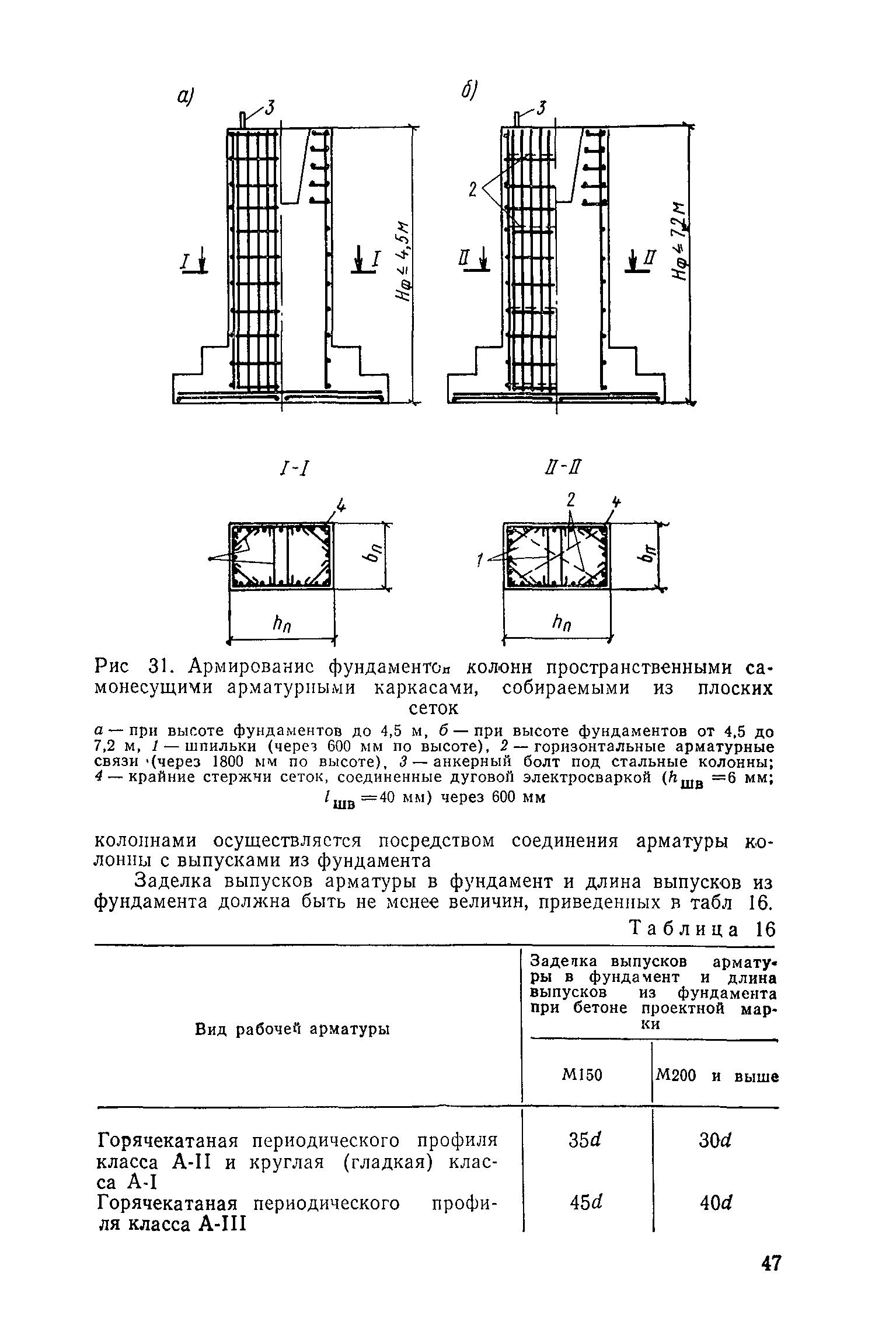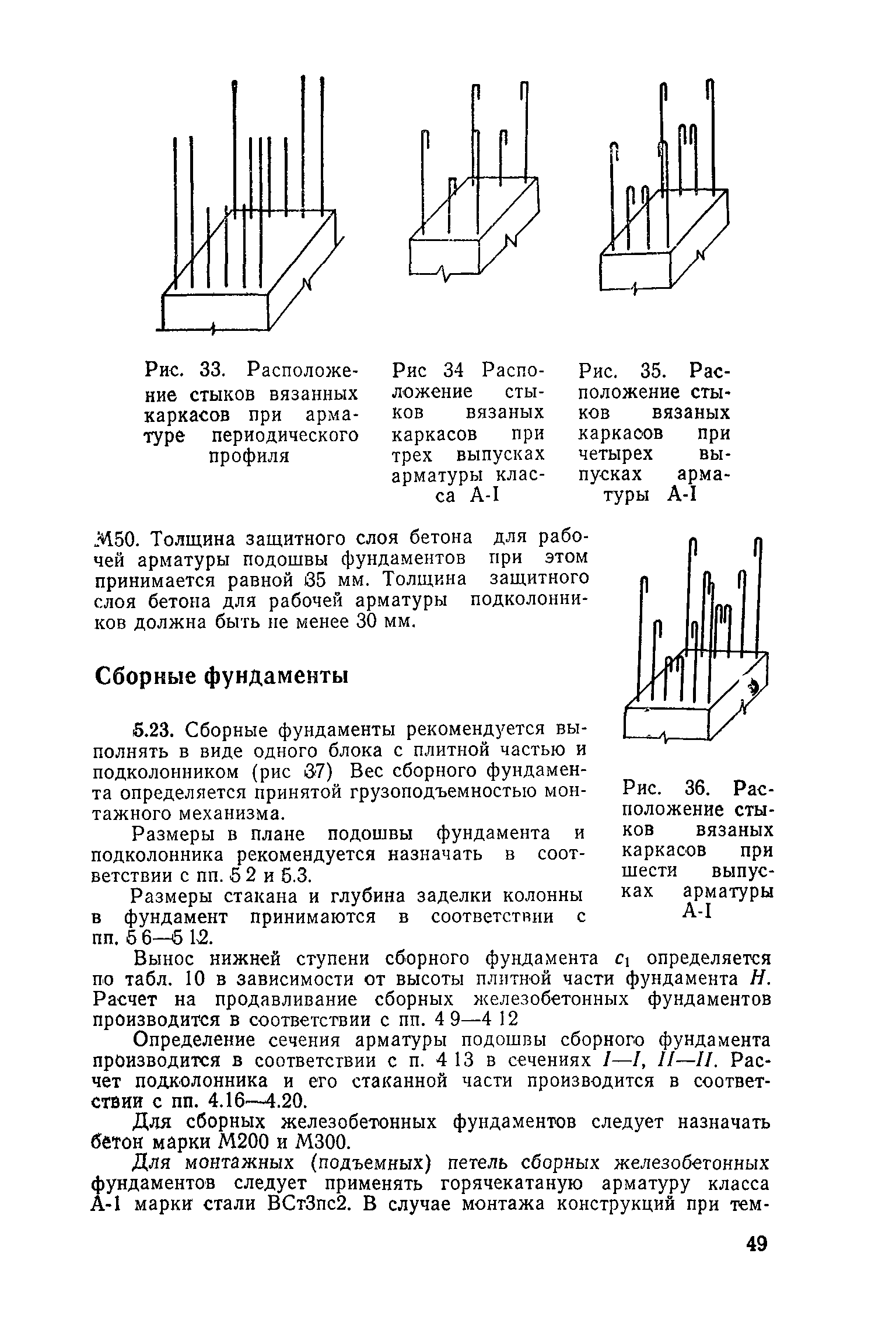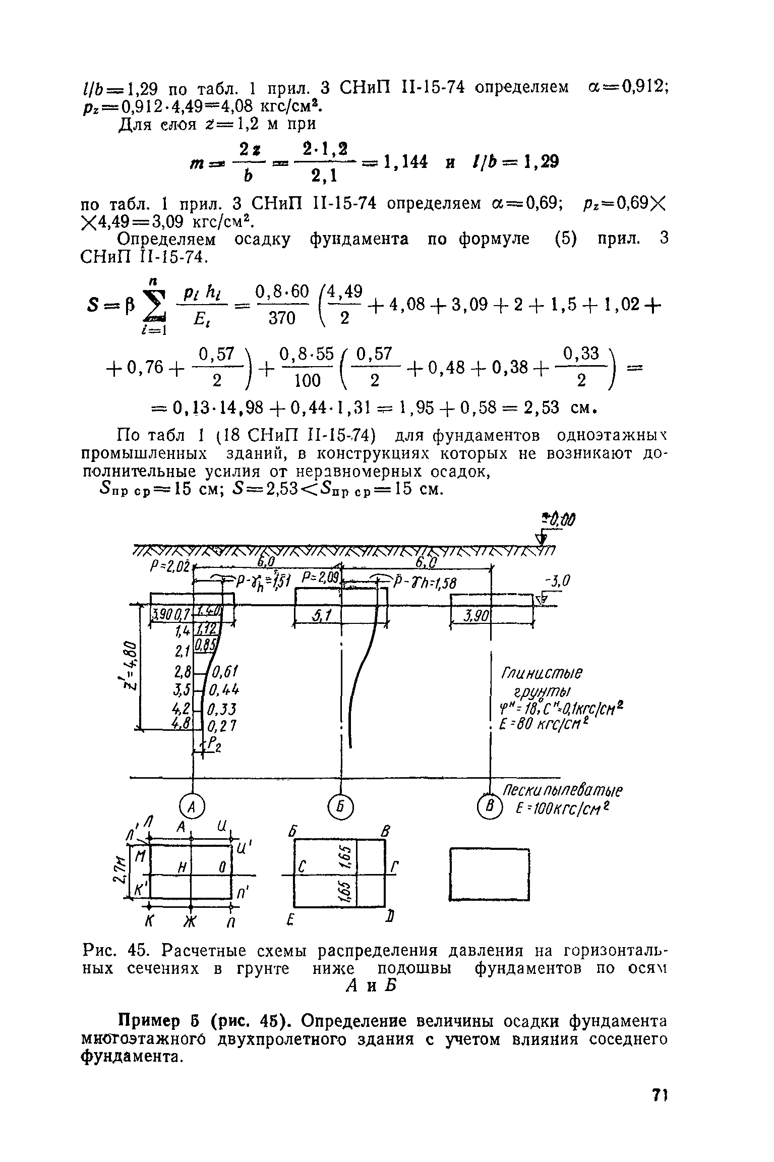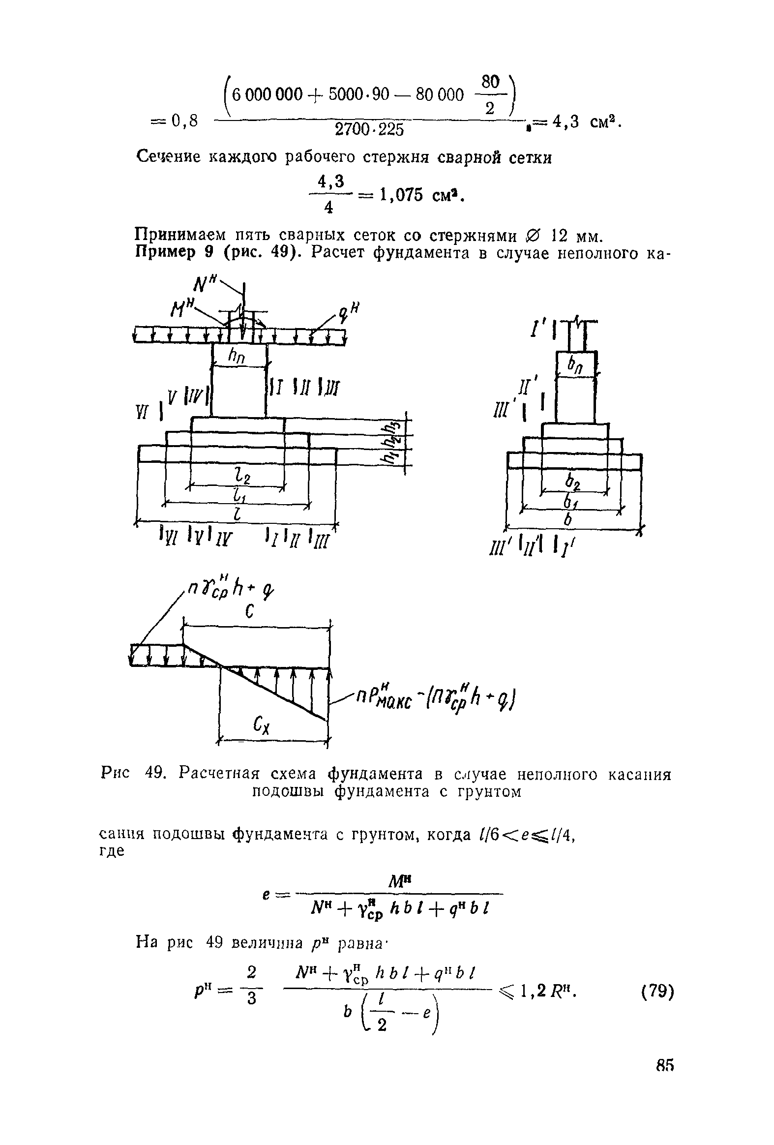 | Оглавление: | Предисловие 1. Общие указания 2. Нагрузки, учитываемые в расчетах оснований и конструкций фундаментов 3. Расчет оснований и определение размеров подошвы фундаментов 4. Расчет фундаментов Расчет на продавливание при монолитном сопряжении колонны или подколонника с плитной частью фундамента Расчет на продавливание при стаканном сопряжении сборной колонны с фундаментом Определение сечения арматуры подошвы фундамента Расчет подколонника и его стаканной части 5. Конструктивные указания Сборные фундаменты Фундаменты под стальные колонны Приложение 1. Примеры расчета Приложение 2. Графики для расчета оснований и фундаментов Приложение 3. Основные буквенные обозначения |