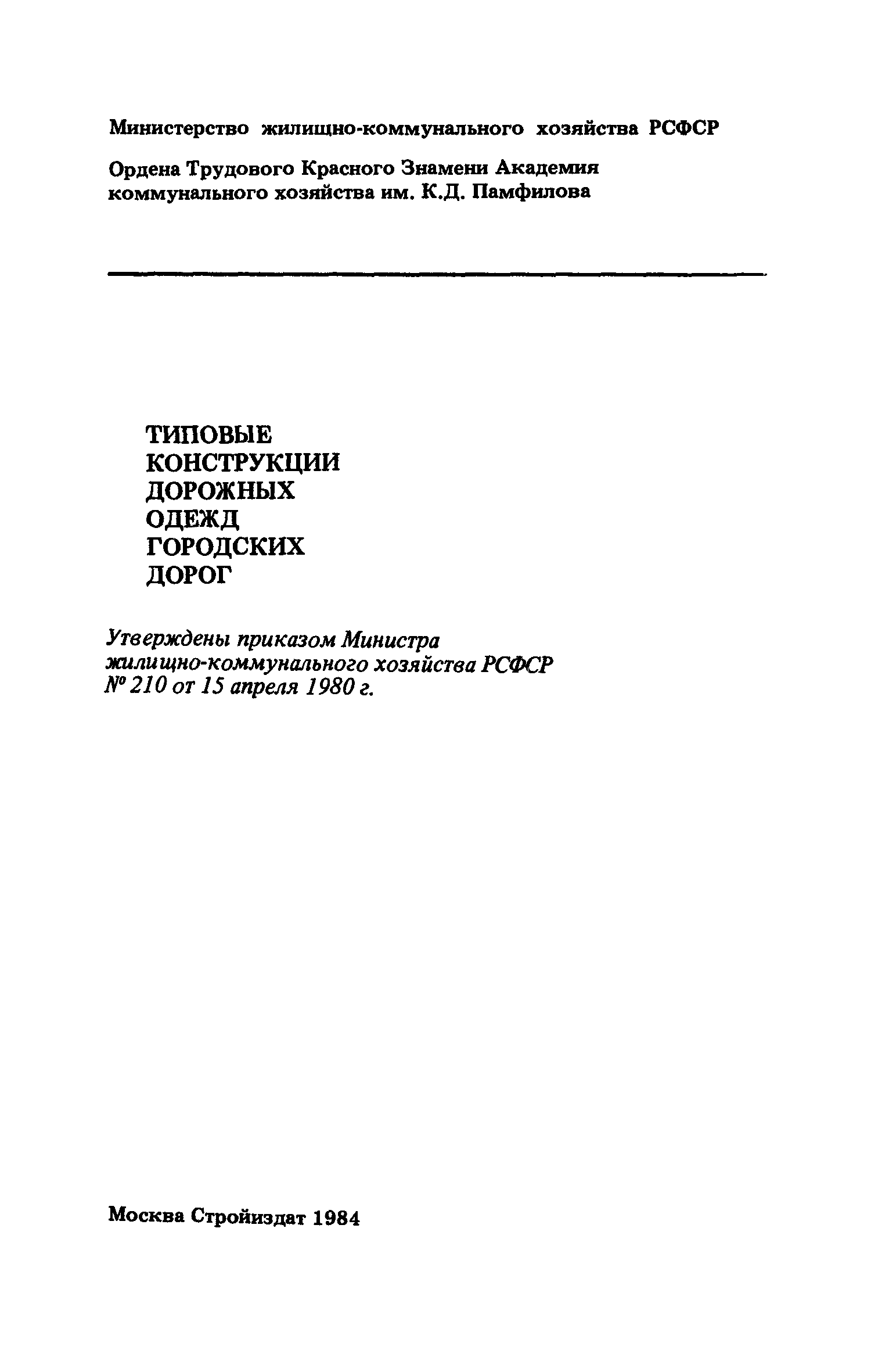 | Утверждён: | 15.04.1980 Министерство жилищно-коммунального хозяйства РСФСР (210) |