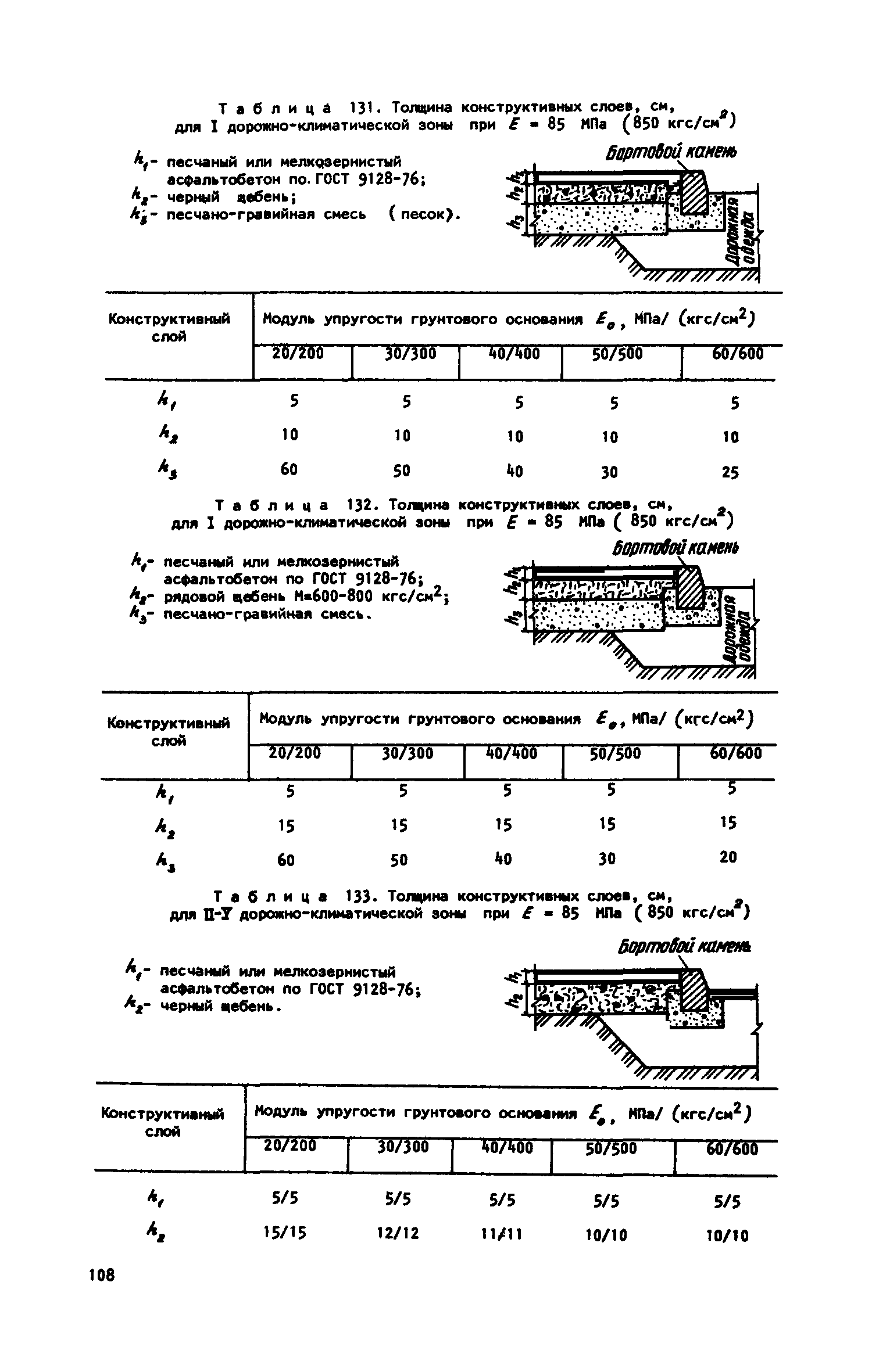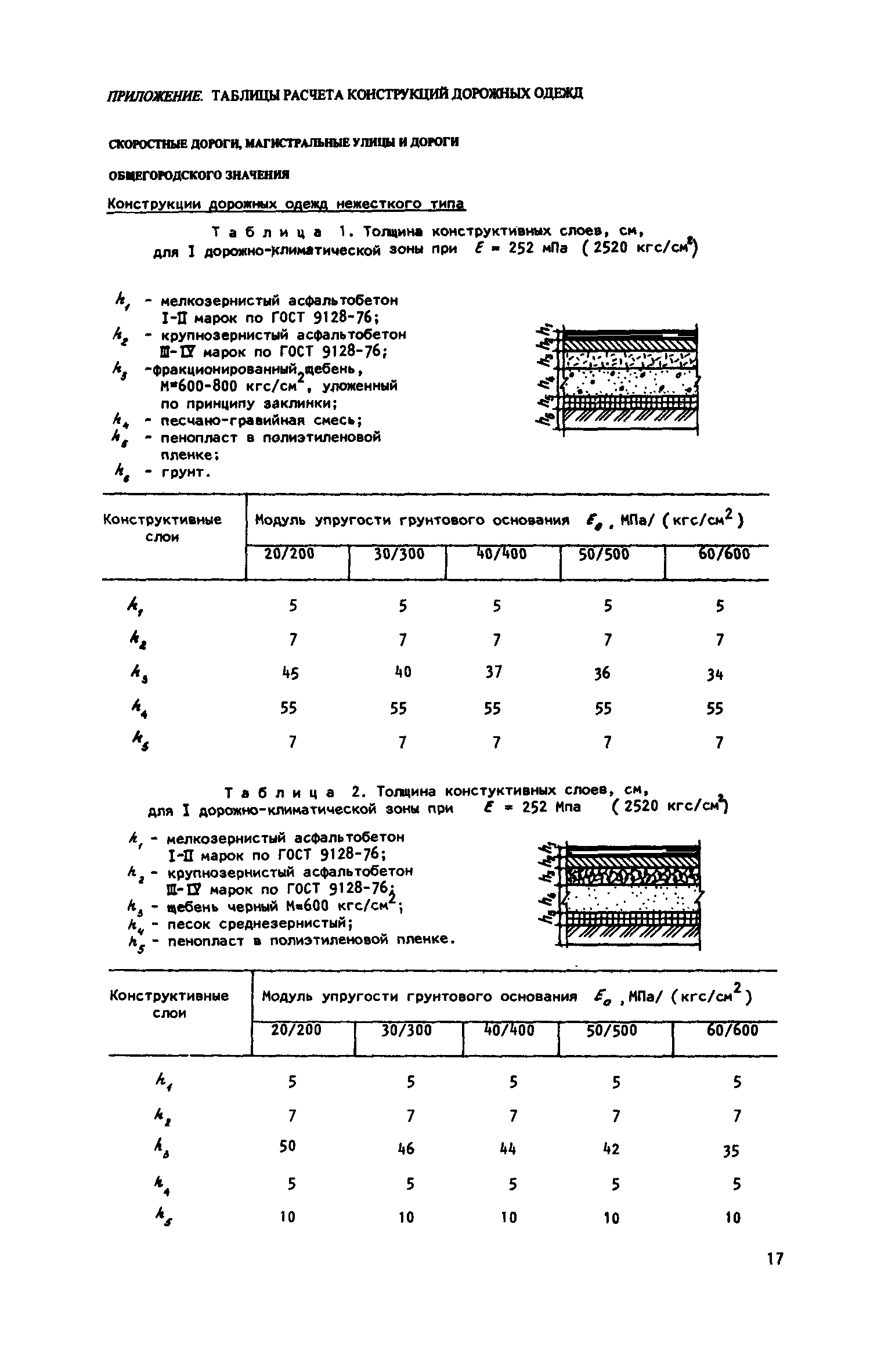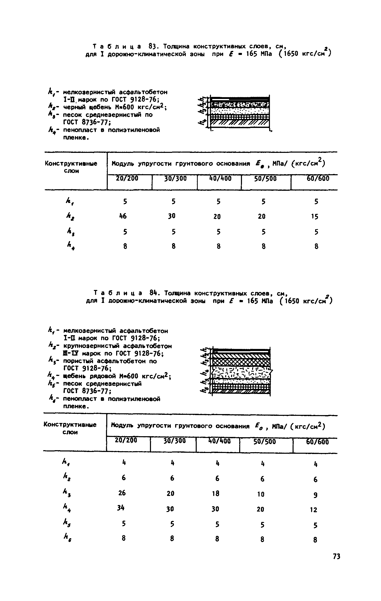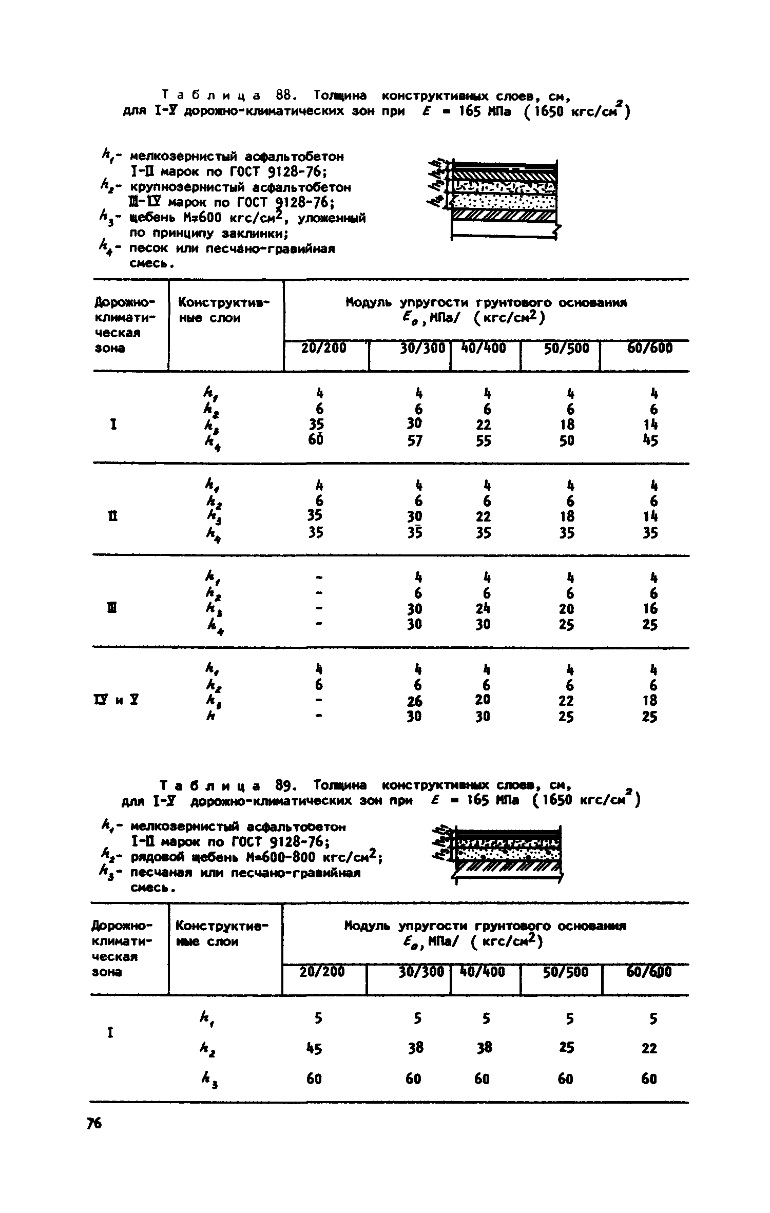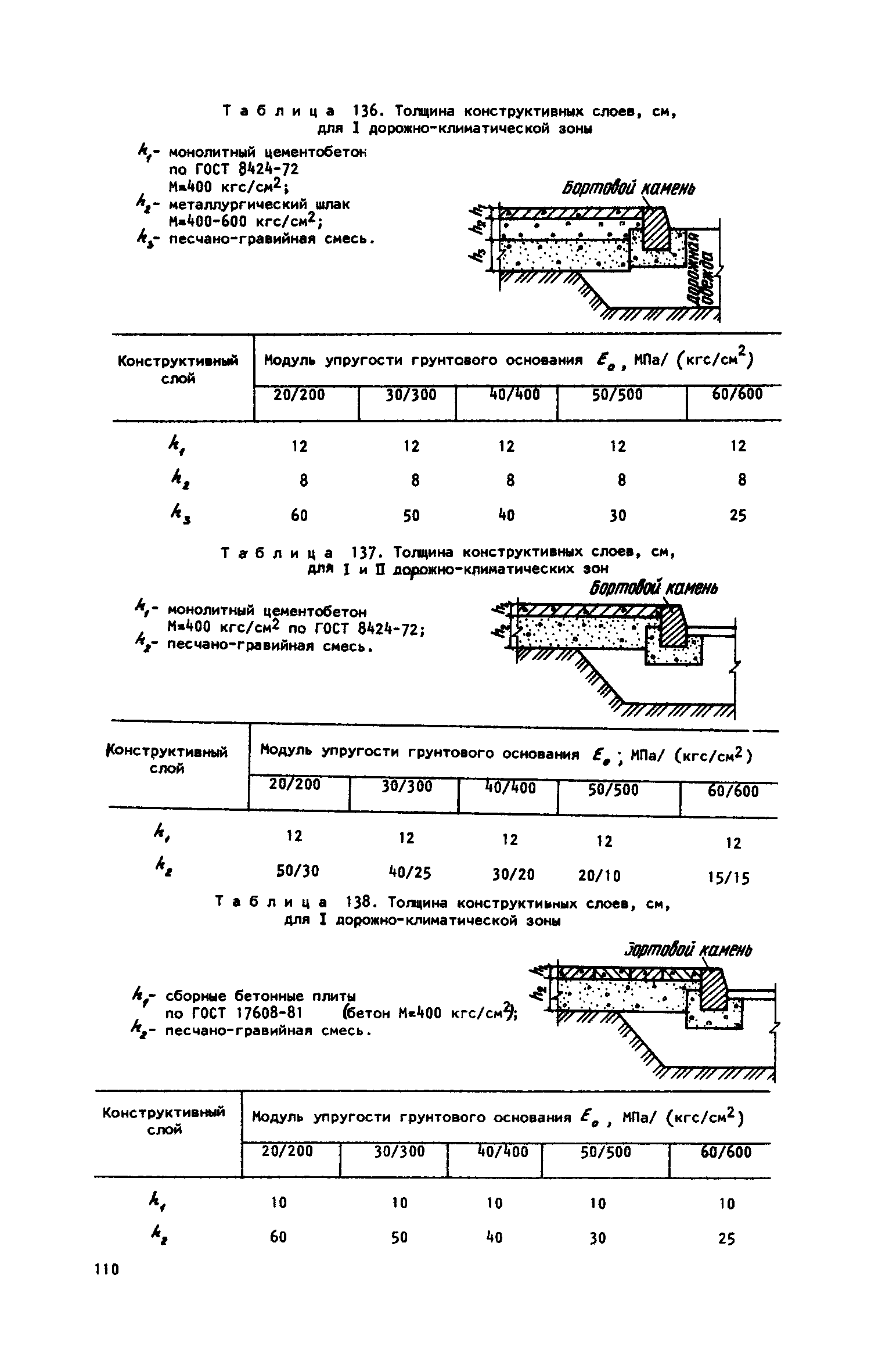 | Оглавление: | 1. Общие положения 2. Основные принципы расчета типовых конструкций дорожных одежд 3. Конструирование дорожных одежд городских дорог 4. Обеспечение морозоустойчивости дорожной одежды 5. Конструкции тротуаров Приложение. Таблицы расчета конструкций дорожных одежд Скоростные дороги, магистральные улицы и дороги общегородского значения Конструкции дорожных одежд нежесткого типа Конструкции дорожных одежд жесткого типа Магистральные улицы и дороги районного значения Конструкции дорожных одежд нежесткого типа Конструкции дорожных одежд жесткого типа Промышленные и складские дороги Конструкции дорожных одежд нежесткого типа Конструкции дорожных одежд жесткого типа Жилые улицы и дороги местного значения Конструкции дорожных одежд нежесткого типа Конструкции дорожных одежд жесткого типа Внутриквартальные проезды и пешеходные улицы Конструкции дорожных одежд нежесткого типа Поселковые улицы Конструкции дорожных одежд нежесткого типа Конструкции тротуаров нежесткого типа с учетом заезда тяжелых спецмашин массой до 8,5 т Конструкции тротуаров жесткого типа с учетом заезда тяжелых спецмашин массой до 8,5 т Конструкции тротуаров нежесткого типа с учетом заезда тяжелых спецмашин массой до 6 т Конструкции тротуаров жесткого типа с учетом заезда тяжелых спецмашин массой до 6 т Конструкции тротуаров жесткого типа без заезда спецмашин |