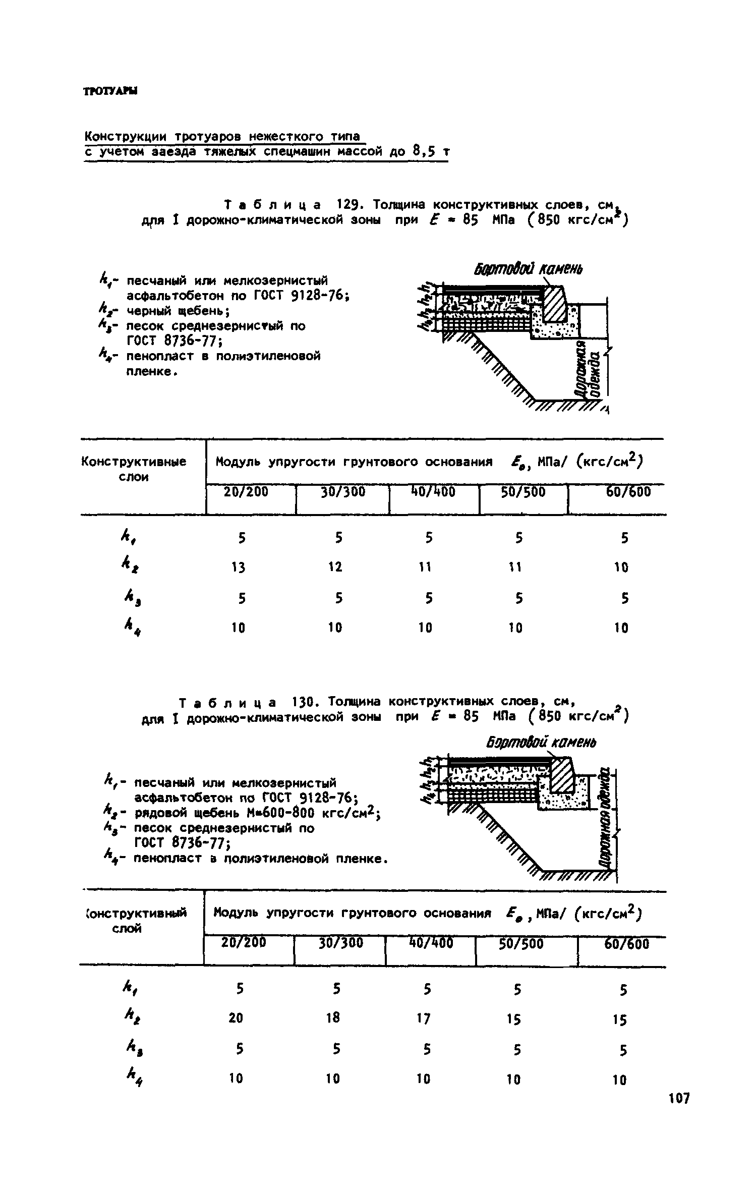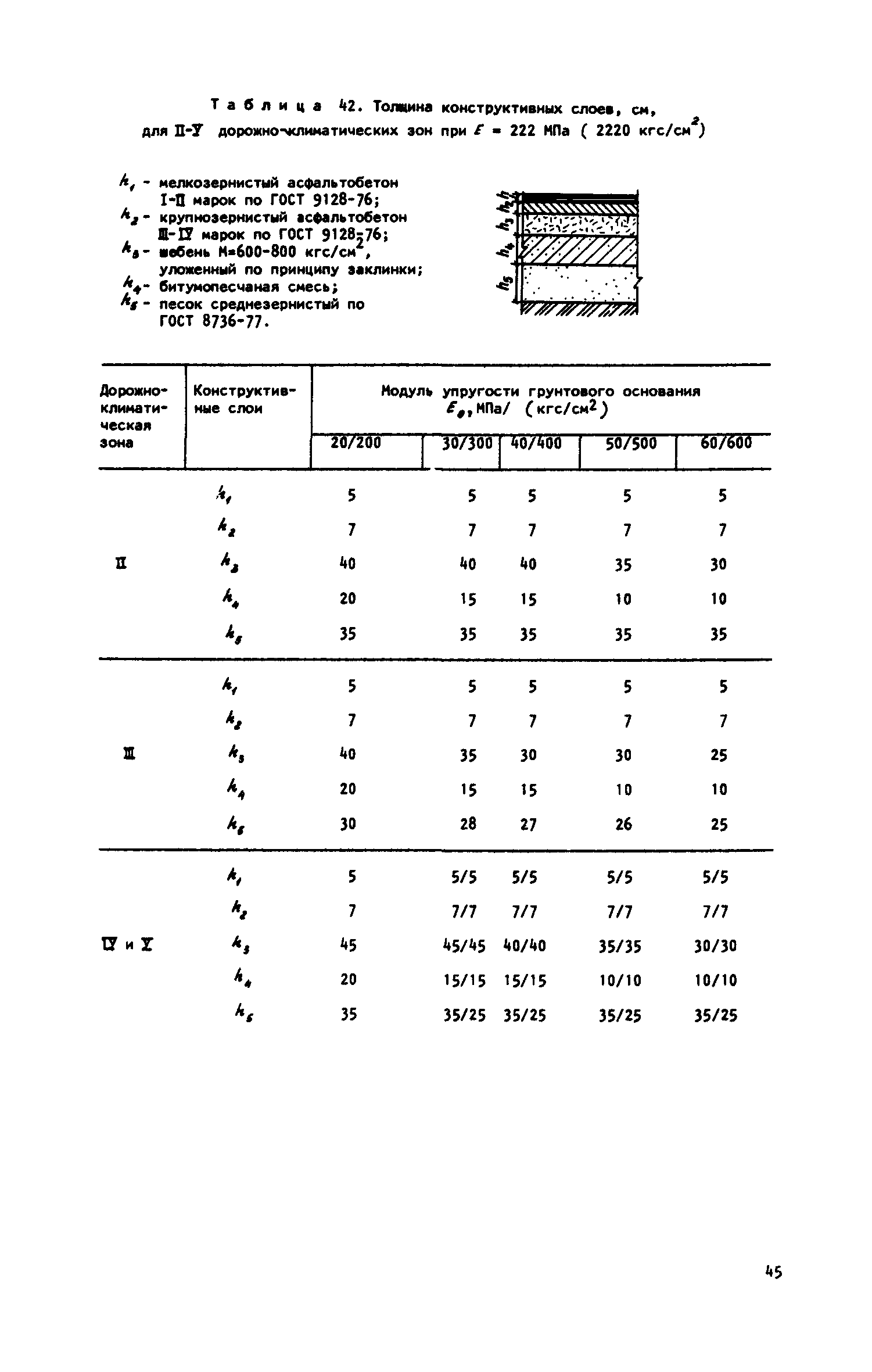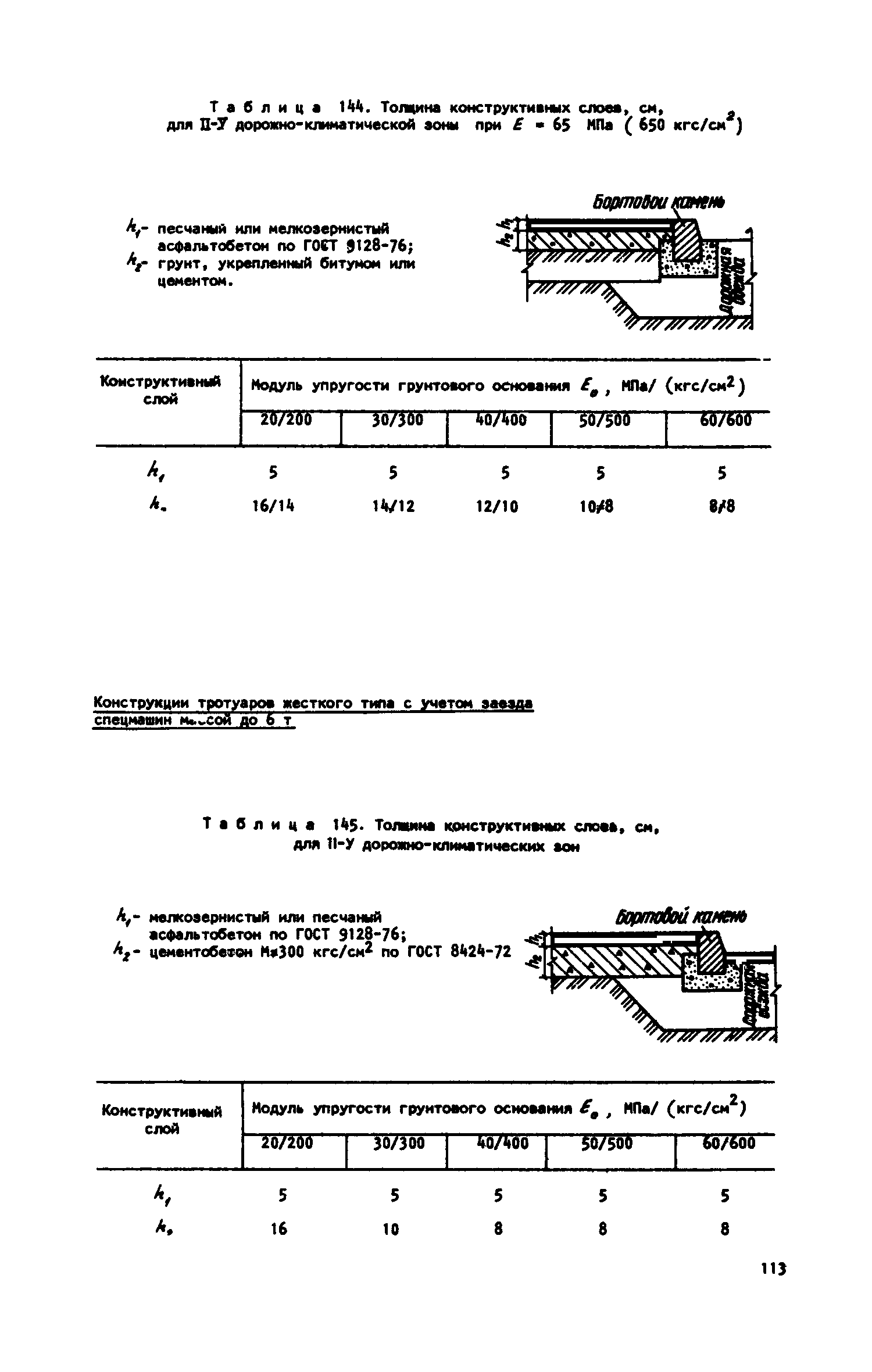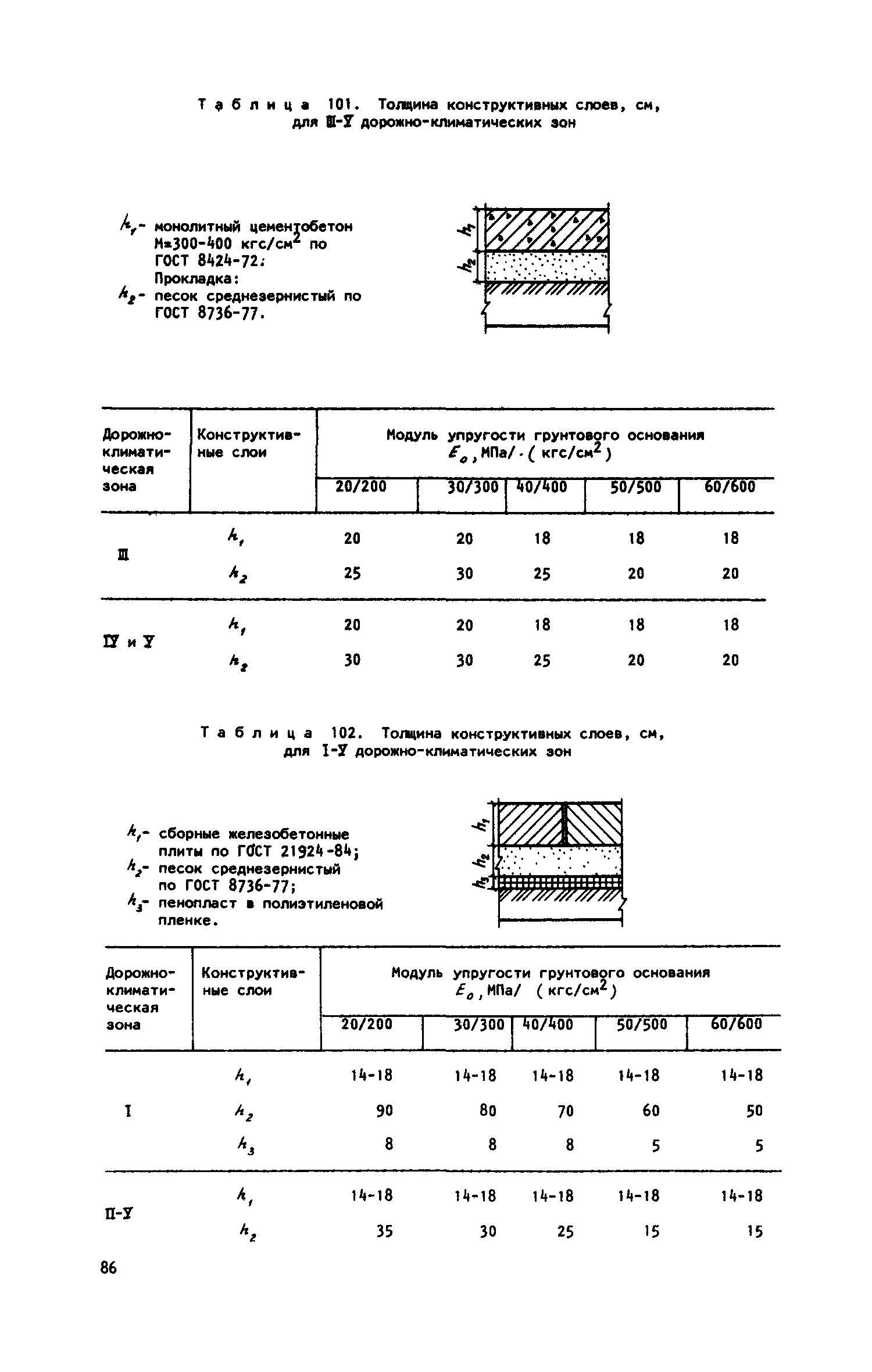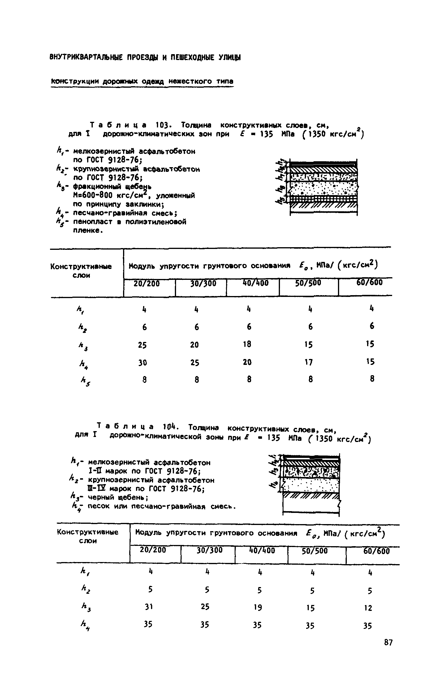| Оглавление: | 1. Общие положения 2. Основные принципы расчета типовых конструкций дорожных одежд 3. Конструирование дорожных одежд городских дорог 4. Обеспечение морозоустойчивости дорожной одежды 5. Конструкции тротуаров Приложение. Таблицы расчета конструкций дорожных одежд Скоростные дороги, магистральные улицы и дороги общегородского значения Конструкции дорожных одежд нежесткого типа Конструкции дорожных одежд жесткого типа Магистральные улицы и дороги районного значения Конструкции дорожных одежд нежесткого типа Конструкции дорожных одежд жесткого типа Промышленные и складские дороги Конструкции дорожных одежд нежесткого типа Конструкции дорожных одежд жесткого типа Жилые улицы и дороги местного значения Конструкции дорожных одежд нежесткого типа Конструкции дорожных одежд жесткого типа Внутриквартальные проезды и пешеходные улицы Конструкции дорожных одежд нежесткого типа Поселковые улицы Конструкции дорожных одежд нежесткого типа Конструкции тротуаров нежесткого типа с учетом заезда тяжелых спецмашин массой до 8,5 т Конструкции тротуаров жесткого типа с учетом заезда тяжелых спецмашин массой до 8,5 т Конструкции тротуаров нежесткого типа с учетом заезда тяжелых спецмашин массой до 6 т Конструкции тротуаров жесткого типа с учетом заезда тяжелых спецмашин массой до 6 т Конструкции тротуаров жесткого типа без заезда спецмашин |