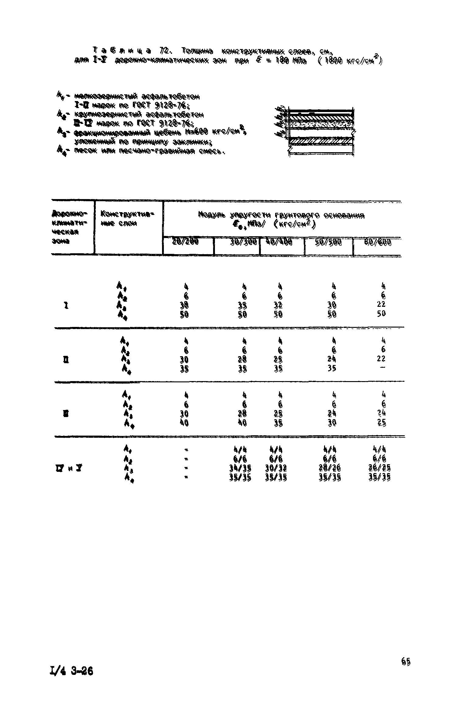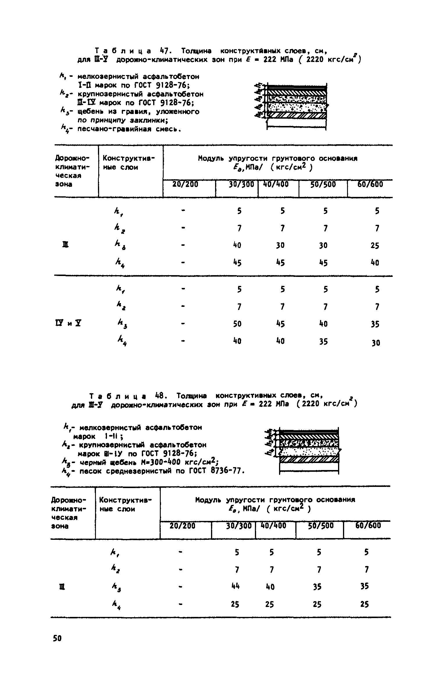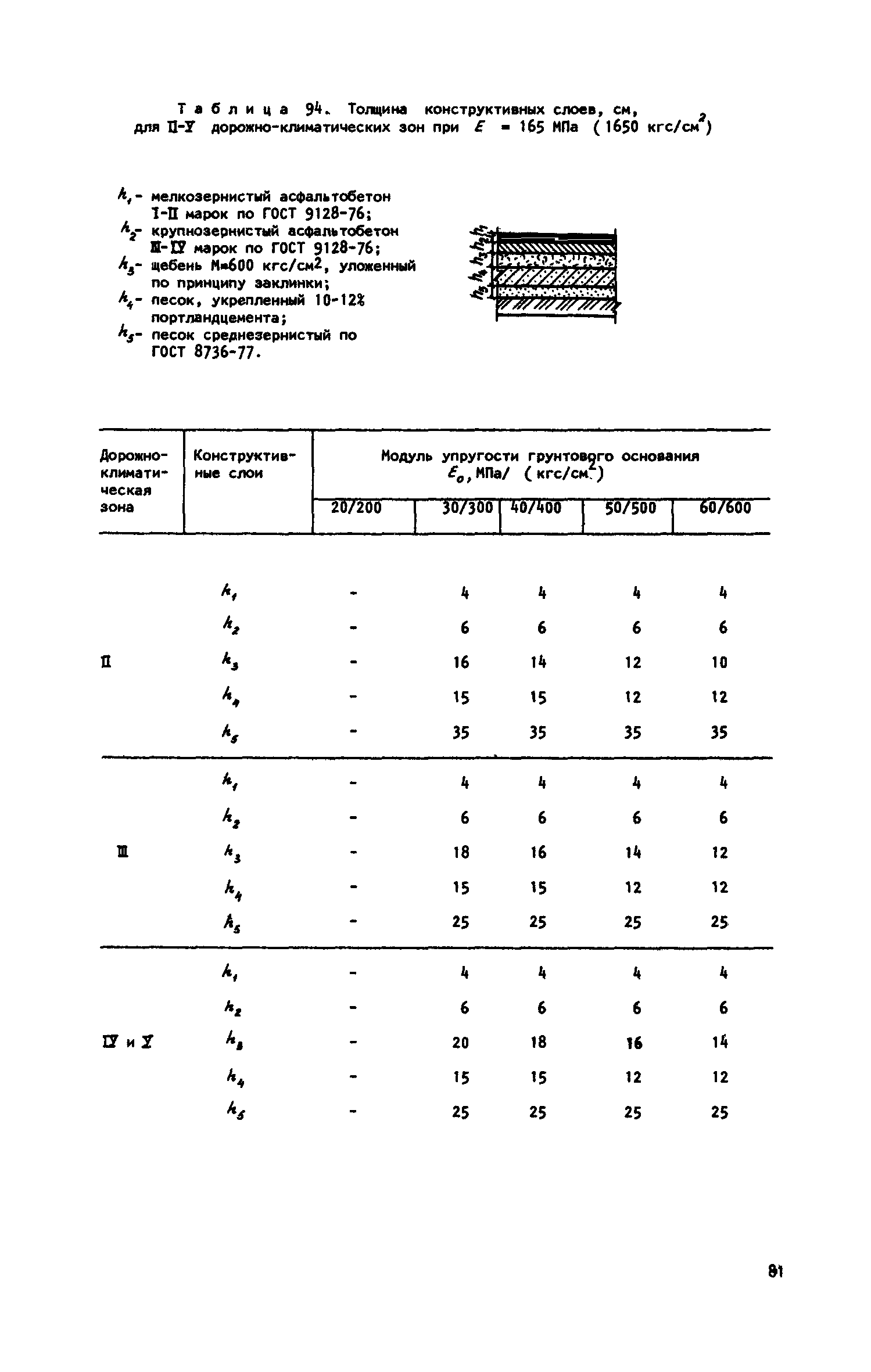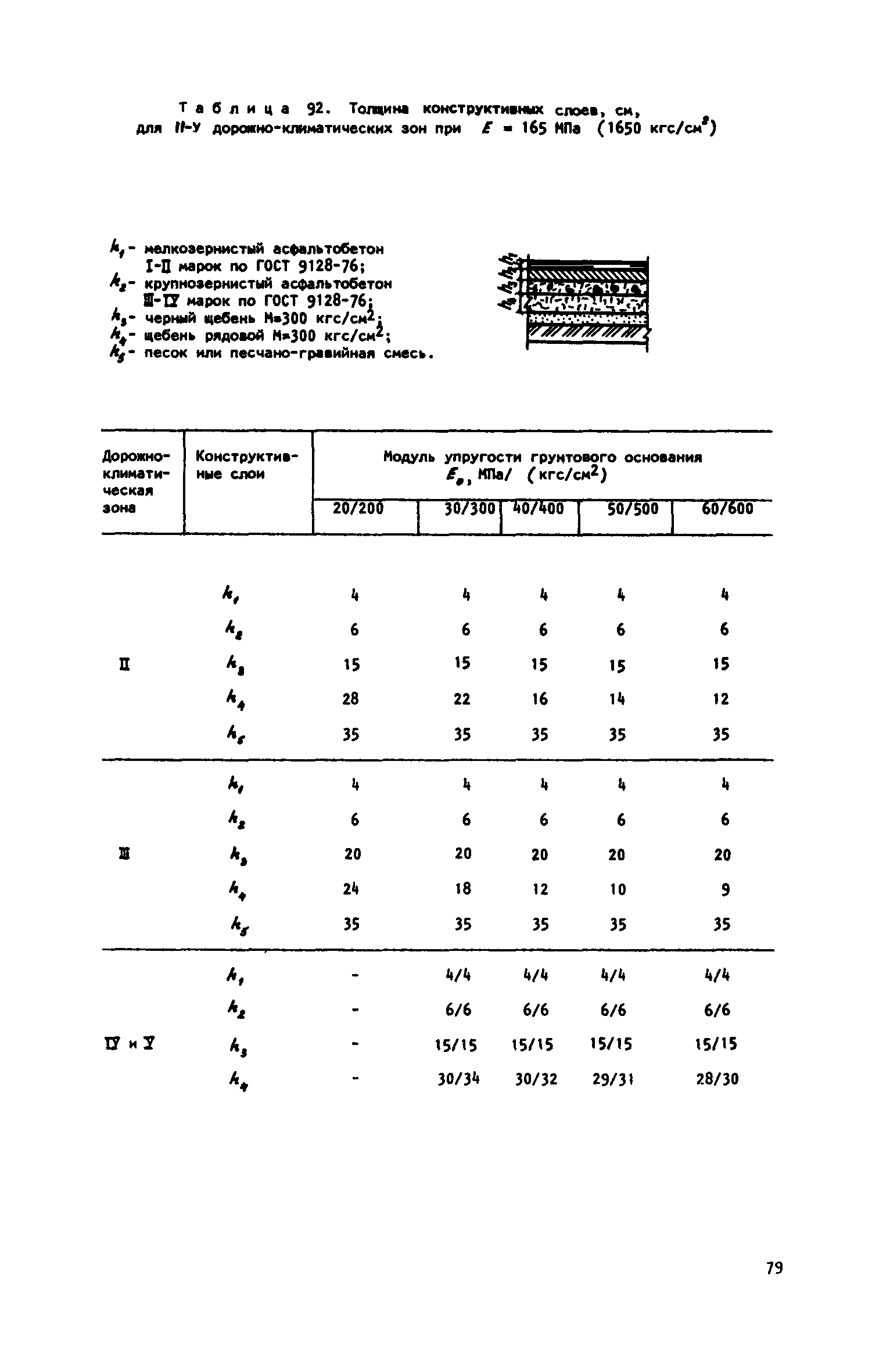| Оглавление: | 1. Общие положения 2. Основные принципы расчета типовых конструкций дорожных одежд 3. Конструирование дорожных одежд городских дорог 4. Обеспечение морозоустойчивости дорожной одежды 5. Конструкции тротуаров Приложение. Таблицы расчета конструкций дорожных одежд Скоростные дороги, магистральные улицы и дороги общегородского значения Конструкции дорожных одежд нежесткого типа Конструкции дорожных одежд жесткого типа Магистральные улицы и дороги районного значения Конструкции дорожных одежд нежесткого типа Конструкции дорожных одежд жесткого типа Промышленные и складские дороги Конструкции дорожных одежд нежесткого типа Конструкции дорожных одежд жесткого типа Жилые улицы и дороги местного значения Конструкции дорожных одежд нежесткого типа Конструкции дорожных одежд жесткого типа Внутриквартальные проезды и пешеходные улицы Конструкции дорожных одежд нежесткого типа Поселковые улицы Конструкции дорожных одежд нежесткого типа Конструкции тротуаров нежесткого типа с учетом заезда тяжелых спецмашин массой до 8,5 т Конструкции тротуаров жесткого типа с учетом заезда тяжелых спецмашин массой до 8,5 т Конструкции тротуаров нежесткого типа с учетом заезда тяжелых спецмашин массой до 6 т Конструкции тротуаров жесткого типа с учетом заезда тяжелых спецмашин массой до 6 т Конструкции тротуаров жесткого типа без заезда спецмашин |