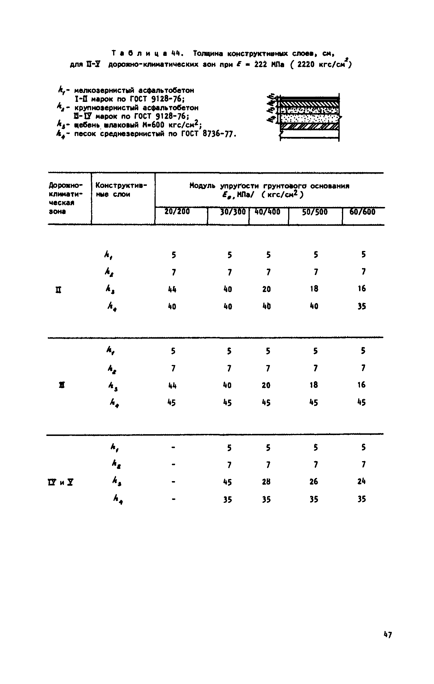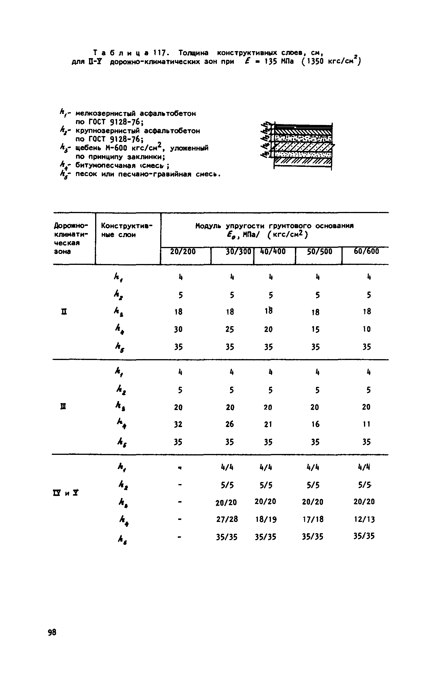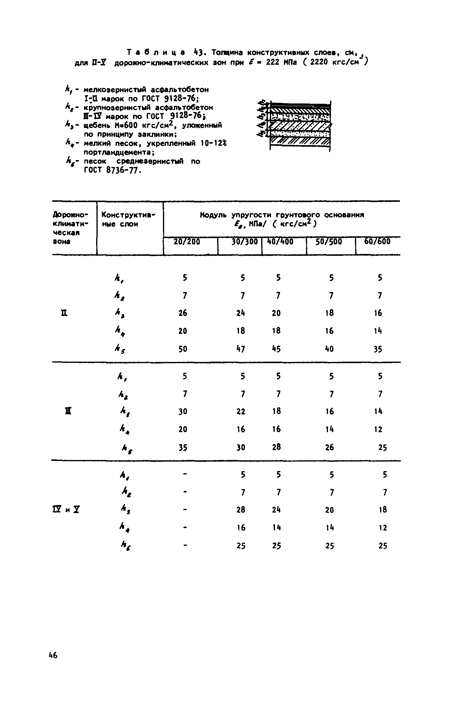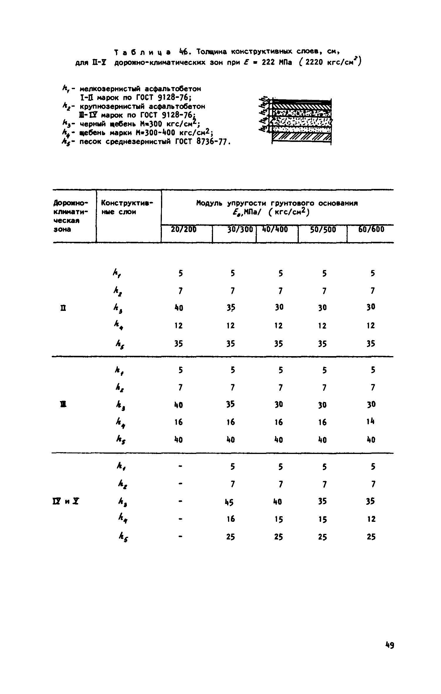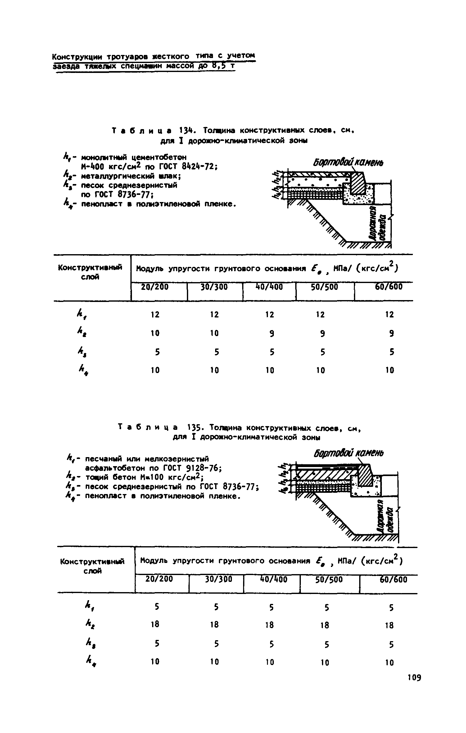 | Оглавление: | 1. Общие положения 2. Основные принципы расчета типовых конструкций дорожных одежд 3. Конструирование дорожных одежд городских дорог 4. Обеспечение морозоустойчивости дорожной одежды 5. Конструкции тротуаров Приложение. Таблицы расчета конструкций дорожных одежд Скоростные дороги, магистральные улицы и дороги общегородского значения Конструкции дорожных одежд нежесткого типа Конструкции дорожных одежд жесткого типа Магистральные улицы и дороги районного значения Конструкции дорожных одежд нежесткого типа Конструкции дорожных одежд жесткого типа Промышленные и складские дороги Конструкции дорожных одежд нежесткого типа Конструкции дорожных одежд жесткого типа Жилые улицы и дороги местного значения Конструкции дорожных одежд нежесткого типа Конструкции дорожных одежд жесткого типа Внутриквартальные проезды и пешеходные улицы Конструкции дорожных одежд нежесткого типа Поселковые улицы Конструкции дорожных одежд нежесткого типа Конструкции тротуаров нежесткого типа с учетом заезда тяжелых спецмашин массой до 8,5 т Конструкции тротуаров жесткого типа с учетом заезда тяжелых спецмашин массой до 8,5 т Конструкции тротуаров нежесткого типа с учетом заезда тяжелых спецмашин массой до 6 т Конструкции тротуаров жесткого типа с учетом заезда тяжелых спецмашин массой до 6 т Конструкции тротуаров жесткого типа без заезда спецмашин |