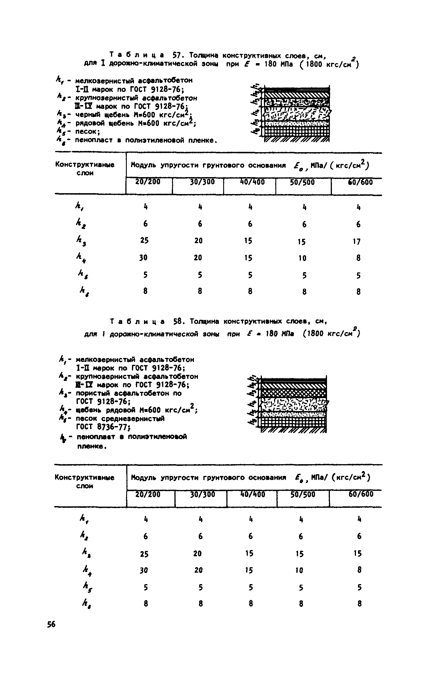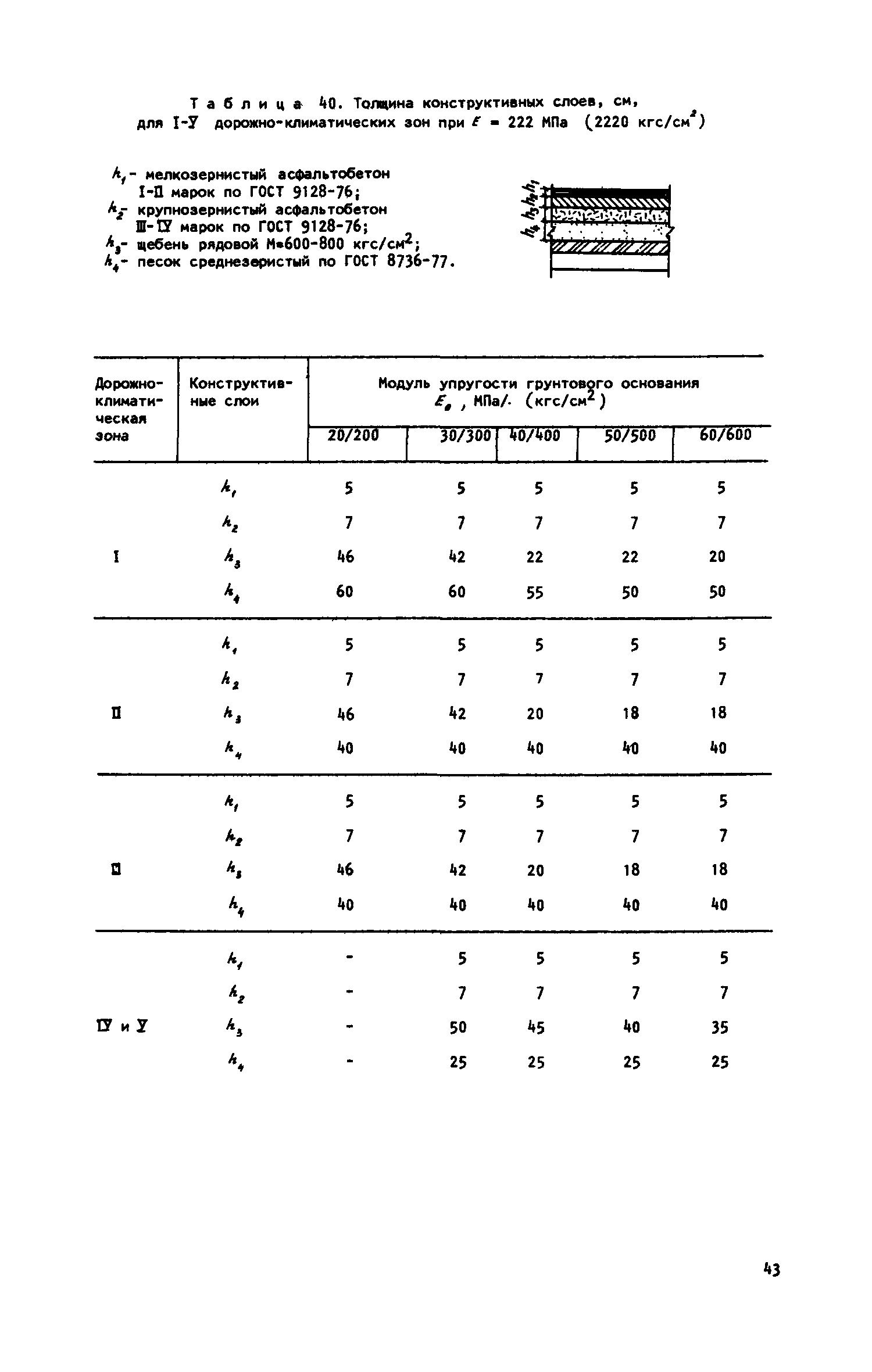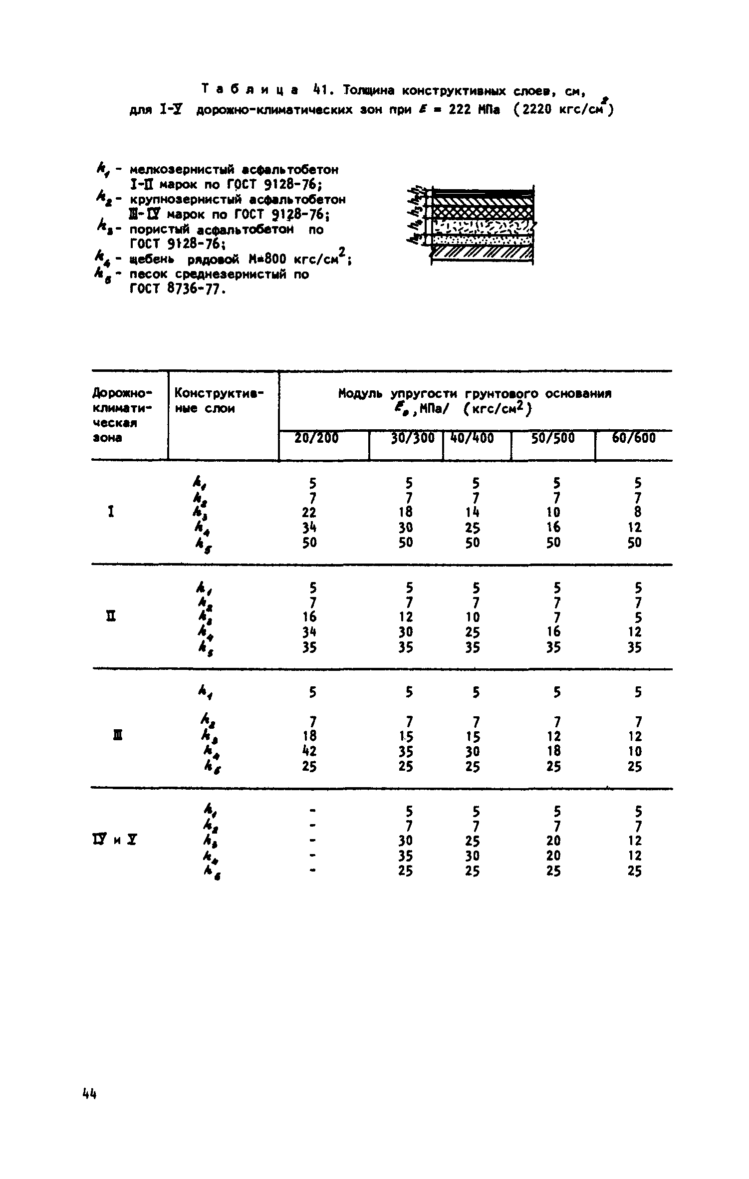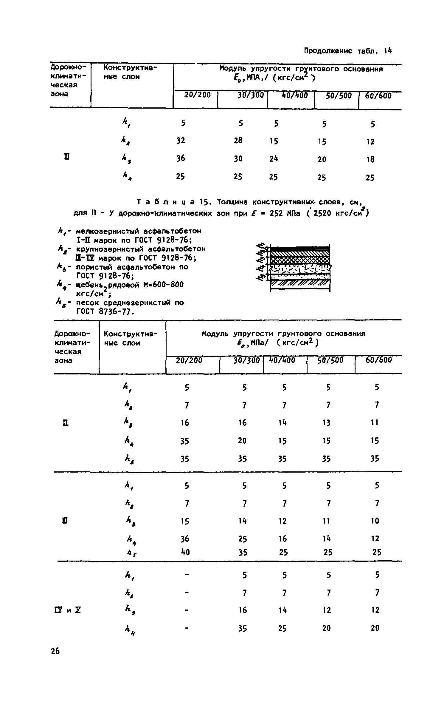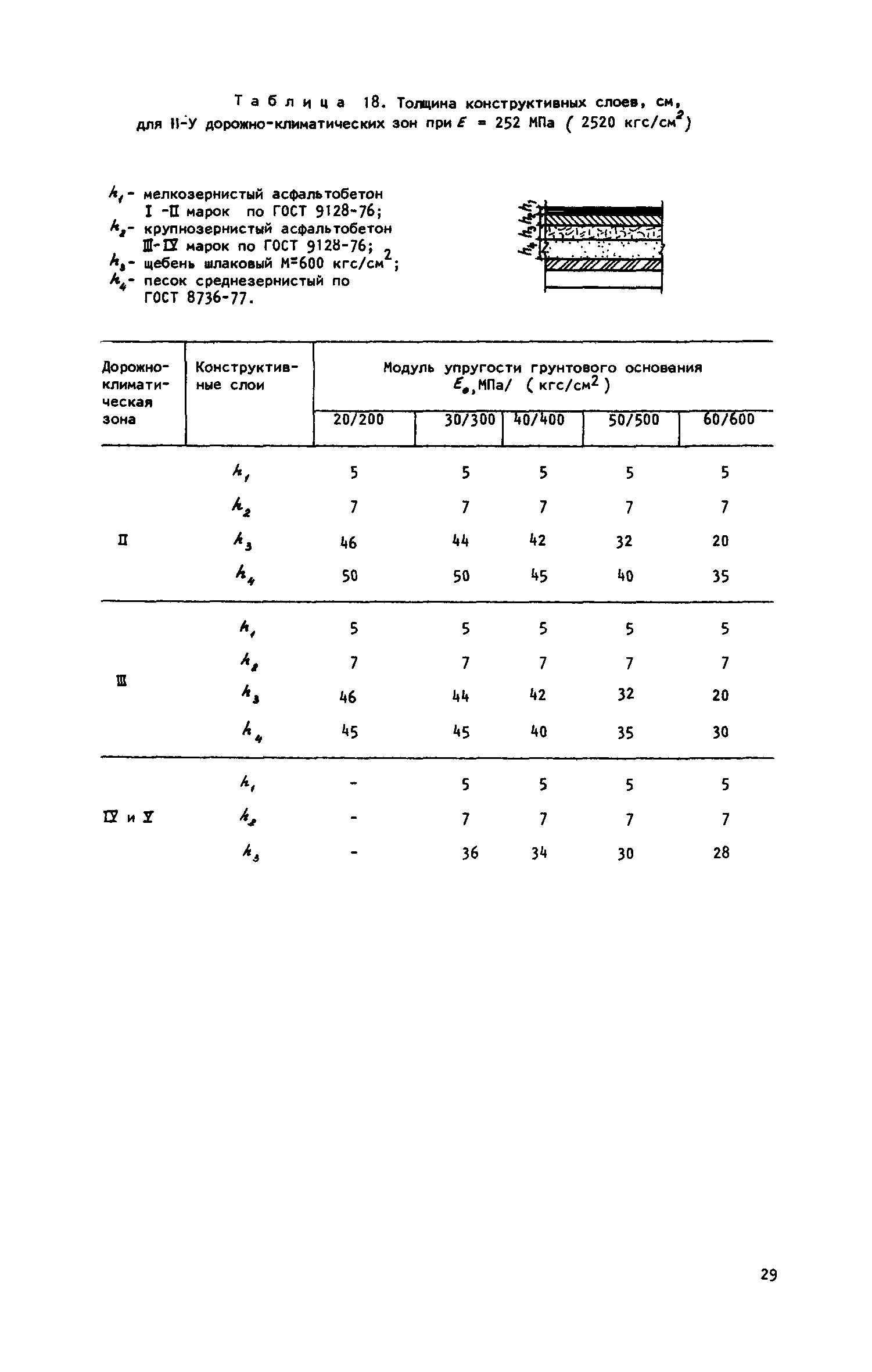 | Оглавление: | 1. Общие положения 2. Основные принципы расчета типовых конструкций дорожных одежд 3. Конструирование дорожных одежд городских дорог 4. Обеспечение морозоустойчивости дорожной одежды 5. Конструкции тротуаров Приложение. Таблицы расчета конструкций дорожных одежд Скоростные дороги, магистральные улицы и дороги общегородского значения Конструкции дорожных одежд нежесткого типа Конструкции дорожных одежд жесткого типа Магистральные улицы и дороги районного значения Конструкции дорожных одежд нежесткого типа Конструкции дорожных одежд жесткого типа Промышленные и складские дороги Конструкции дорожных одежд нежесткого типа Конструкции дорожных одежд жесткого типа Жилые улицы и дороги местного значения Конструкции дорожных одежд нежесткого типа Конструкции дорожных одежд жесткого типа Внутриквартальные проезды и пешеходные улицы Конструкции дорожных одежд нежесткого типа Поселковые улицы Конструкции дорожных одежд нежесткого типа Конструкции тротуаров нежесткого типа с учетом заезда тяжелых спецмашин массой до 8,5 т Конструкции тротуаров жесткого типа с учетом заезда тяжелых спецмашин массой до 8,5 т Конструкции тротуаров нежесткого типа с учетом заезда тяжелых спецмашин массой до 6 т Конструкции тротуаров жесткого типа с учетом заезда тяжелых спецмашин массой до 6 т Конструкции тротуаров жесткого типа без заезда спецмашин |