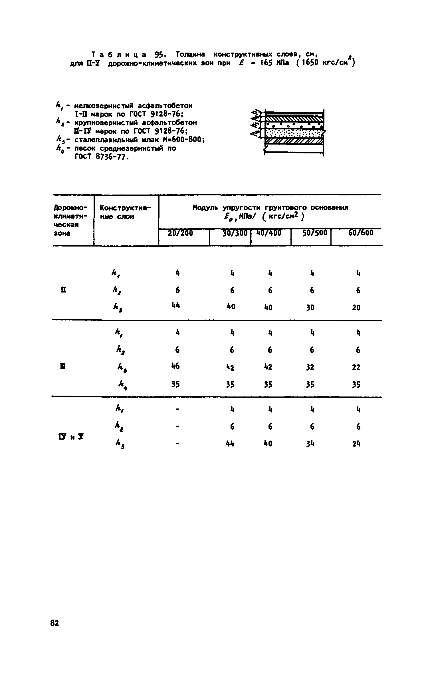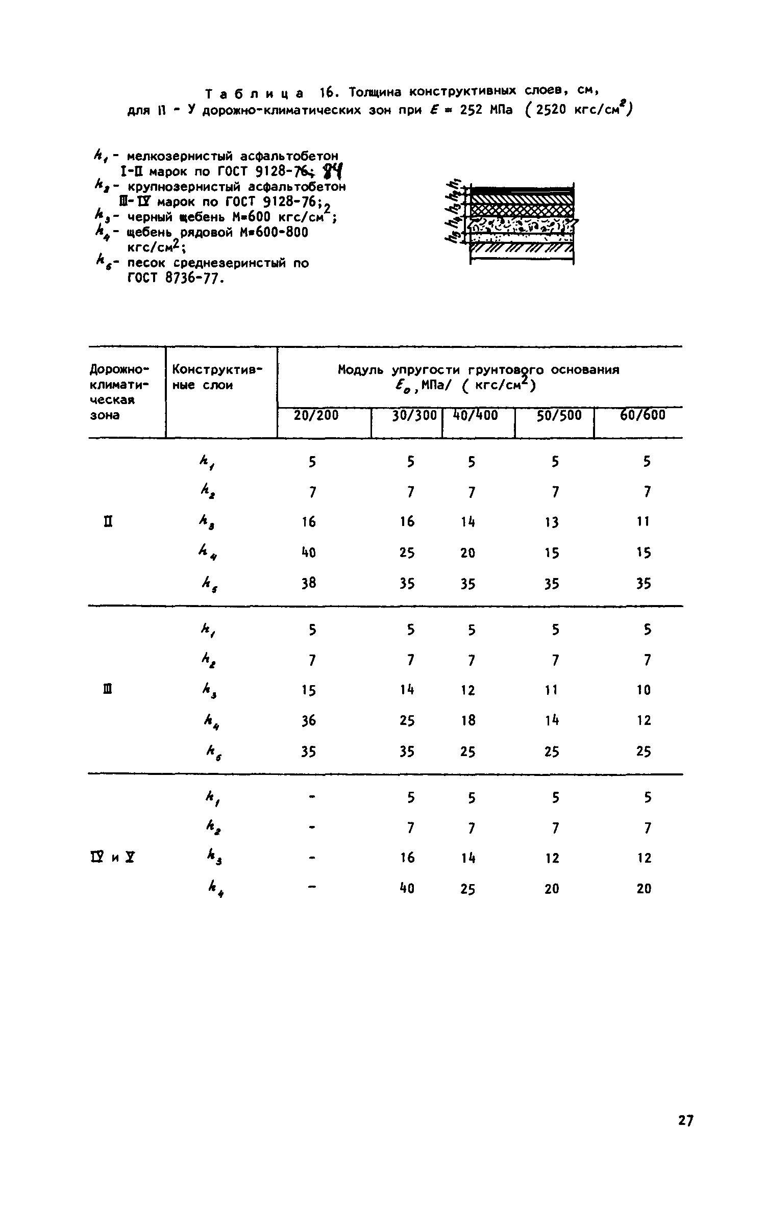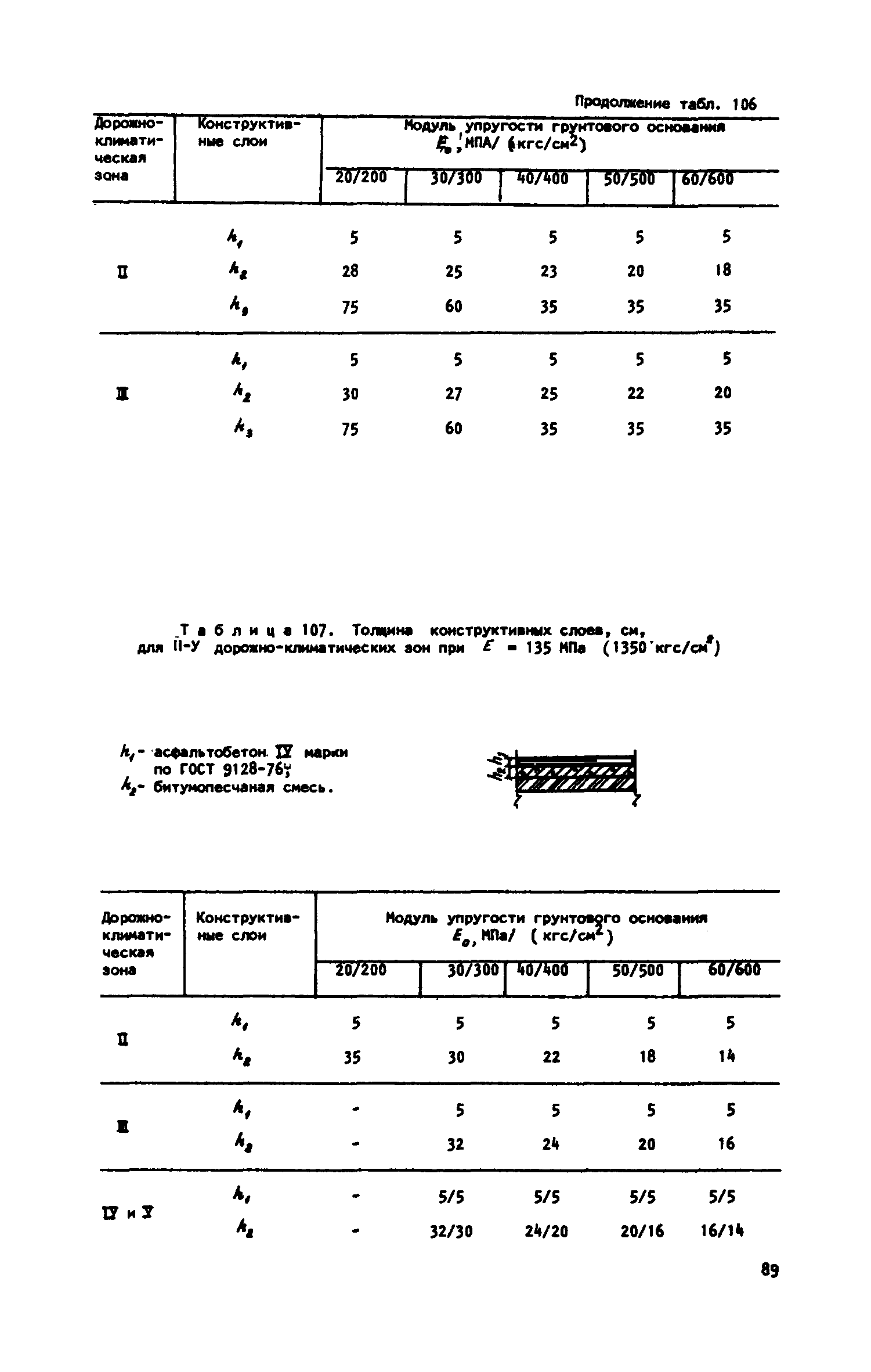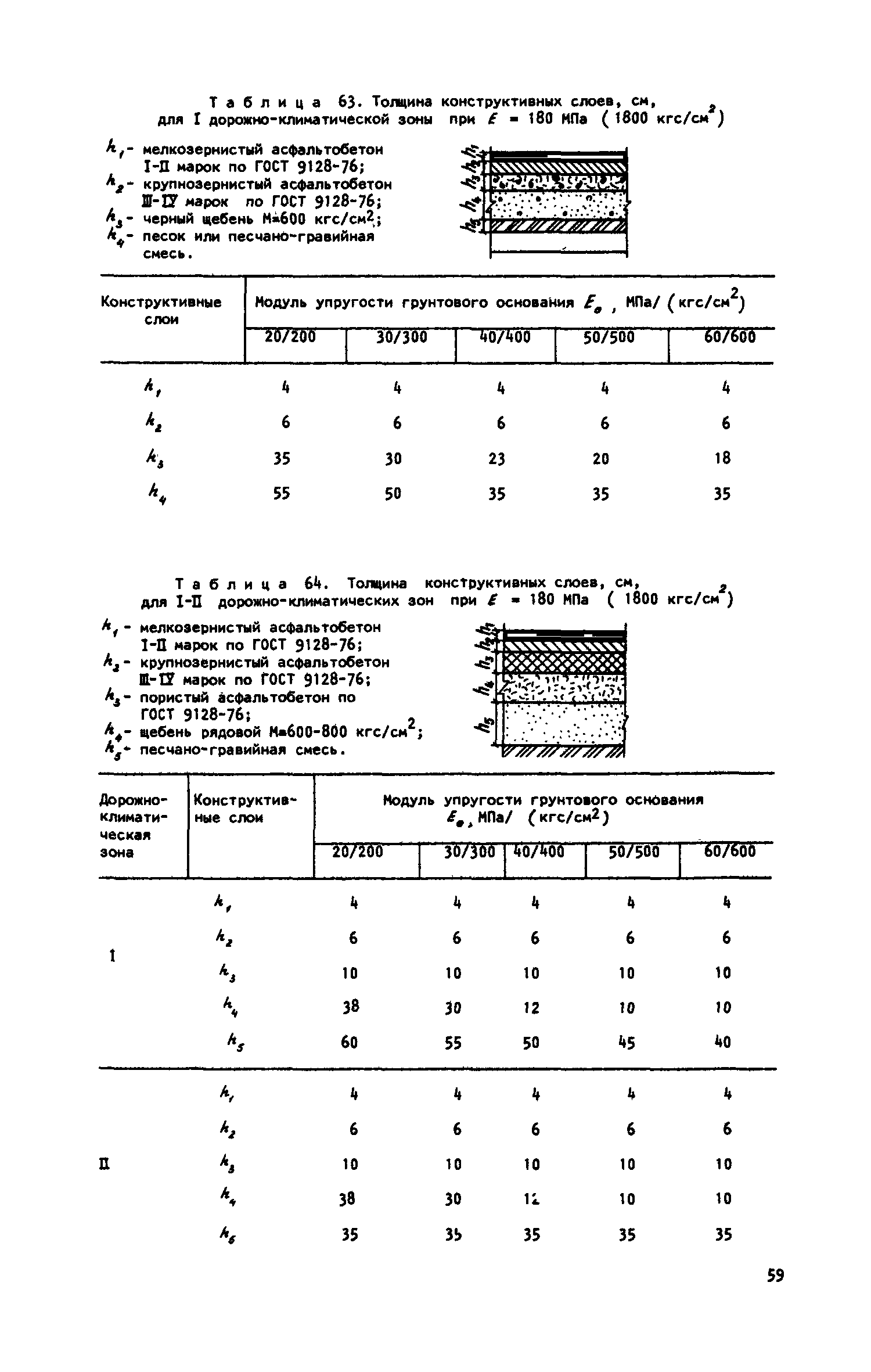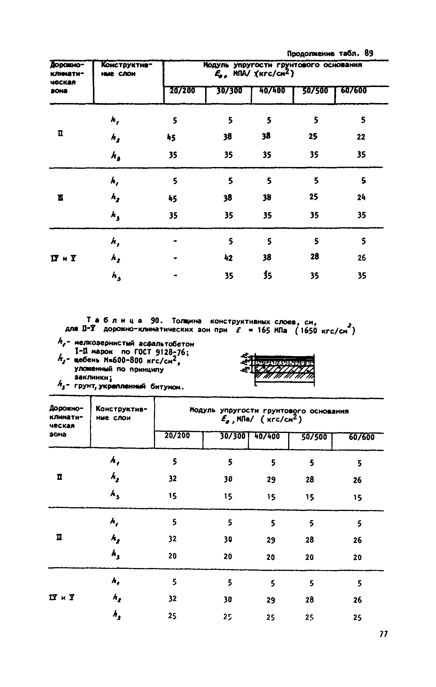 | Оглавление: | 1. Общие положения 2. Основные принципы расчета типовых конструкций дорожных одежд 3. Конструирование дорожных одежд городских дорог 4. Обеспечение морозоустойчивости дорожной одежды 5. Конструкции тротуаров Приложение. Таблицы расчета конструкций дорожных одежд Скоростные дороги, магистральные улицы и дороги общегородского значения Конструкции дорожных одежд нежесткого типа Конструкции дорожных одежд жесткого типа Магистральные улицы и дороги районного значения Конструкции дорожных одежд нежесткого типа Конструкции дорожных одежд жесткого типа Промышленные и складские дороги Конструкции дорожных одежд нежесткого типа Конструкции дорожных одежд жесткого типа Жилые улицы и дороги местного значения Конструкции дорожных одежд нежесткого типа Конструкции дорожных одежд жесткого типа Внутриквартальные проезды и пешеходные улицы Конструкции дорожных одежд нежесткого типа Поселковые улицы Конструкции дорожных одежд нежесткого типа Конструкции тротуаров нежесткого типа с учетом заезда тяжелых спецмашин массой до 8,5 т Конструкции тротуаров жесткого типа с учетом заезда тяжелых спецмашин массой до 8,5 т Конструкции тротуаров нежесткого типа с учетом заезда тяжелых спецмашин массой до 6 т Конструкции тротуаров жесткого типа с учетом заезда тяжелых спецмашин массой до 6 т Конструкции тротуаров жесткого типа без заезда спецмашин |