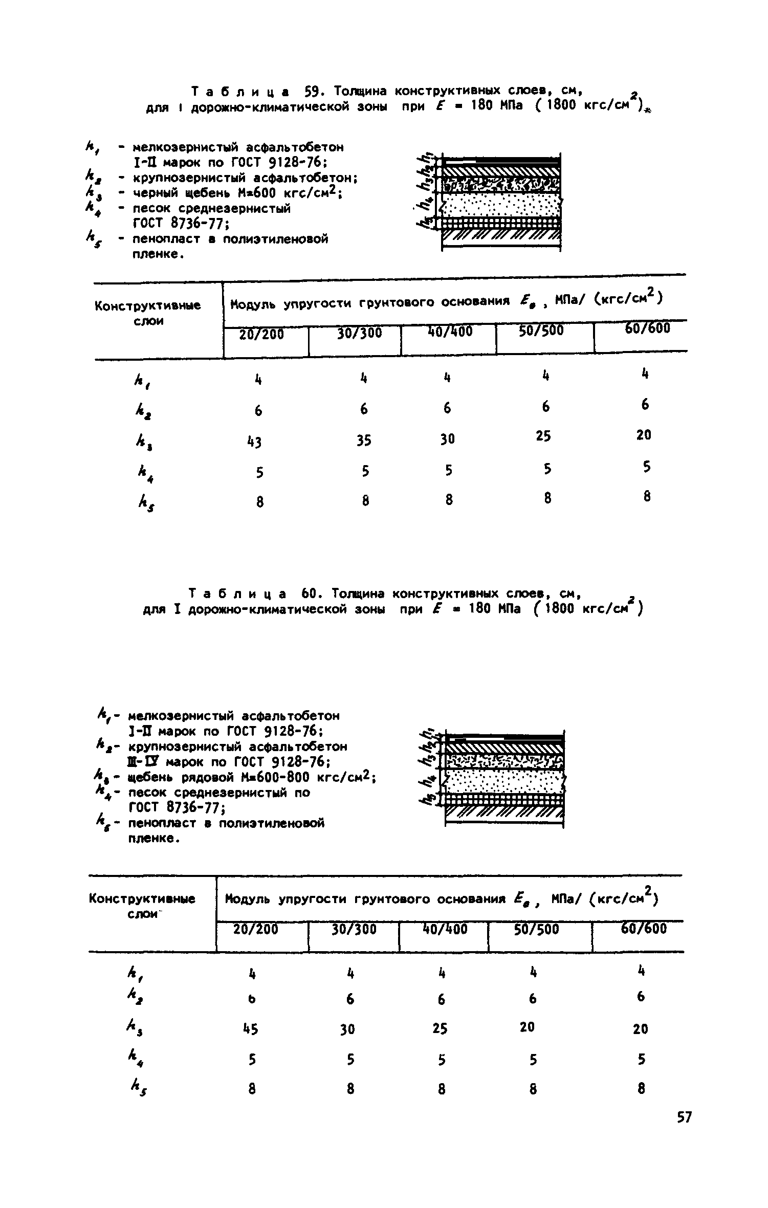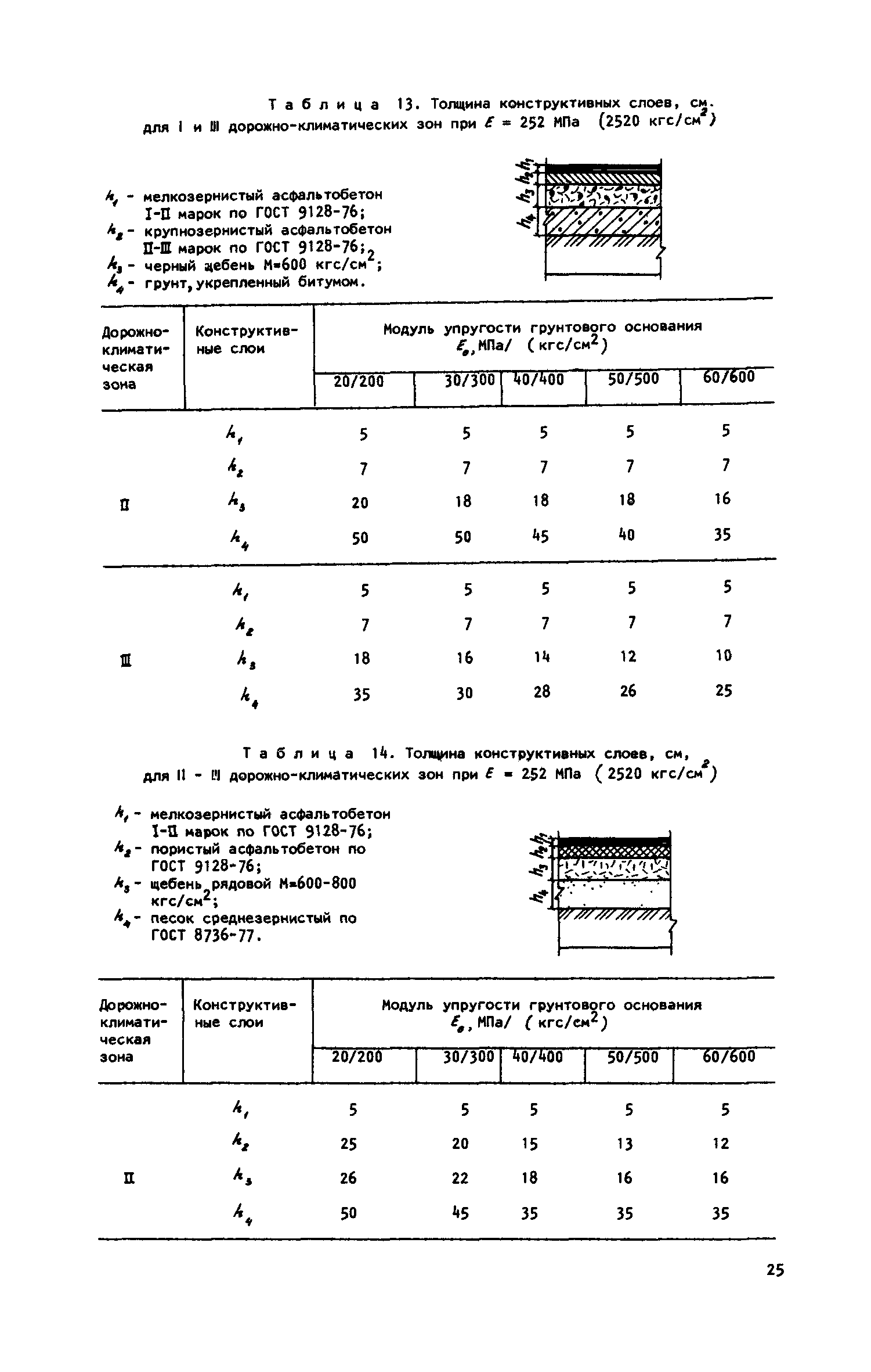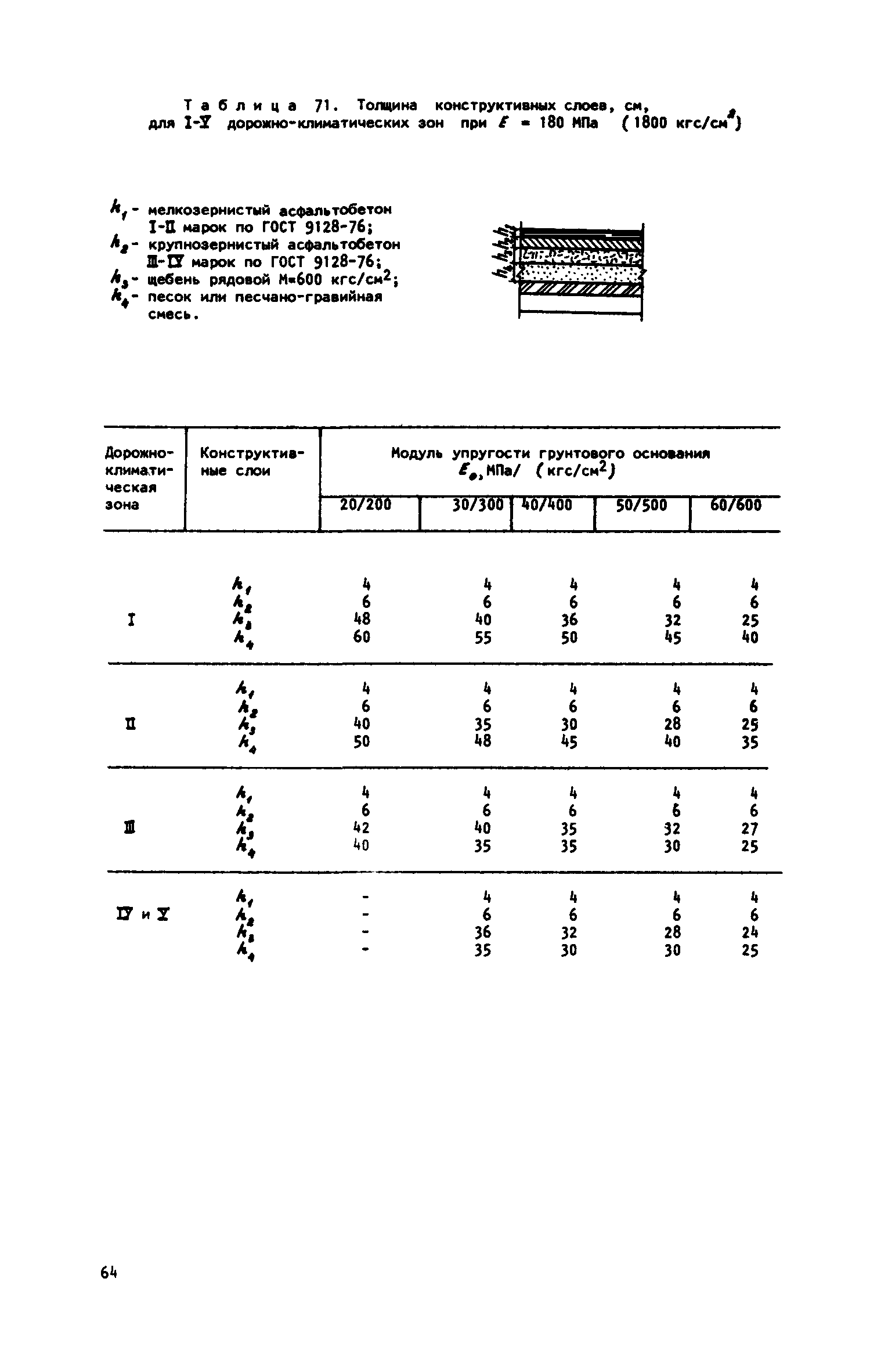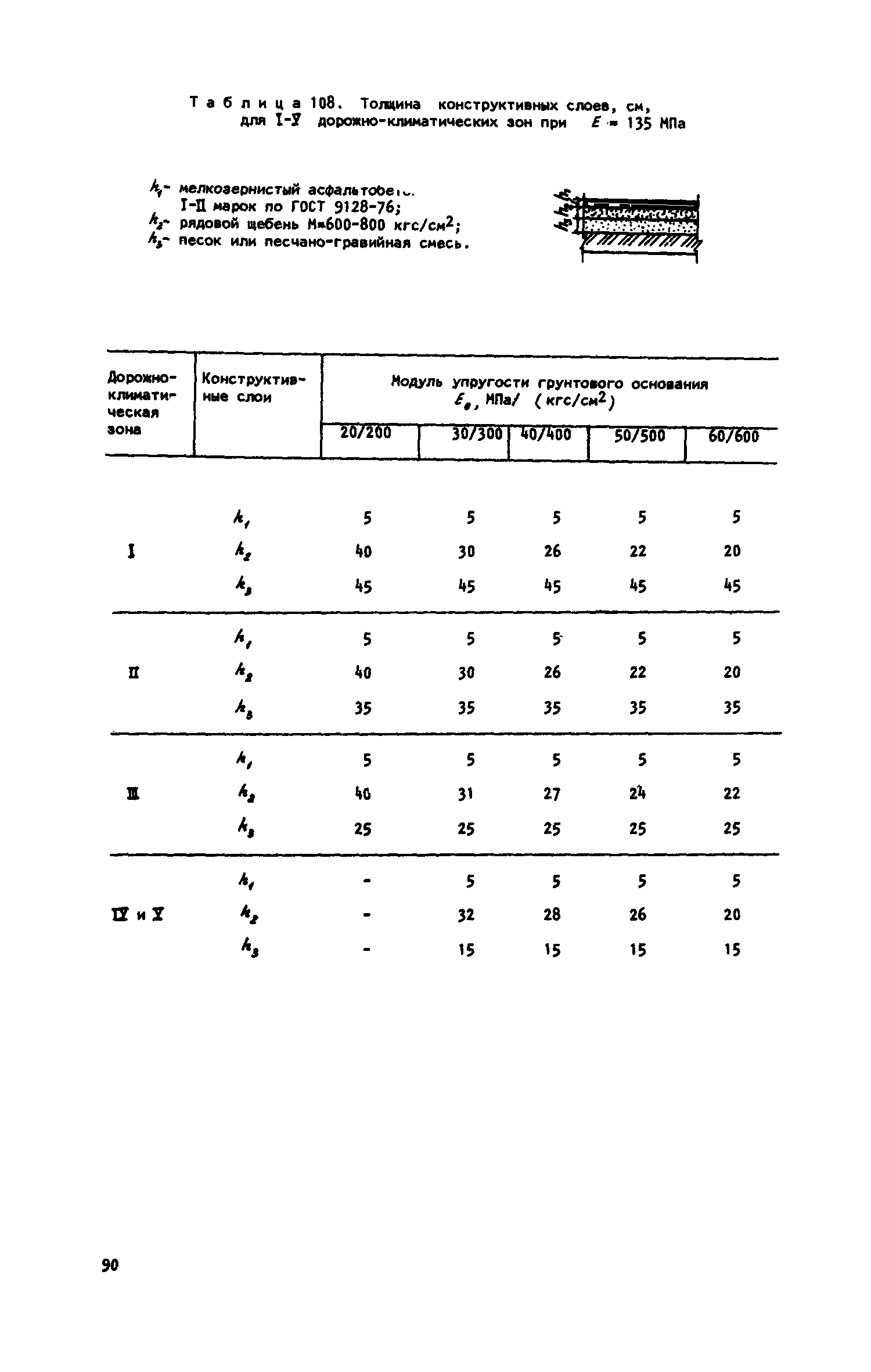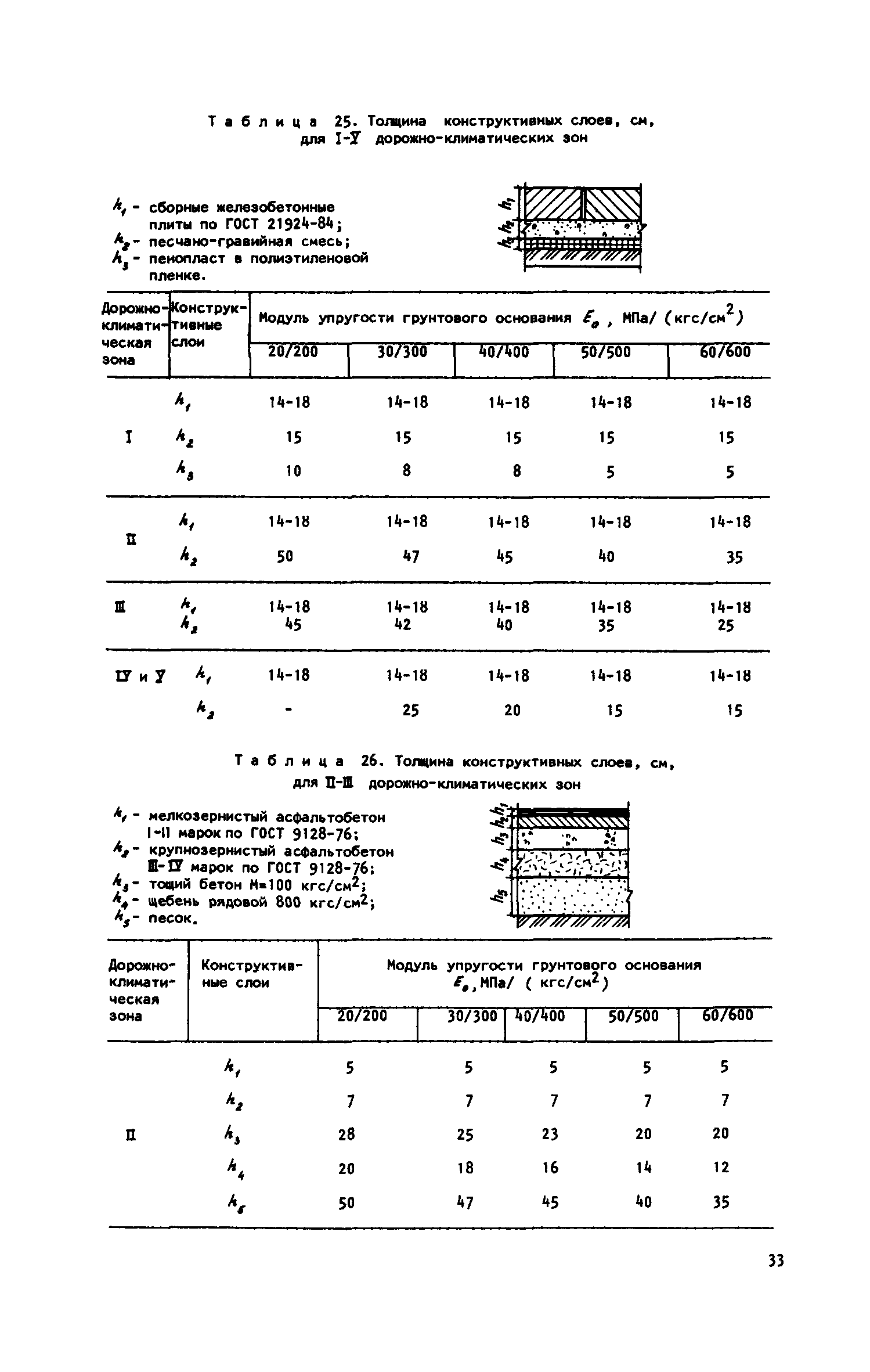 | Оглавление: | 1. Общие положения 2. Основные принципы расчета типовых конструкций дорожных одежд 3. Конструирование дорожных одежд городских дорог 4. Обеспечение морозоустойчивости дорожной одежды 5. Конструкции тротуаров Приложение. Таблицы расчета конструкций дорожных одежд Скоростные дороги, магистральные улицы и дороги общегородского значения Конструкции дорожных одежд нежесткого типа Конструкции дорожных одежд жесткого типа Магистральные улицы и дороги районного значения Конструкции дорожных одежд нежесткого типа Конструкции дорожных одежд жесткого типа Промышленные и складские дороги Конструкции дорожных одежд нежесткого типа Конструкции дорожных одежд жесткого типа Жилые улицы и дороги местного значения Конструкции дорожных одежд нежесткого типа Конструкции дорожных одежд жесткого типа Внутриквартальные проезды и пешеходные улицы Конструкции дорожных одежд нежесткого типа Поселковые улицы Конструкции дорожных одежд нежесткого типа Конструкции тротуаров нежесткого типа с учетом заезда тяжелых спецмашин массой до 8,5 т Конструкции тротуаров жесткого типа с учетом заезда тяжелых спецмашин массой до 8,5 т Конструкции тротуаров нежесткого типа с учетом заезда тяжелых спецмашин массой до 6 т Конструкции тротуаров жесткого типа с учетом заезда тяжелых спецмашин массой до 6 т Конструкции тротуаров жесткого типа без заезда спецмашин |