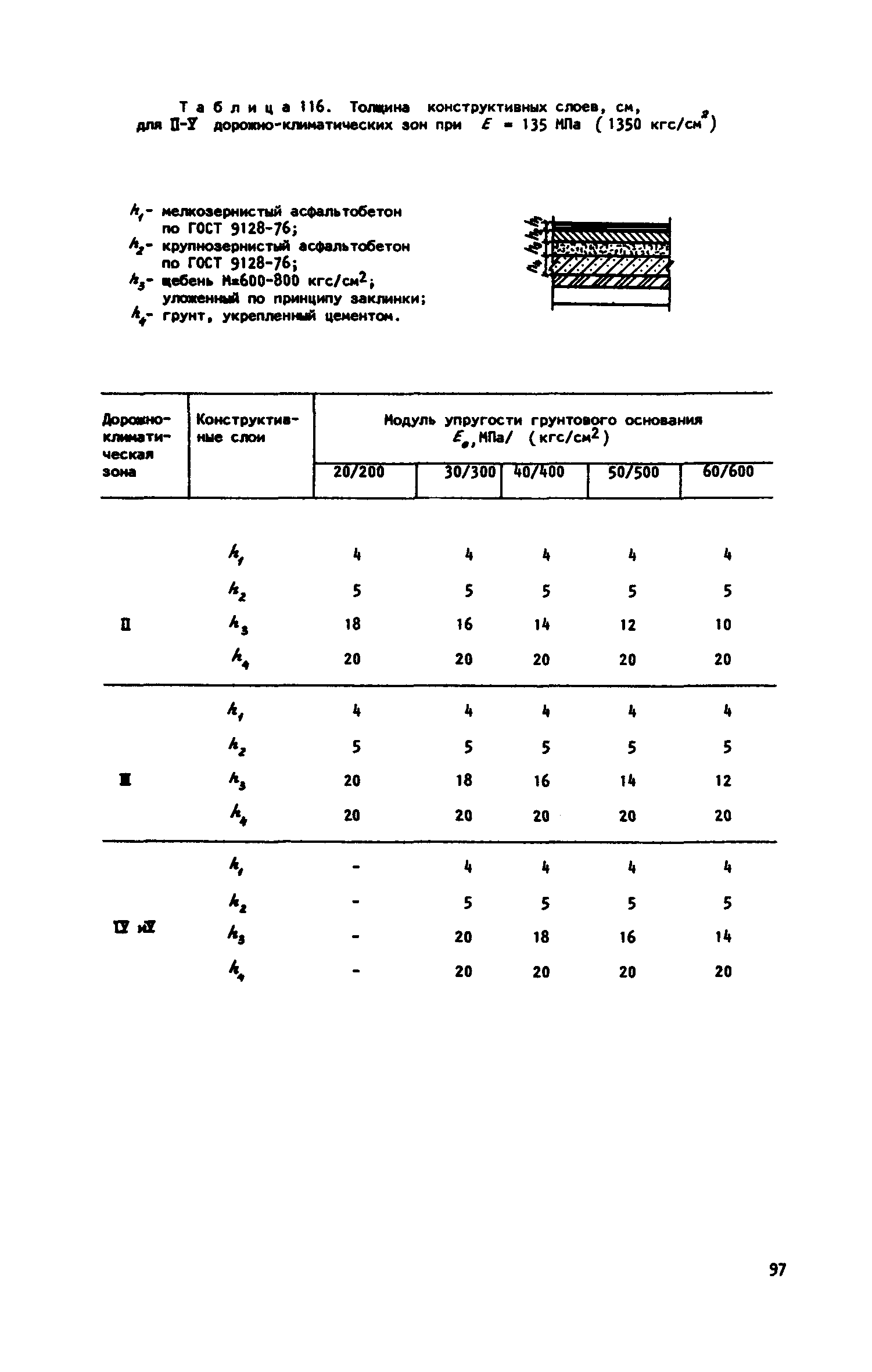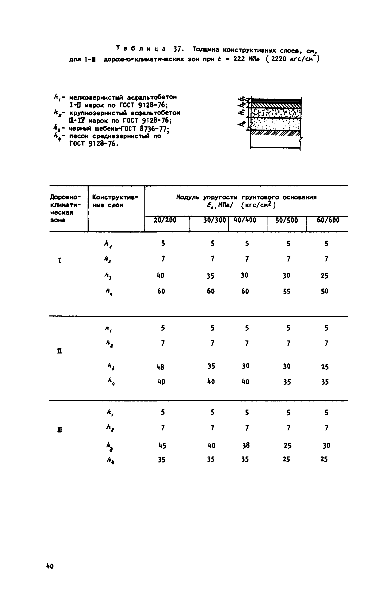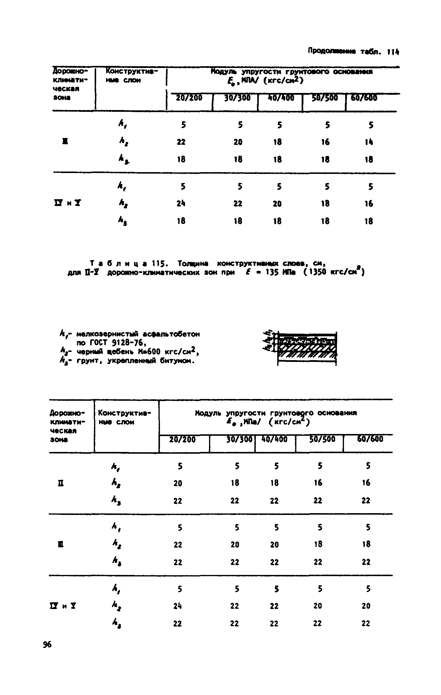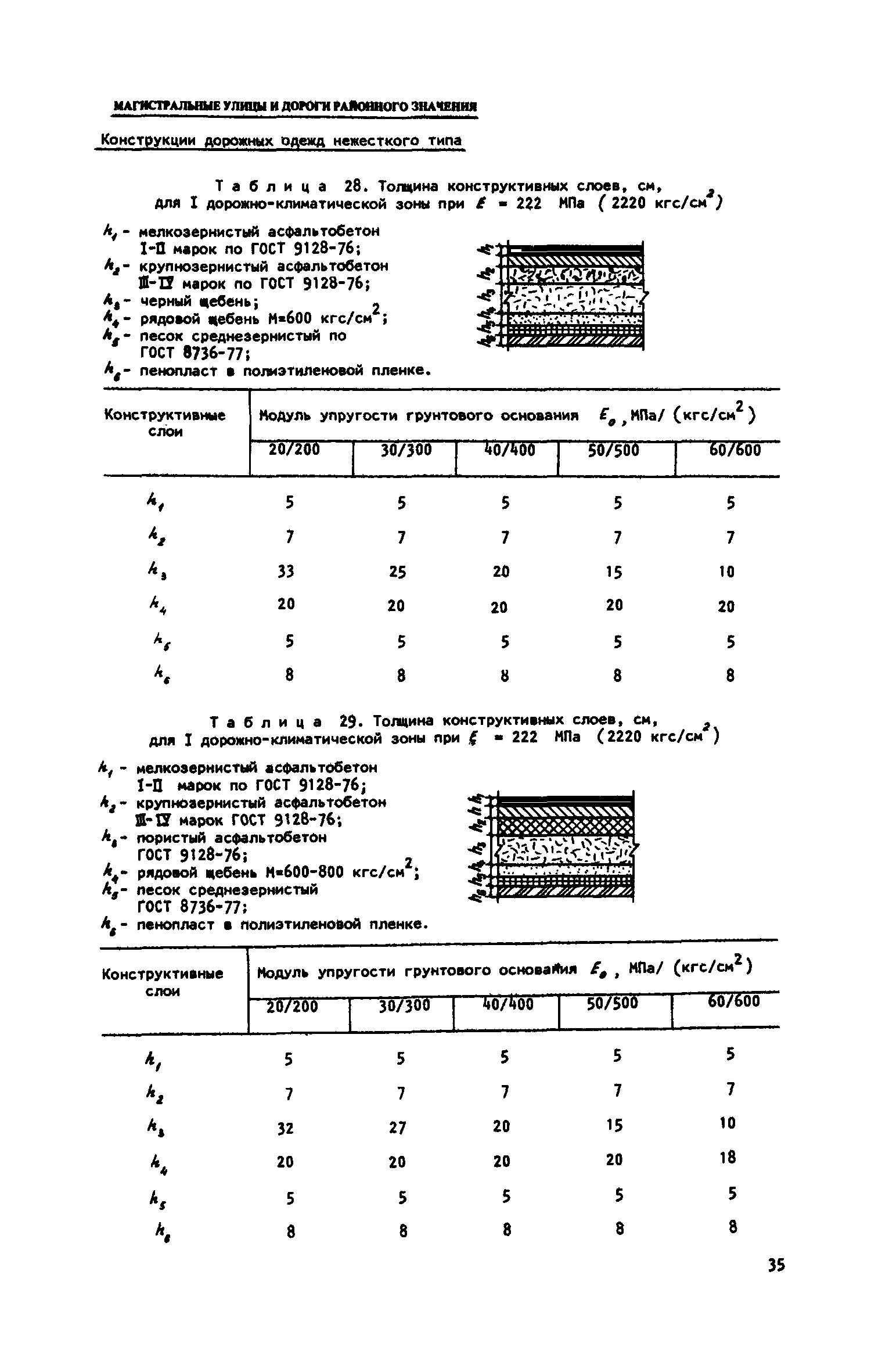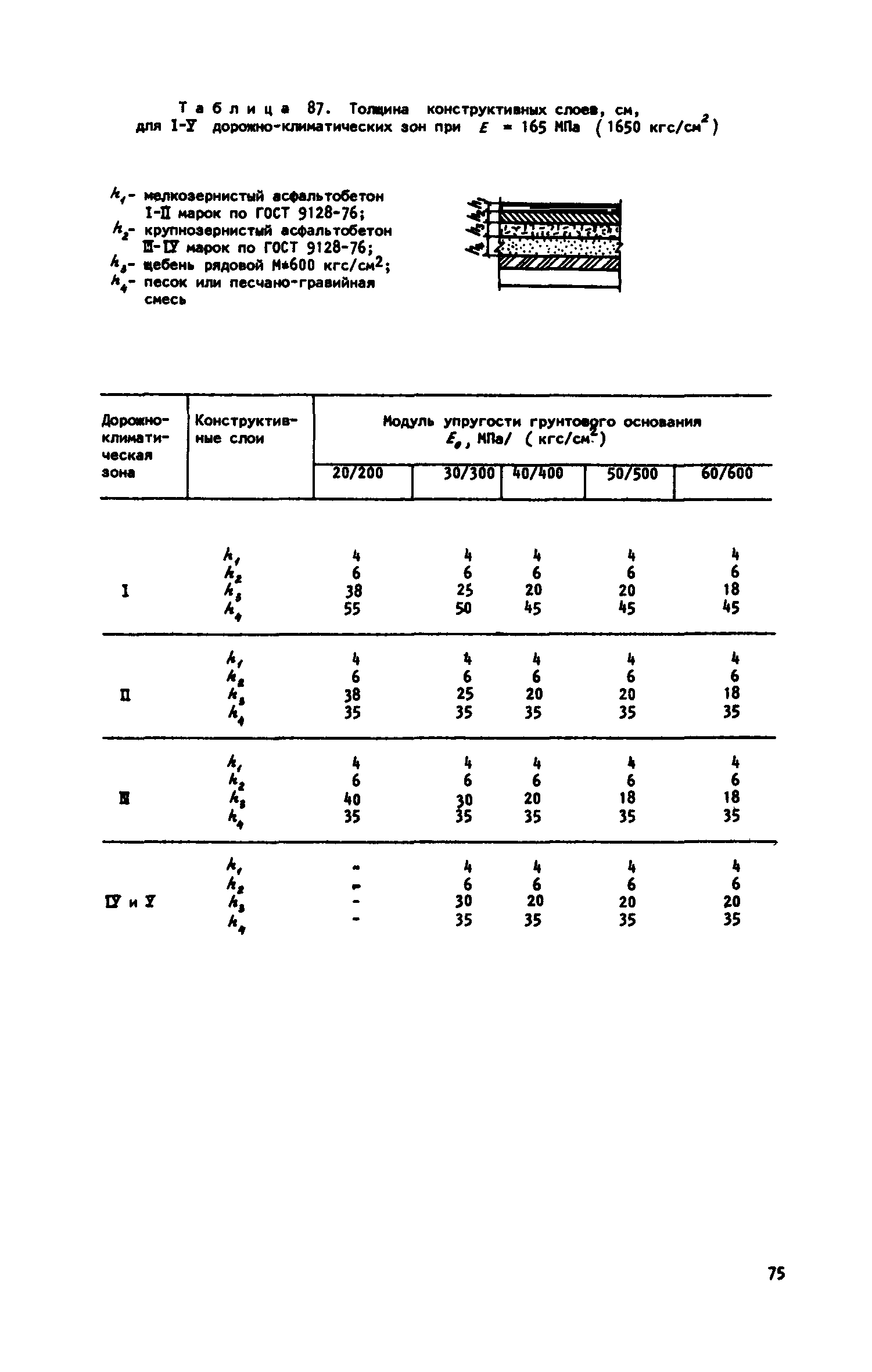 | Оглавление: | 1. Общие положения 2. Основные принципы расчета типовых конструкций дорожных одежд 3. Конструирование дорожных одежд городских дорог 4. Обеспечение морозоустойчивости дорожной одежды 5. Конструкции тротуаров Приложение. Таблицы расчета конструкций дорожных одежд Скоростные дороги, магистральные улицы и дороги общегородского значения Конструкции дорожных одежд нежесткого типа Конструкции дорожных одежд жесткого типа Магистральные улицы и дороги районного значения Конструкции дорожных одежд нежесткого типа Конструкции дорожных одежд жесткого типа Промышленные и складские дороги Конструкции дорожных одежд нежесткого типа Конструкции дорожных одежд жесткого типа Жилые улицы и дороги местного значения Конструкции дорожных одежд нежесткого типа Конструкции дорожных одежд жесткого типа Внутриквартальные проезды и пешеходные улицы Конструкции дорожных одежд нежесткого типа Поселковые улицы Конструкции дорожных одежд нежесткого типа Конструкции тротуаров нежесткого типа с учетом заезда тяжелых спецмашин массой до 8,5 т Конструкции тротуаров жесткого типа с учетом заезда тяжелых спецмашин массой до 8,5 т Конструкции тротуаров нежесткого типа с учетом заезда тяжелых спецмашин массой до 6 т Конструкции тротуаров жесткого типа с учетом заезда тяжелых спецмашин массой до 6 т Конструкции тротуаров жесткого типа без заезда спецмашин |