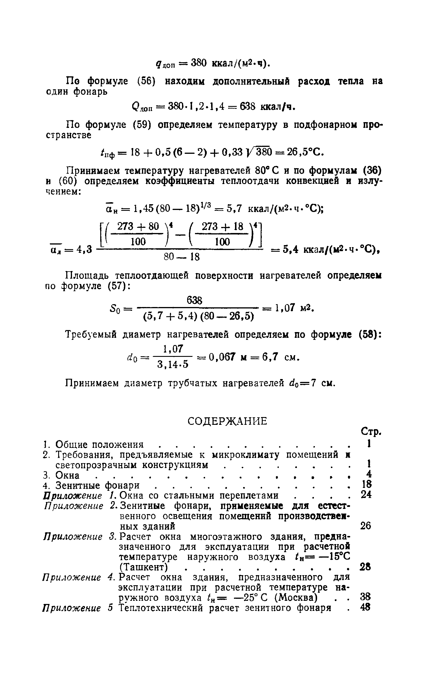 | Оглавление: | 1. Общие положения 2. Требования, предъявляемые к микроклимату помещений и светопрозрачным конструкциям 3. Окна 4. Зенитные фонари Приложение 1. Окна со стальными перелетами Приложение 2. Зенитные фонари, применяемые для естественного освещения помещений производственных зданий Приложение 3. Расчет окна многоэтажного здания, предназначенного для эксплуатации при расчетной температуре наружного воздуха минус 15 градусов Цельсия (Ташкент) Приложение 4. Расчет окна здания, предназначенного для эксплуатации при расчетной температуре наружного воздуха минус 25 градусов Цельсия (Москва) Приложение 5. Теплотехнический расчет зенитного фонаря |